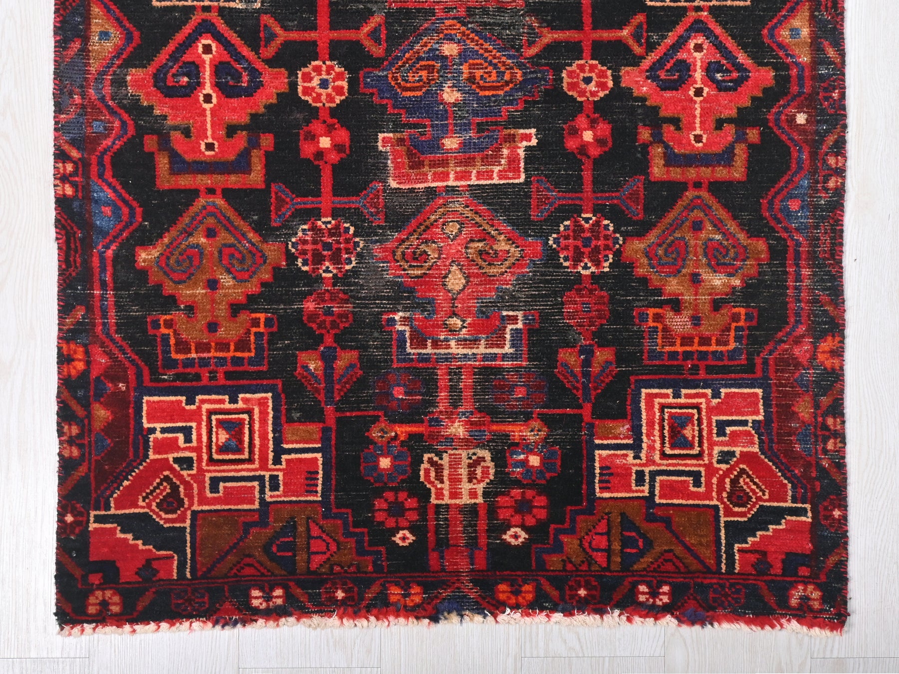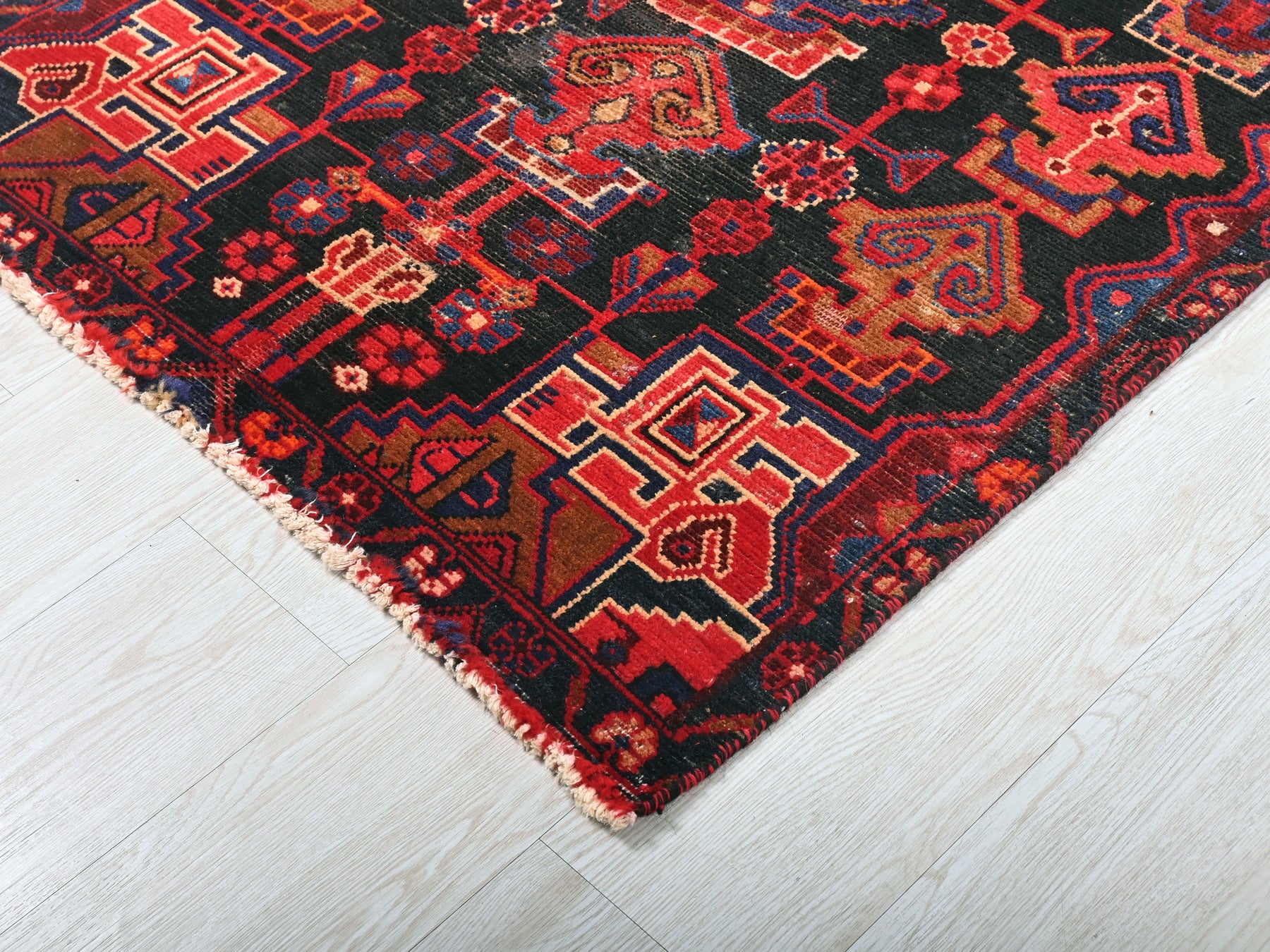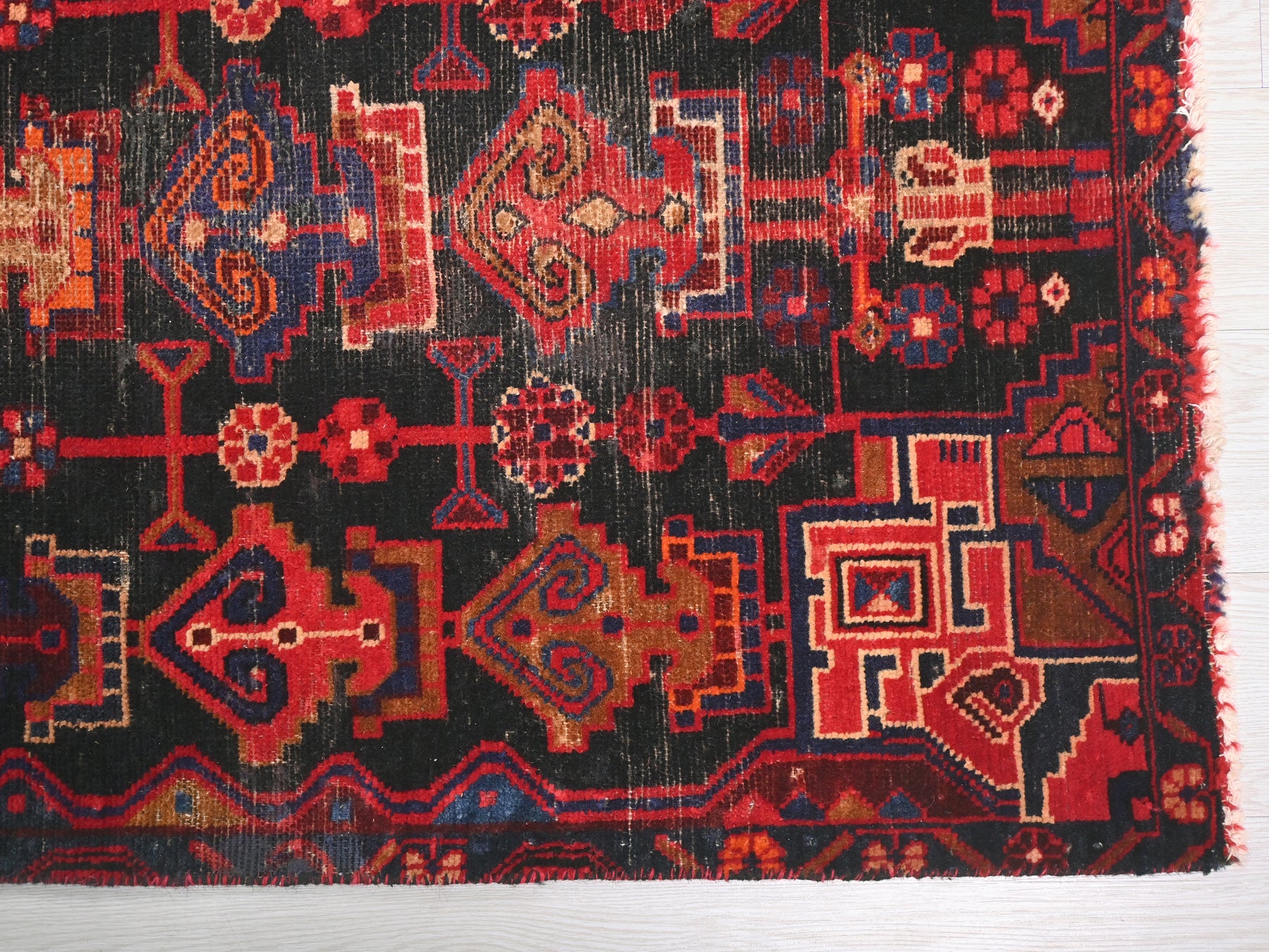 This is a hand-knotted, one-of-a-kind vintage rug. Due to the nature of this piece, there may be slight imperfections in its wear, shape, dimensions, and color. All of our rugs are professionally cleaned and repaired.