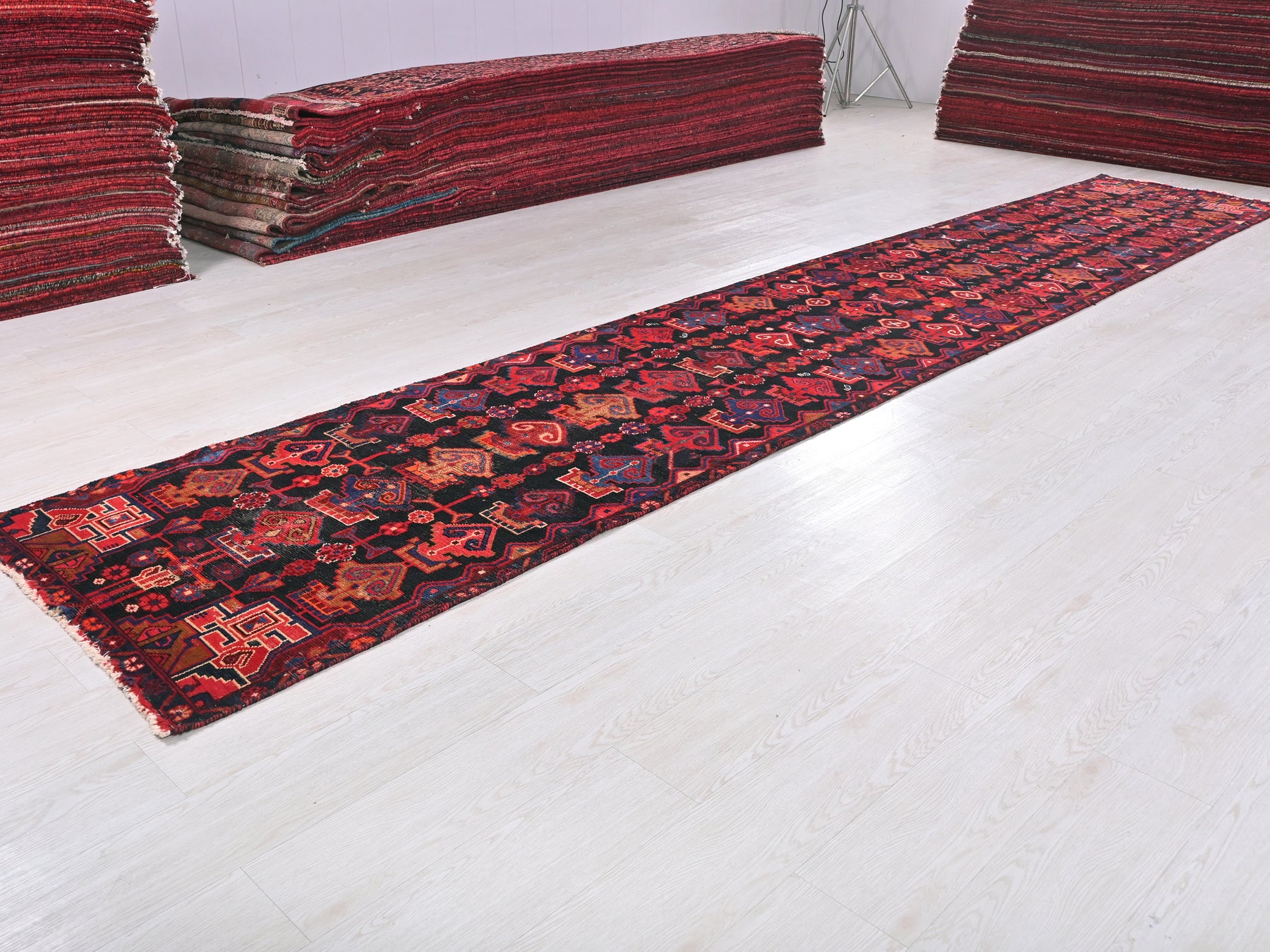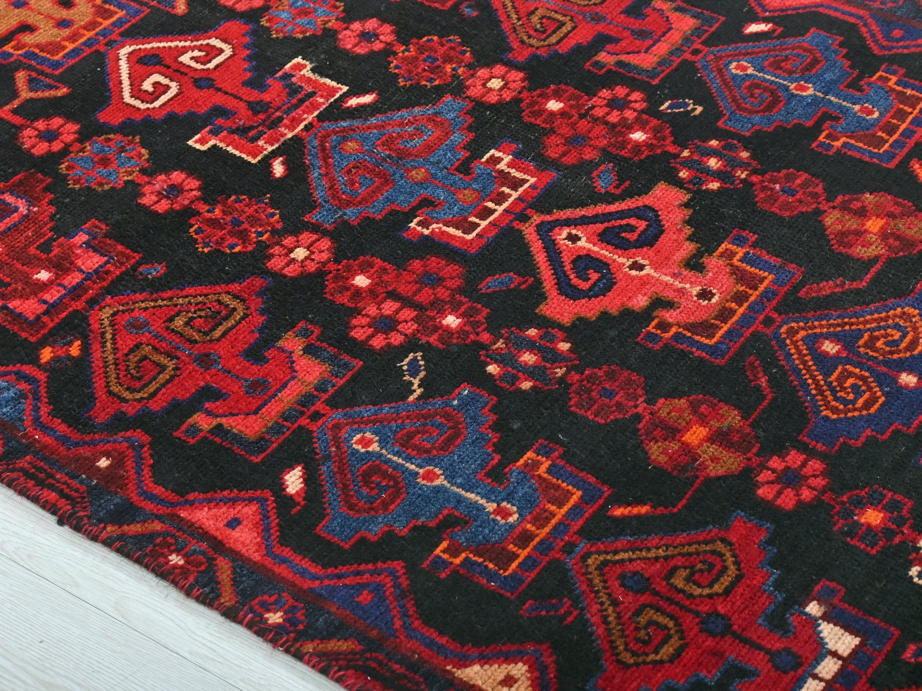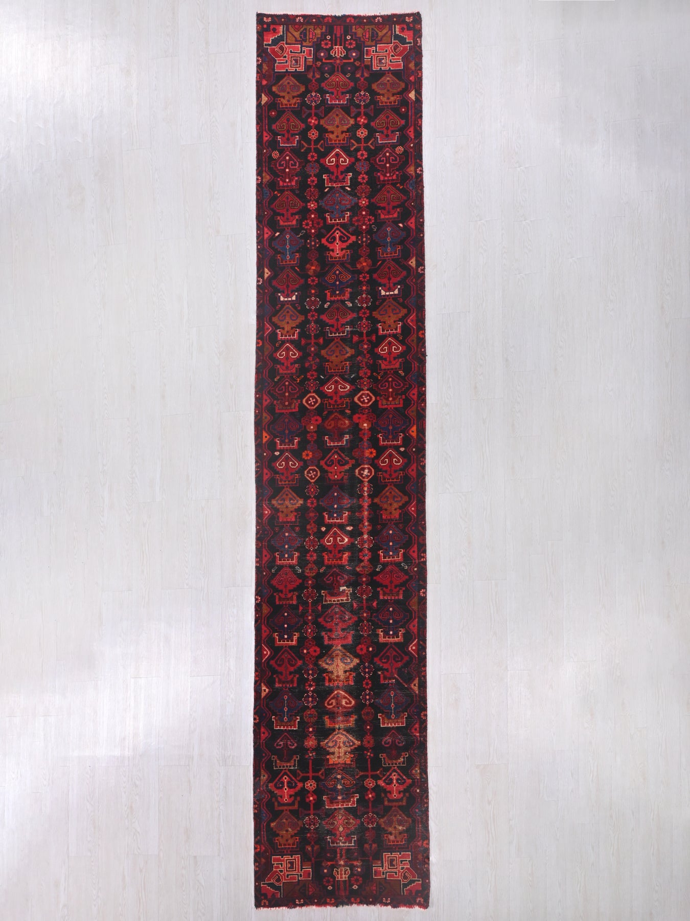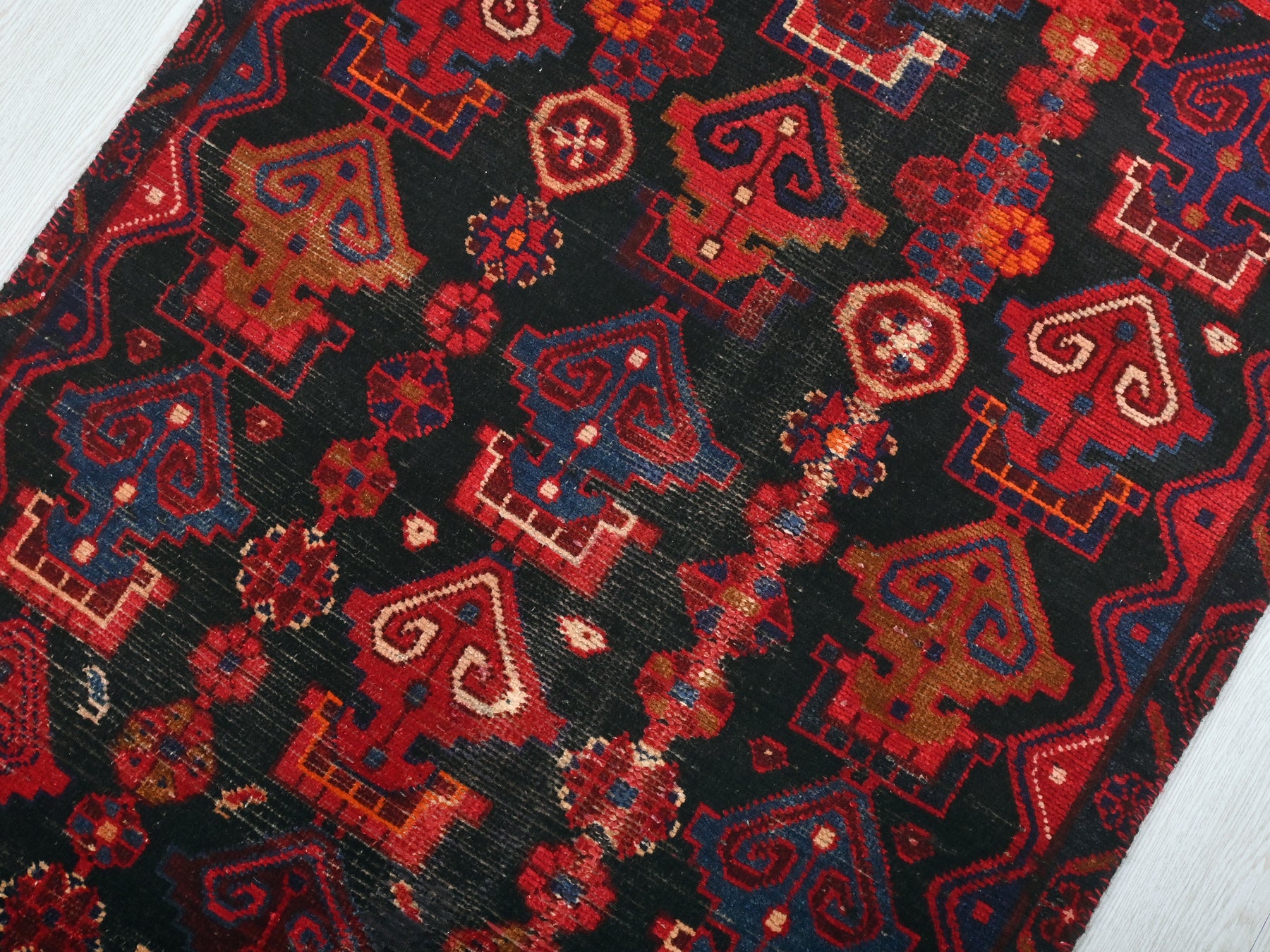 This is a hand-knotted, one-of-a-kind vintage rug. Due to the nature of this piece, there may be slight imperfections in its wear, shape, dimensions, and color. All of our rugs are professionally cleaned and repaired.