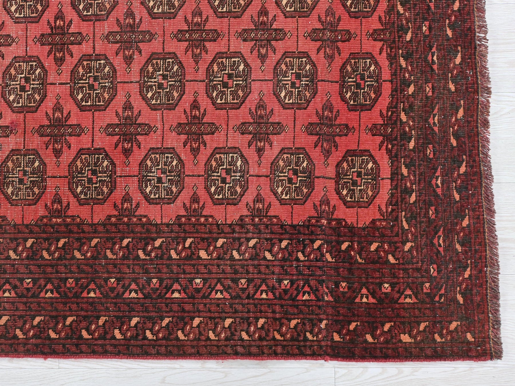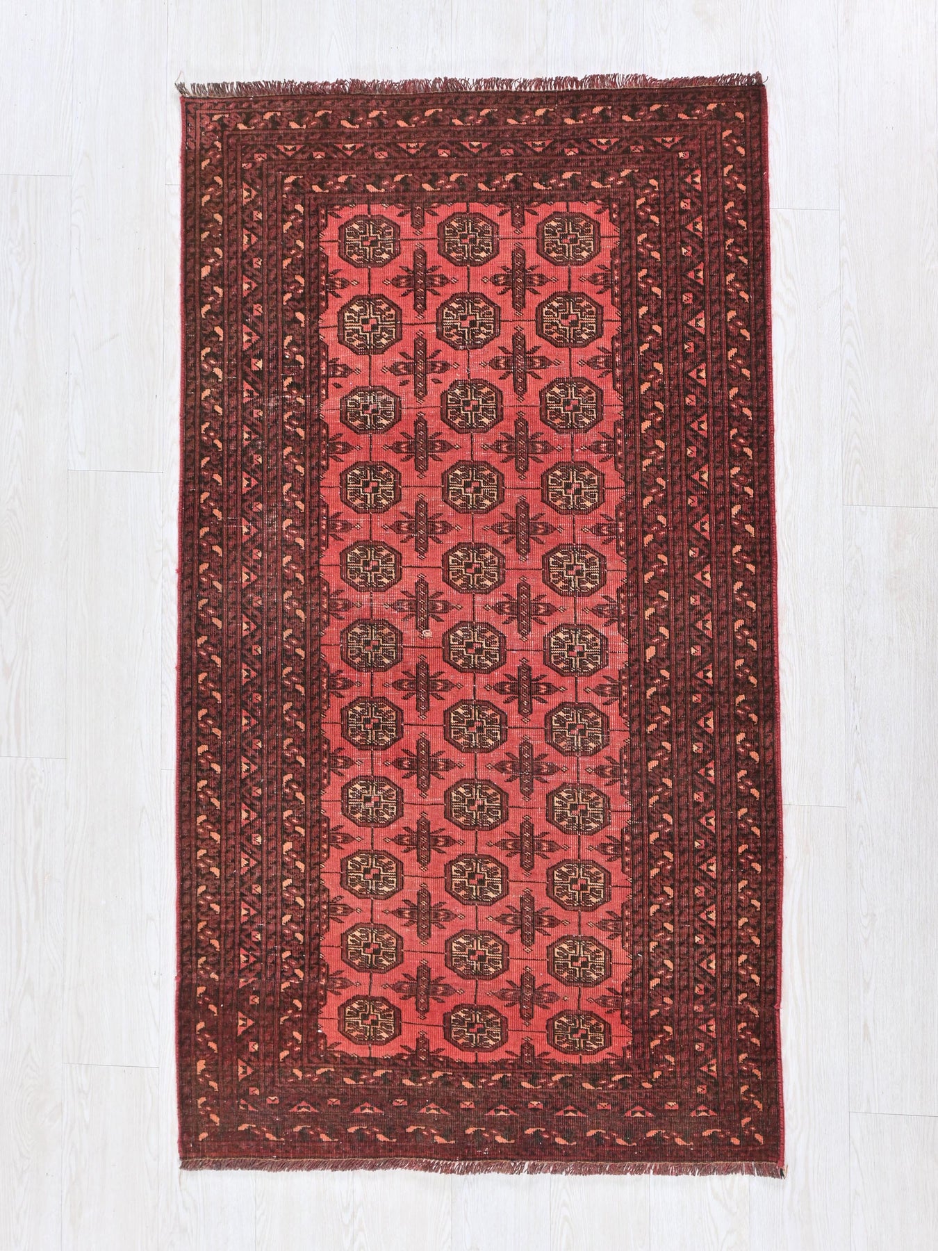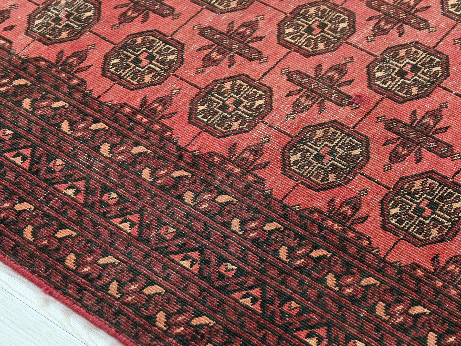 This is a hand-knotted, one-of-a-kind vintage rug. Due to the nature of this piece, there may be slight imperfections in its wear, shape, dimensions, and color. All of our rugs are professionally cleaned and repaired.