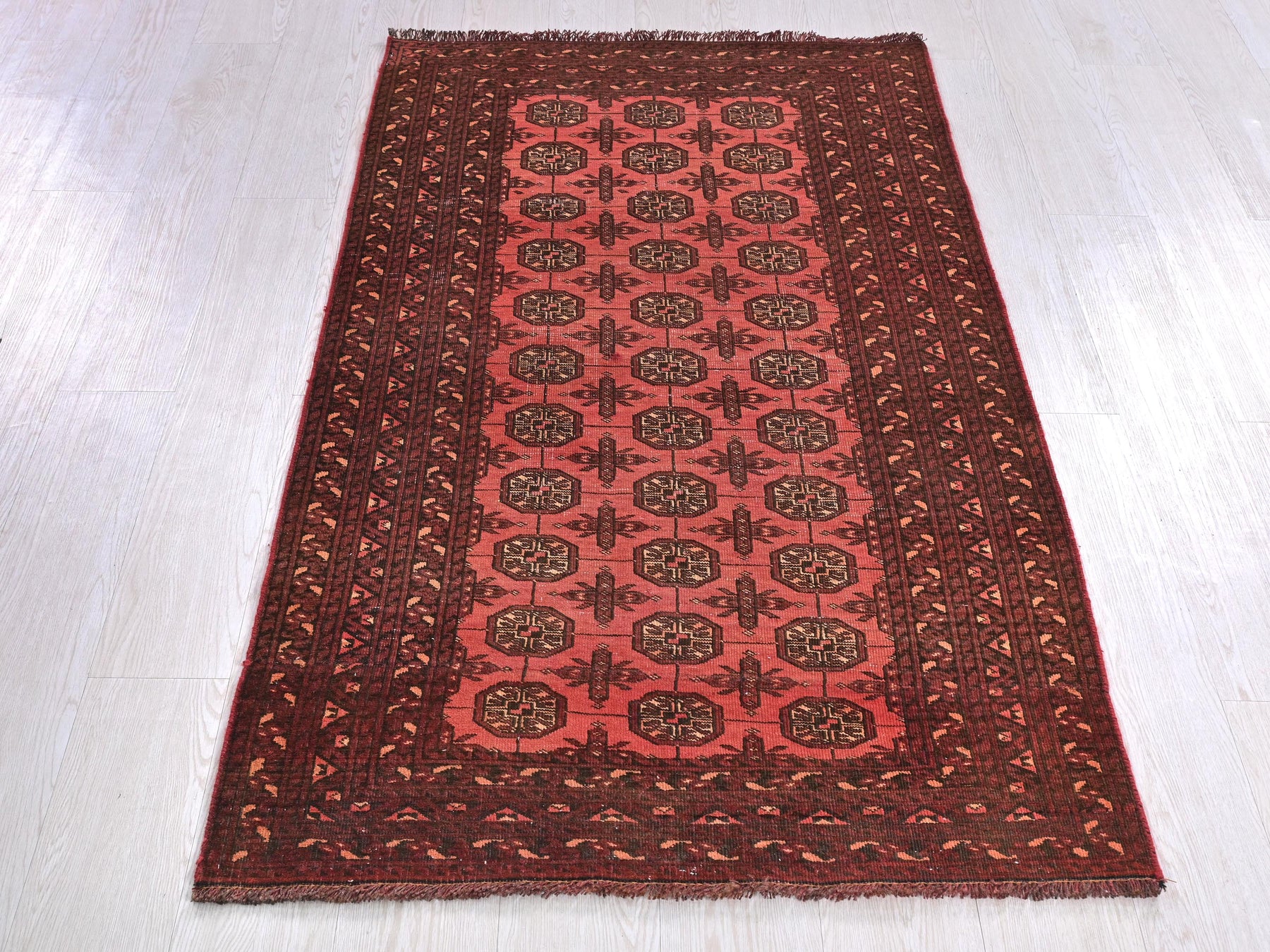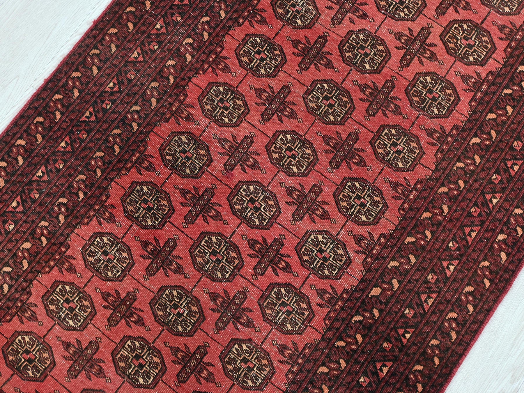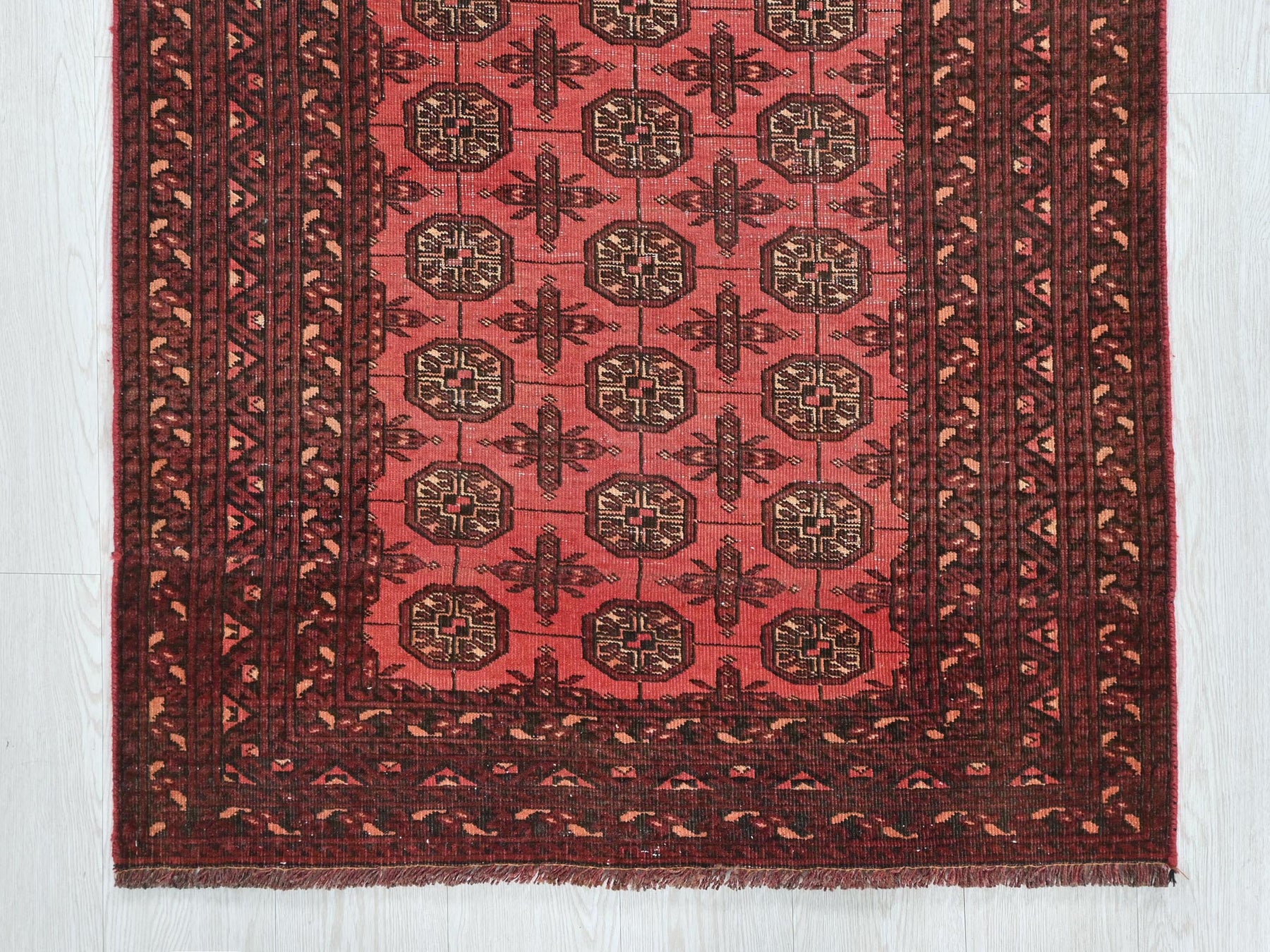 This is a hand-knotted, one-of-a-kind vintage rug. Due to the nature of this piece, there may be slight imperfections in its wear, shape, dimensions, and color. All of our rugs are professionally cleaned and repaired.