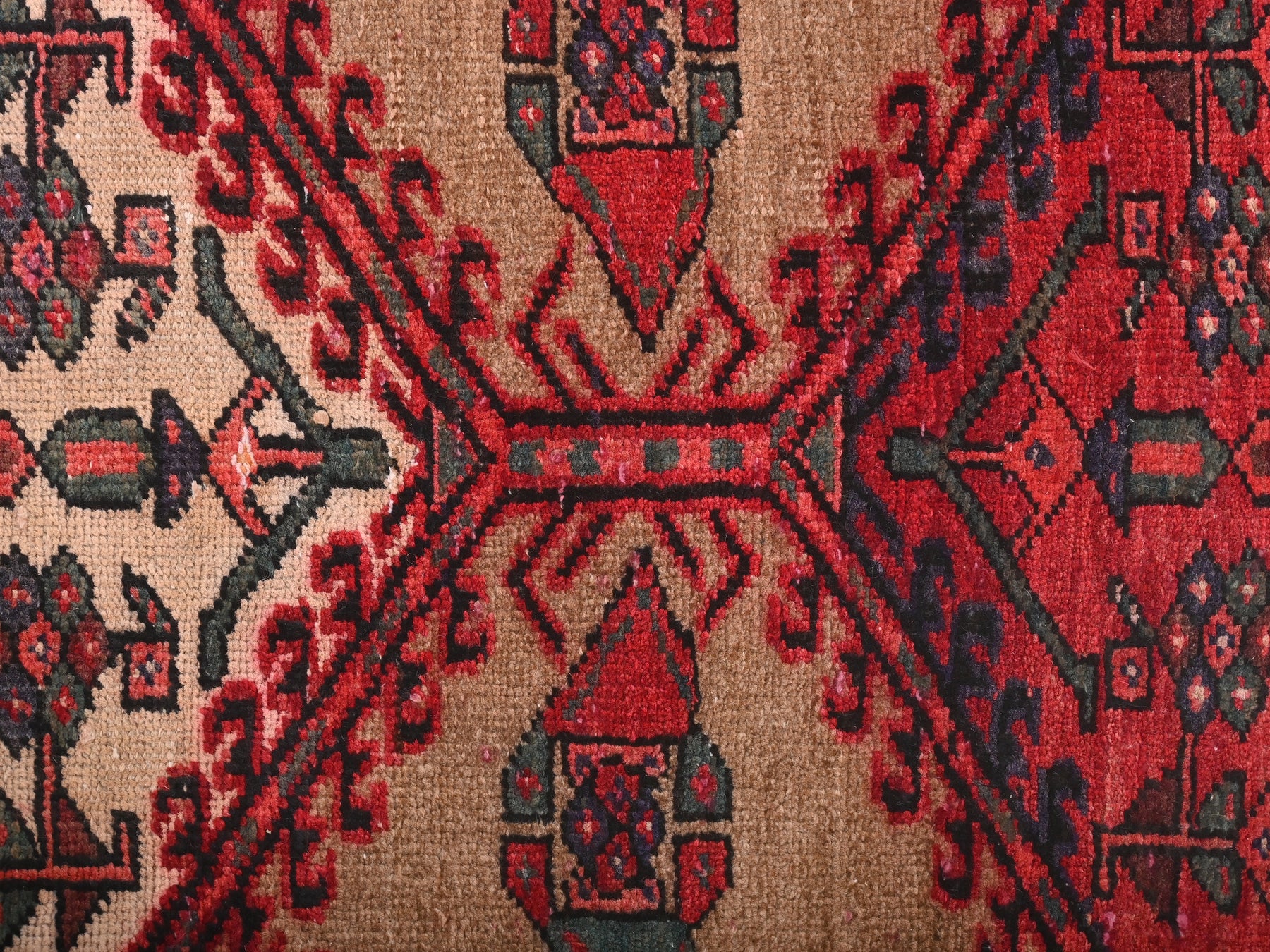 This is a hand-knotted, one-of-a-kind vintage rug. Due to the nature of this piece, there may be slight imperfections in its wear, shape, dimensions, and color. All of our rugs are professionally cleaned and repaired.