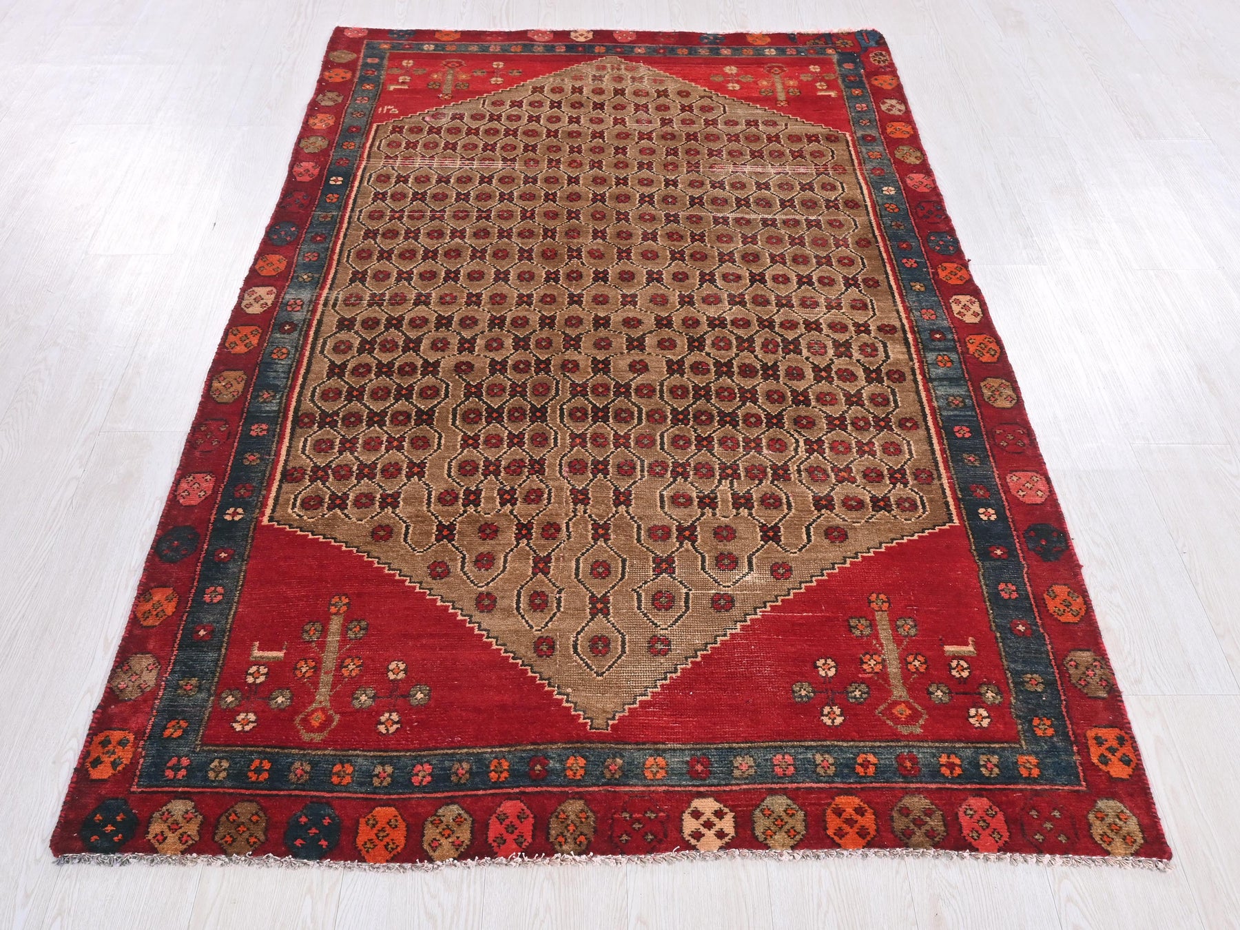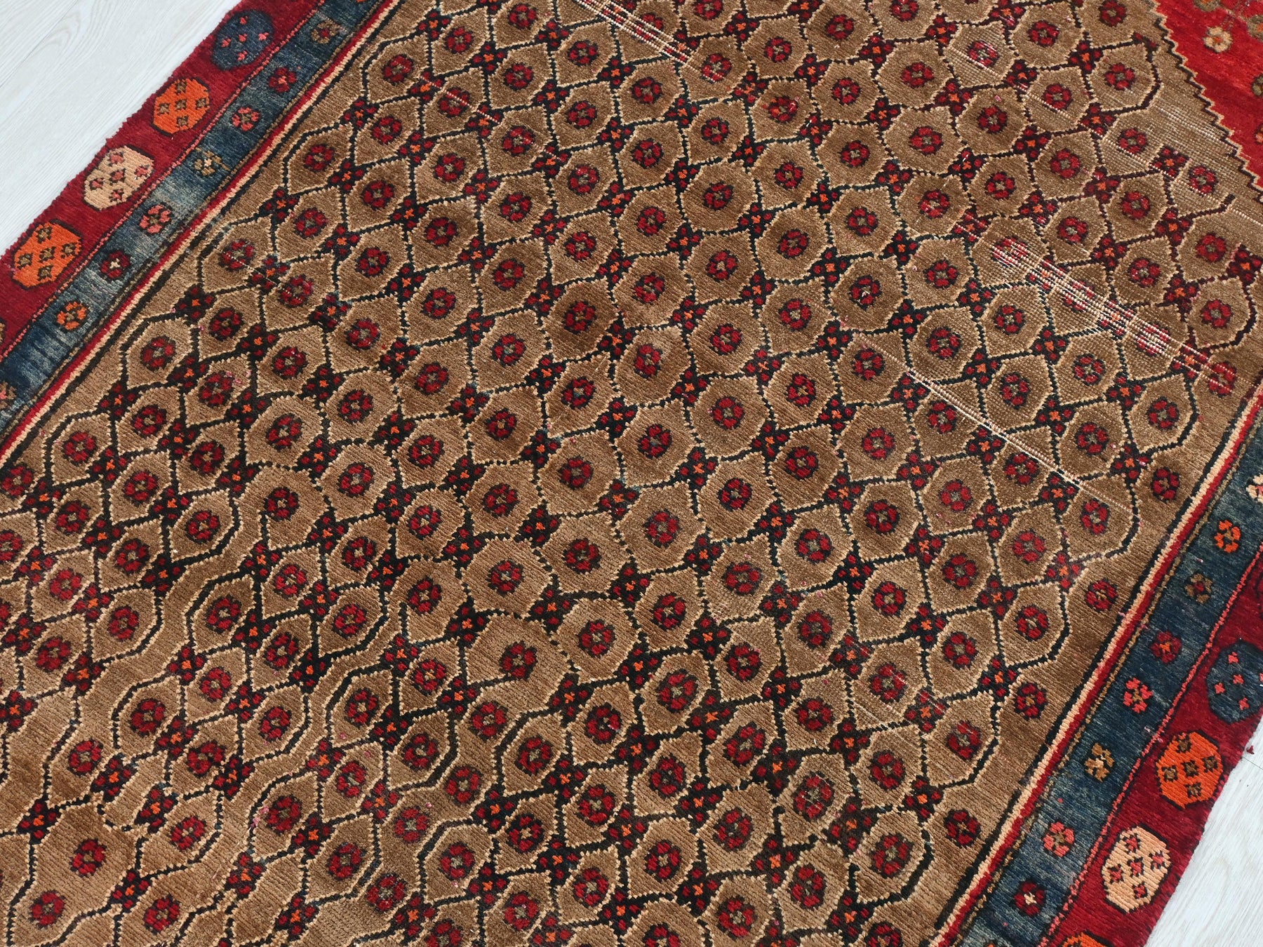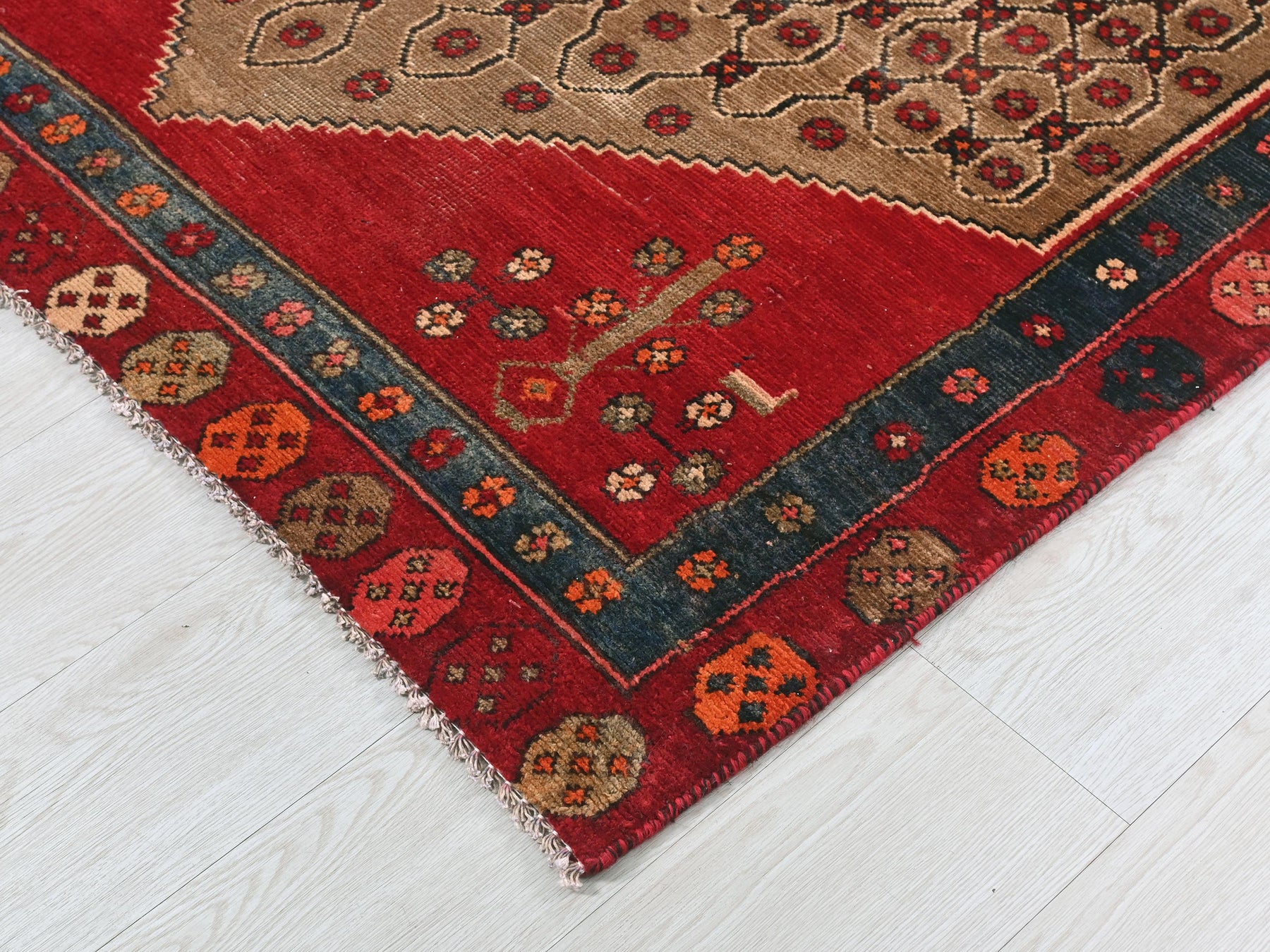 This is a hand-knotted, one-of-a-kind vintage rug. Due to the nature of this piece, there may be slight imperfections in its wear, shape, dimensions, and color. All of our rugs are professionally cleaned and repaired.