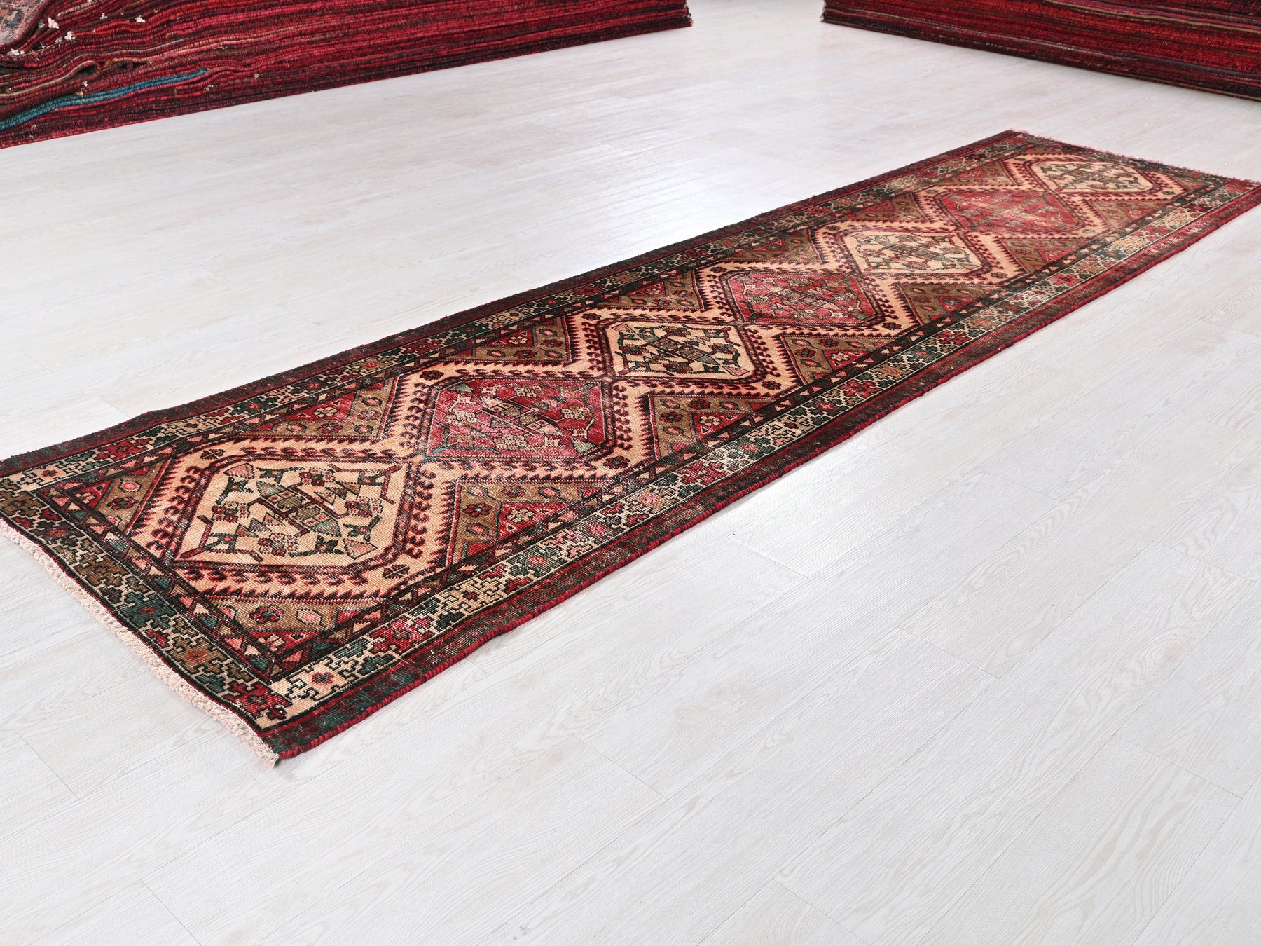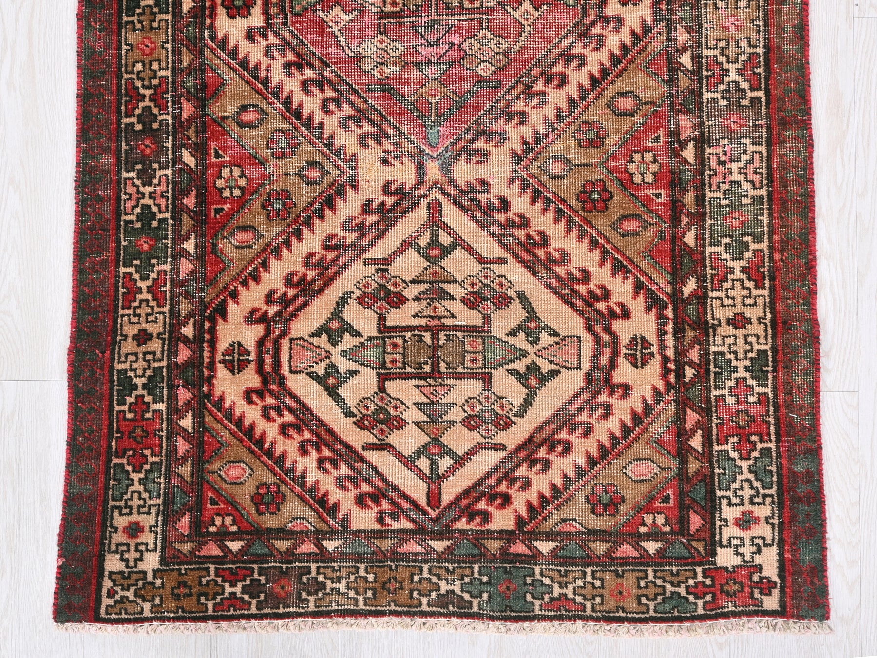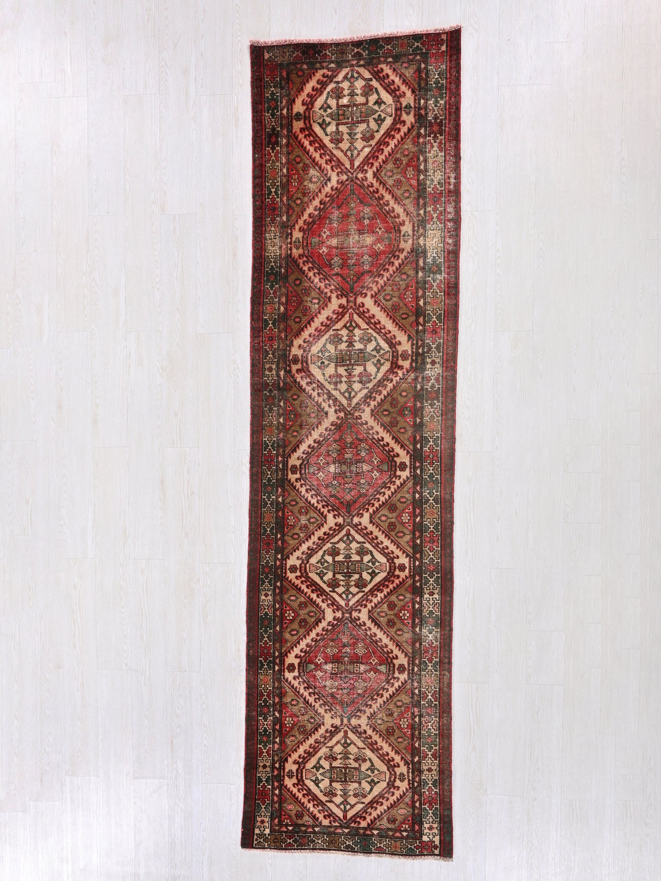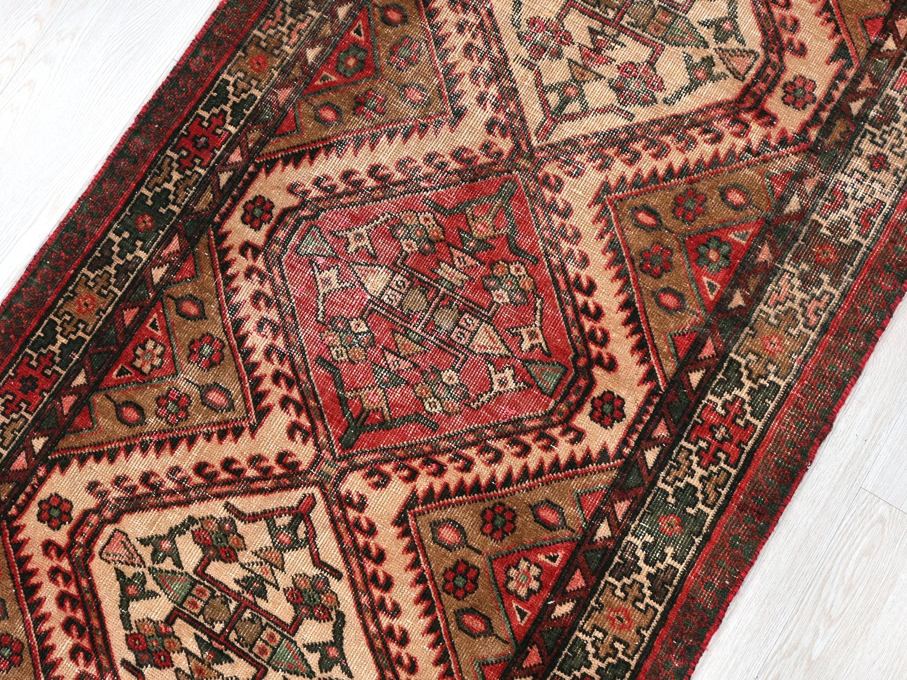 This is a hand-knotted, one-of-a-kind vintage rug. Due to the nature of this piece, there may be slight imperfections in its wear, shape, dimensions, and color. All of our rugs are professionally cleaned and repaired.