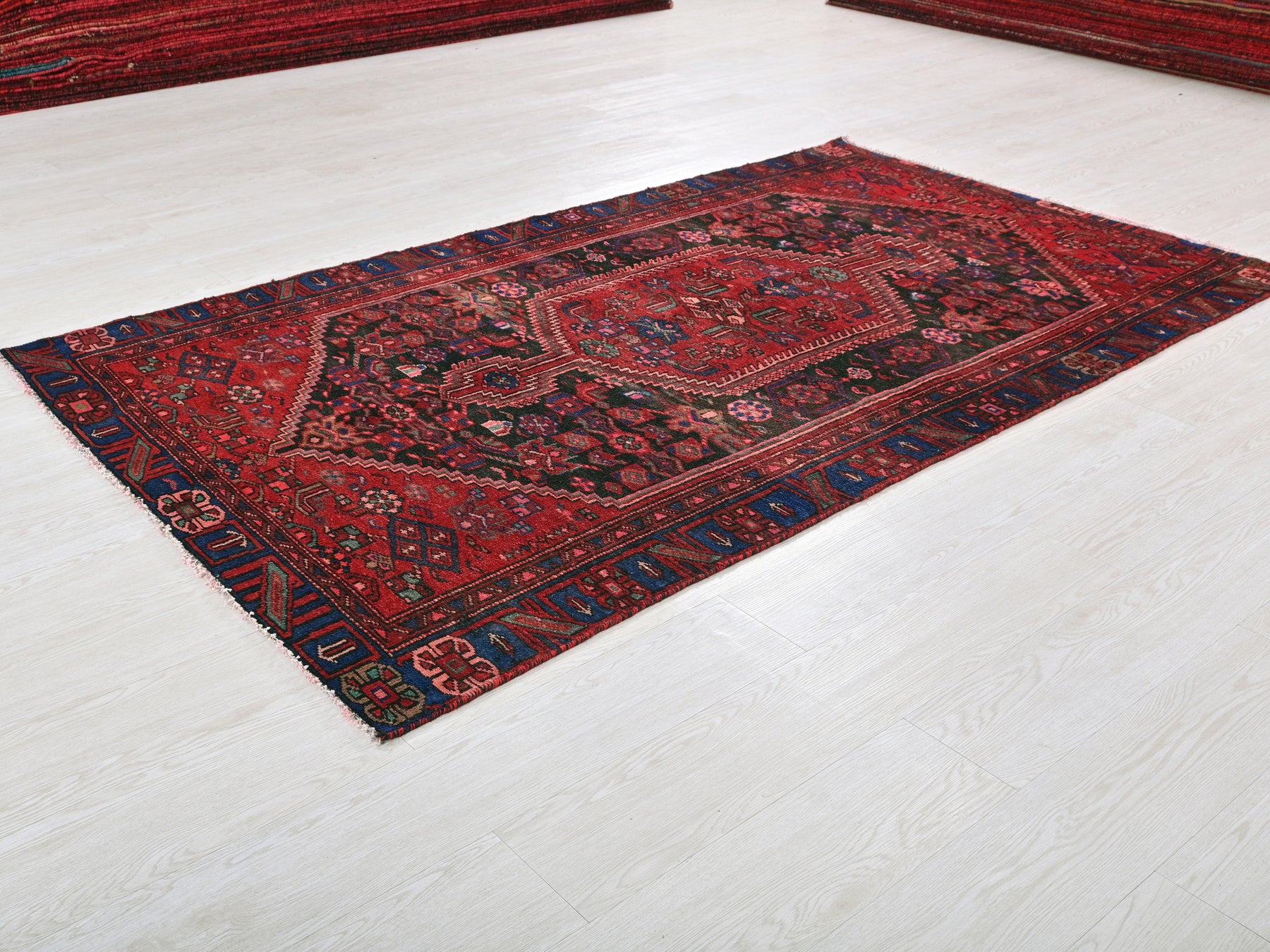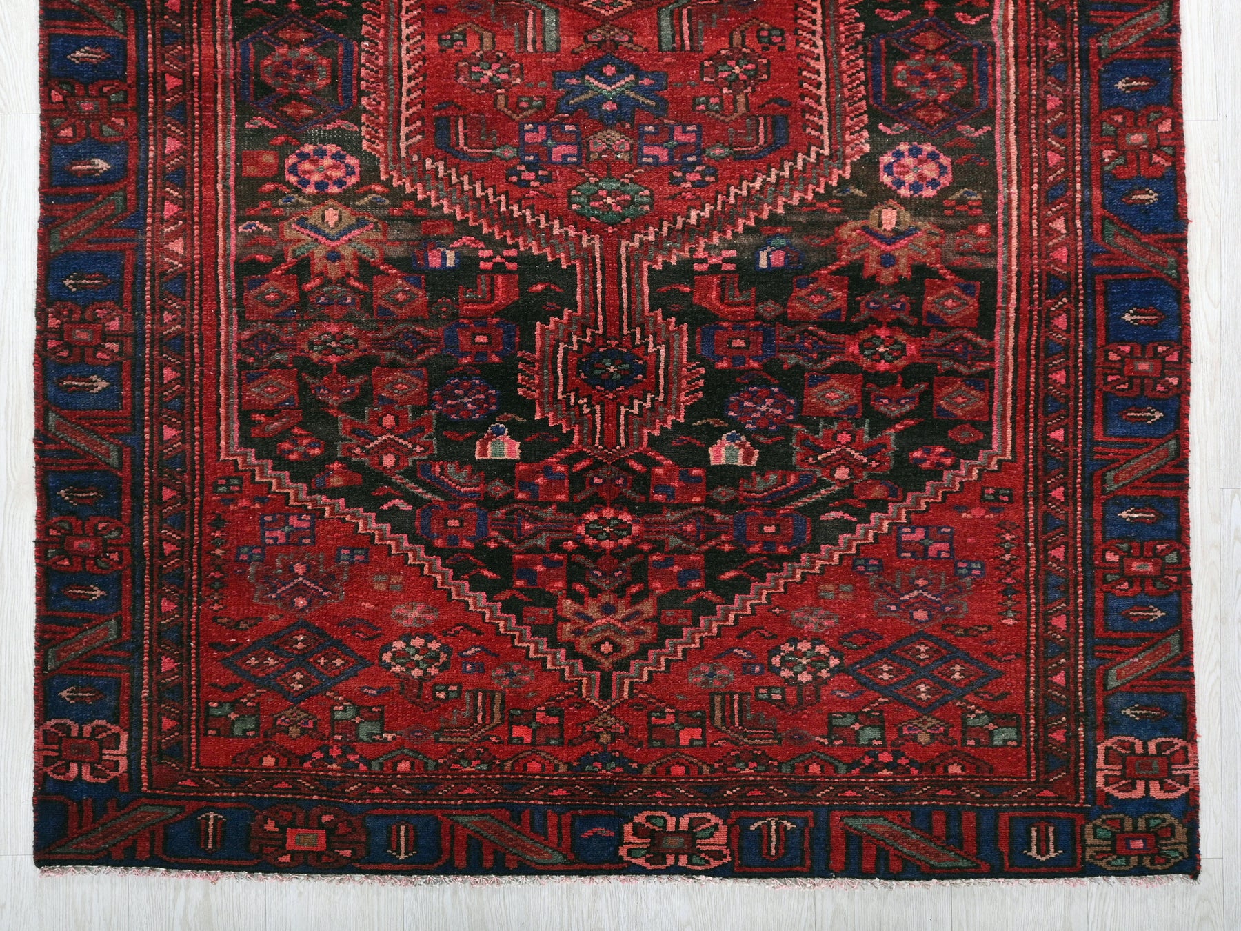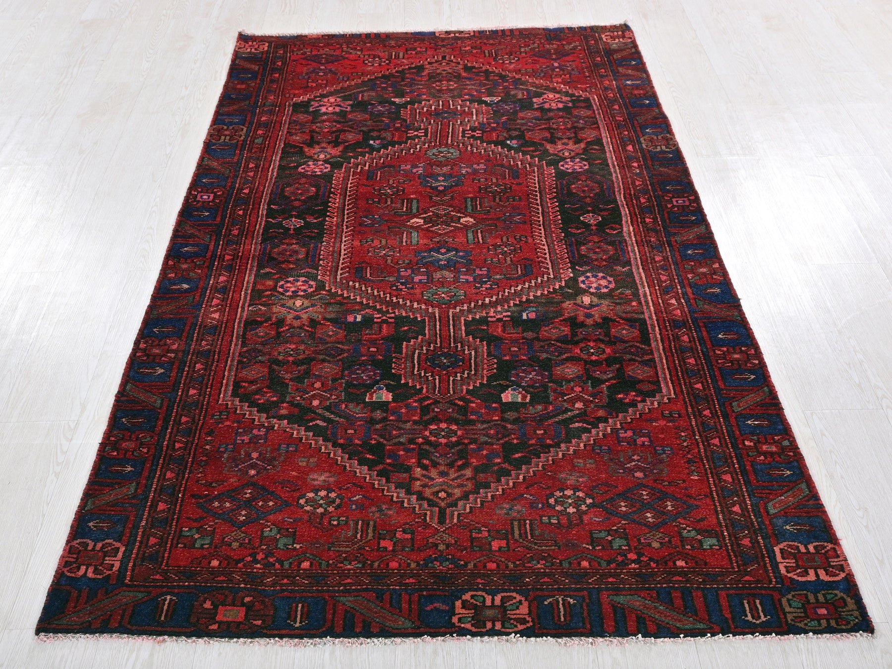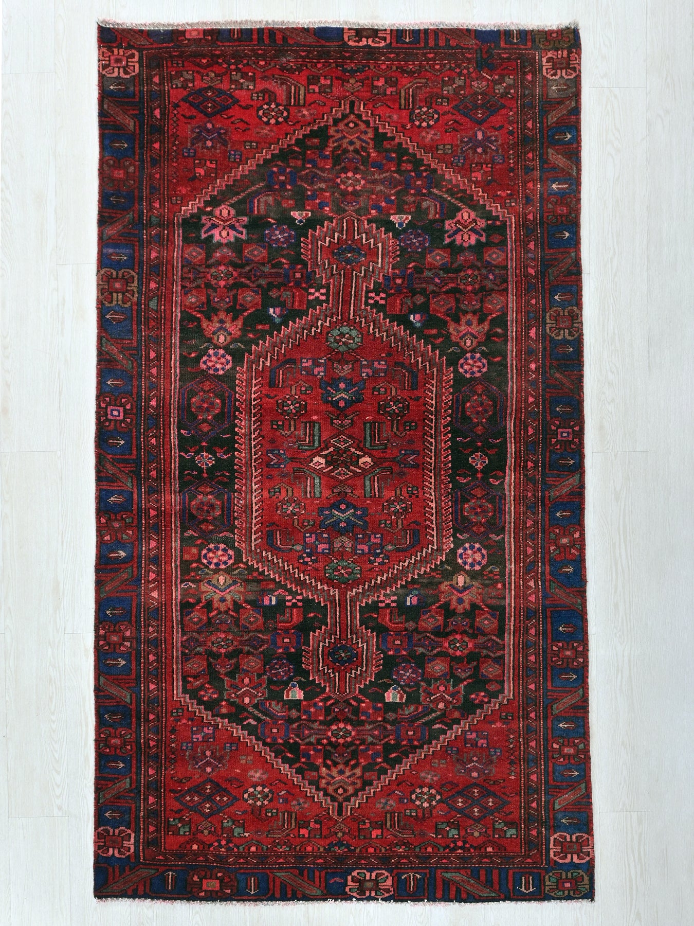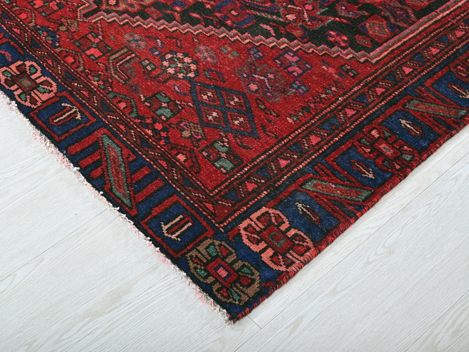 This is a hand-knotted, one-of-a-kind vintage rug. Due to the nature of this piece, there may be slight imperfections in its wear, shape, dimensions, and color. All of our rugs are professionally cleaned and repaired.