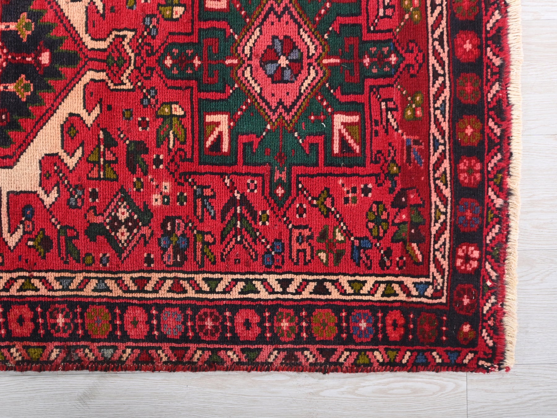This is a hand-knotted, one-of-a-kind vintage rug. Due to the nature of this piece, there may be slight imperfections in its wear, shape, dimensions, and color. All of our rugs are professionally cleaned and repaired.
