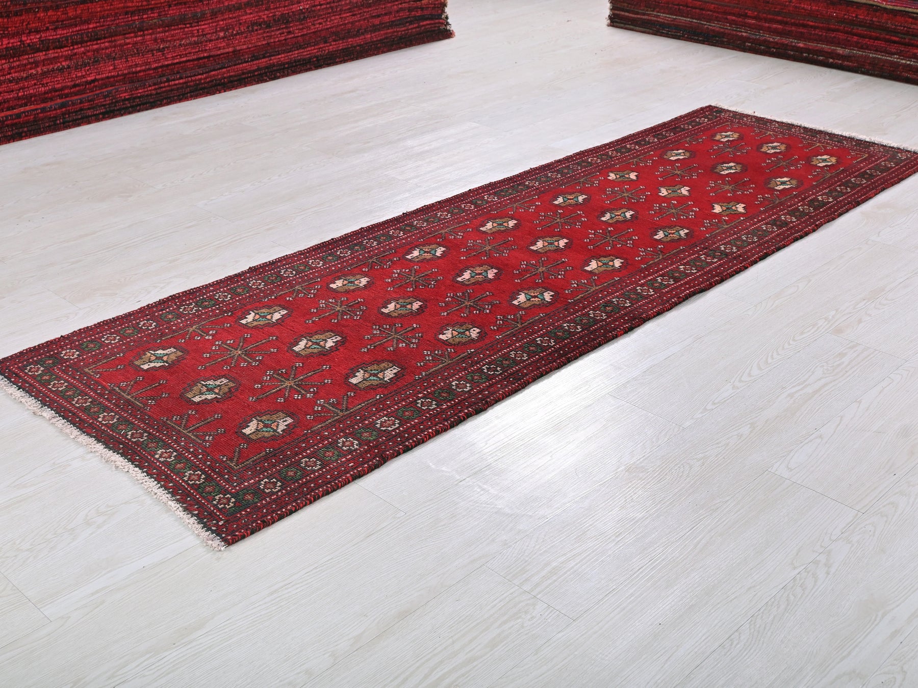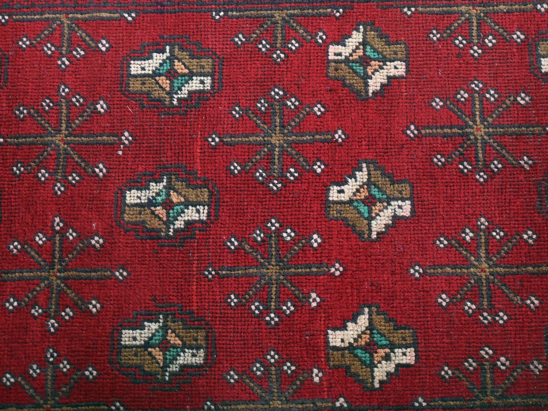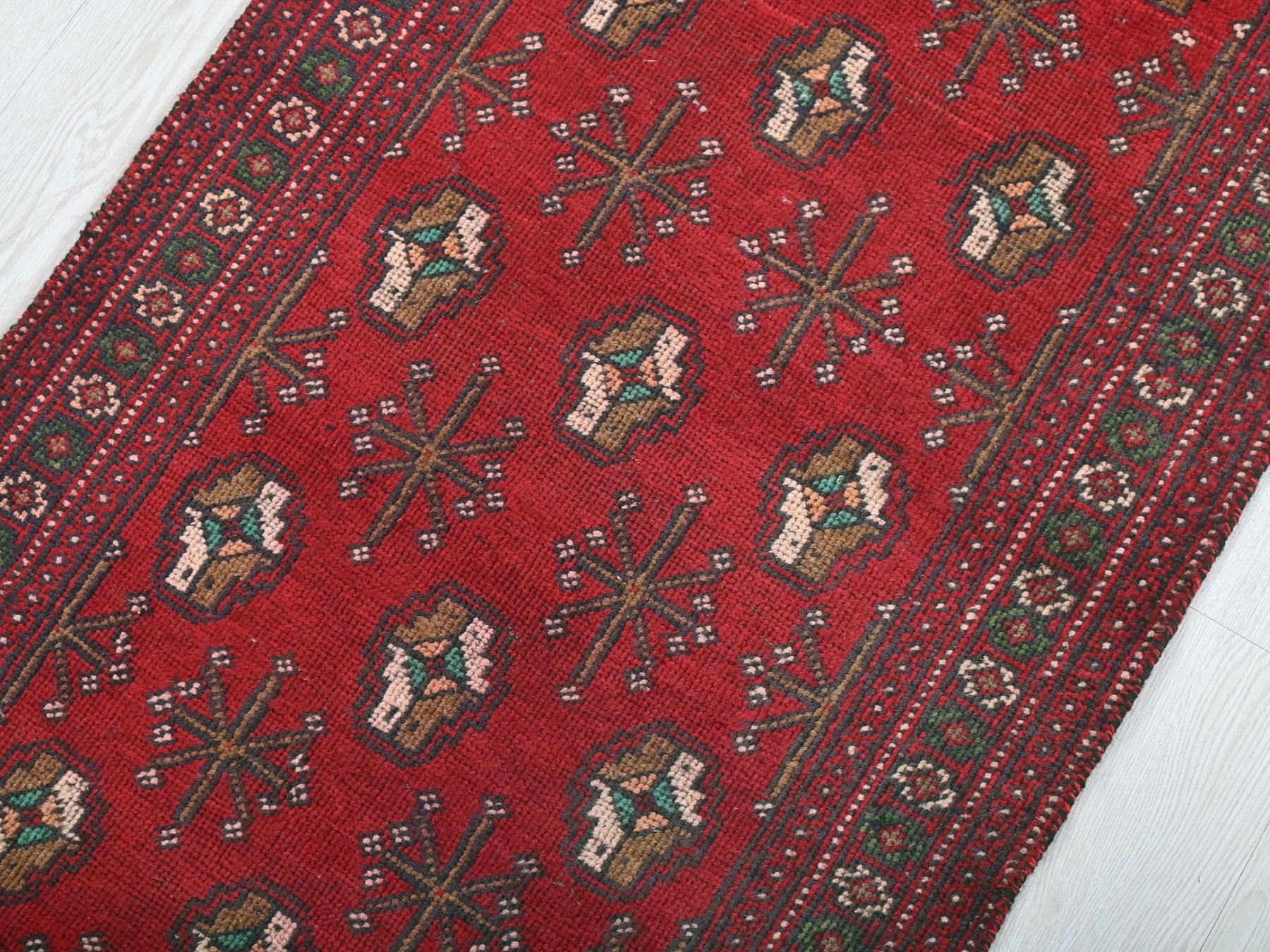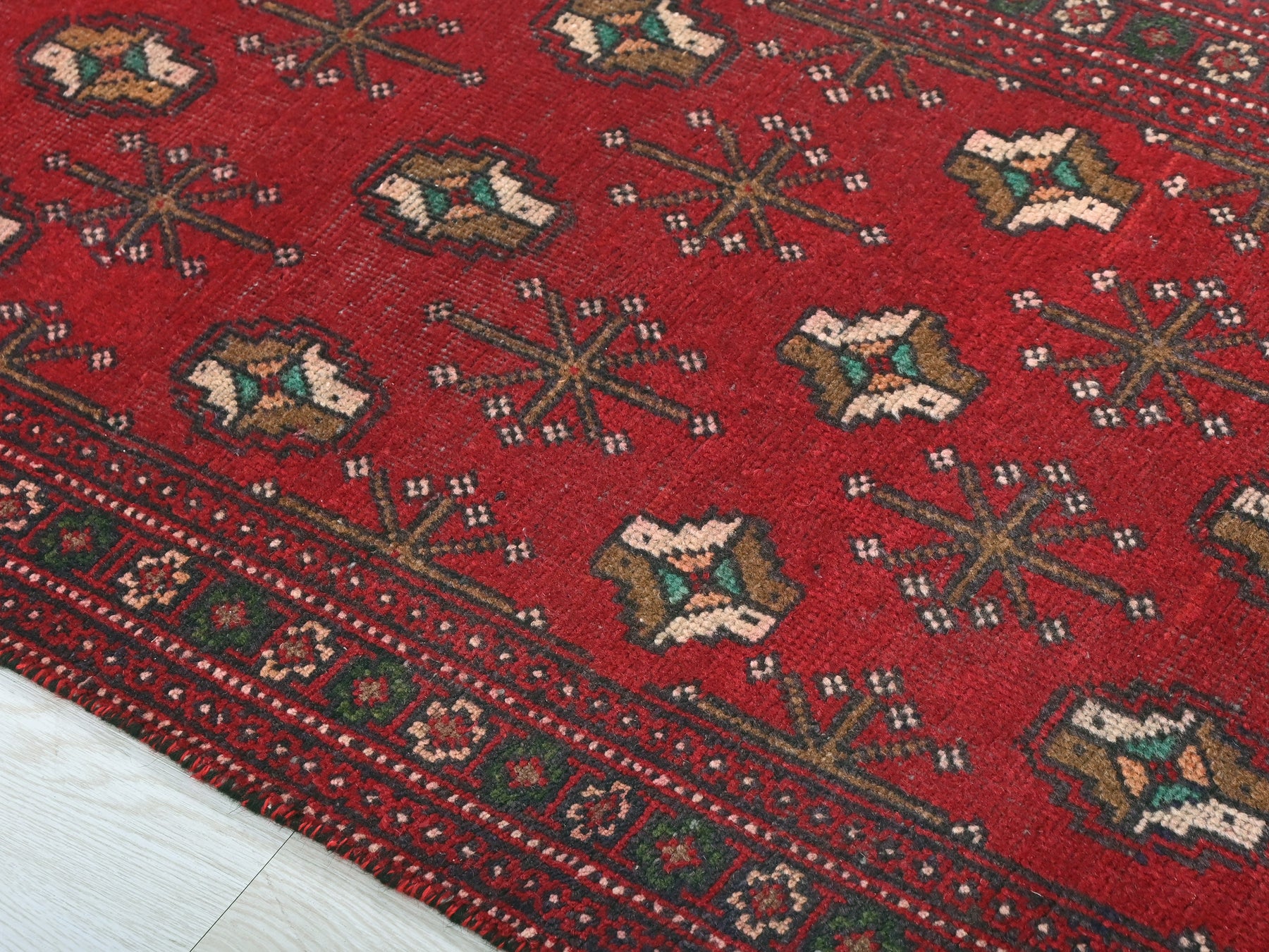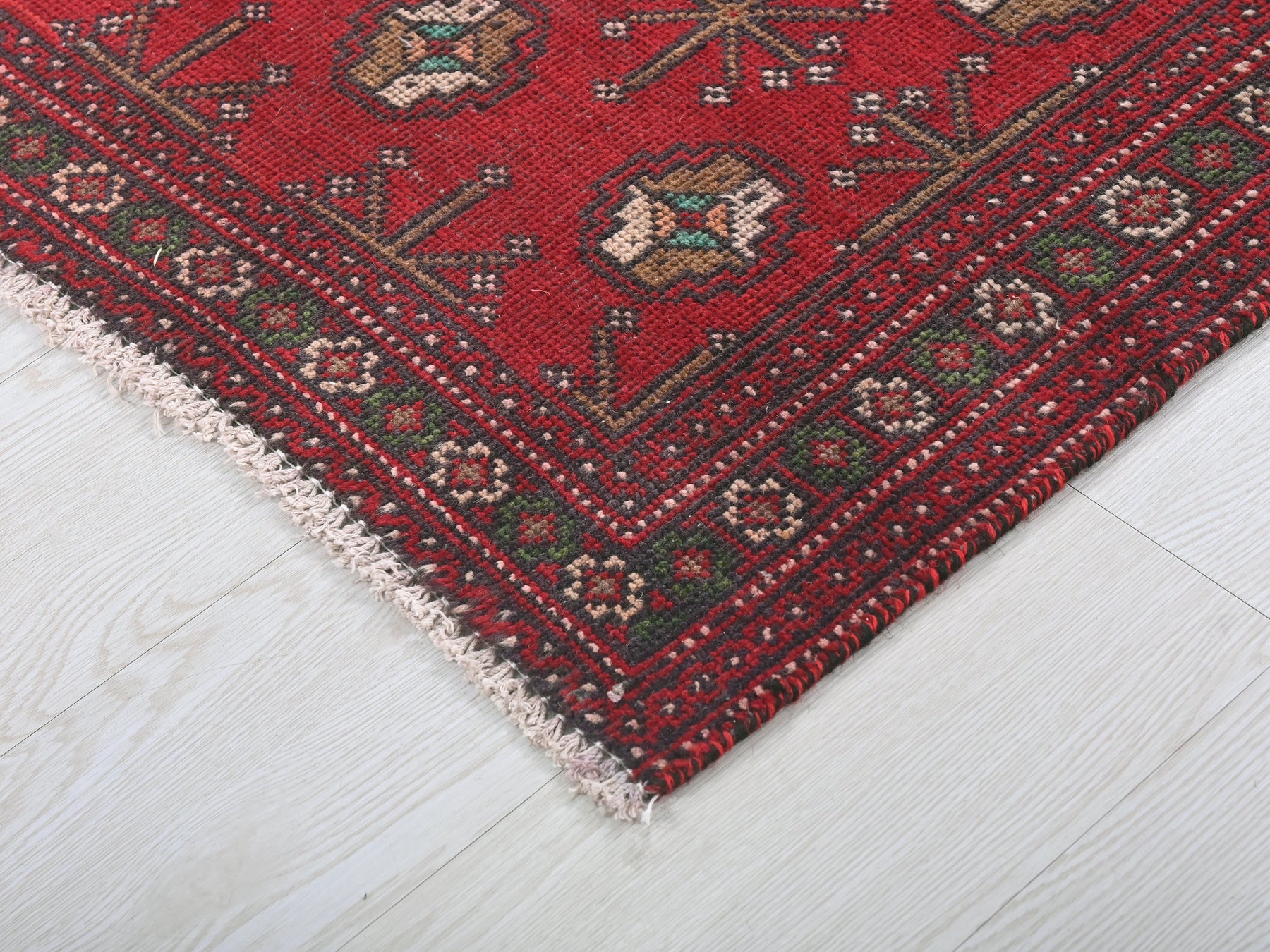 This is a hand-knotted, one-of-a-kind vintage rug. Due to the nature of this piece, there may be slight imperfections in its wear, shape, dimensions, and color. All of our rugs are professionally cleaned and repaired.
