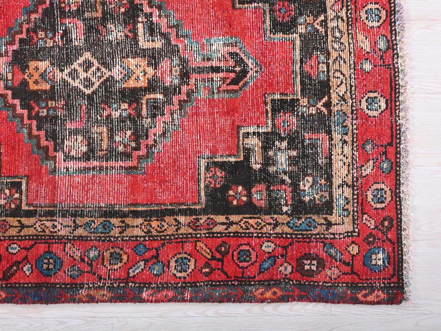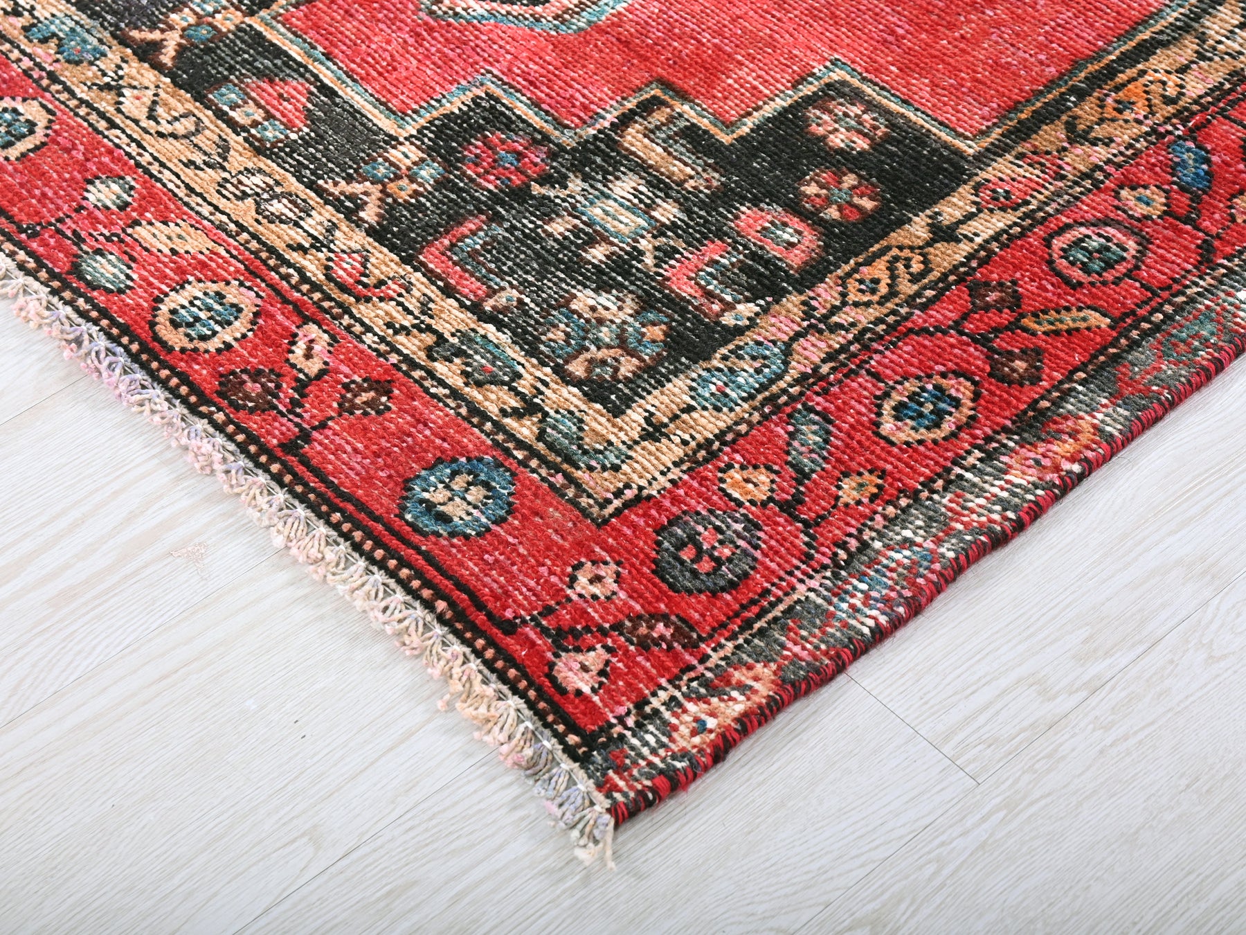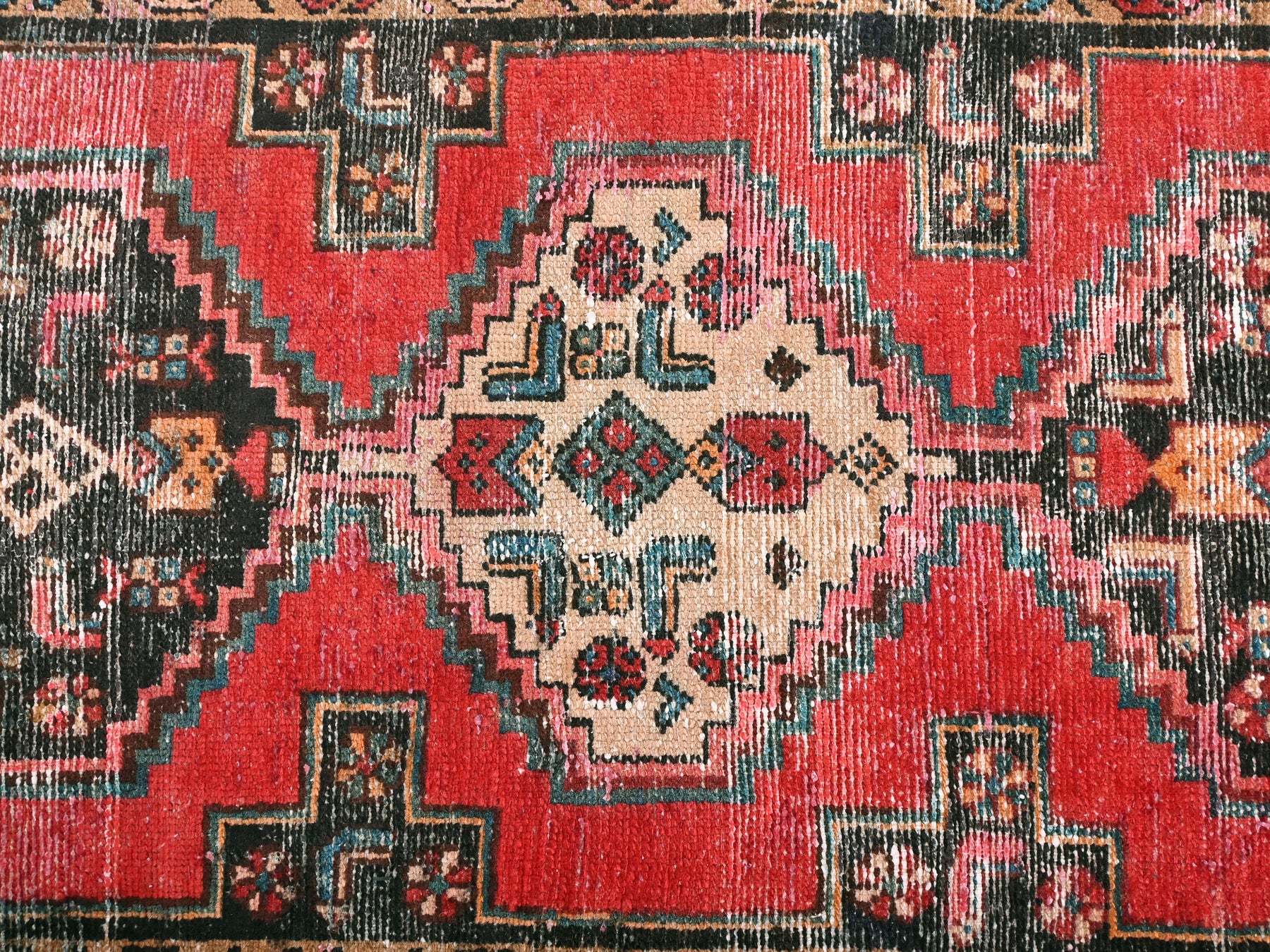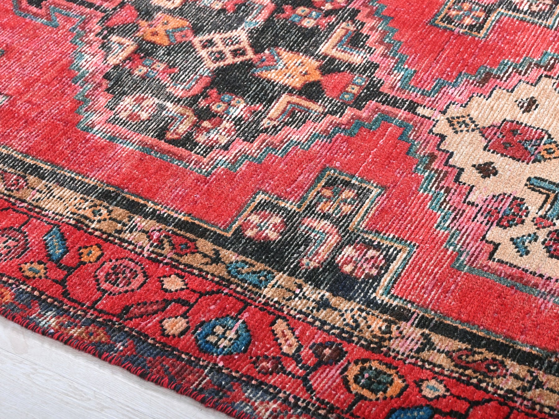 This is a hand-knotted, one-of-a-kind vintage rug. Due to the nature of this piece, there may be slight imperfections in its wear, shape, dimensions, and color. All of our rugs are professionally cleaned and repaired.