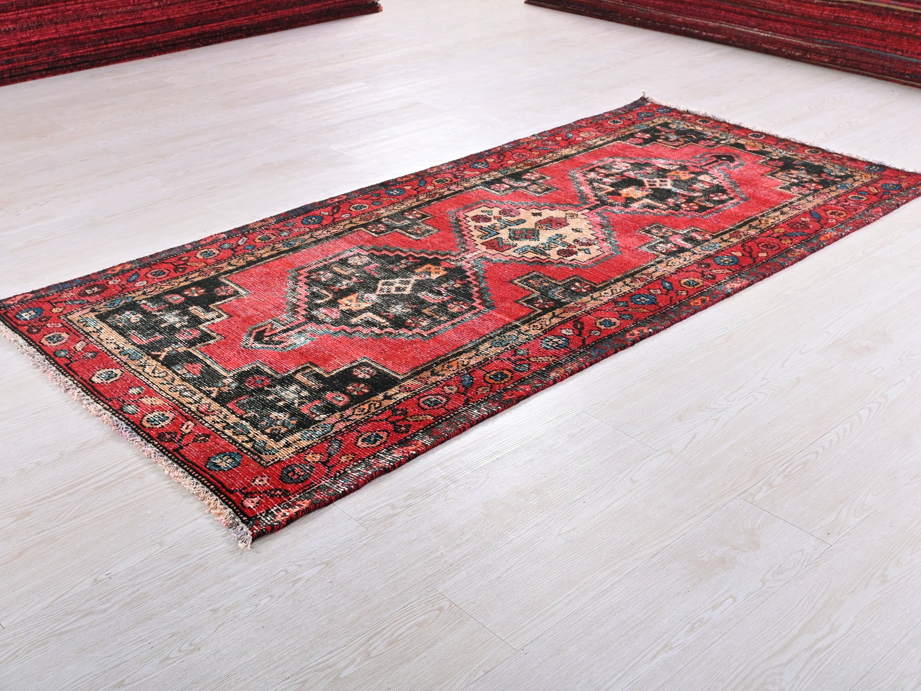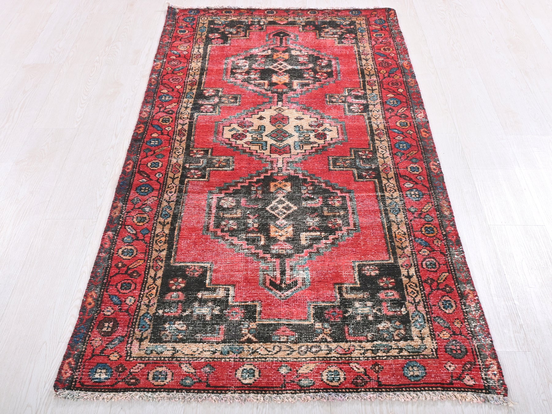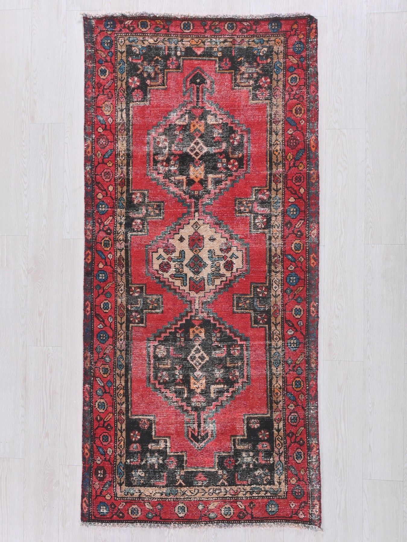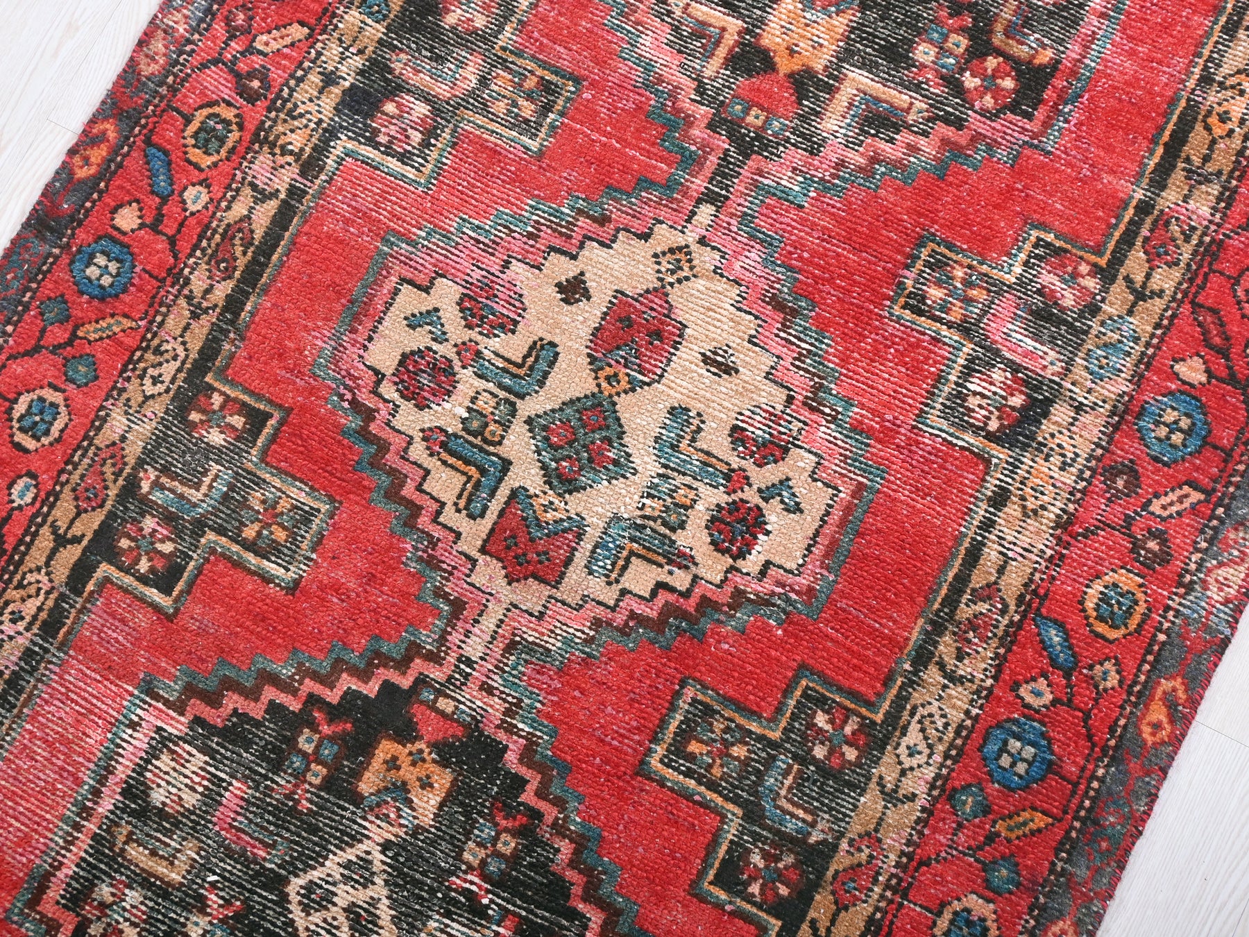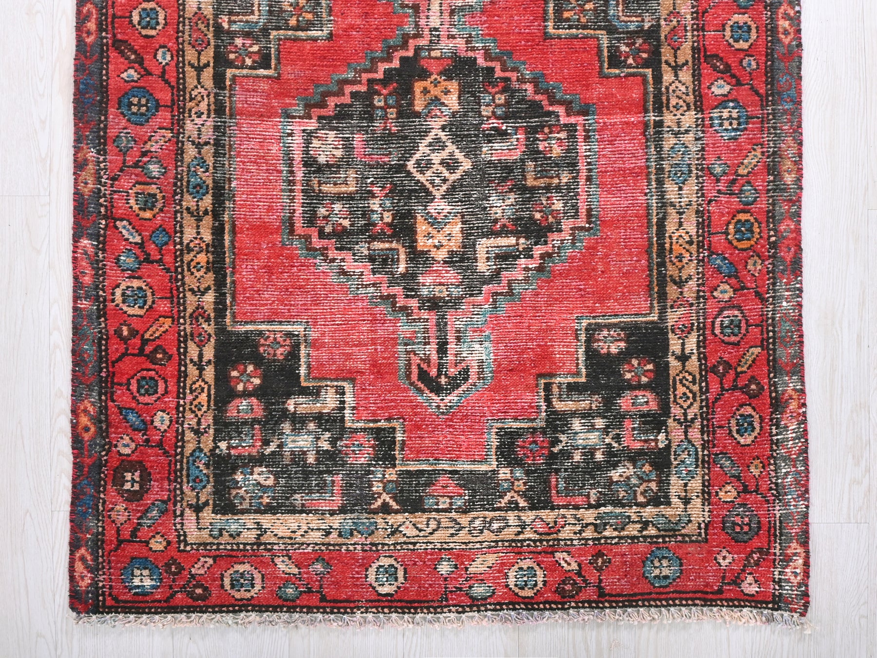 This is a hand-knotted, one-of-a-kind vintage rug. Due to the nature of this piece, there may be slight imperfections in its wear, shape, dimensions, and color. All of our rugs are professionally cleaned and repaired.