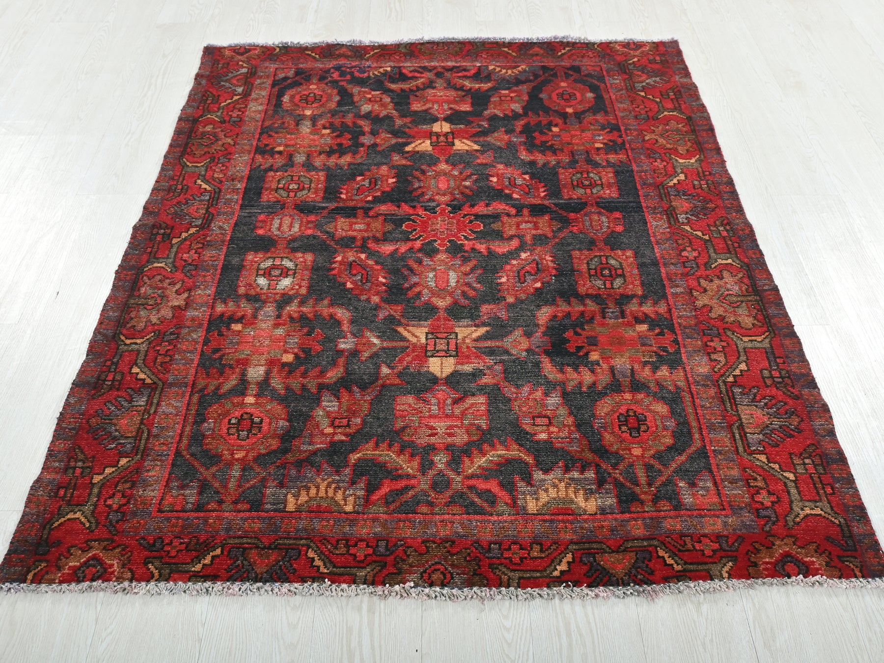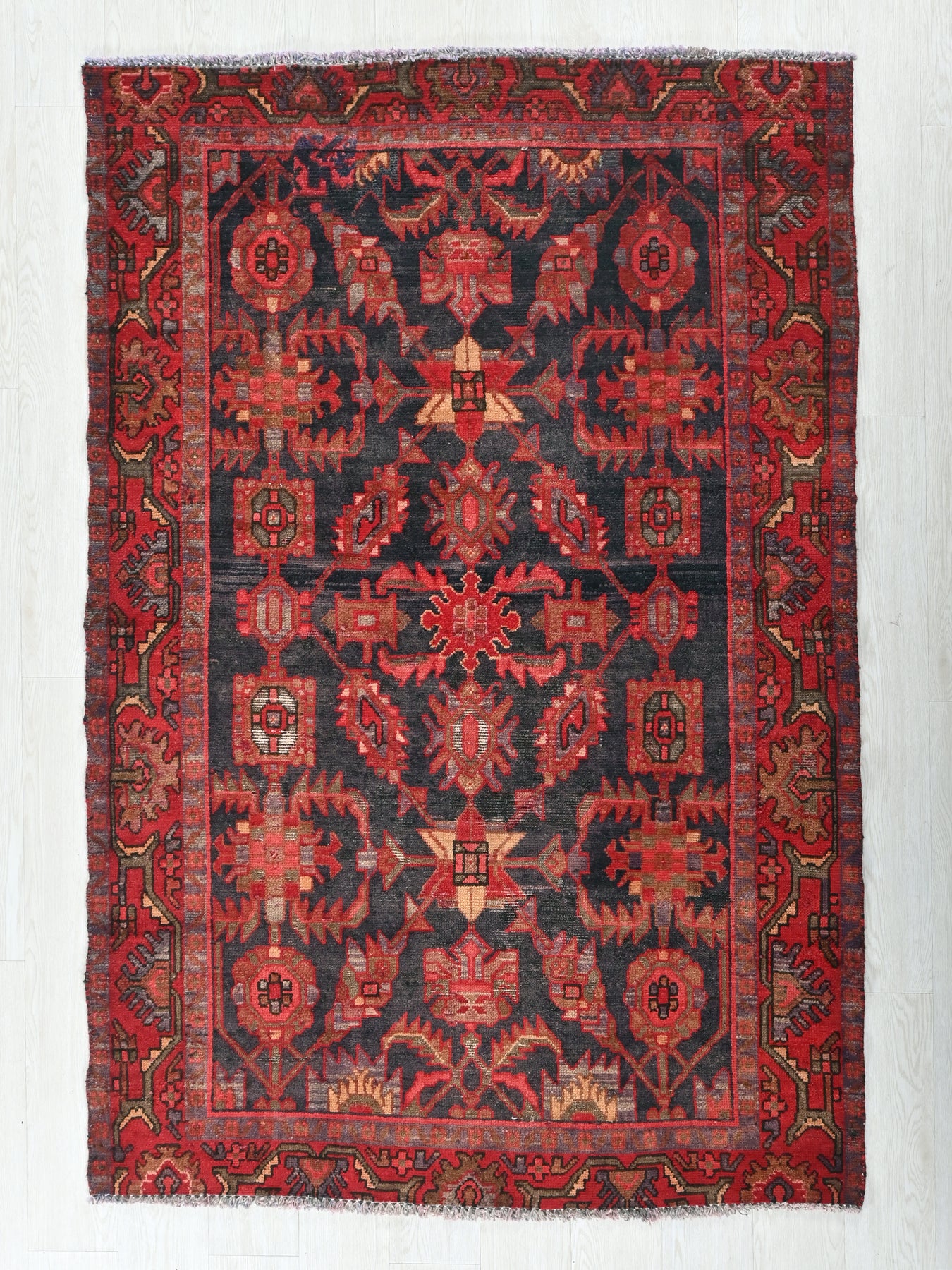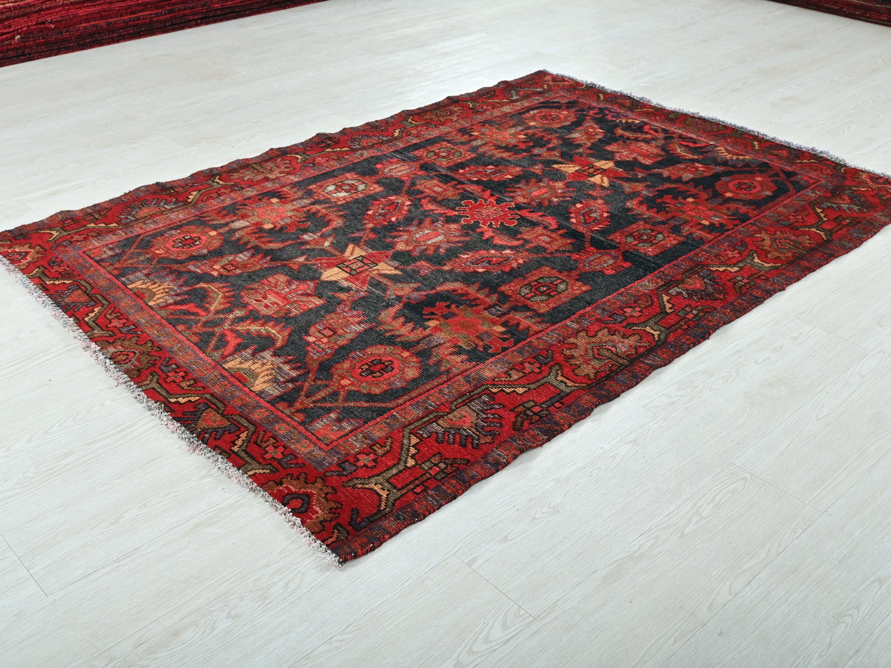 This is a hand-knotted, one-of-a-kind vintage rug. Due to the nature of this piece, there may be slight imperfections in its wear, shape, dimensions, and color. All of our rugs are professionally cleaned and repaired.