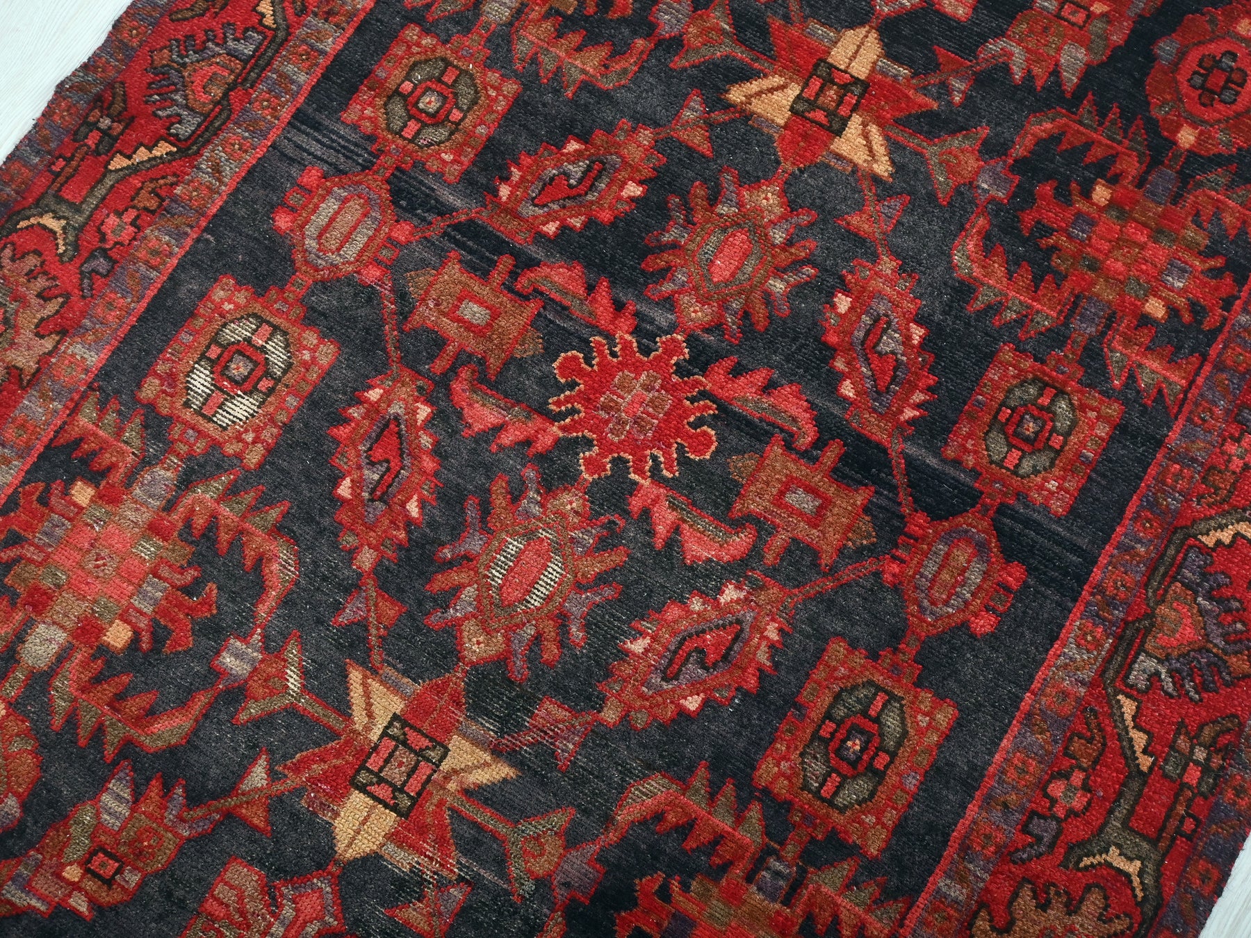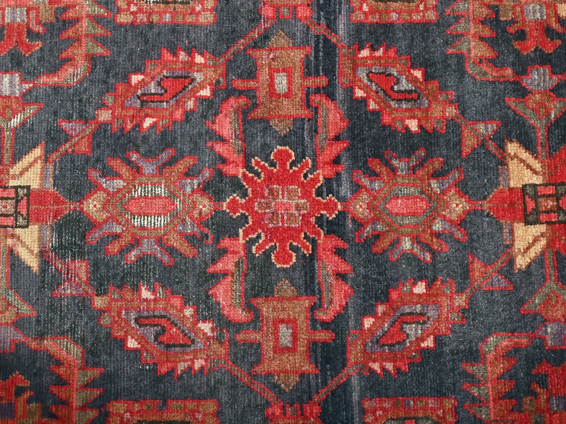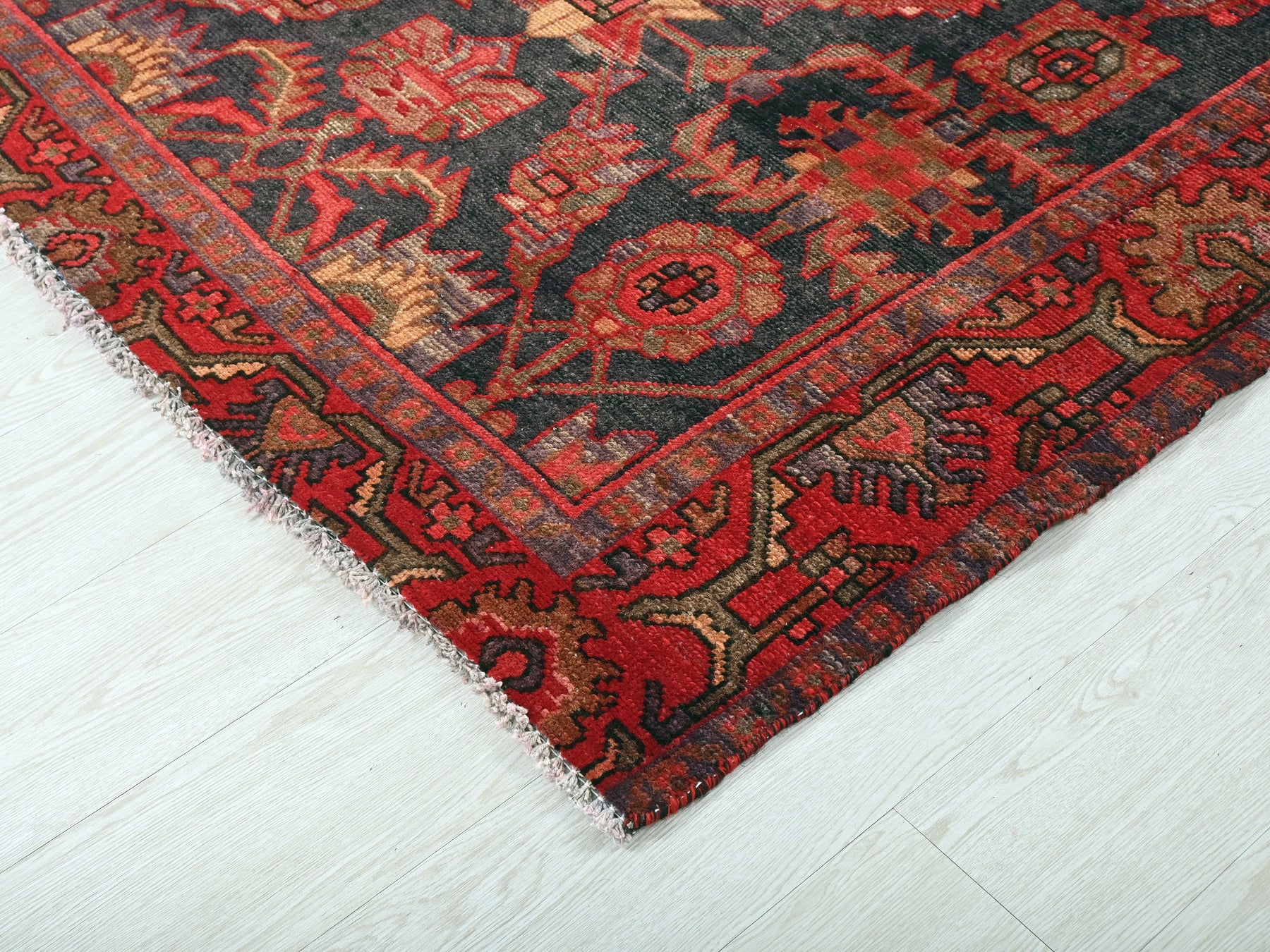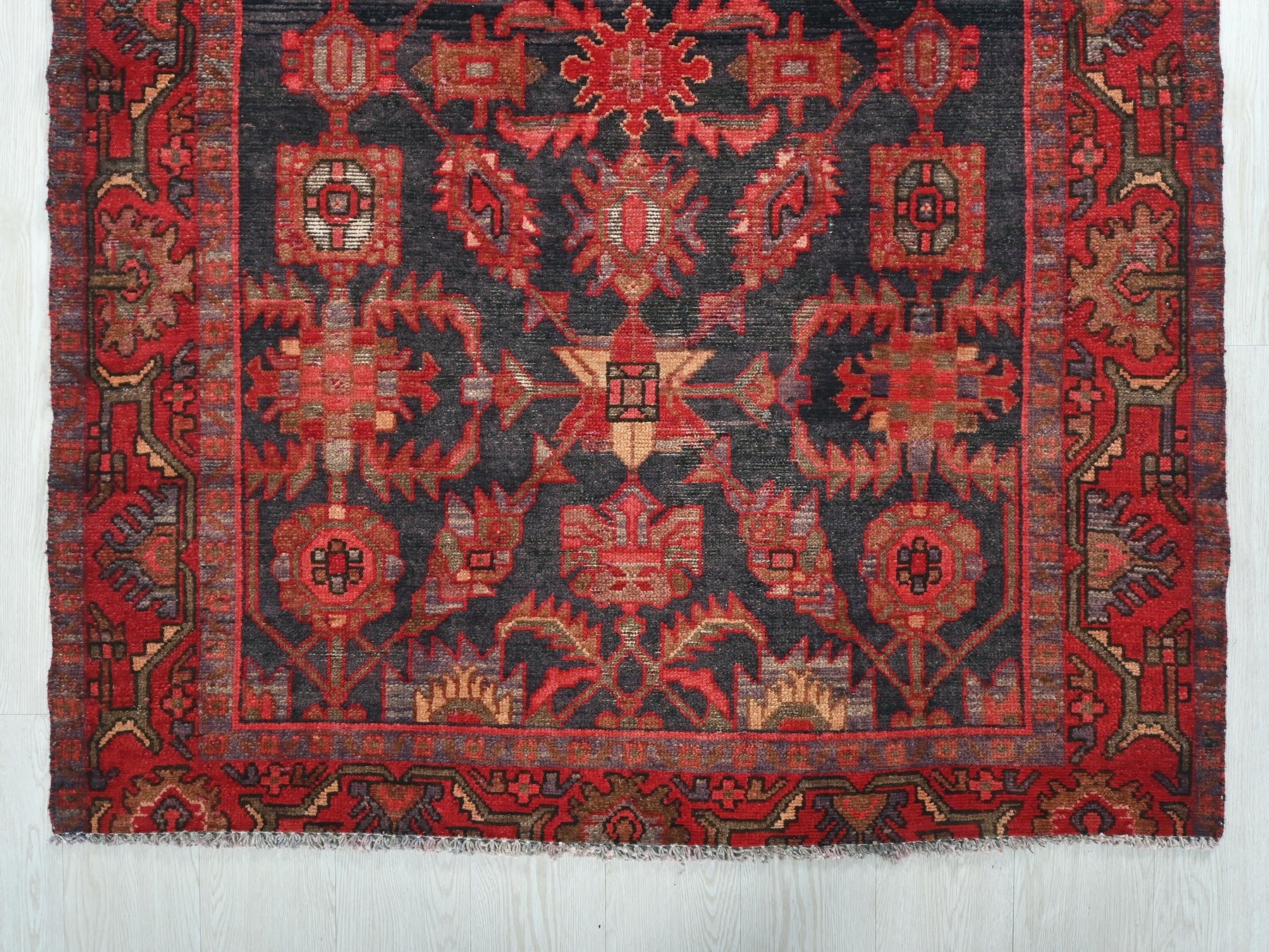 This is a hand-knotted, one-of-a-kind vintage rug. Due to the nature of this piece, there may be slight imperfections in its wear, shape, dimensions, and color. All of our rugs are professionally cleaned and repaired.