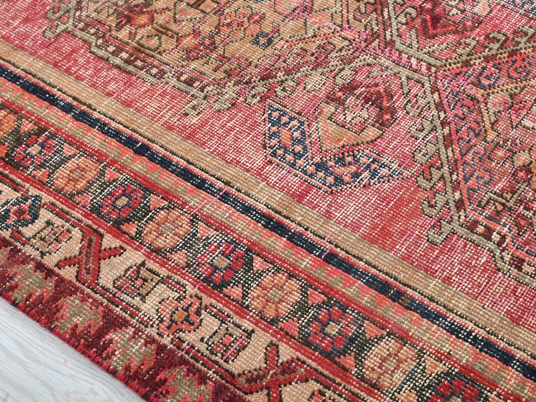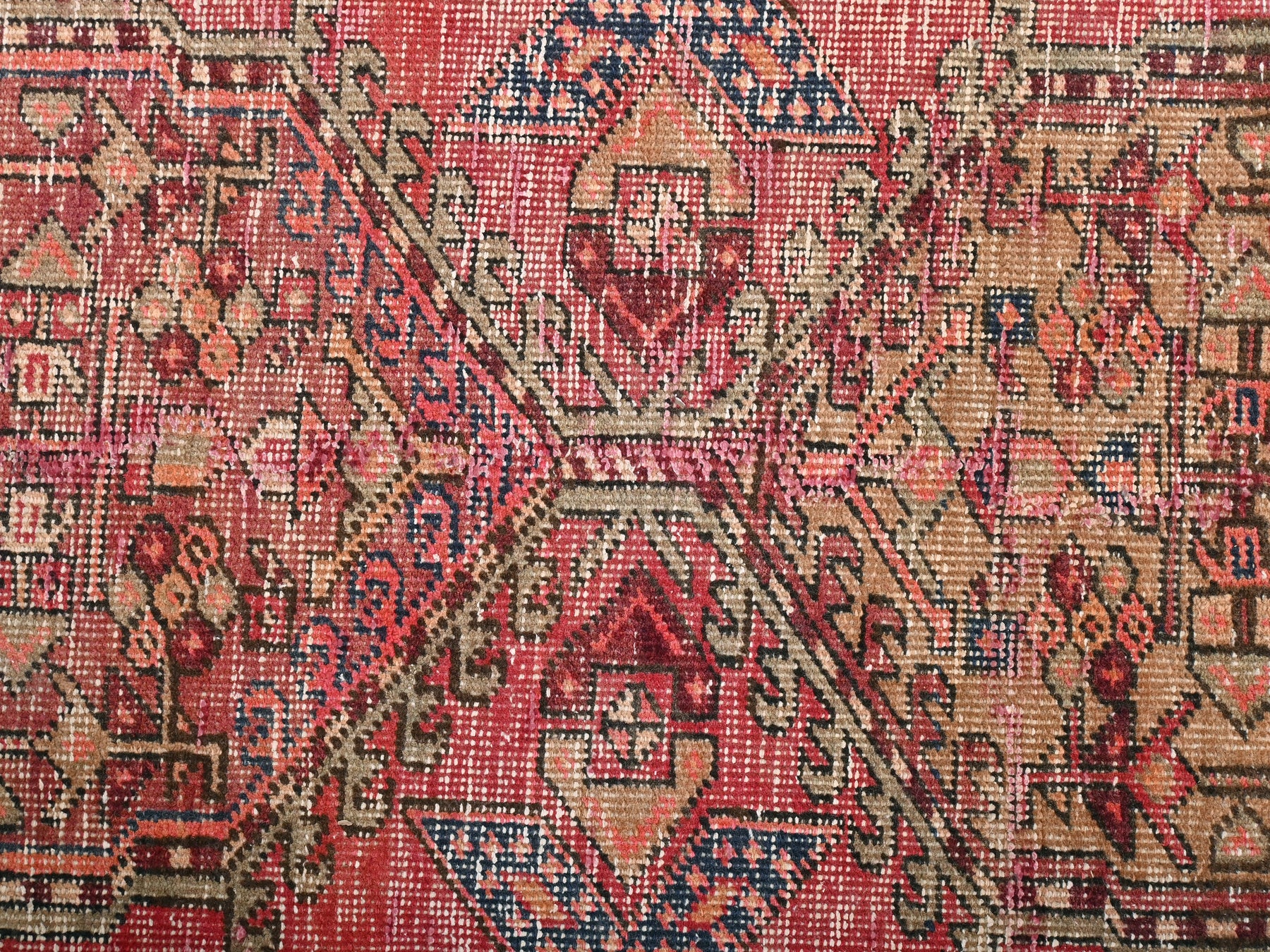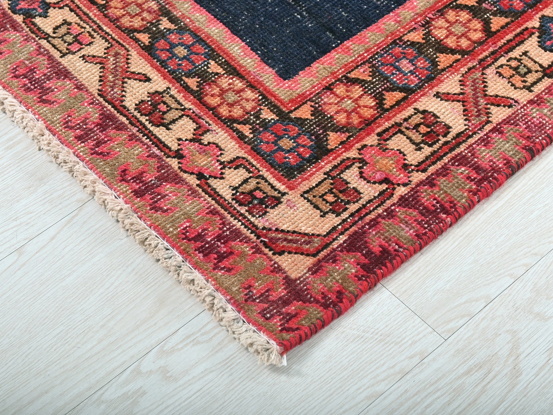 This is a hand-knotted, one-of-a-kind vintage rug. Due to the nature of this piece, there may be slight imperfections in its wear, shape, dimensions, and color. All of our rugs are professionally cleaned and repaired.