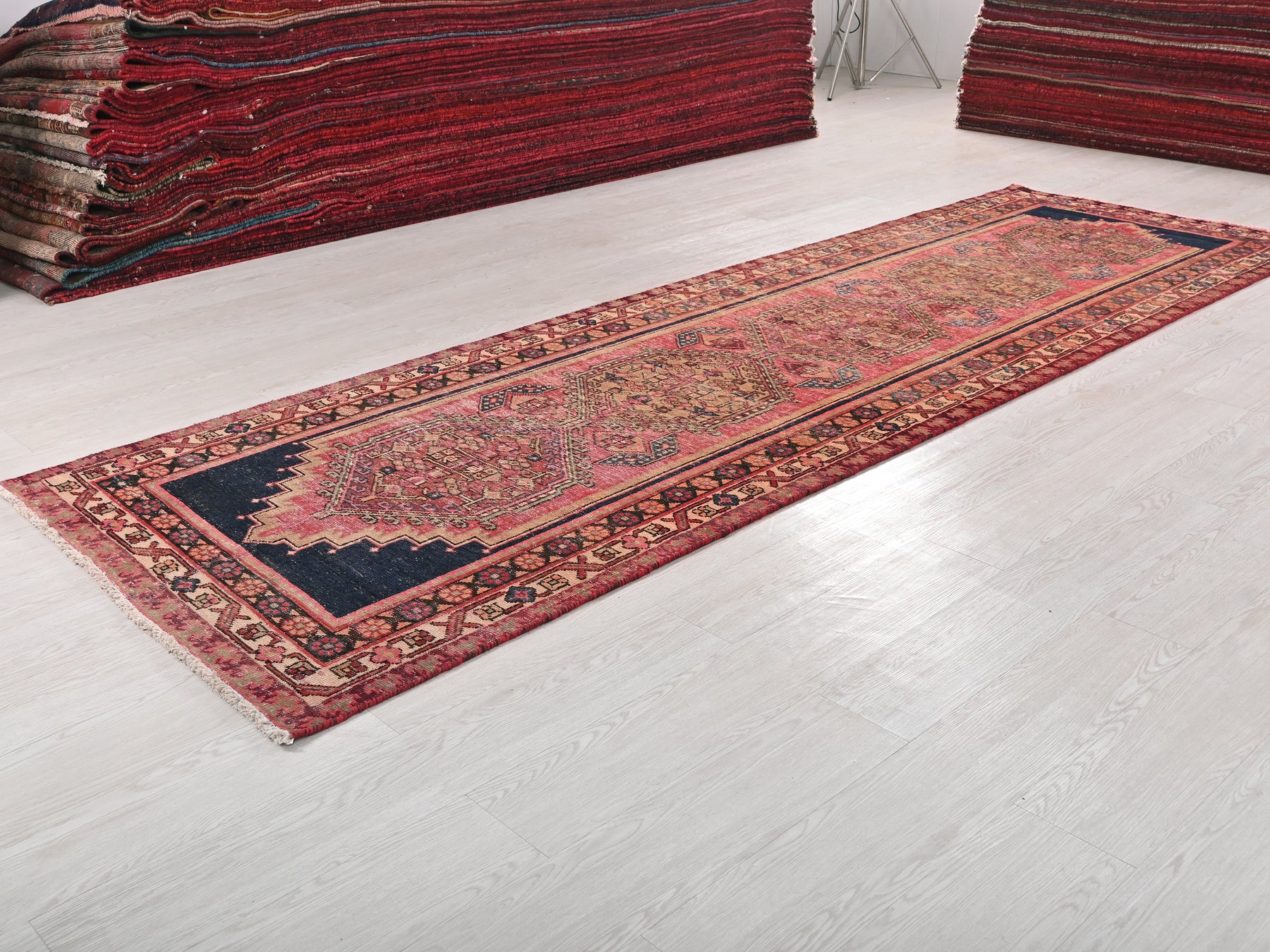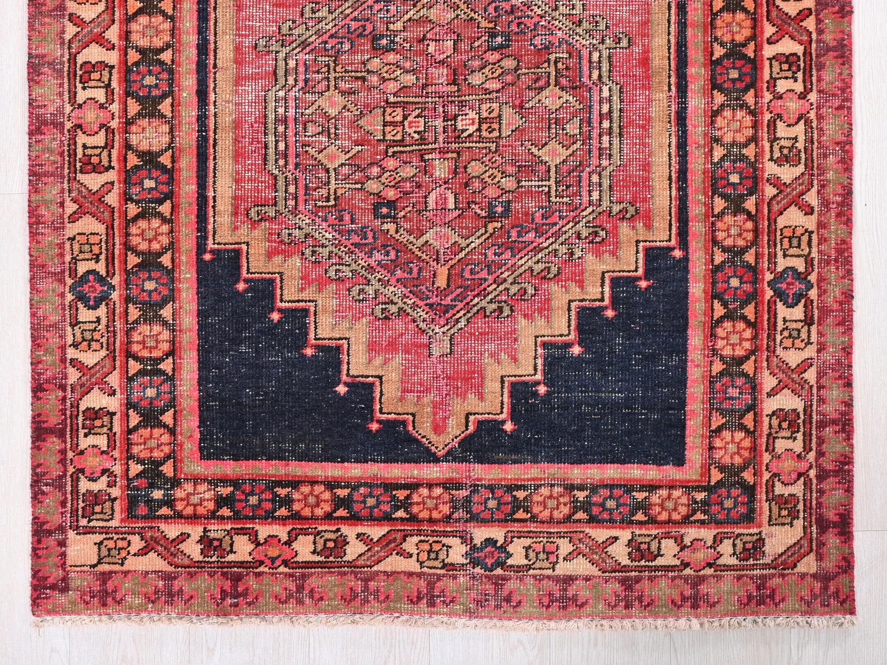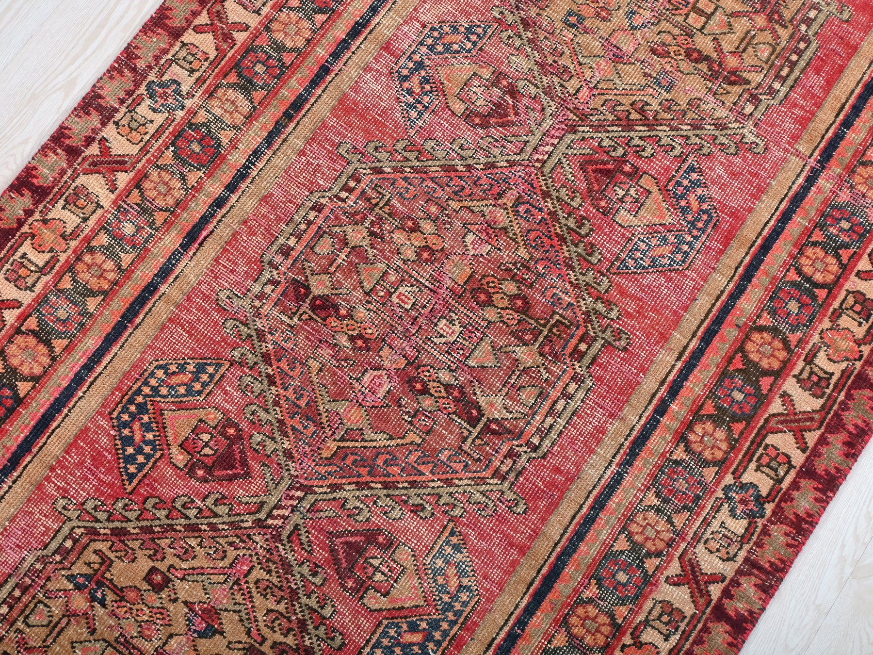 This is a hand-knotted, one-of-a-kind vintage rug. Due to the nature of this piece, there may be slight imperfections in its wear, shape, dimensions, and color. All of our rugs are professionally cleaned and repaired.