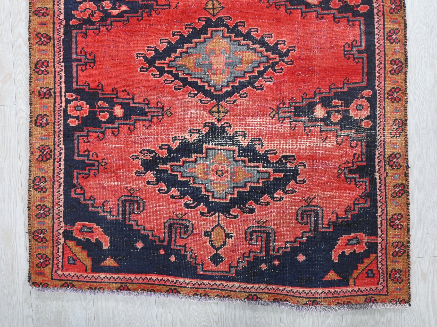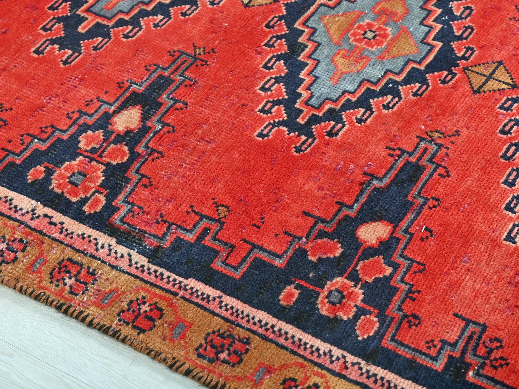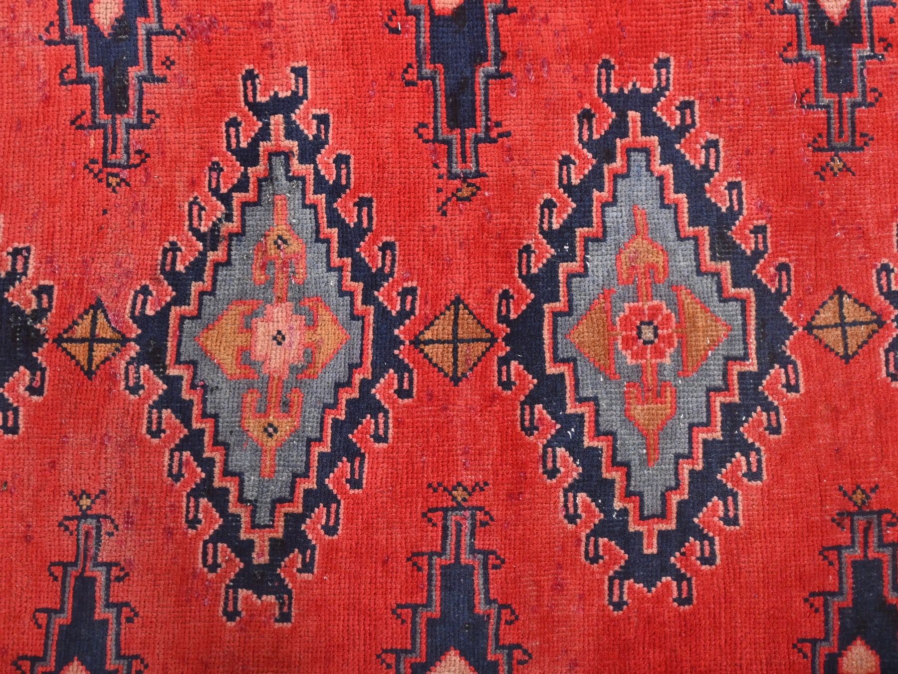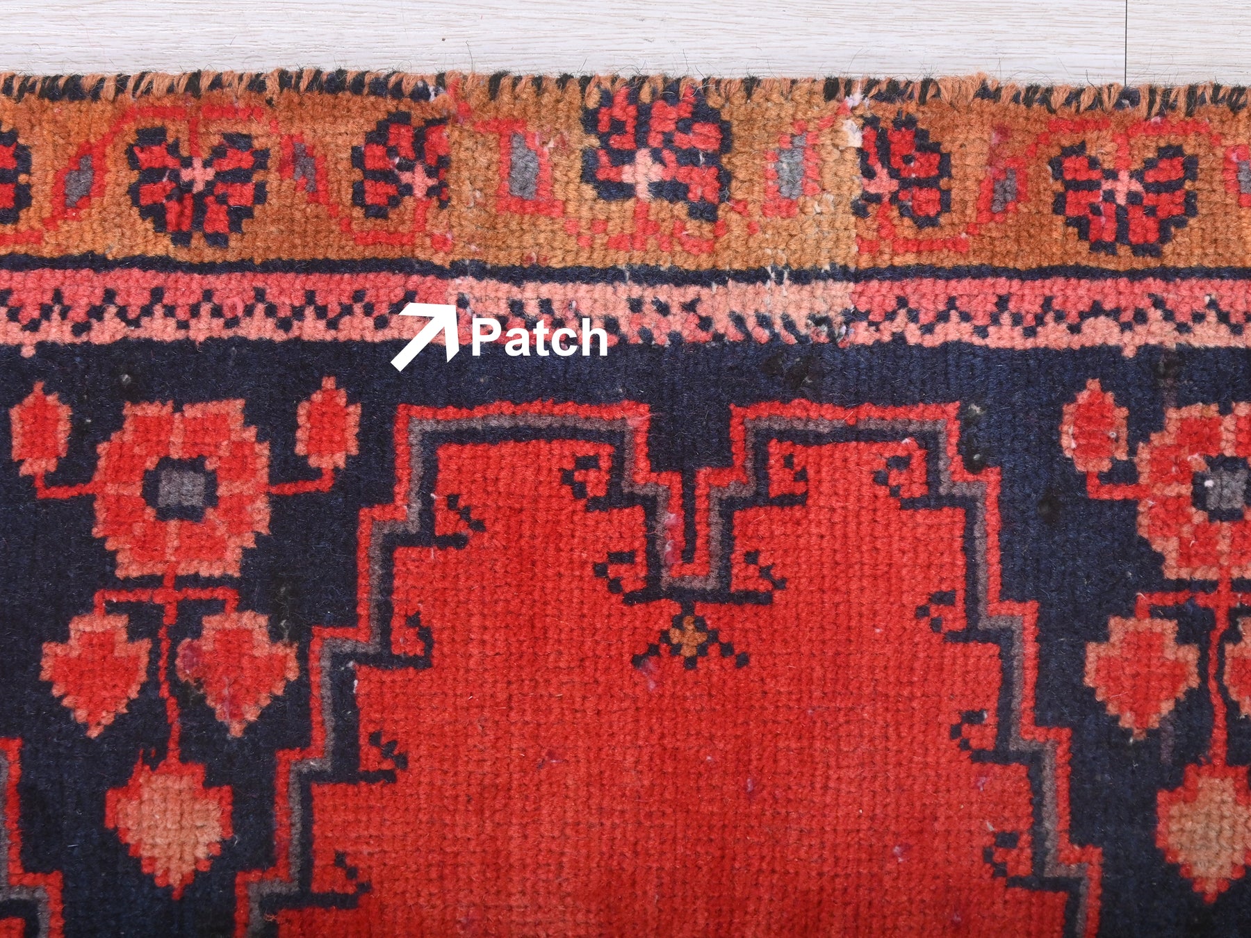 This is a hand-knotted, one-of-a-kind vintage rug. Due to the nature of this piece, there may be slight imperfections in its wear, shape, dimensions, and color. All of our rugs are professionally cleaned and repaired.
