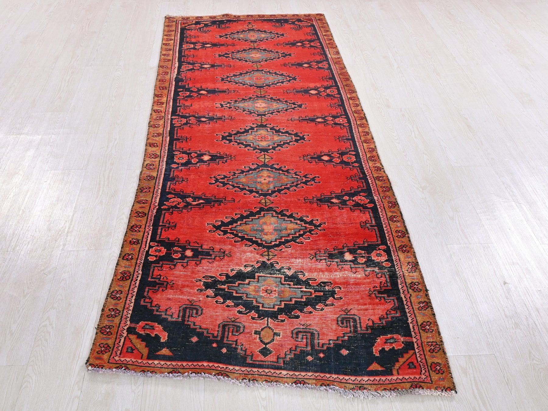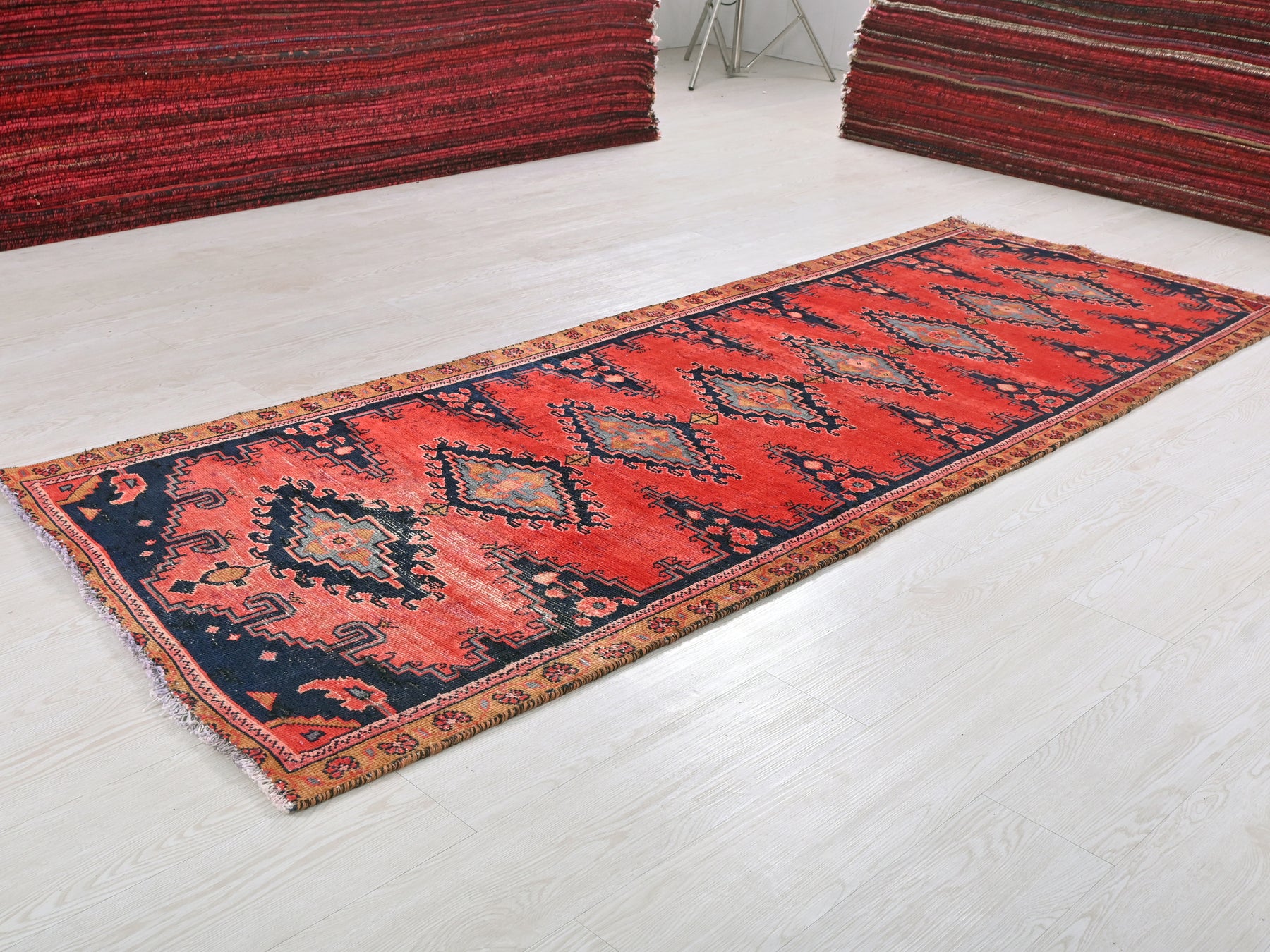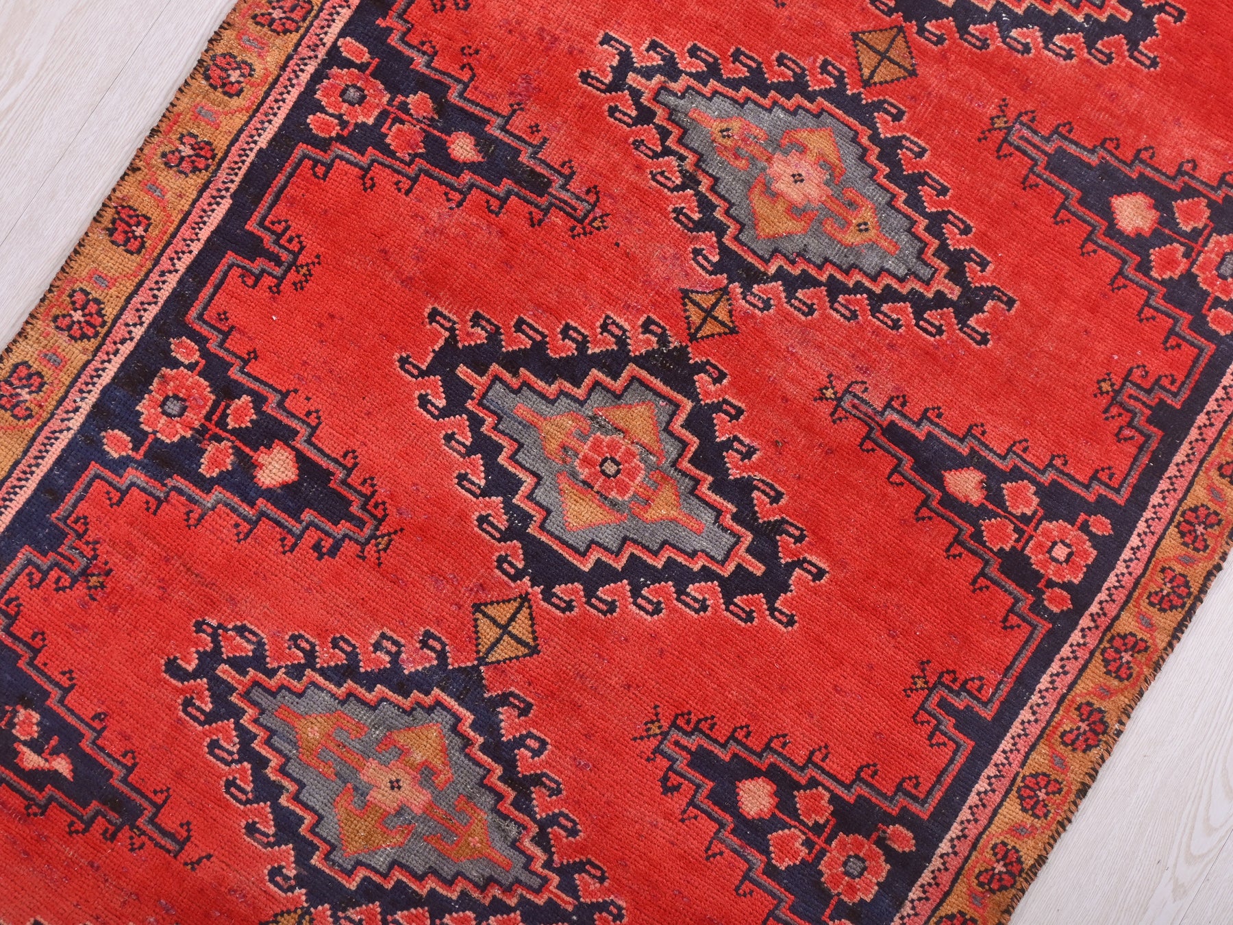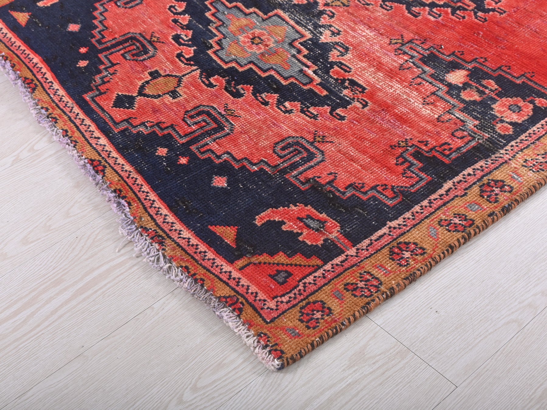 This is a hand-knotted, one-of-a-kind vintage rug. Due to the nature of this piece, there may be slight imperfections in its wear, shape, dimensions, and color. All of our rugs are professionally cleaned and repaired.
