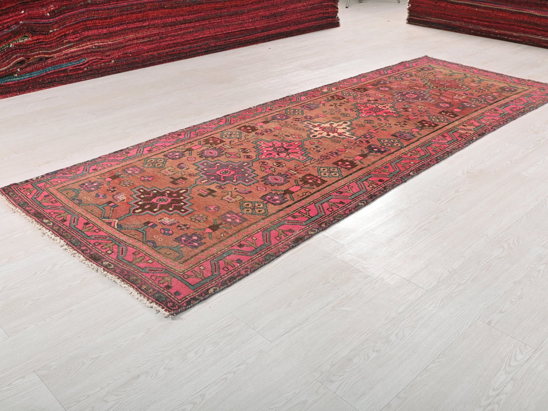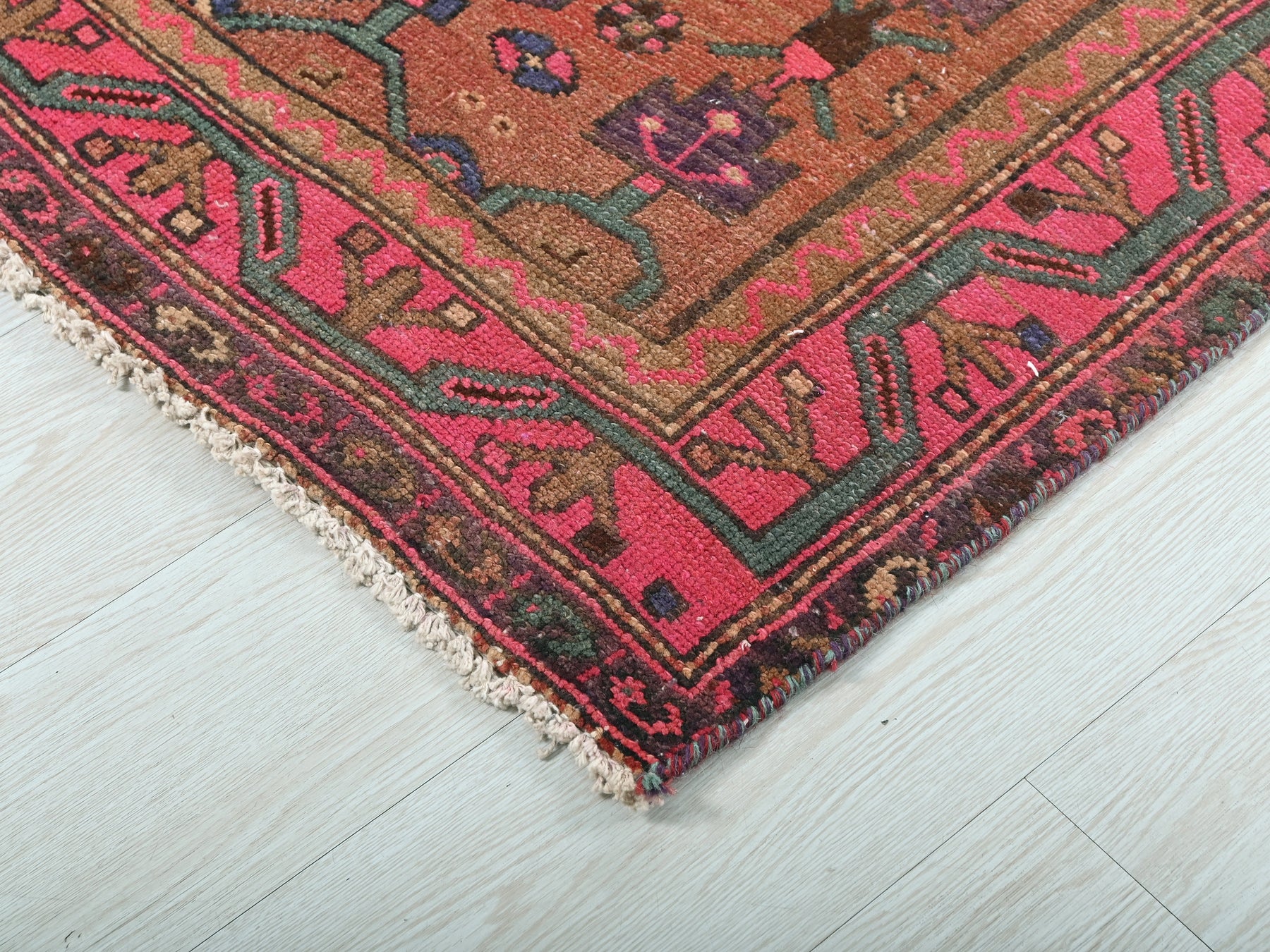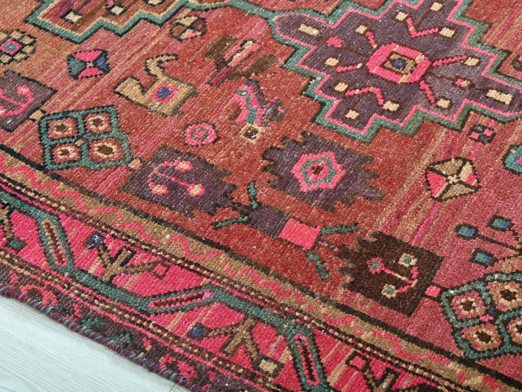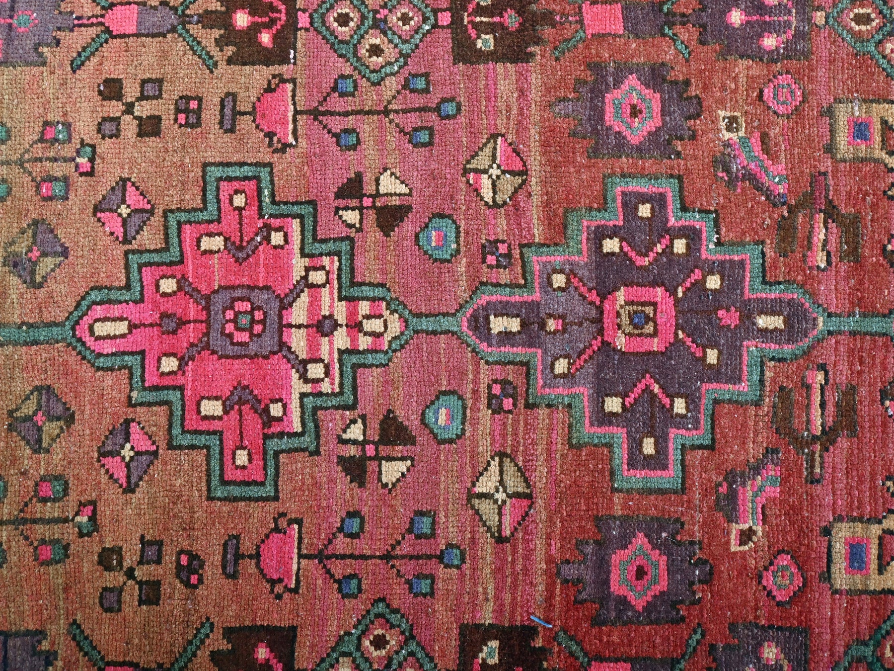 This is a hand-knotted, one-of-a-kind vintage rug. Due to the nature of this piece, there may be slight imperfections in its wear, shape, dimensions, and color. All of our rugs are professionally cleaned and repaired.