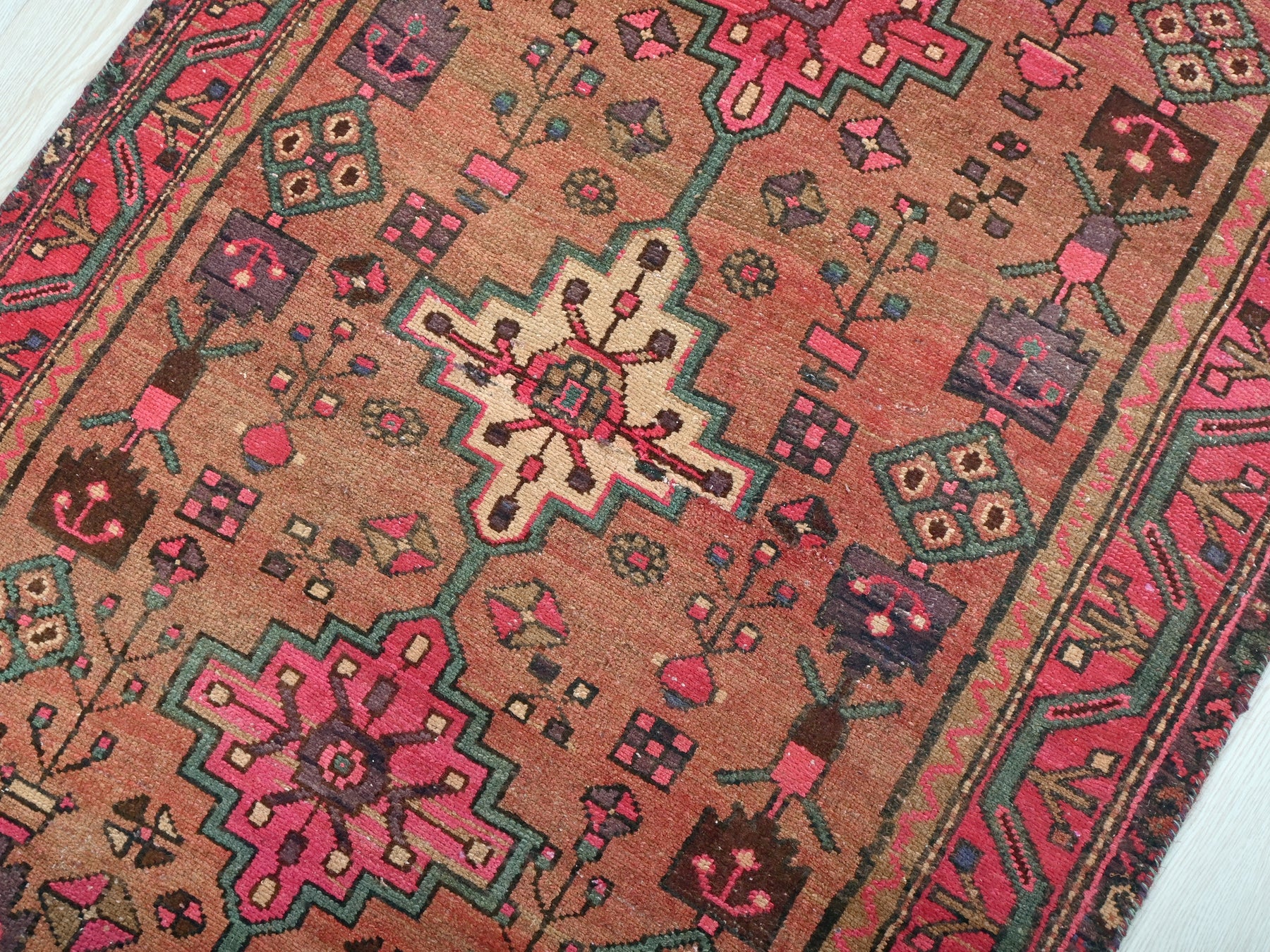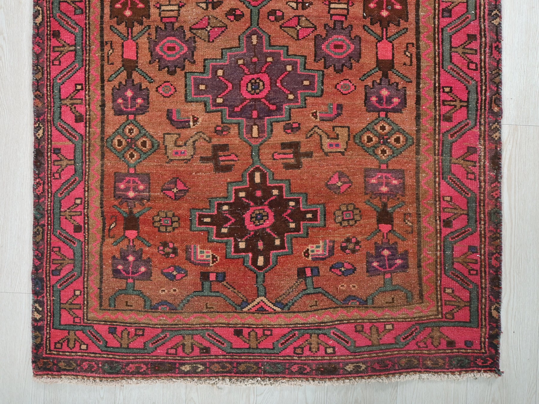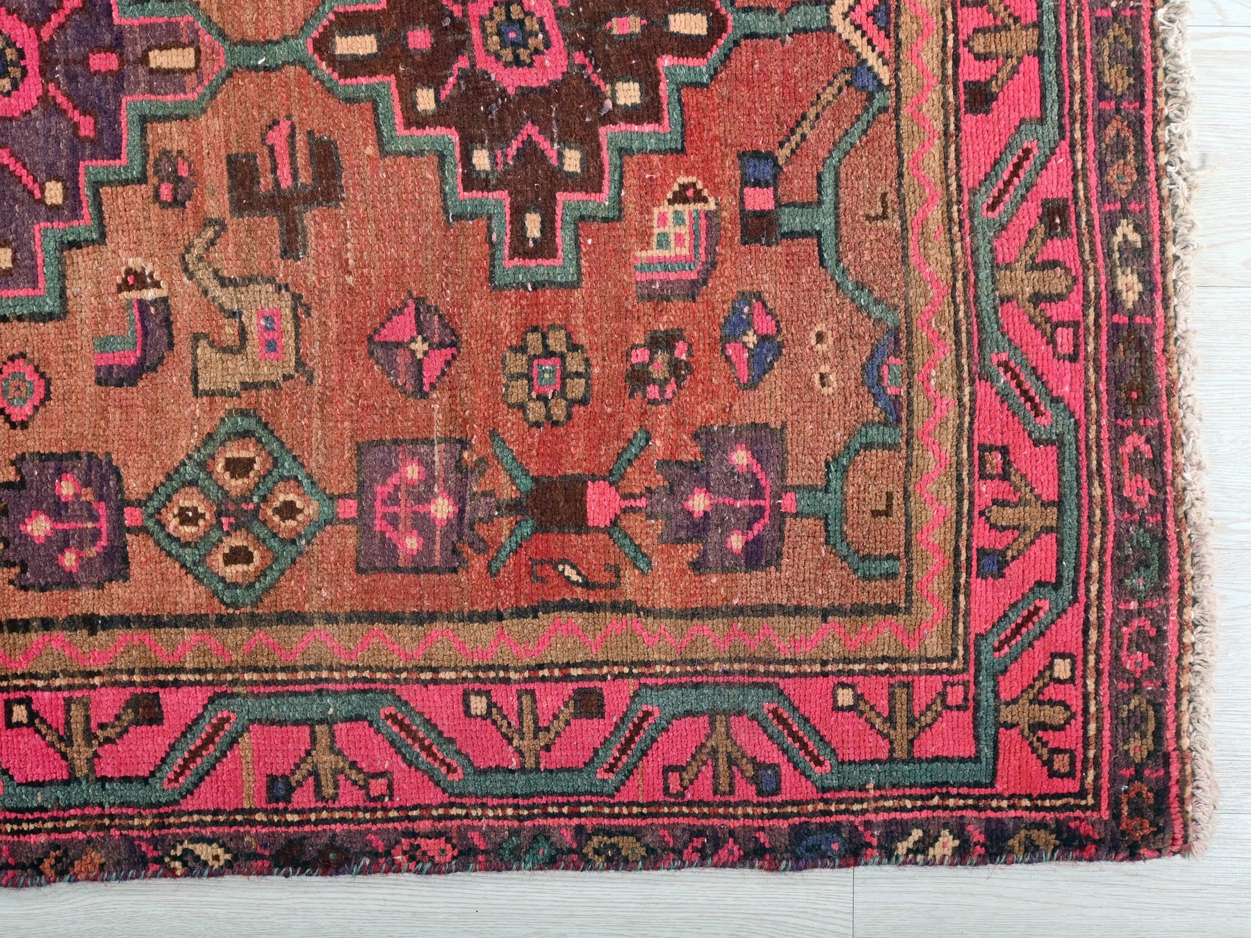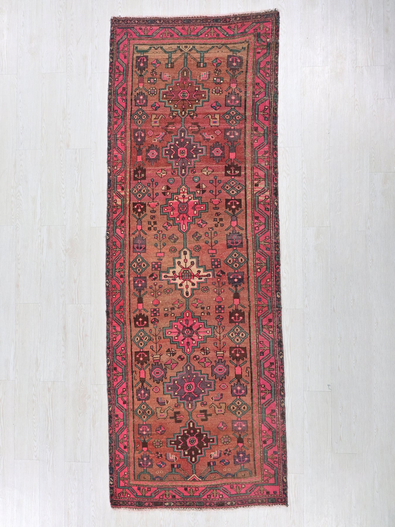 This is a hand-knotted, one-of-a-kind vintage rug. Due to the nature of this piece, there may be slight imperfections in its wear, shape, dimensions, and color. All of our rugs are professionally cleaned and repaired.