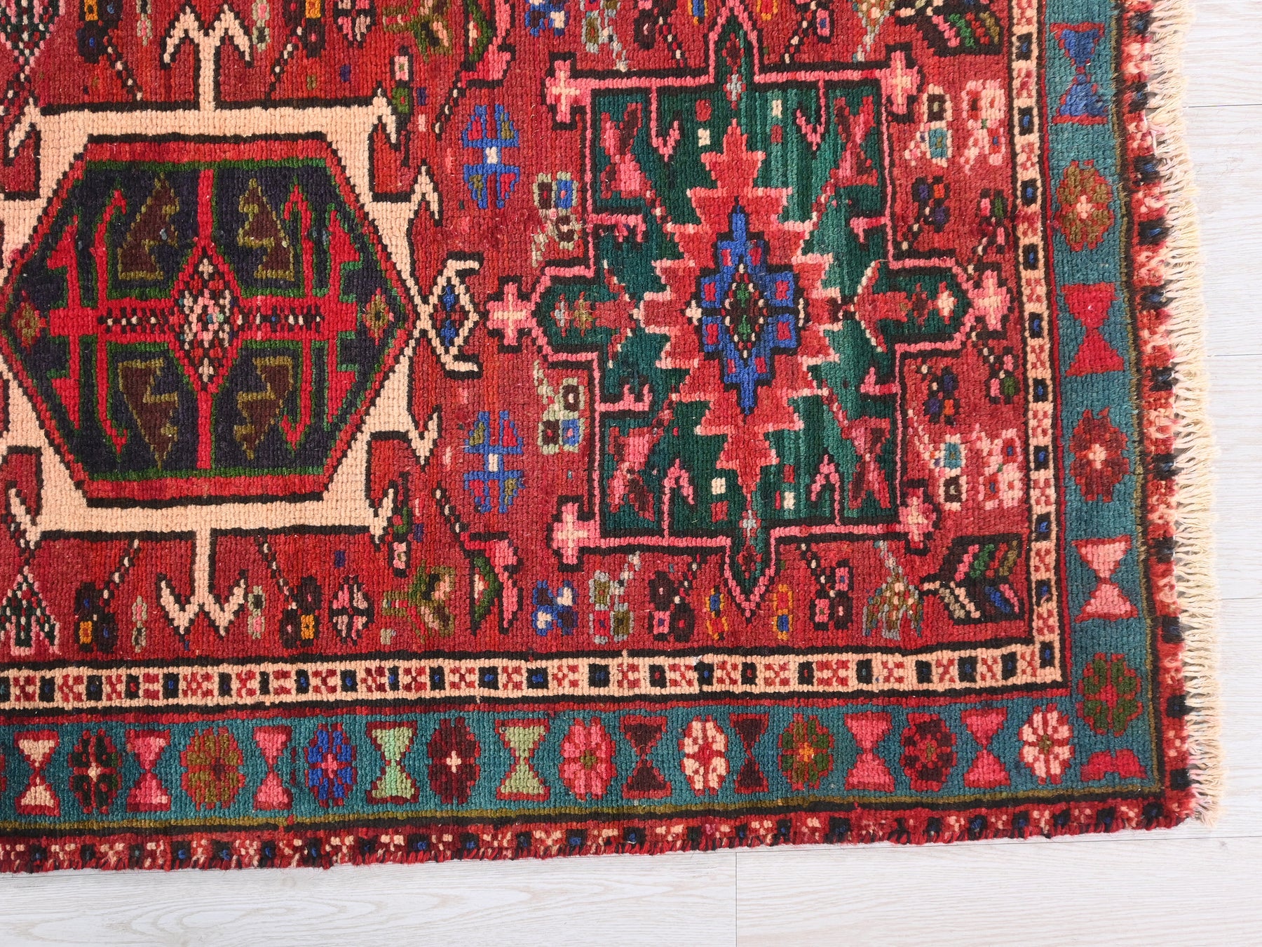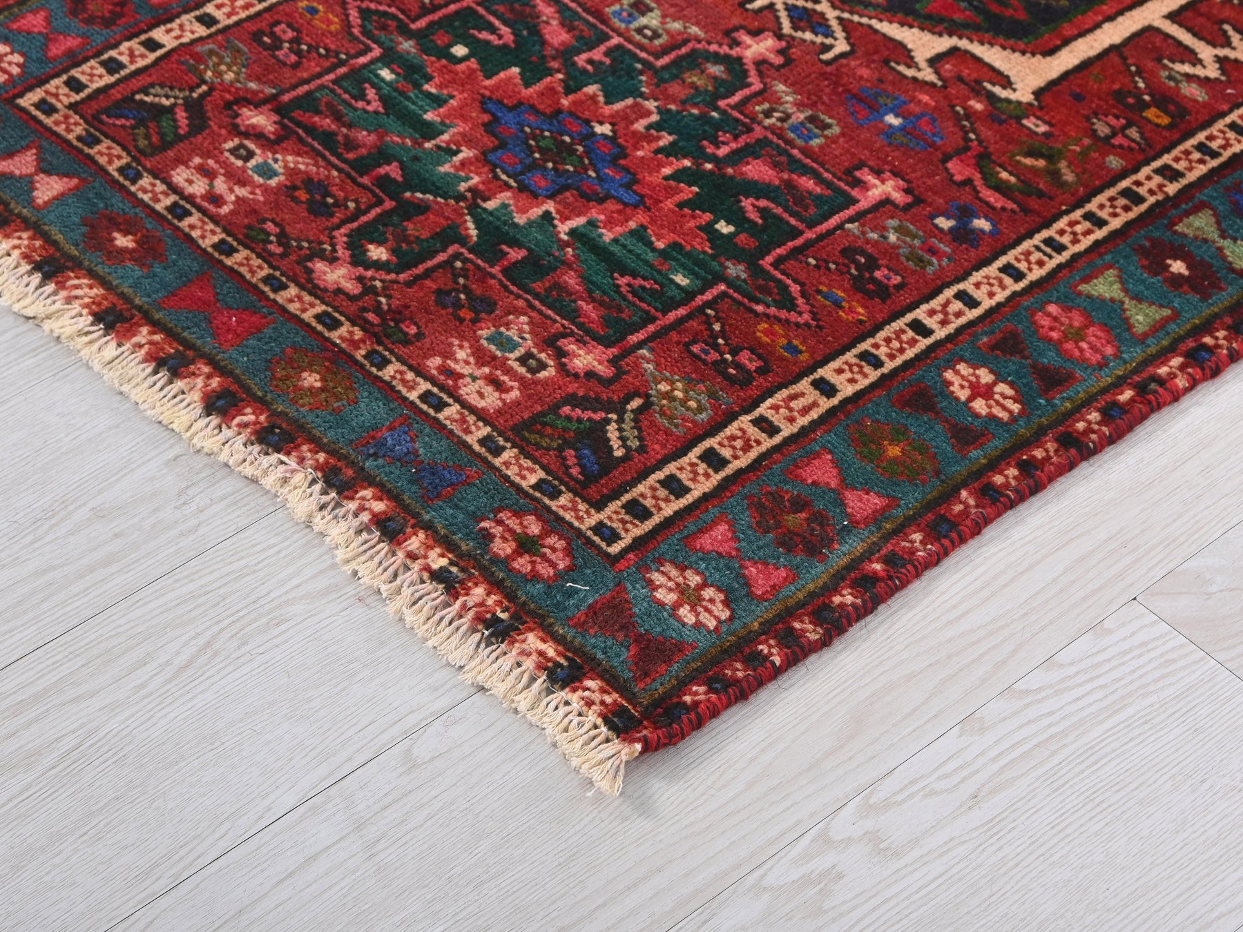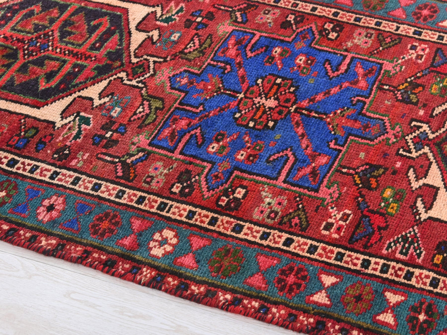 This is a hand-knotted, one-of-a-kind vintage rug. Due to the nature of this piece, there may be slight imperfections in its wear, shape, dimensions, and color. All of our rugs are professionally cleaned and repaired.