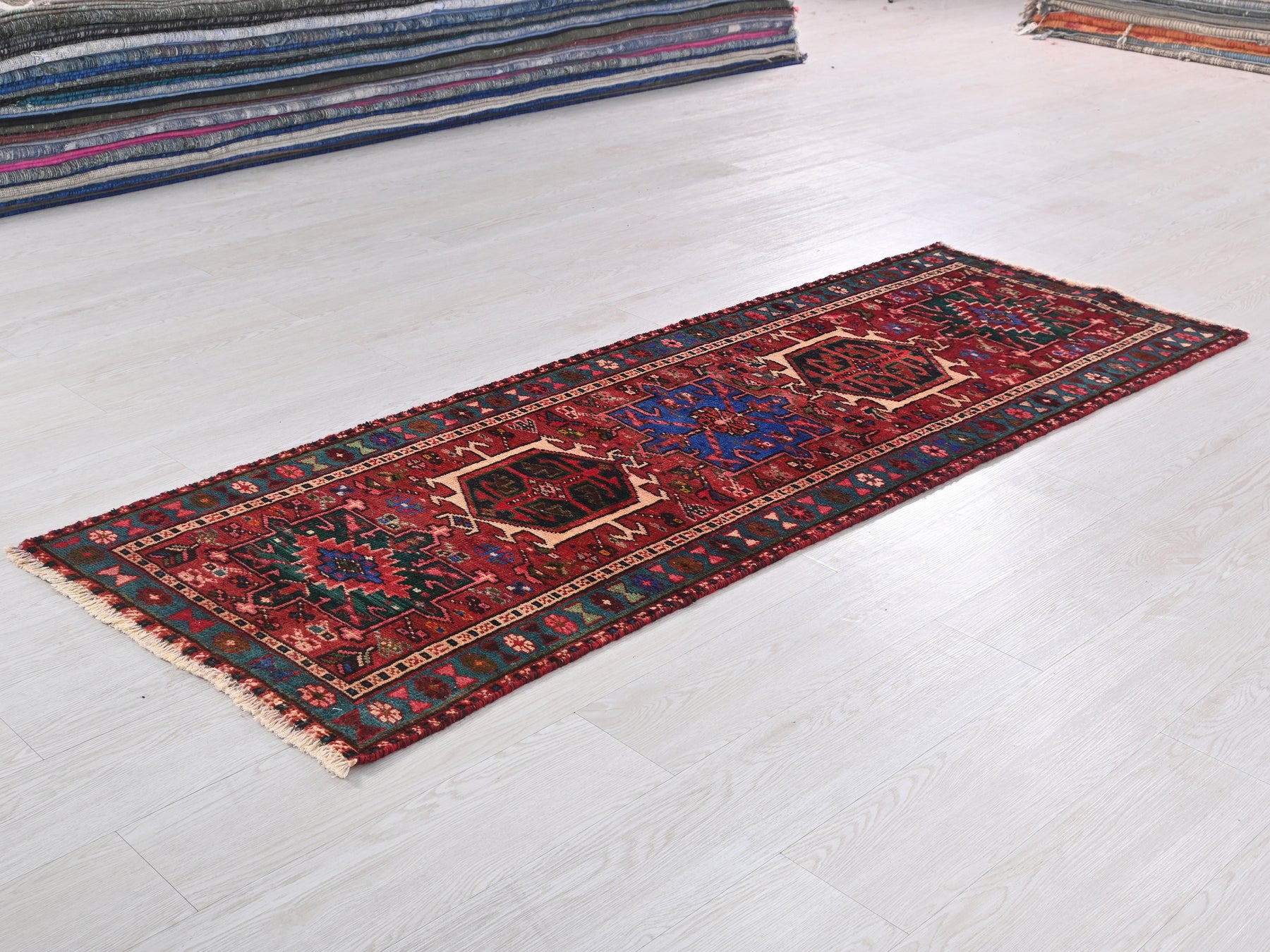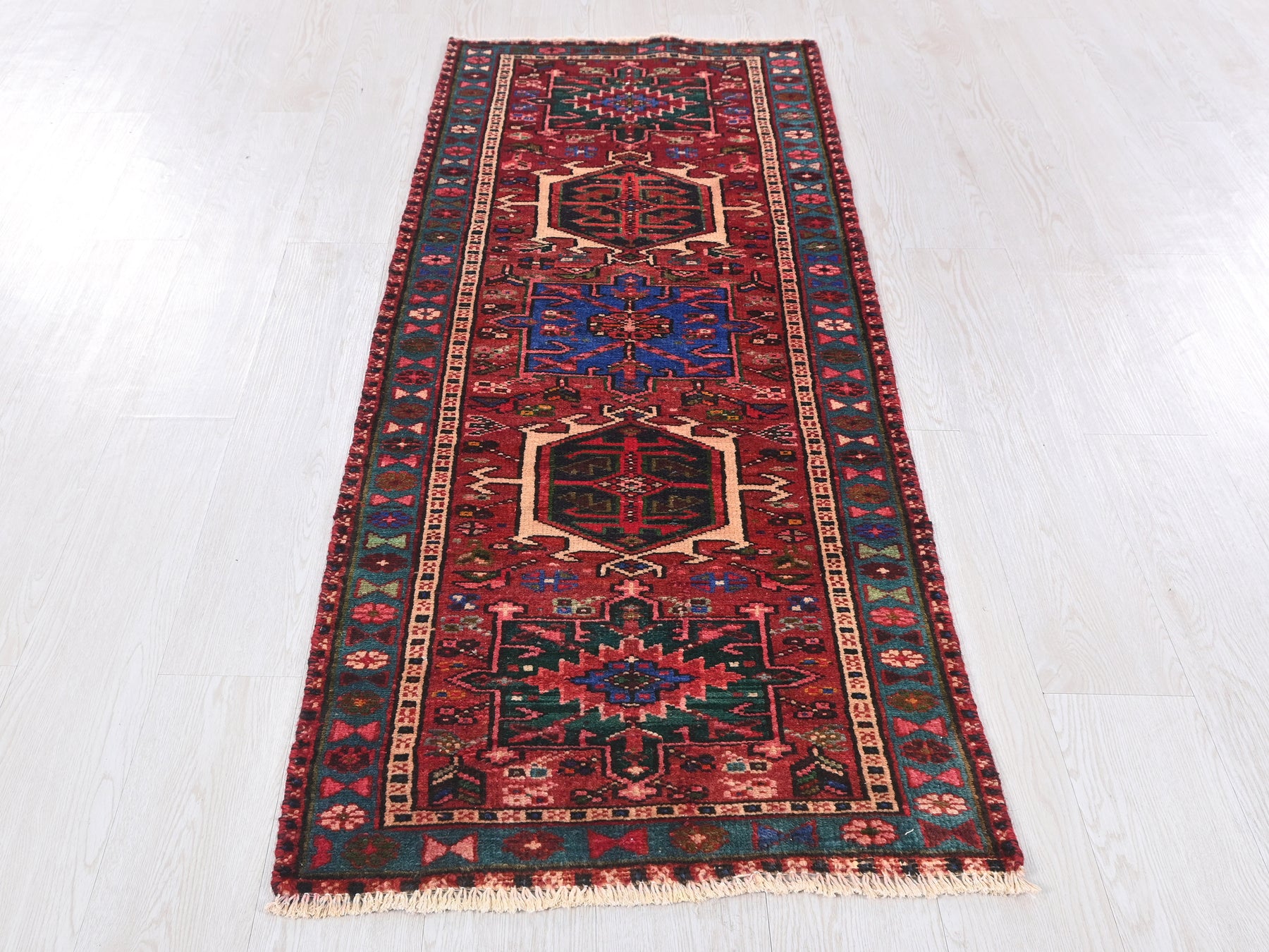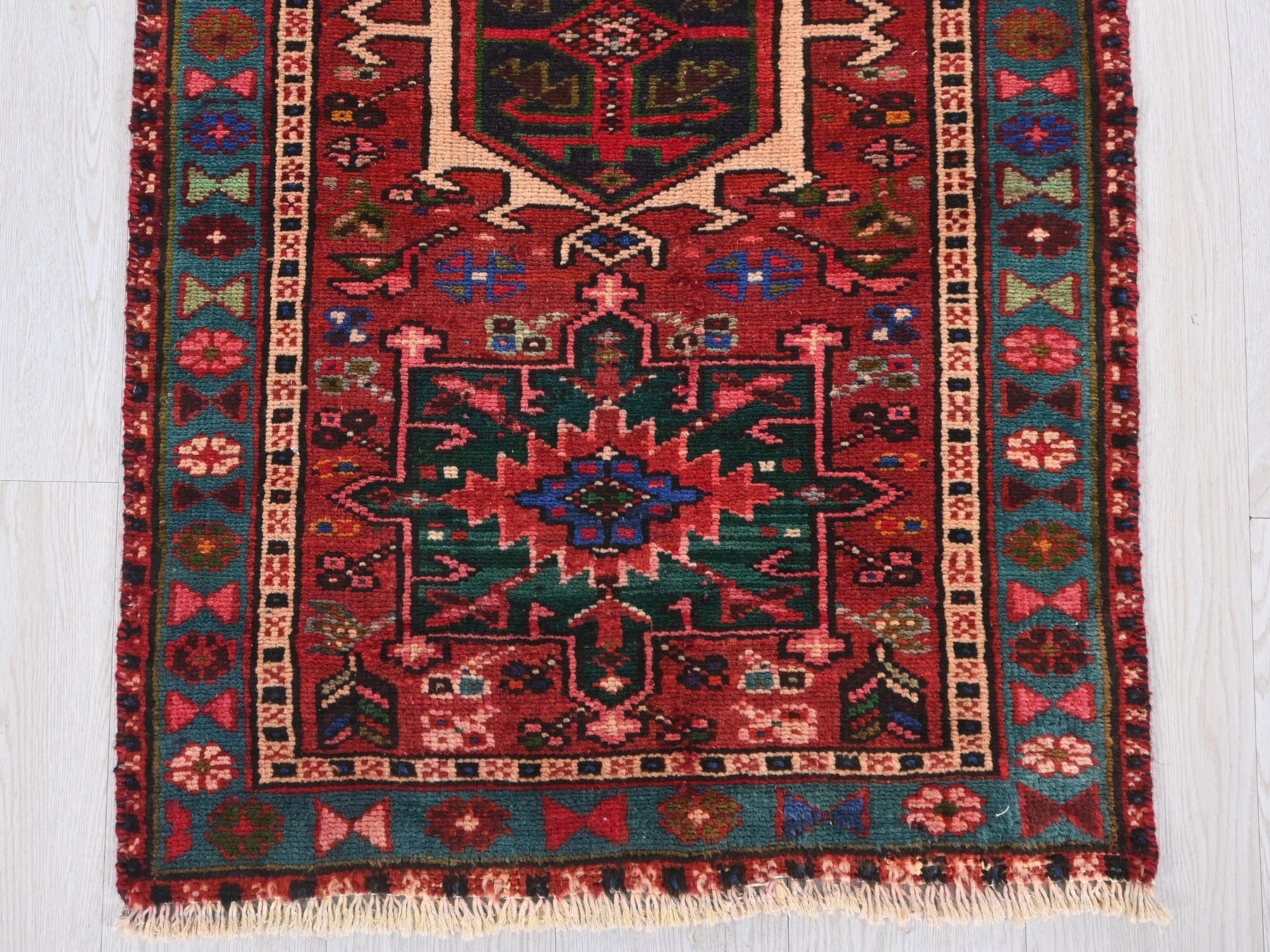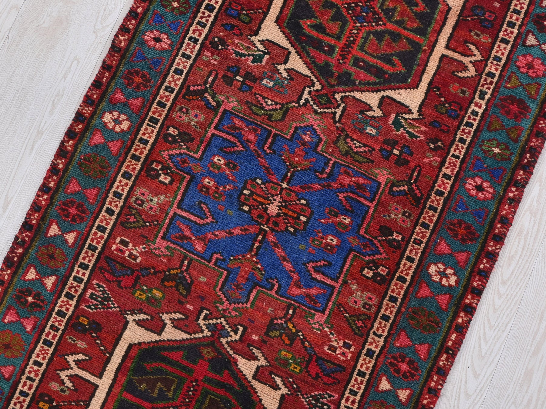 This is a hand-knotted, one-of-a-kind vintage rug. Due to the nature of this piece, there may be slight imperfections in its wear, shape, dimensions, and color. All of our rugs are professionally cleaned and repaired.