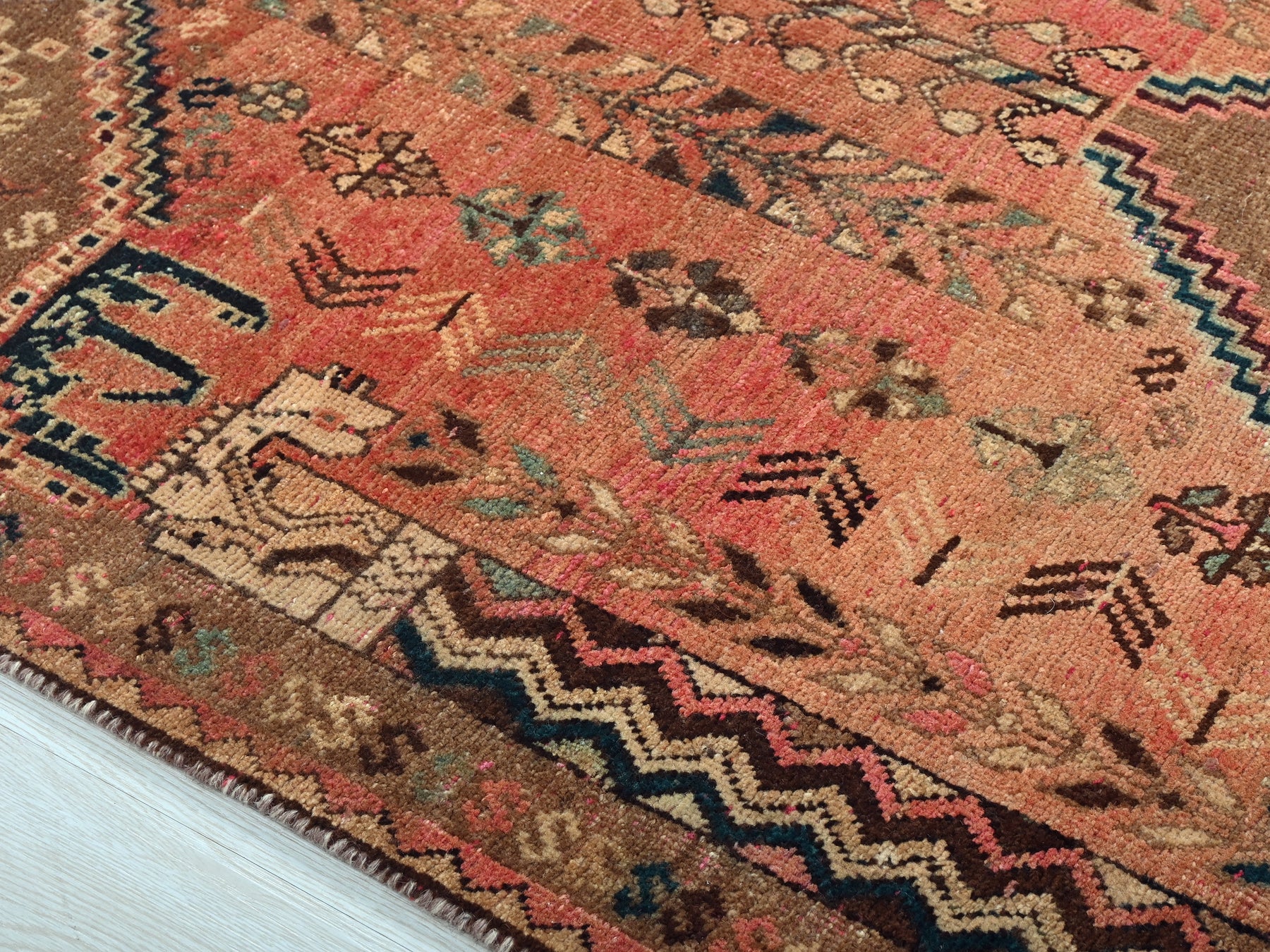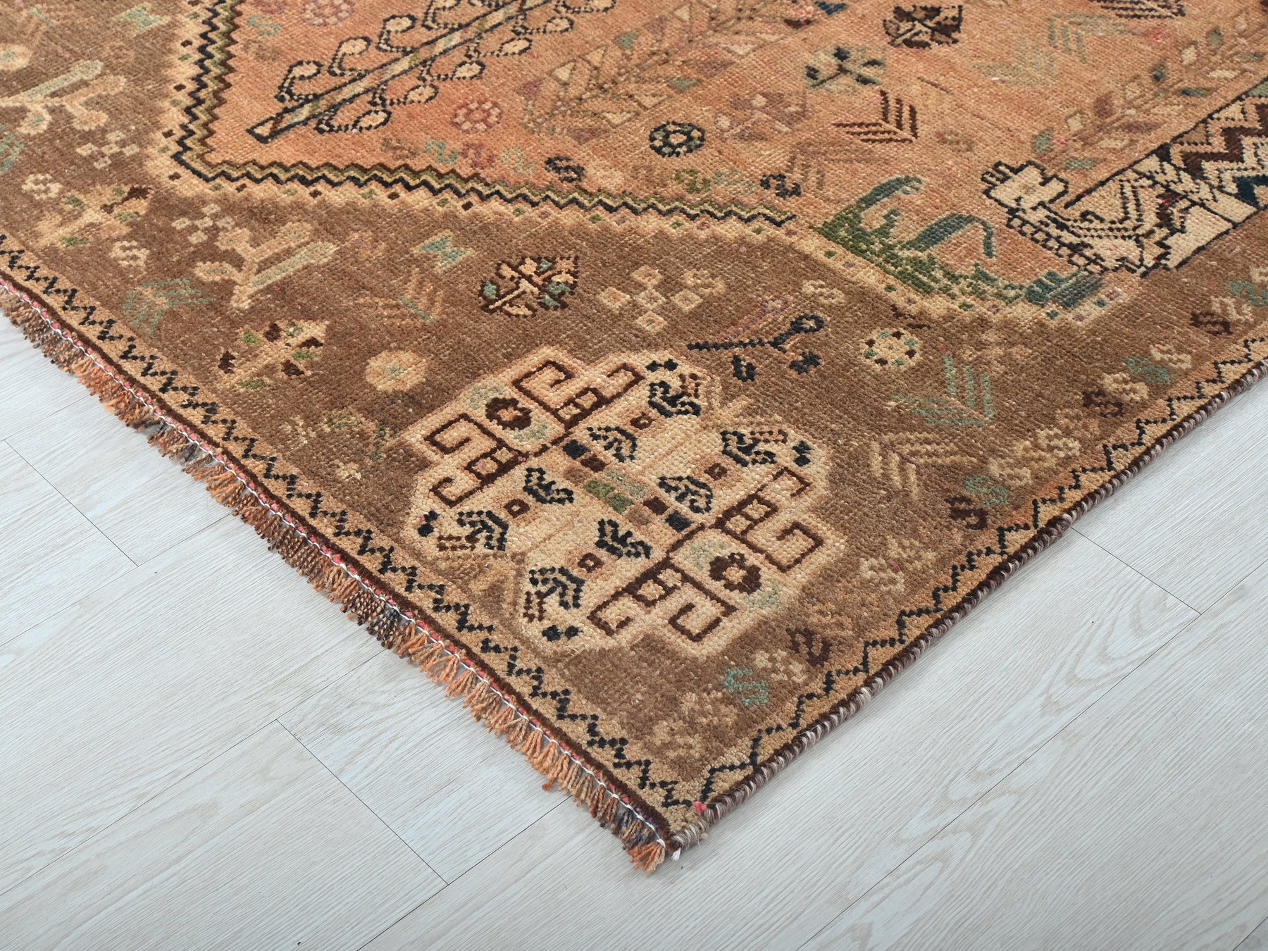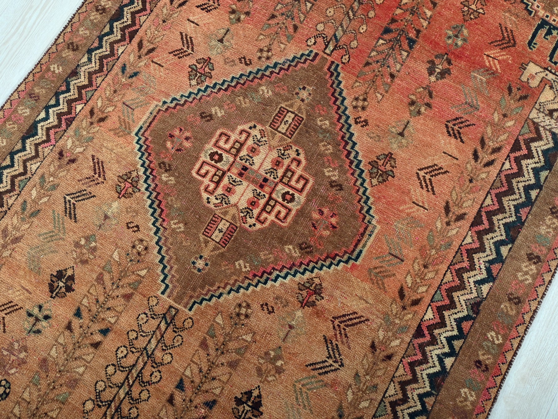 This is a hand-knotted, one-of-a-kind vintage rug. Due to the nature of this piece, there may be slight imperfections in its wear, shape, dimensions, and color. All of our rugs are professionally cleaned and repaired.