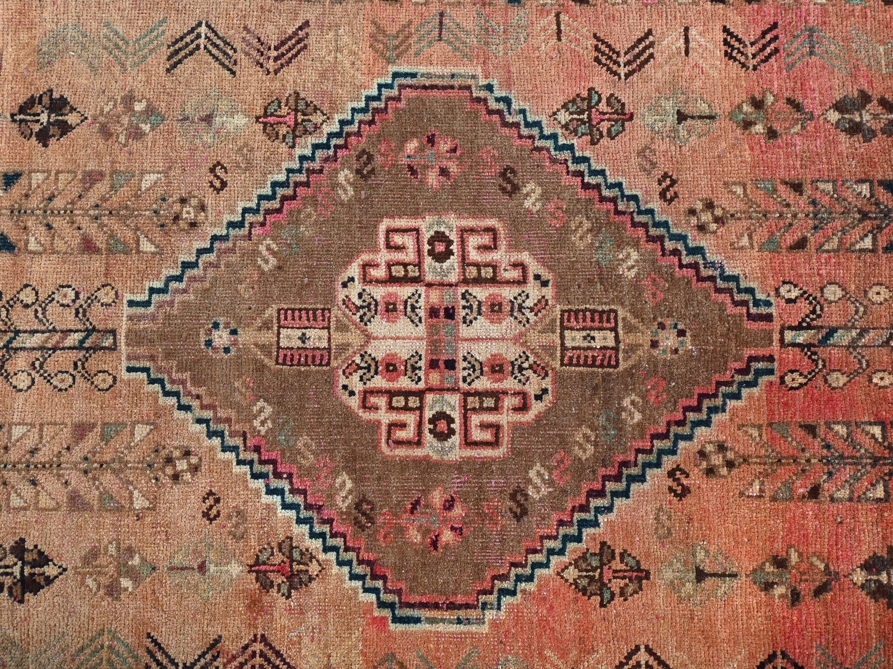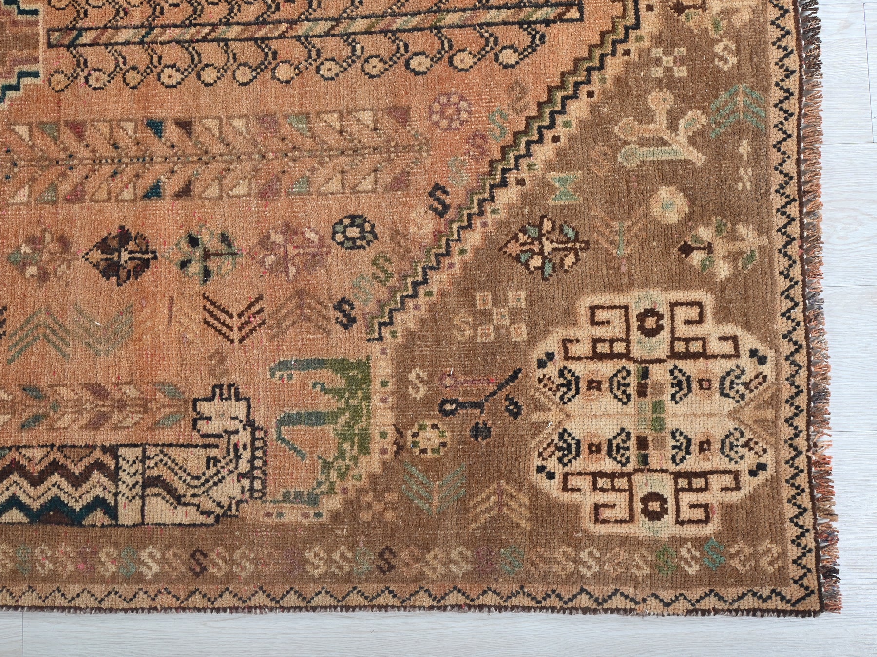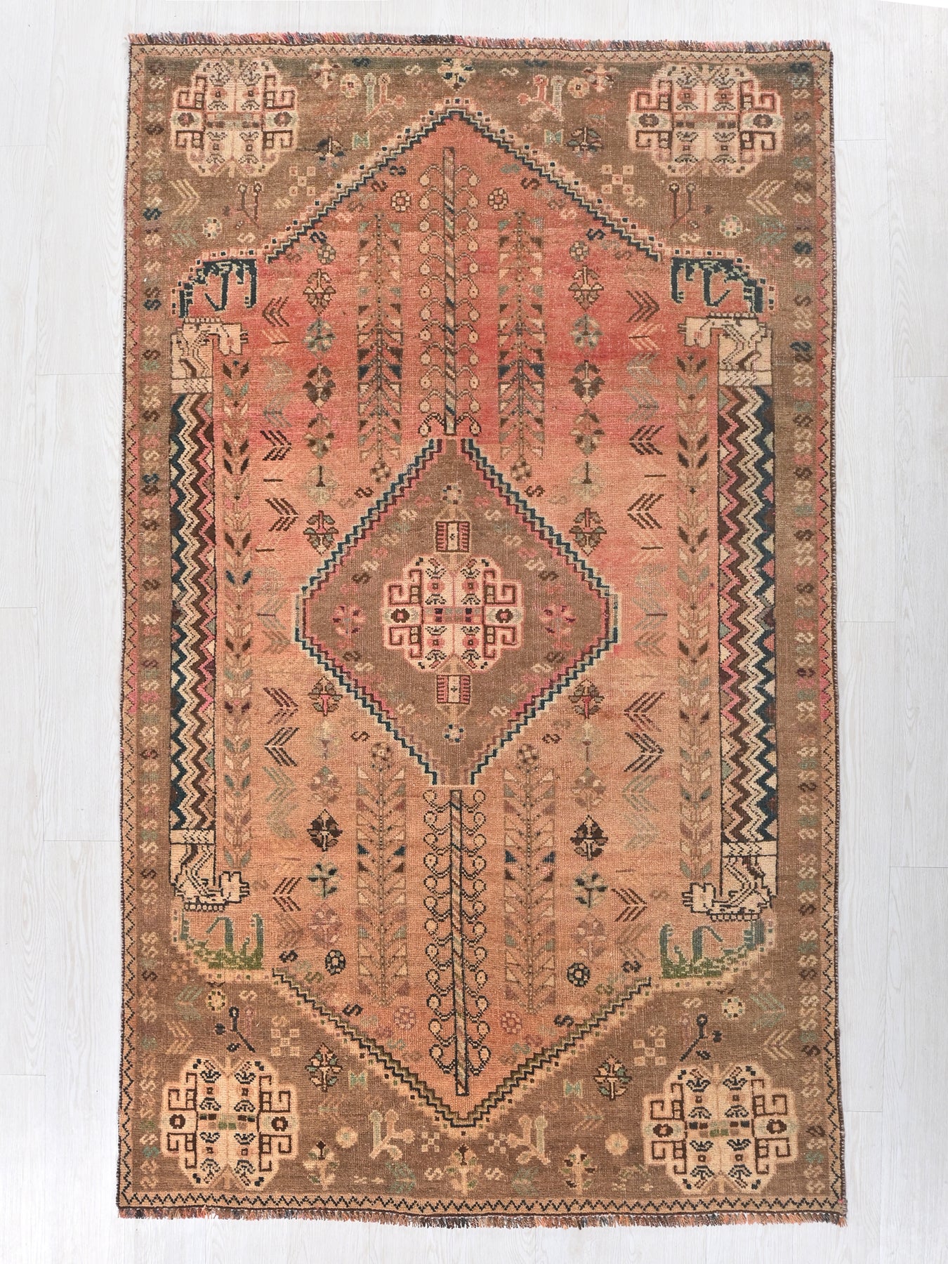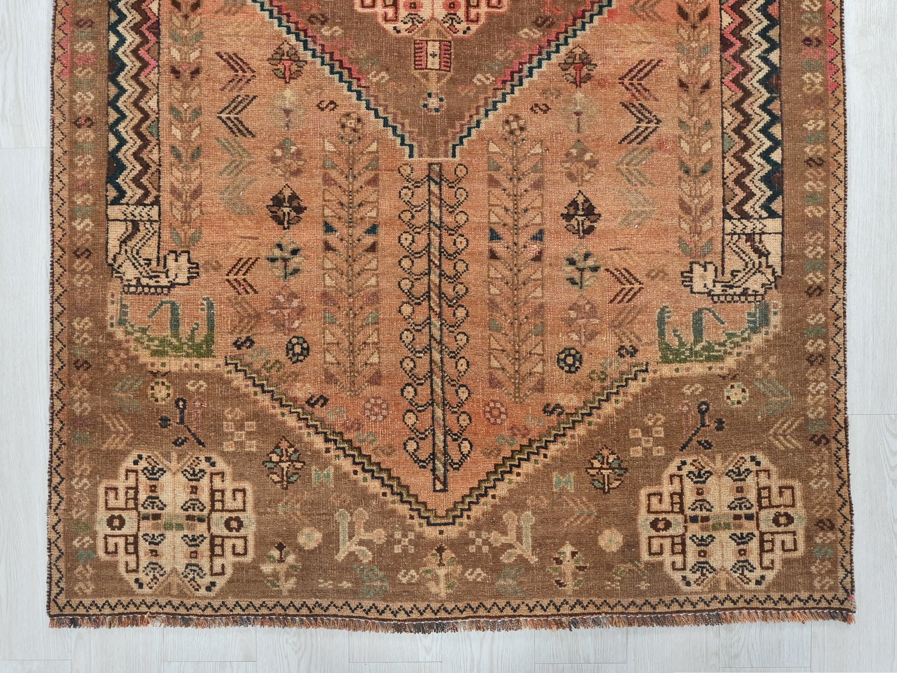 This is a hand-knotted, one-of-a-kind vintage rug. Due to the nature of this piece, there may be slight imperfections in its wear, shape, dimensions, and color. All of our rugs are professionally cleaned and repaired.