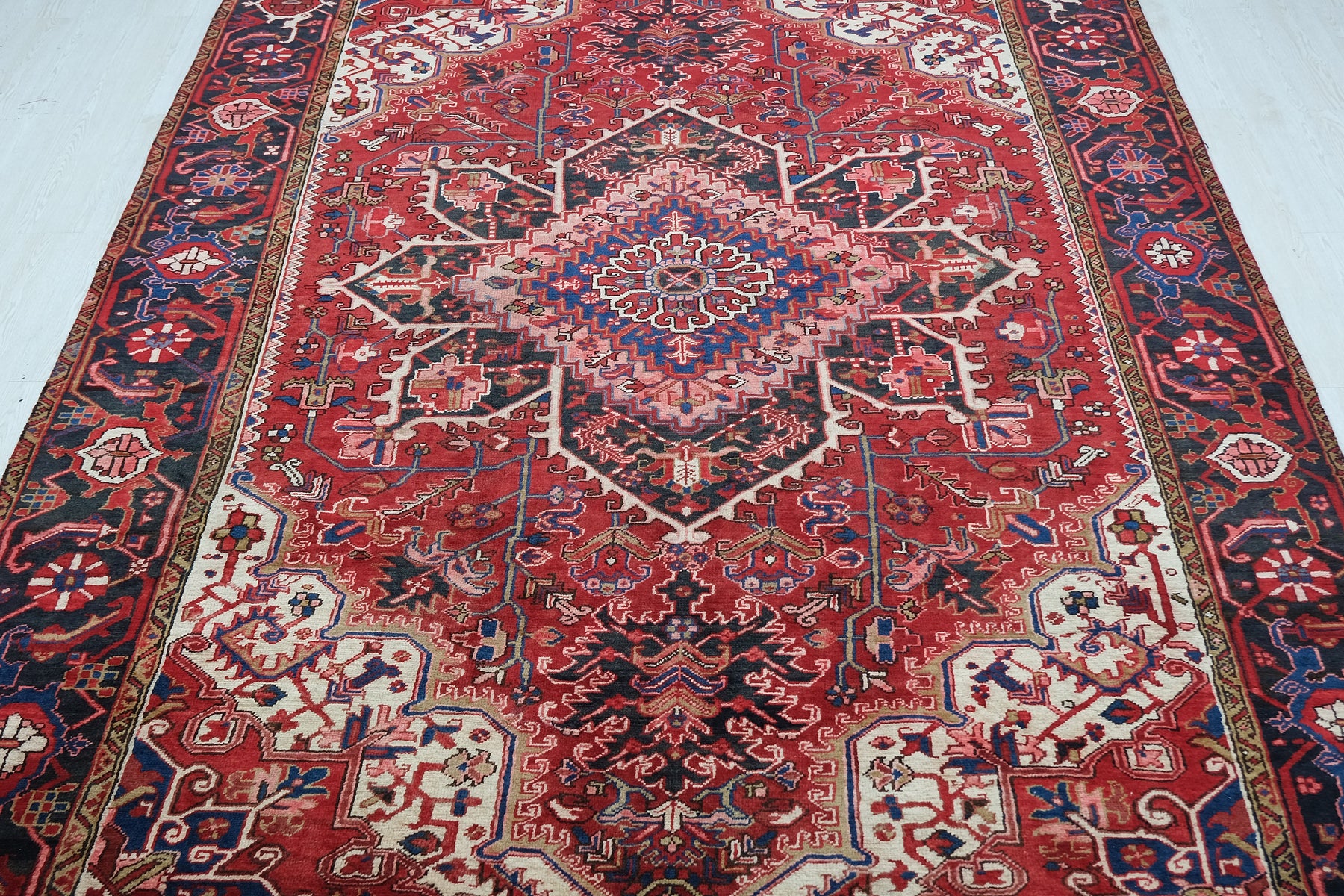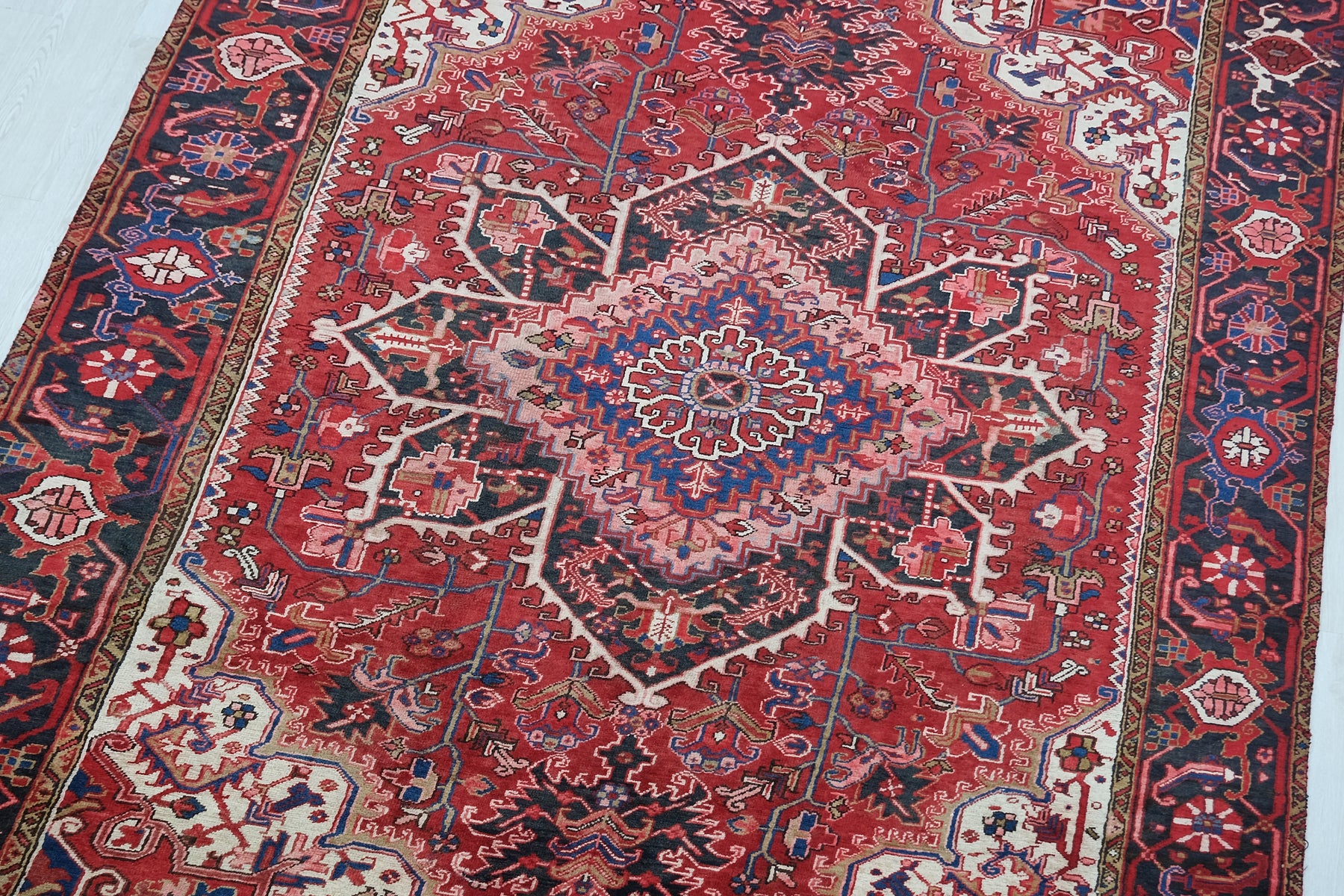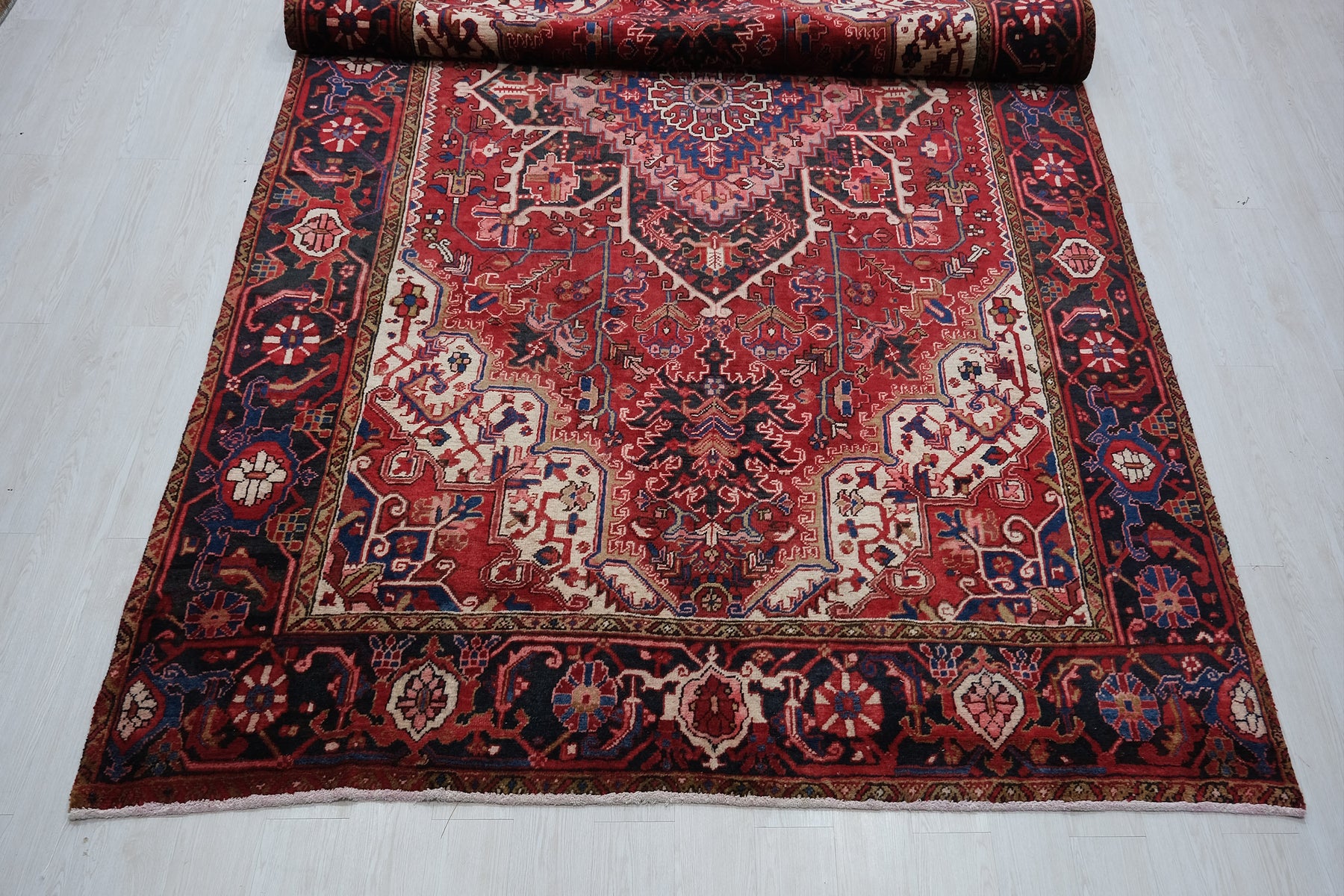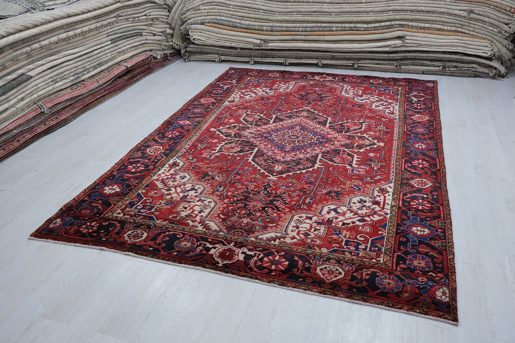 This is a hand-knotted, one-of-a-kind vintage rug. Due to the nature of this piece, there may be slight imperfections in its wear, shape, dimensions, and color. All of our rugs are professionally cleaned and repaired.