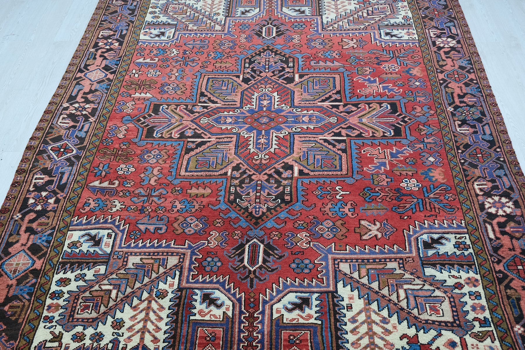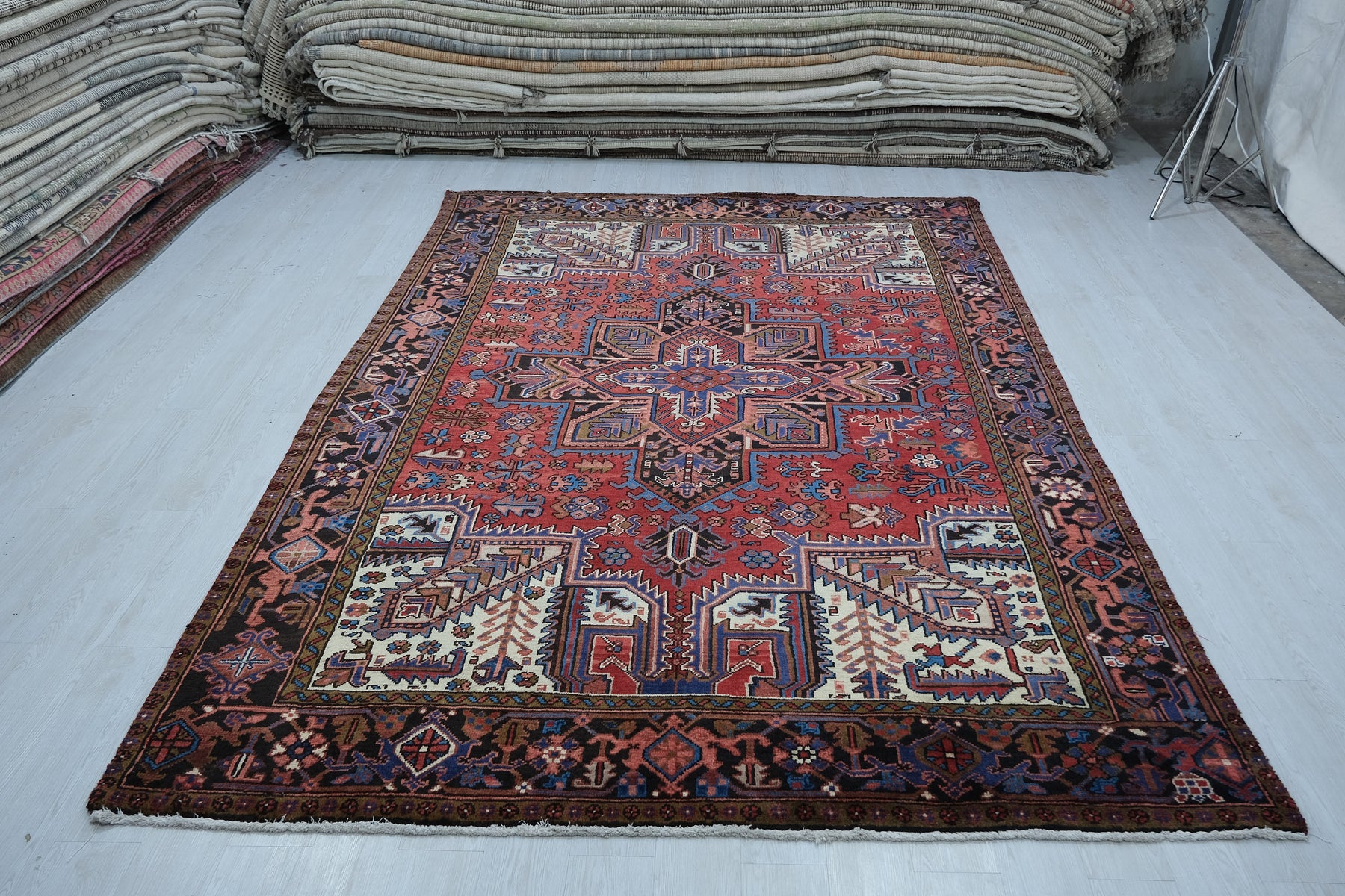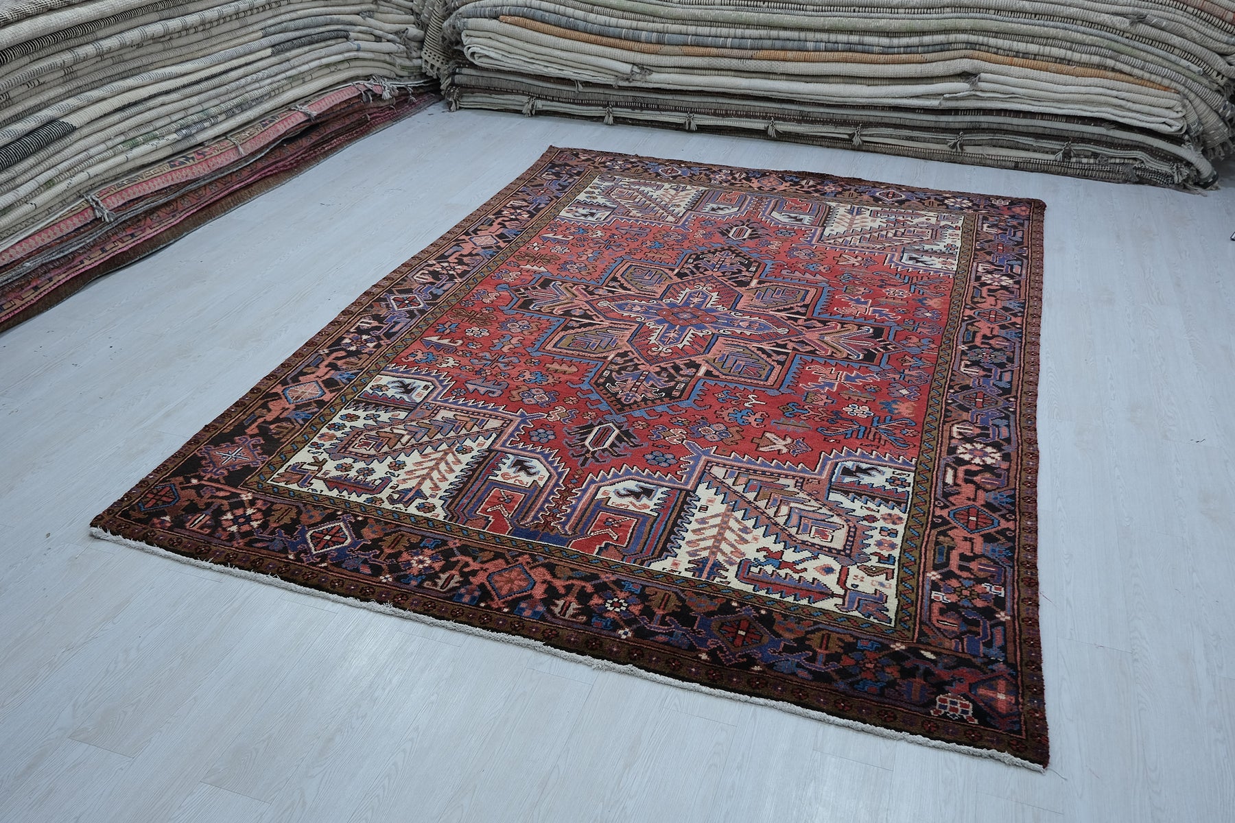 This is a hand-knotted, one-of-a-kind vintage rug. Due to the nature of this piece, there may be slight imperfections in its wear, shape, dimensions, and color. All of our rugs are professionally cleaned and repaired.