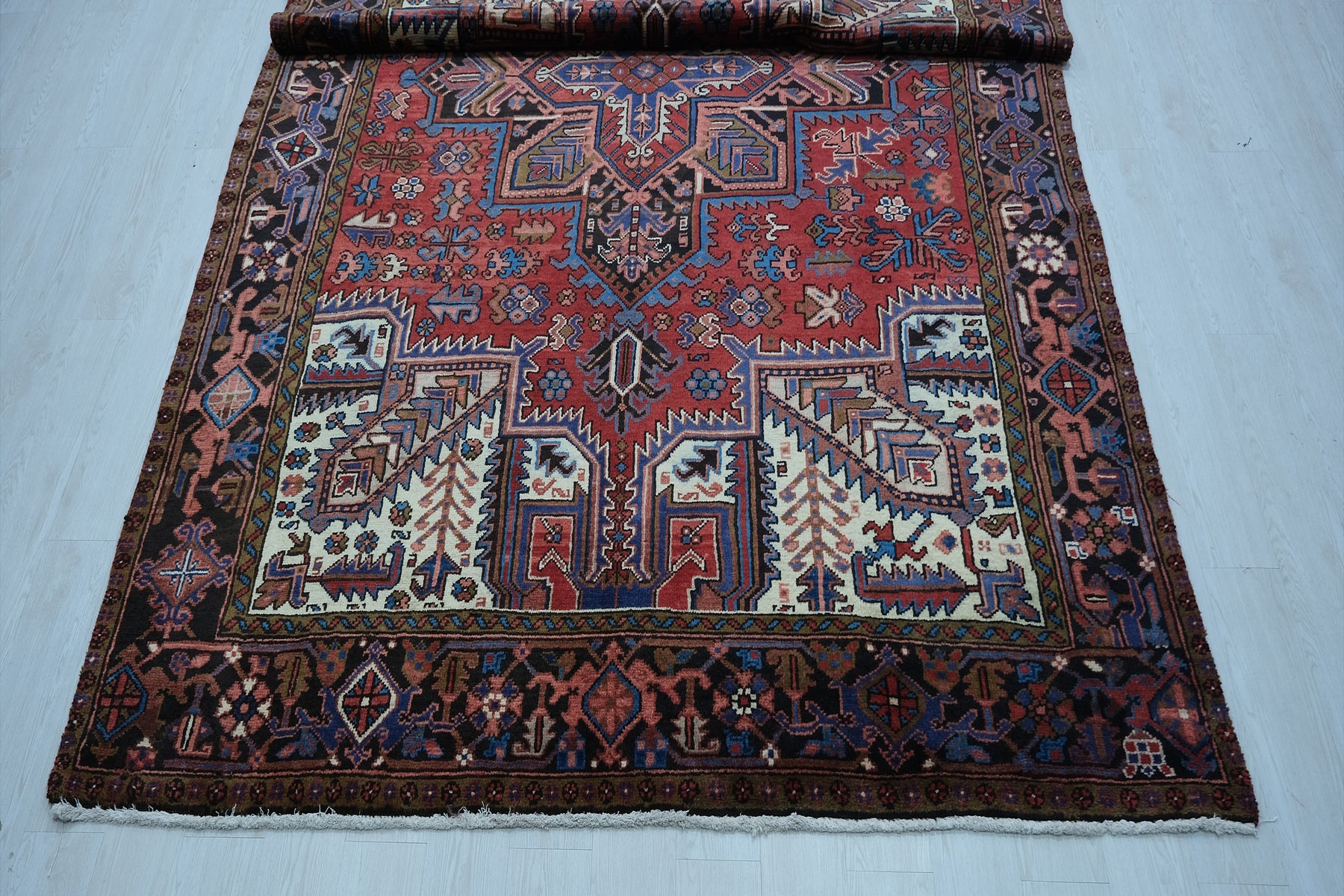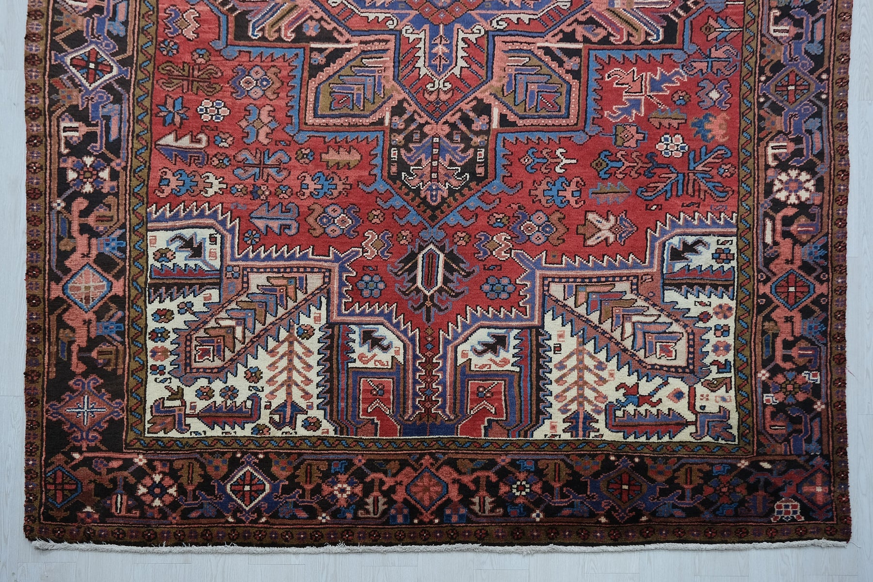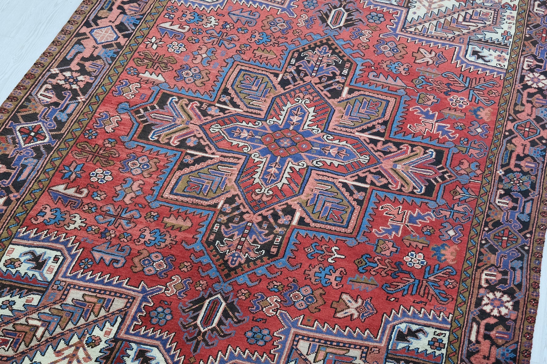 This is a hand-knotted, one-of-a-kind vintage rug. Due to the nature of this piece, there may be slight imperfections in its wear, shape, dimensions, and color. All of our rugs are professionally cleaned and repaired.