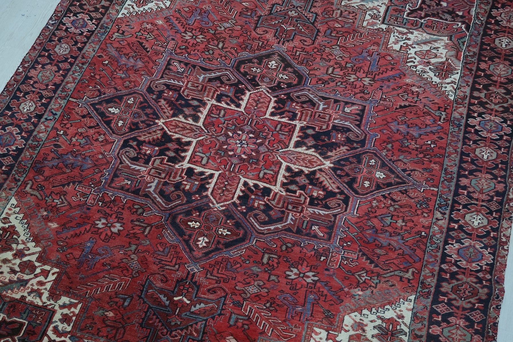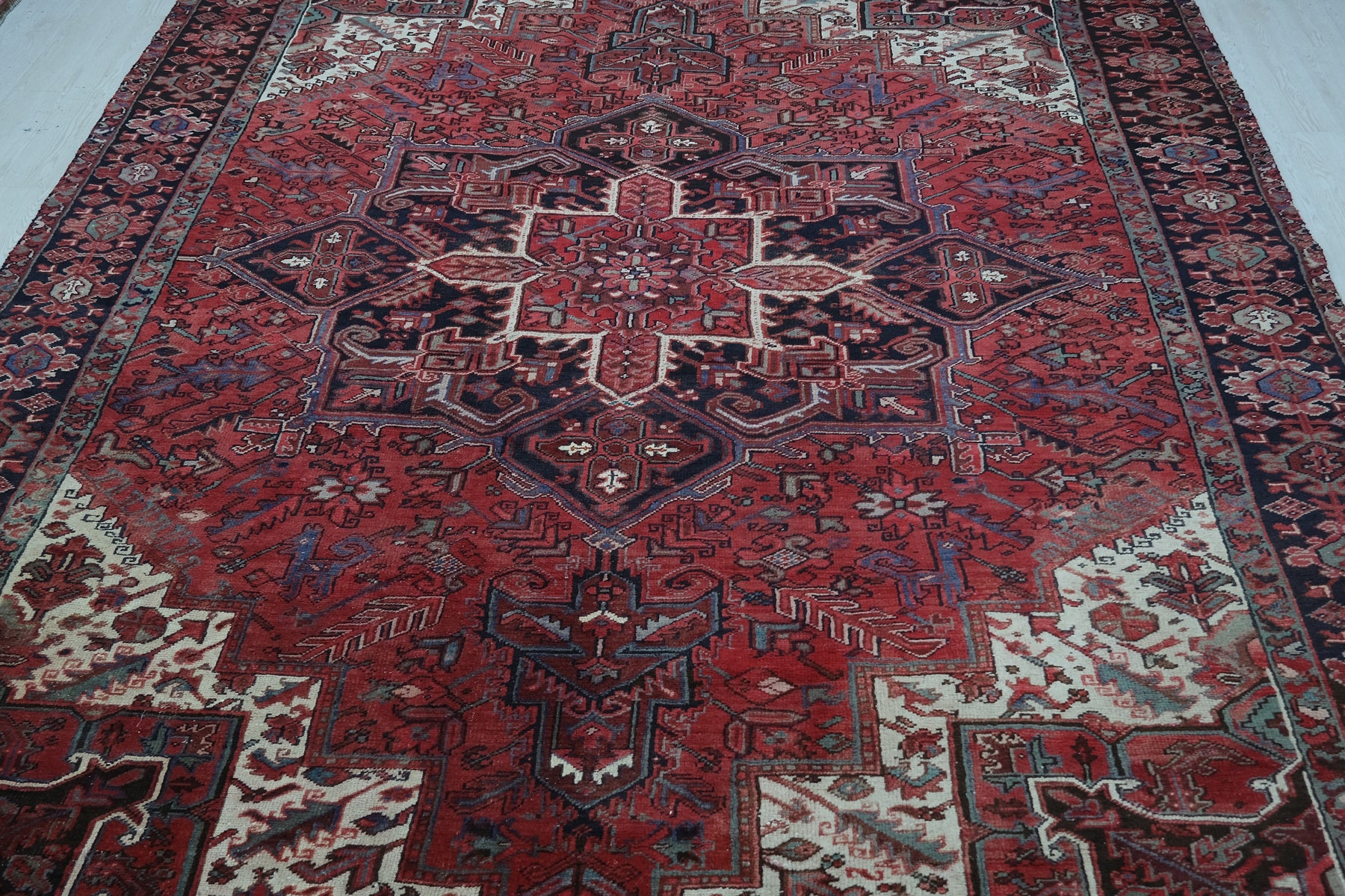 This is a hand-knotted, one-of-a-kind vintage rug. Due to the nature of this piece, there may be slight imperfections in its wear, shape, dimensions, and color. All of our rugs are professionally cleaned and repaired.