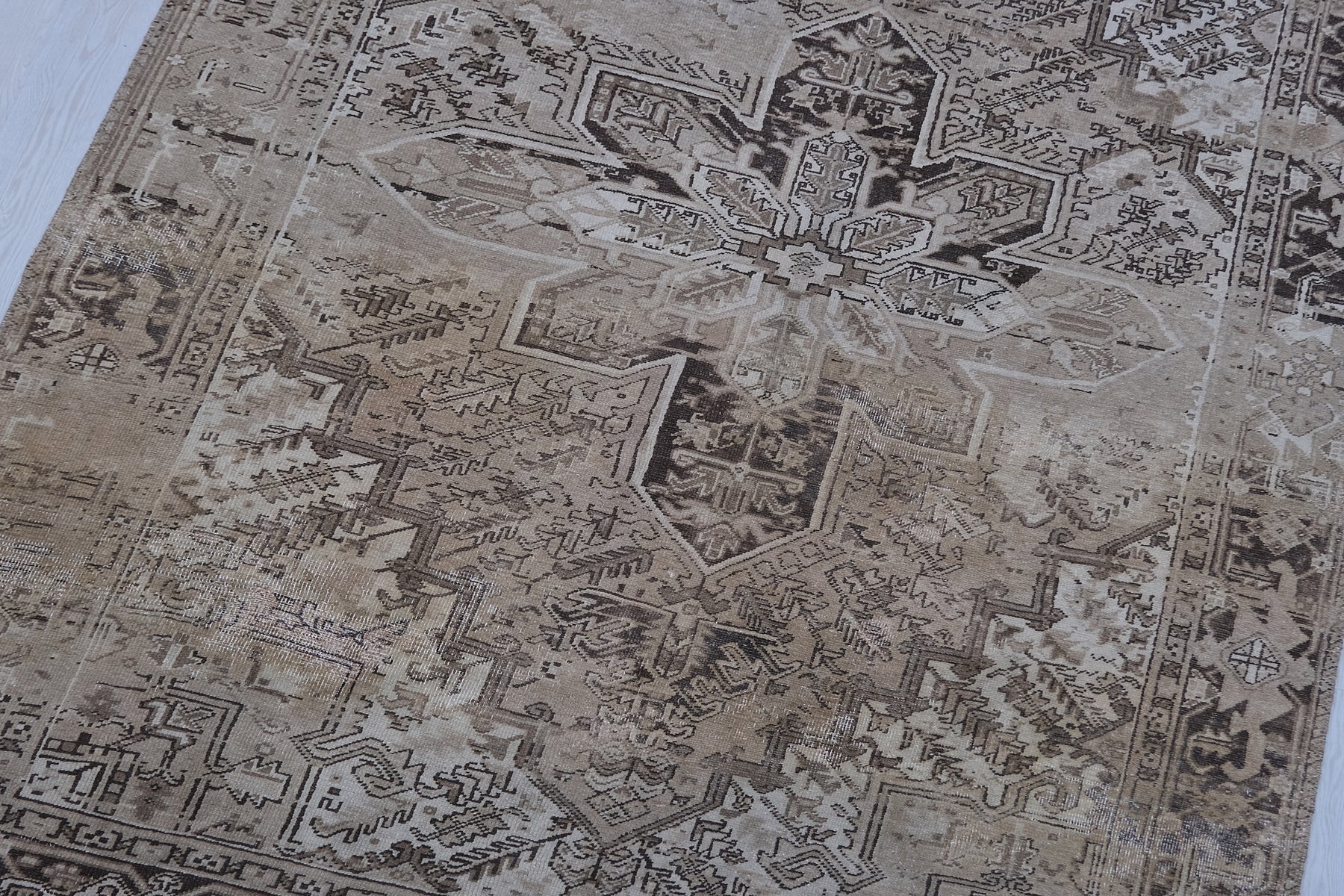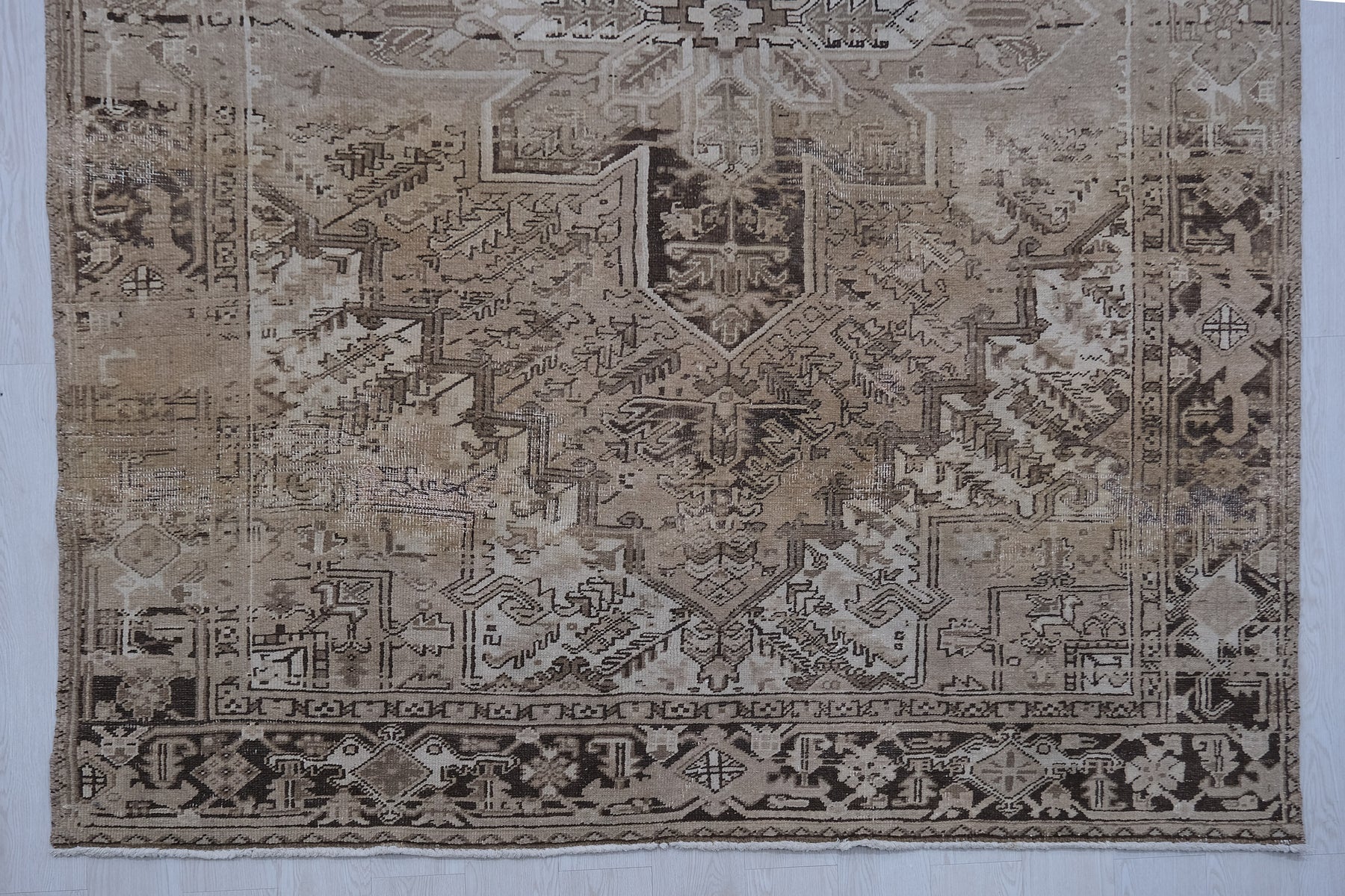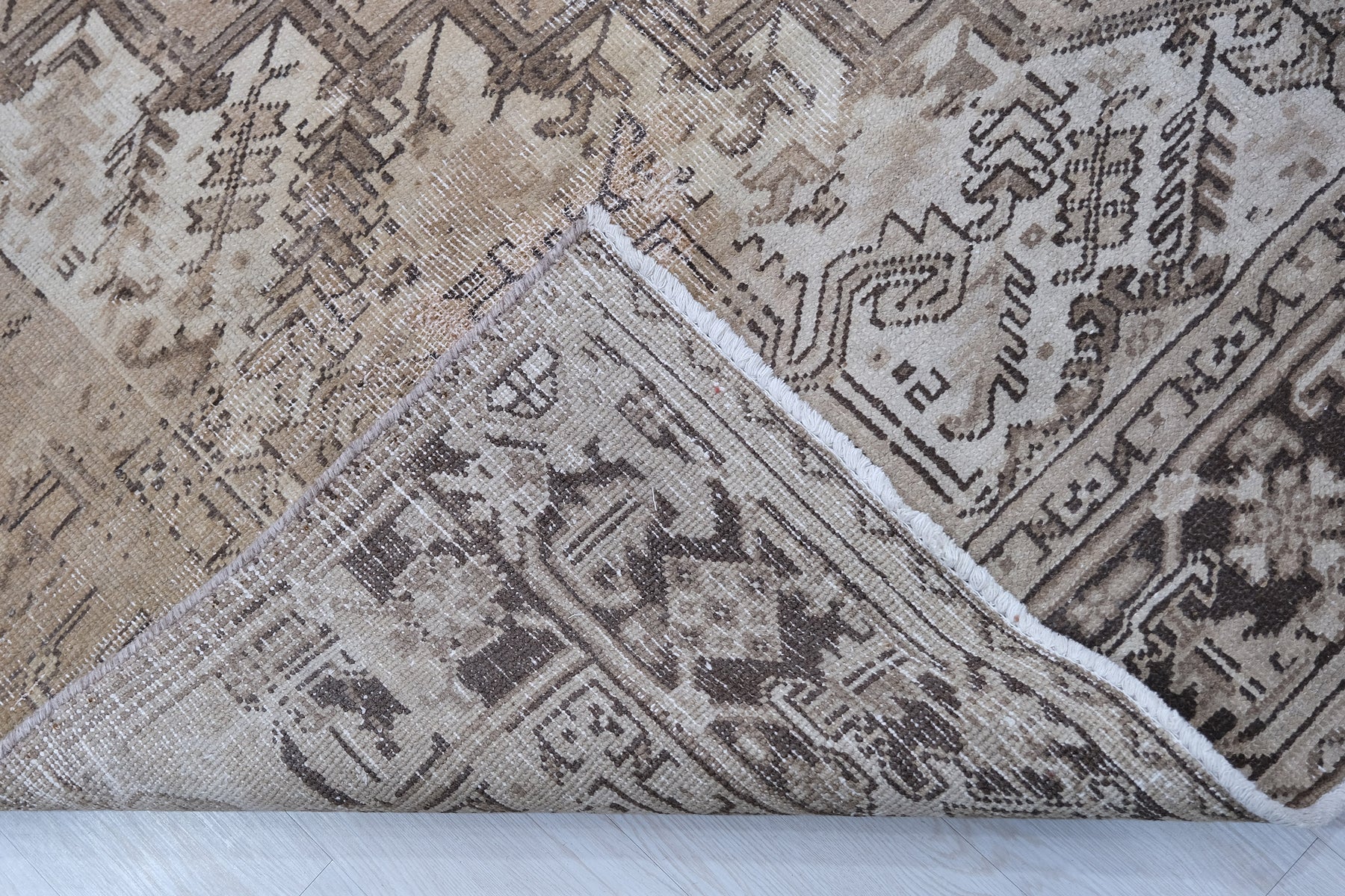This is a hand-knotted, one-of-a-kind vintage rug. Due to the nature of this piece, there may be slight imperfections in its wear, shape, dimensions, and color. All of our rugs are professionally cleaned and repaired.