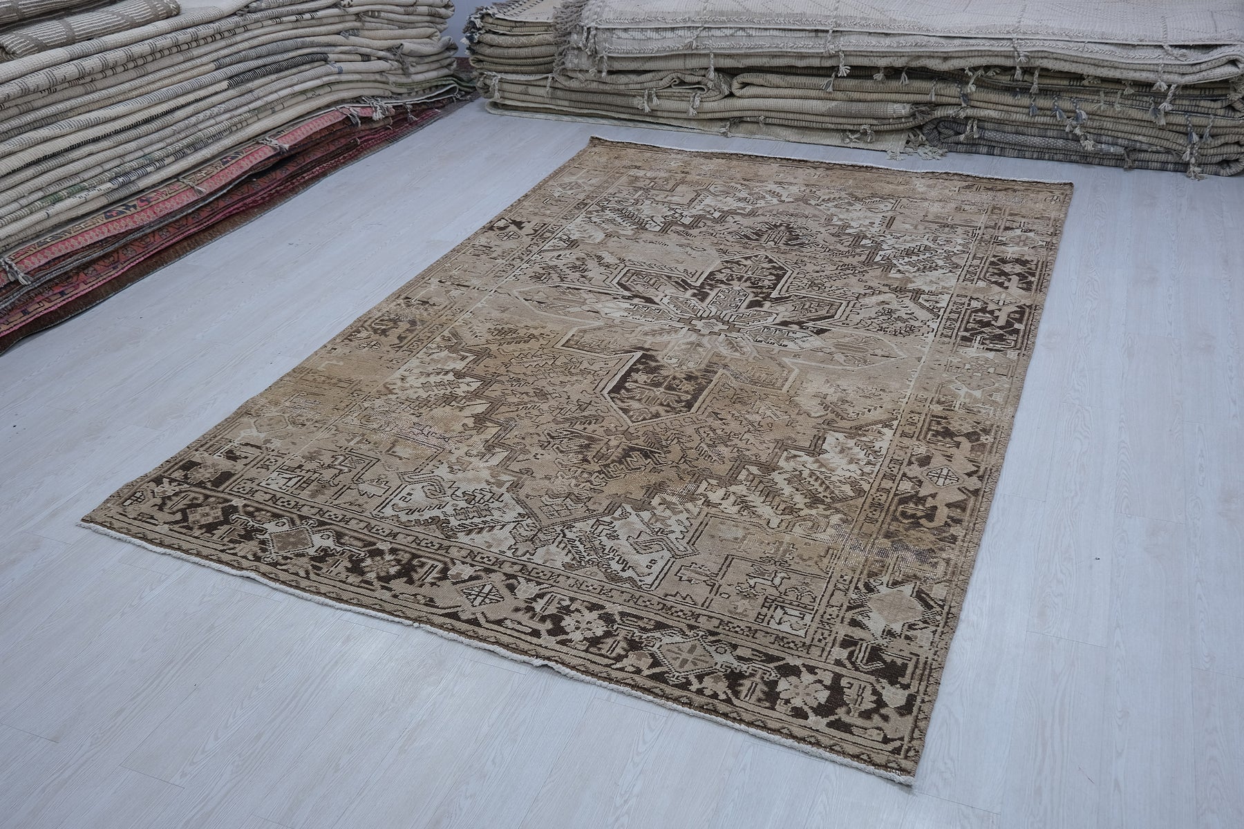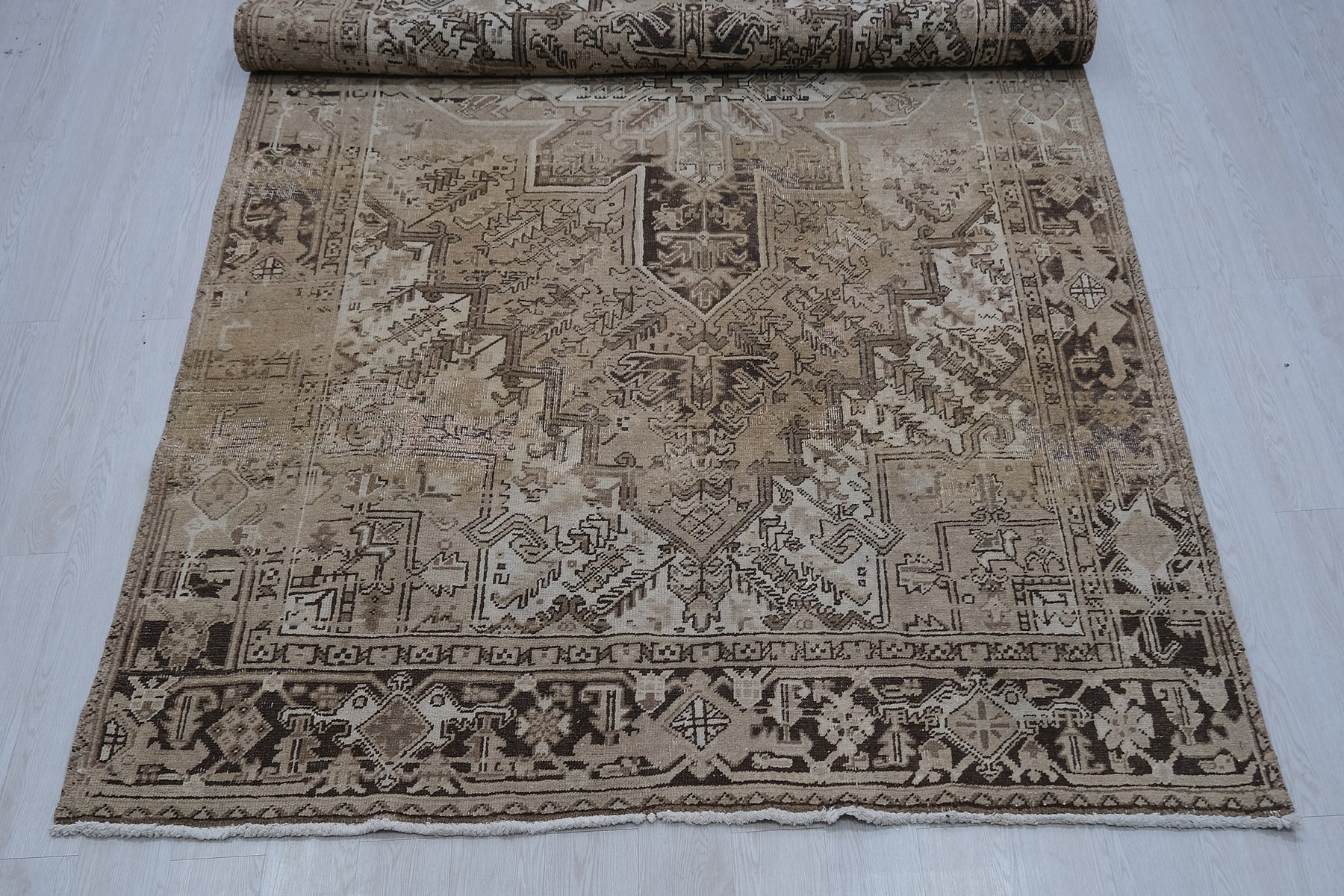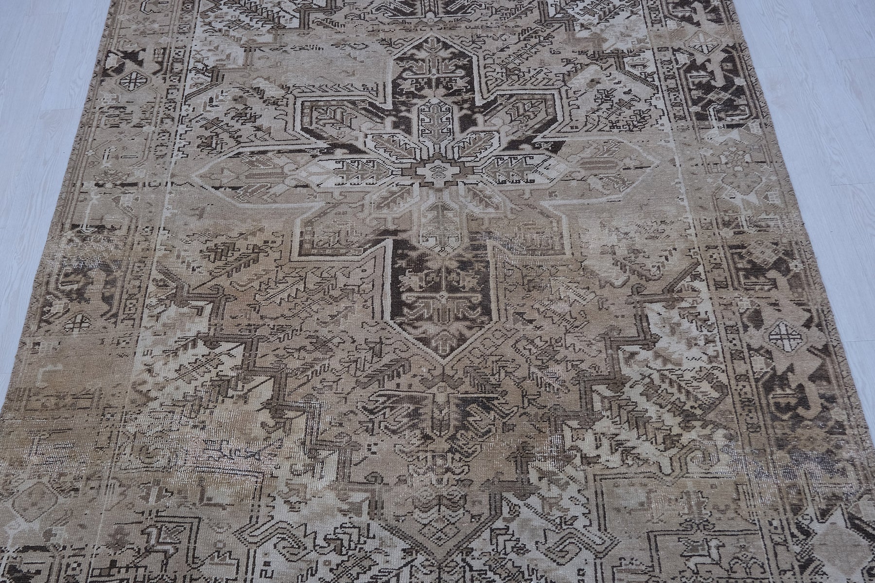 This is a hand-knotted, one-of-a-kind vintage rug. Due to the nature of this piece, there may be slight imperfections in its wear, shape, dimensions, and color. All of our rugs are professionally cleaned and repaired.