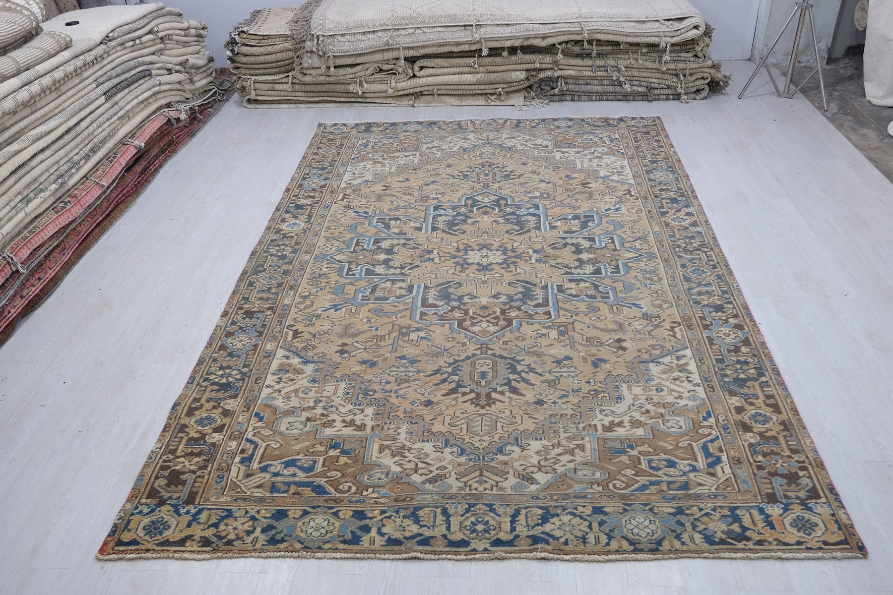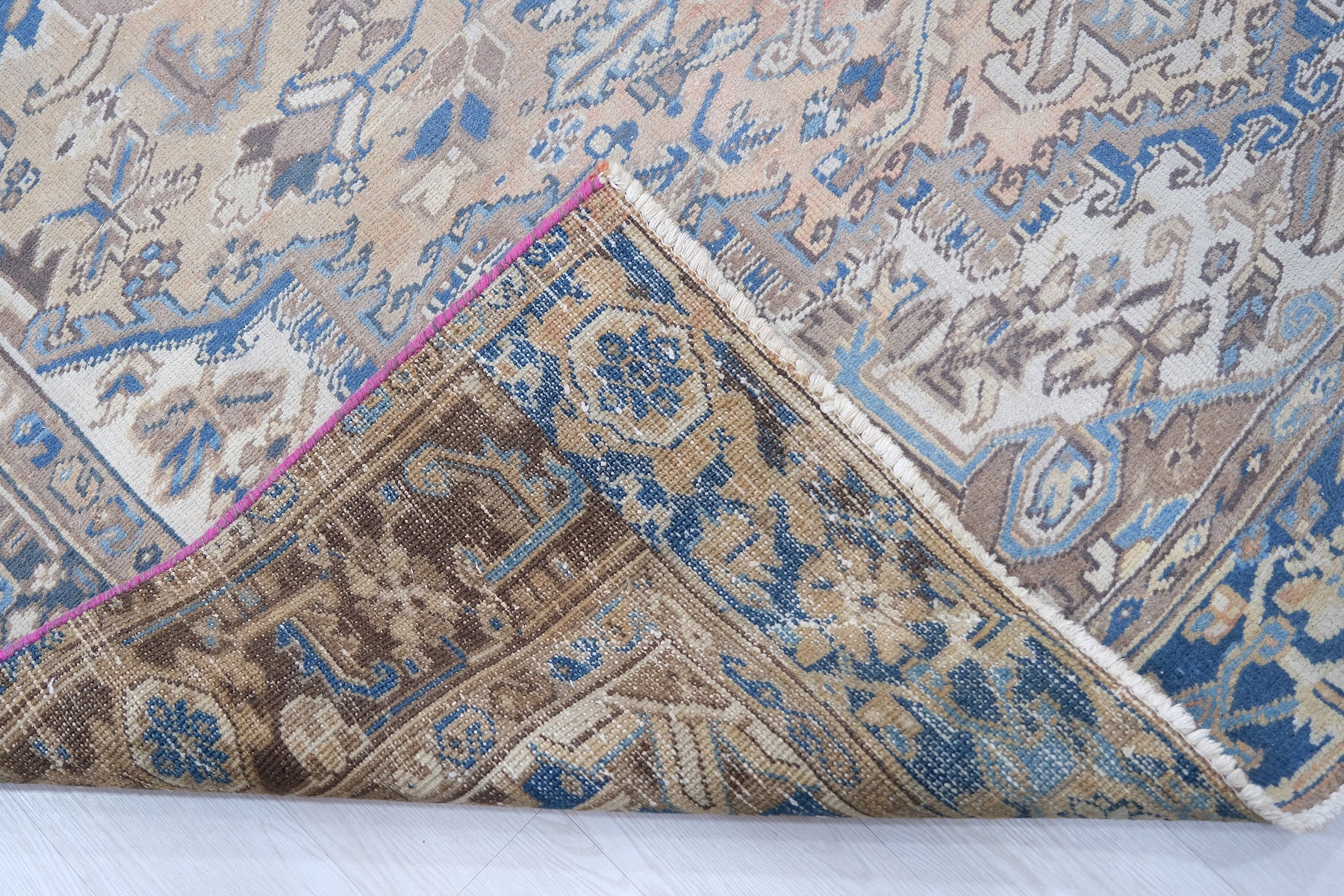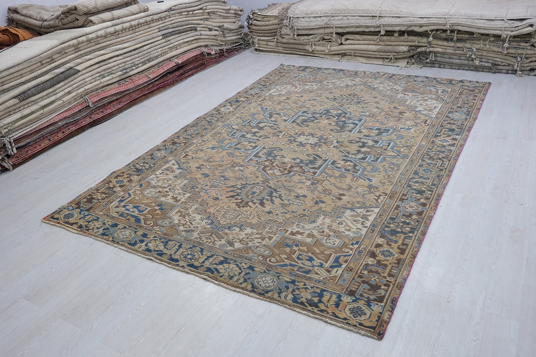 This is a hand-knotted, one-of-a-kind vintage rug. Due to the nature of this piece, there may be slight imperfections in its wear, shape, dimensions, and color. All of our rugs are professionally cleaned and repaired.