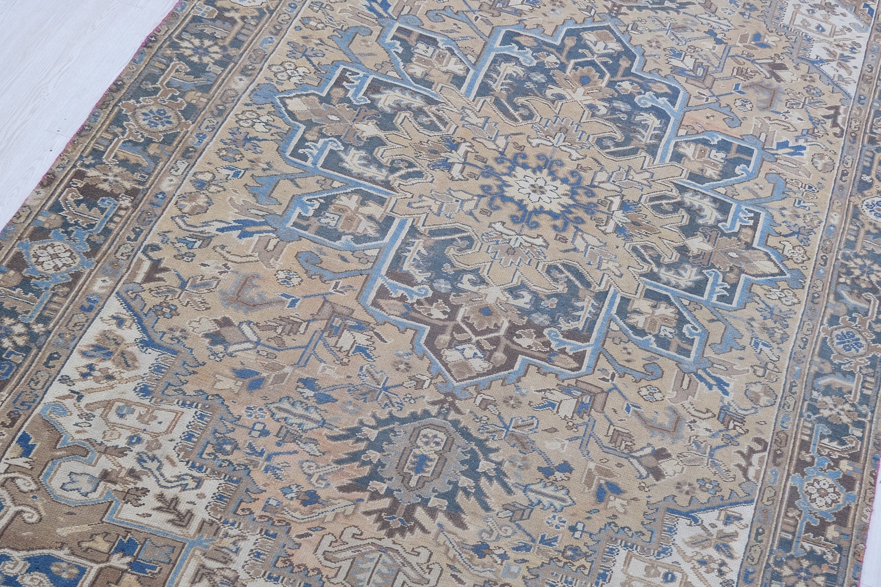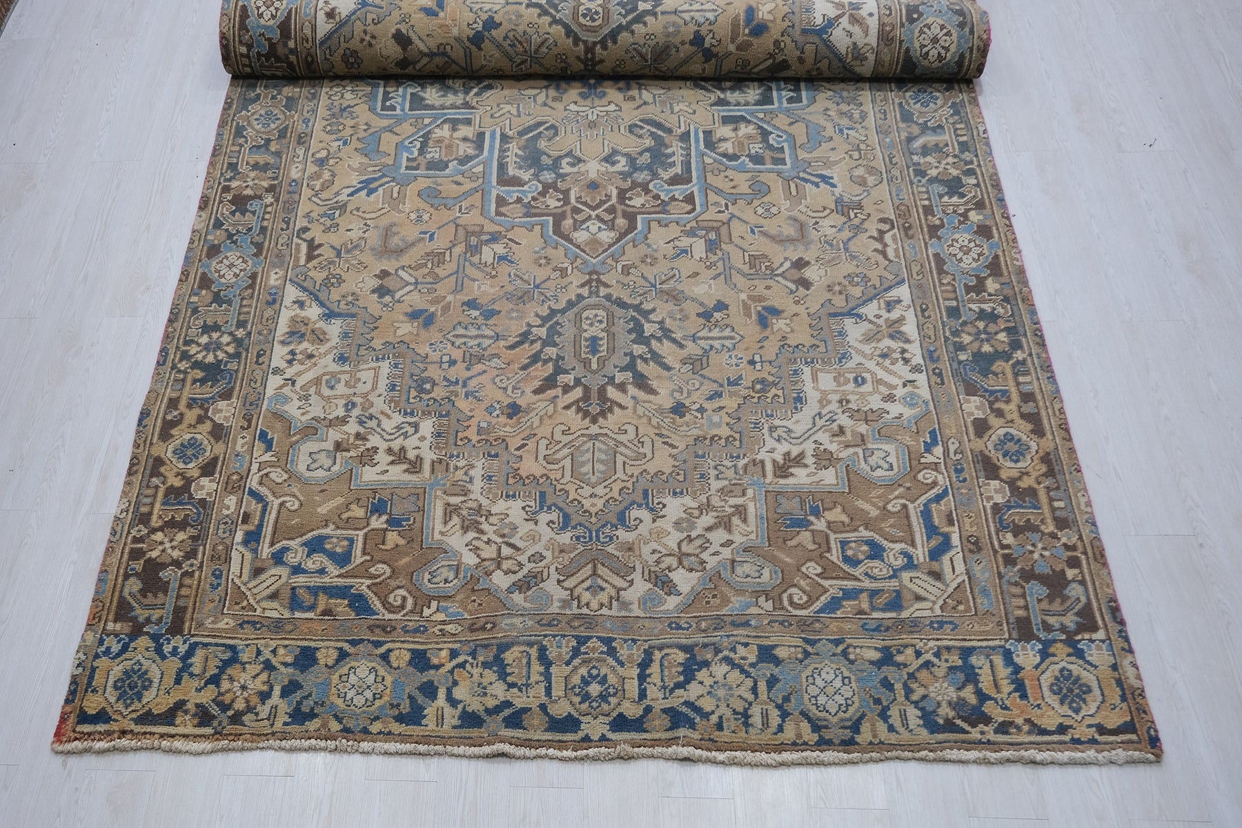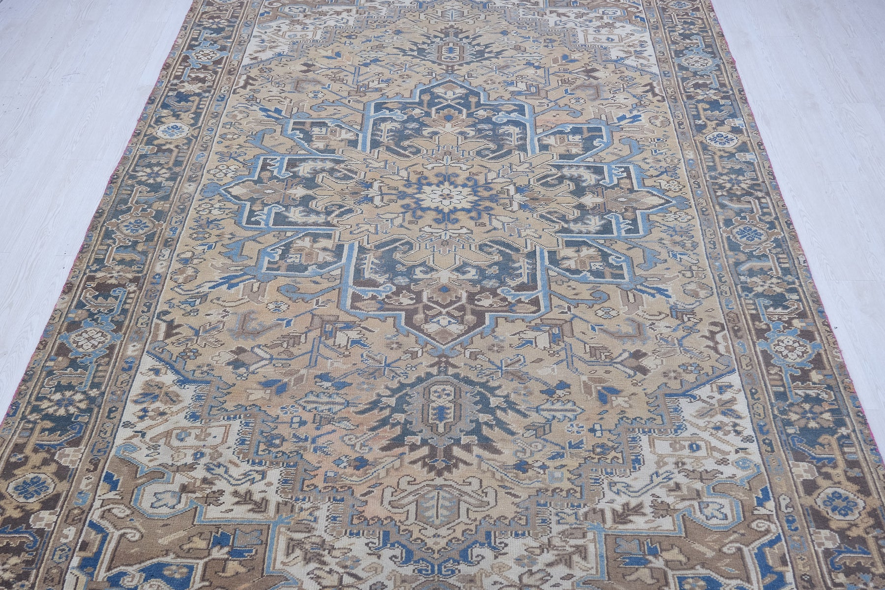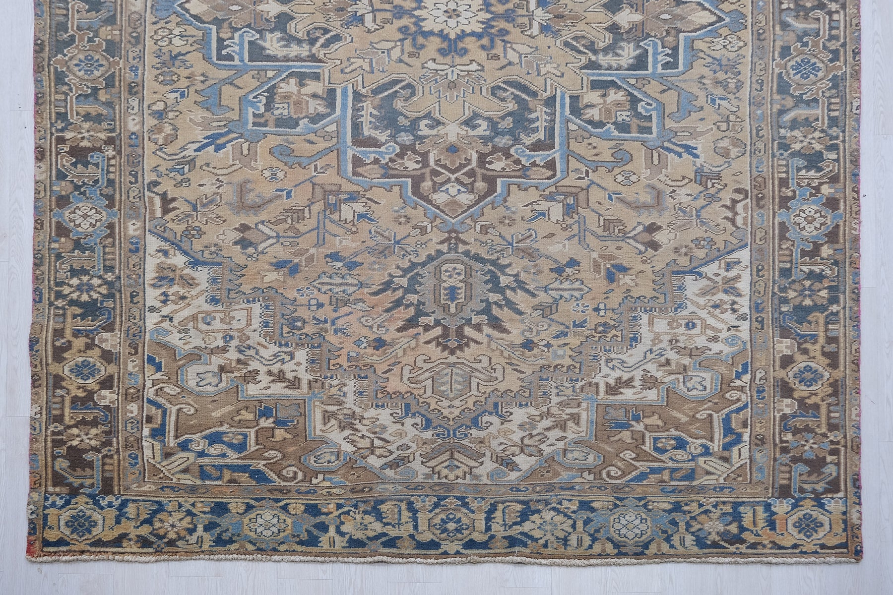 This is a hand-knotted, one-of-a-kind vintage rug. Due to the nature of this piece, there may be slight imperfections in its wear, shape, dimensions, and color. All of our rugs are professionally cleaned and repaired.