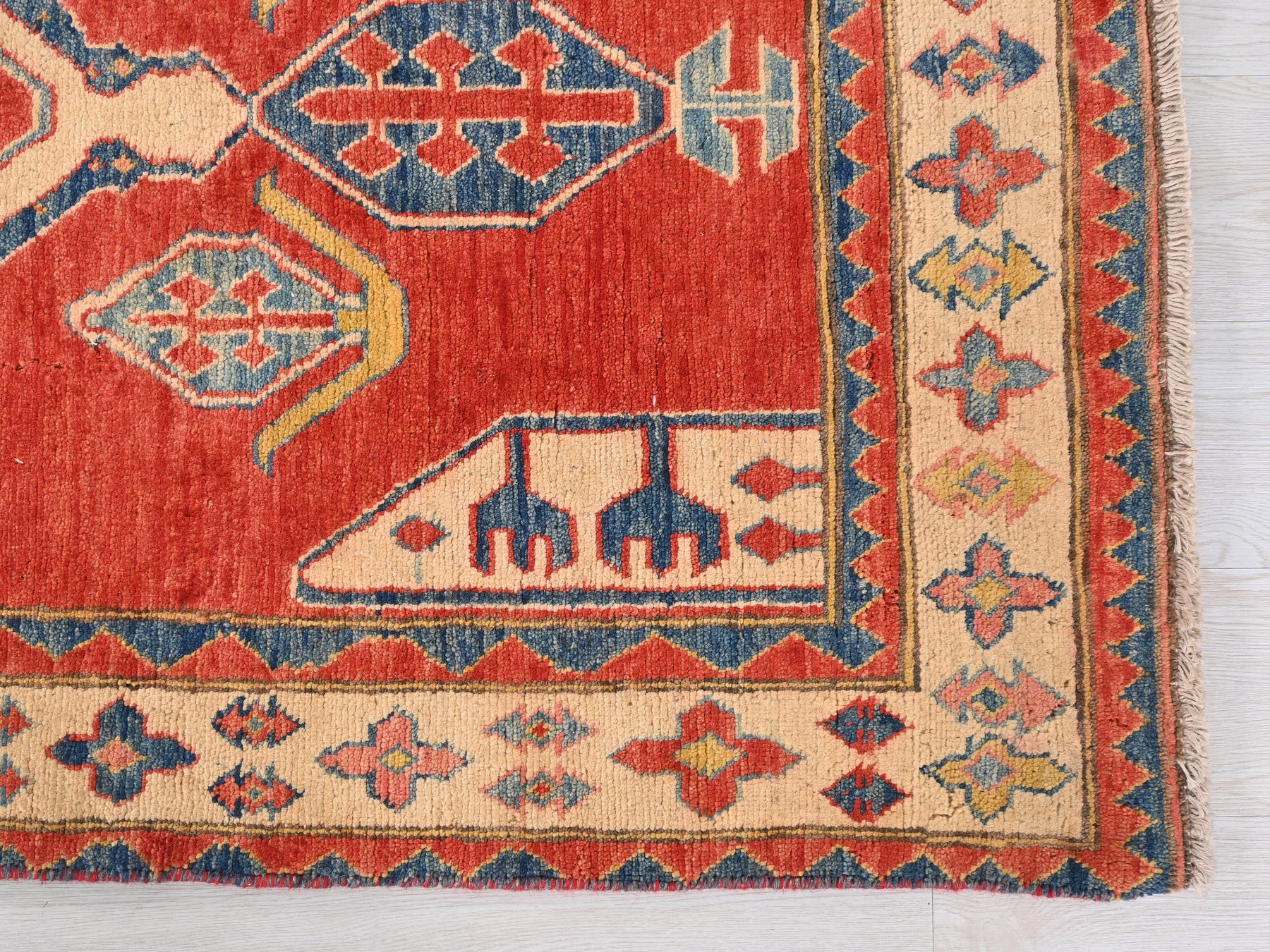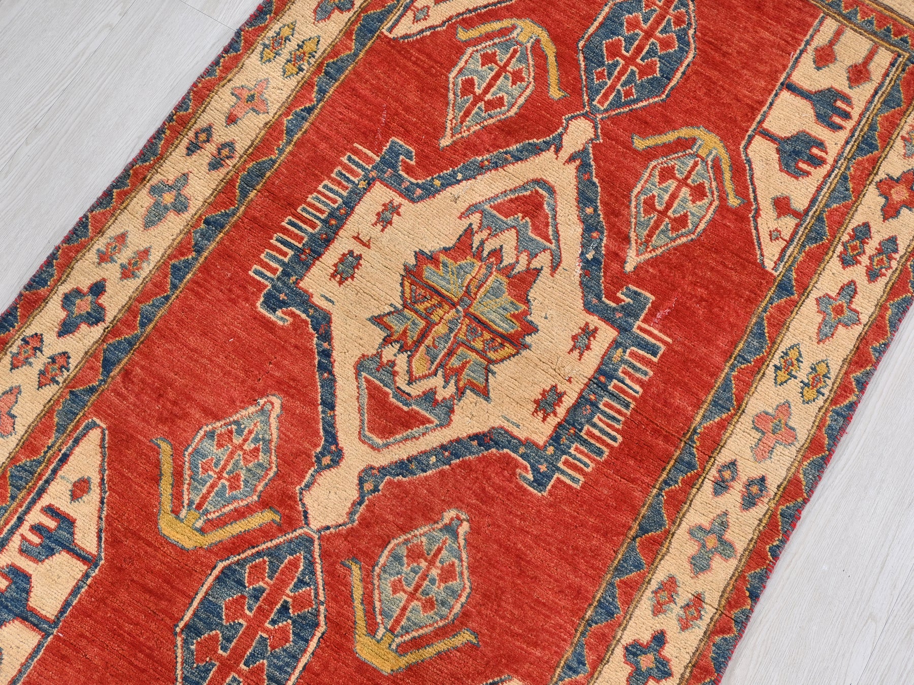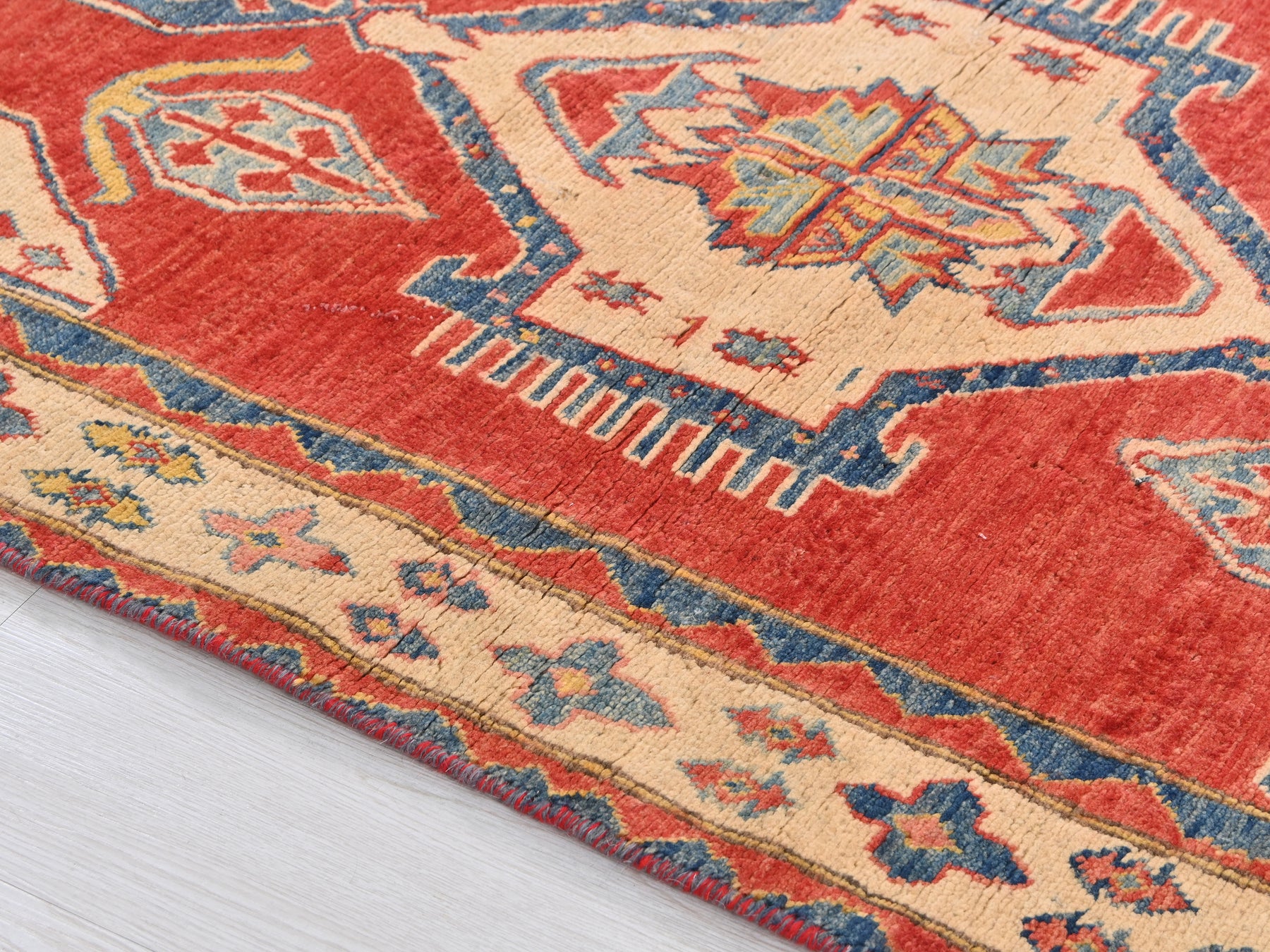 This is a hand-knotted, one-of-a-kind vintage rug. Due to the nature of this piece, there may be slight imperfections in its wear, shape, dimensions, and color. All of our rugs are professionally cleaned and repaired.