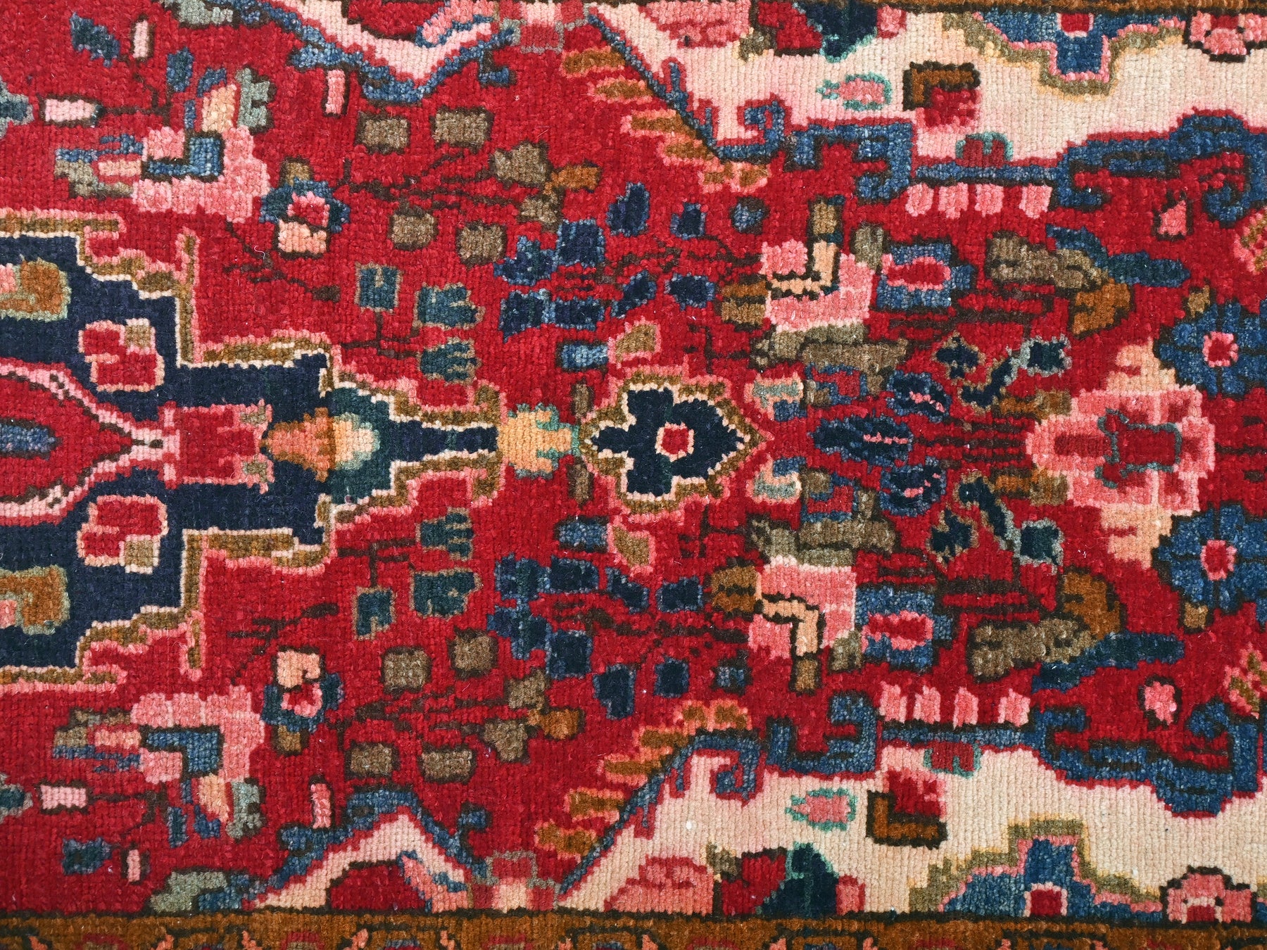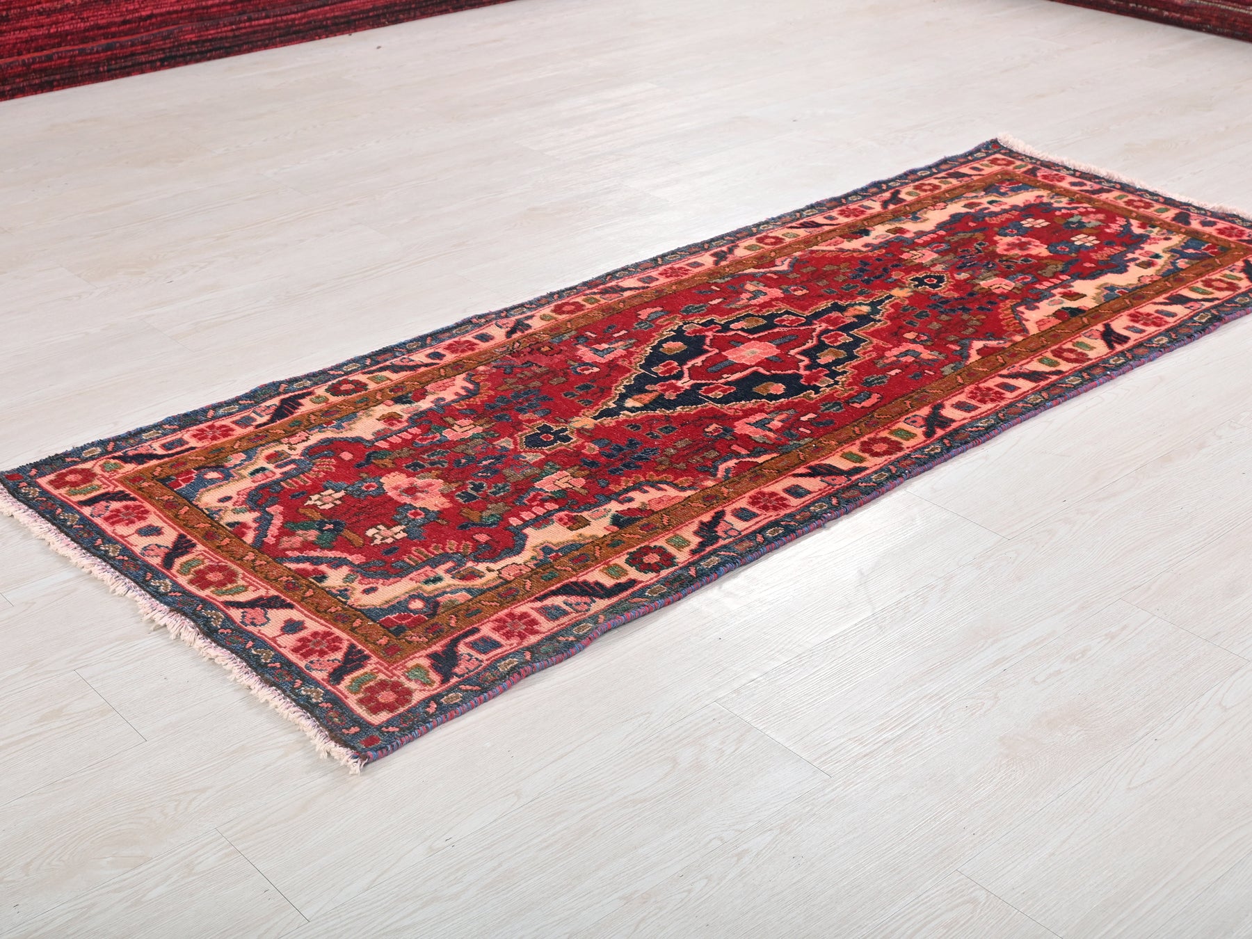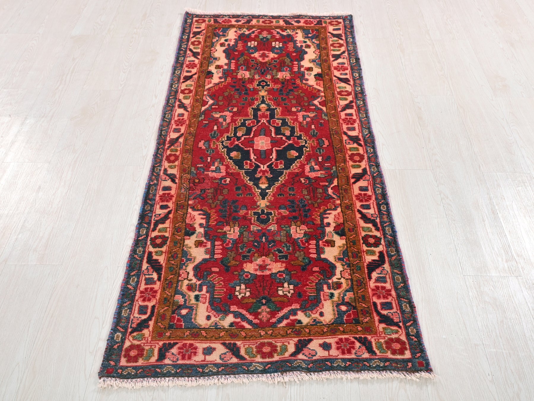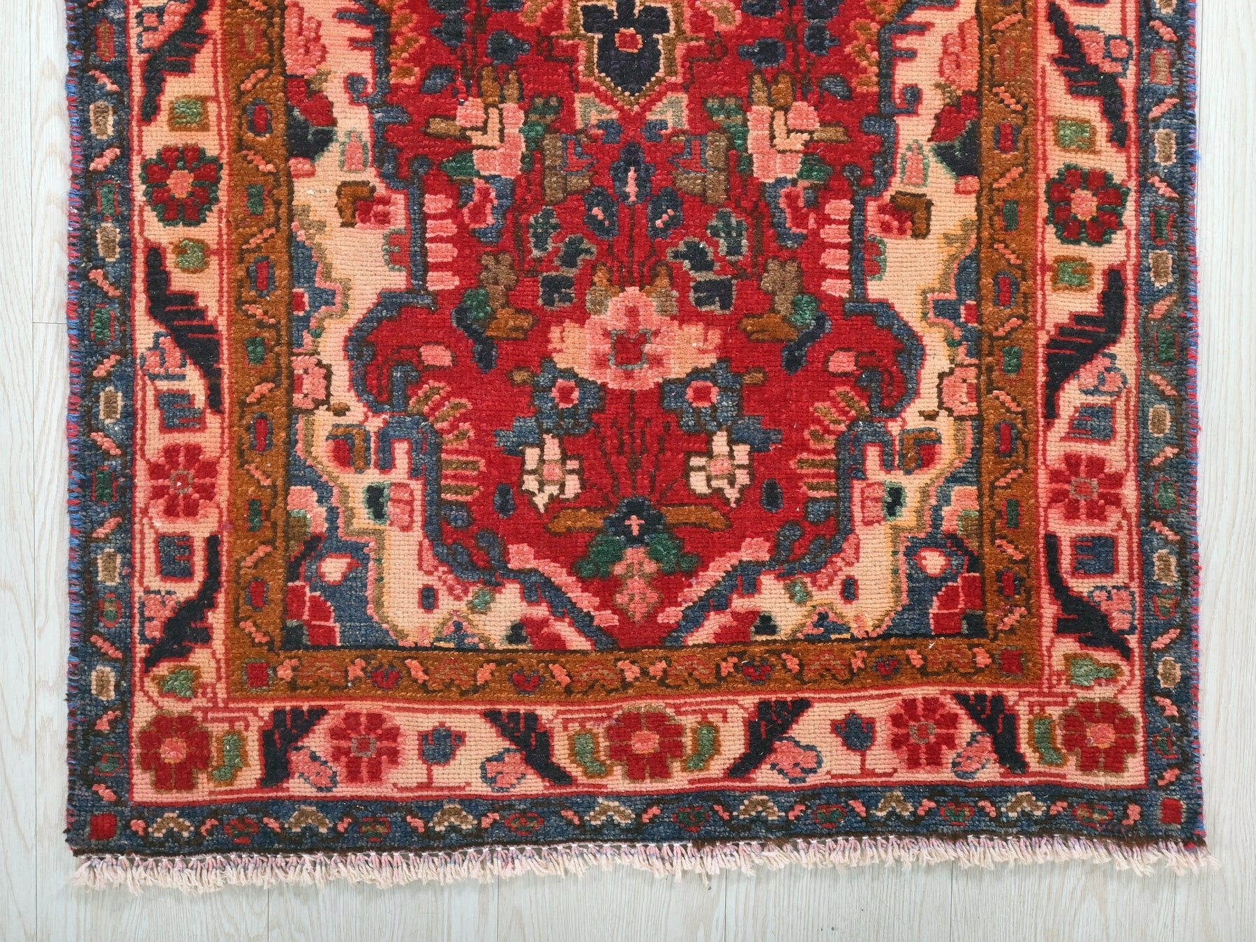 This is a hand-knotted, one-of-a-kind vintage rug. Due to the nature of this piece, there may be slight imperfections in its wear, shape, dimensions, and color. All of our rugs are professionally cleaned and repaired.