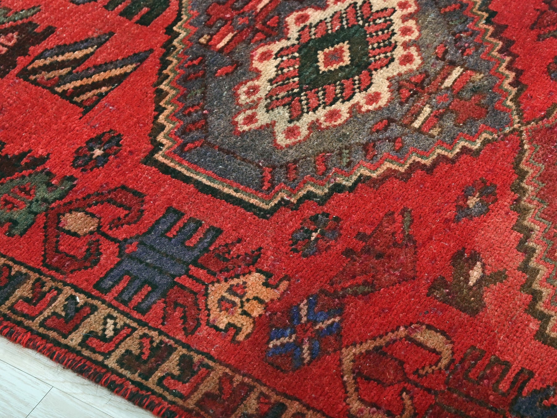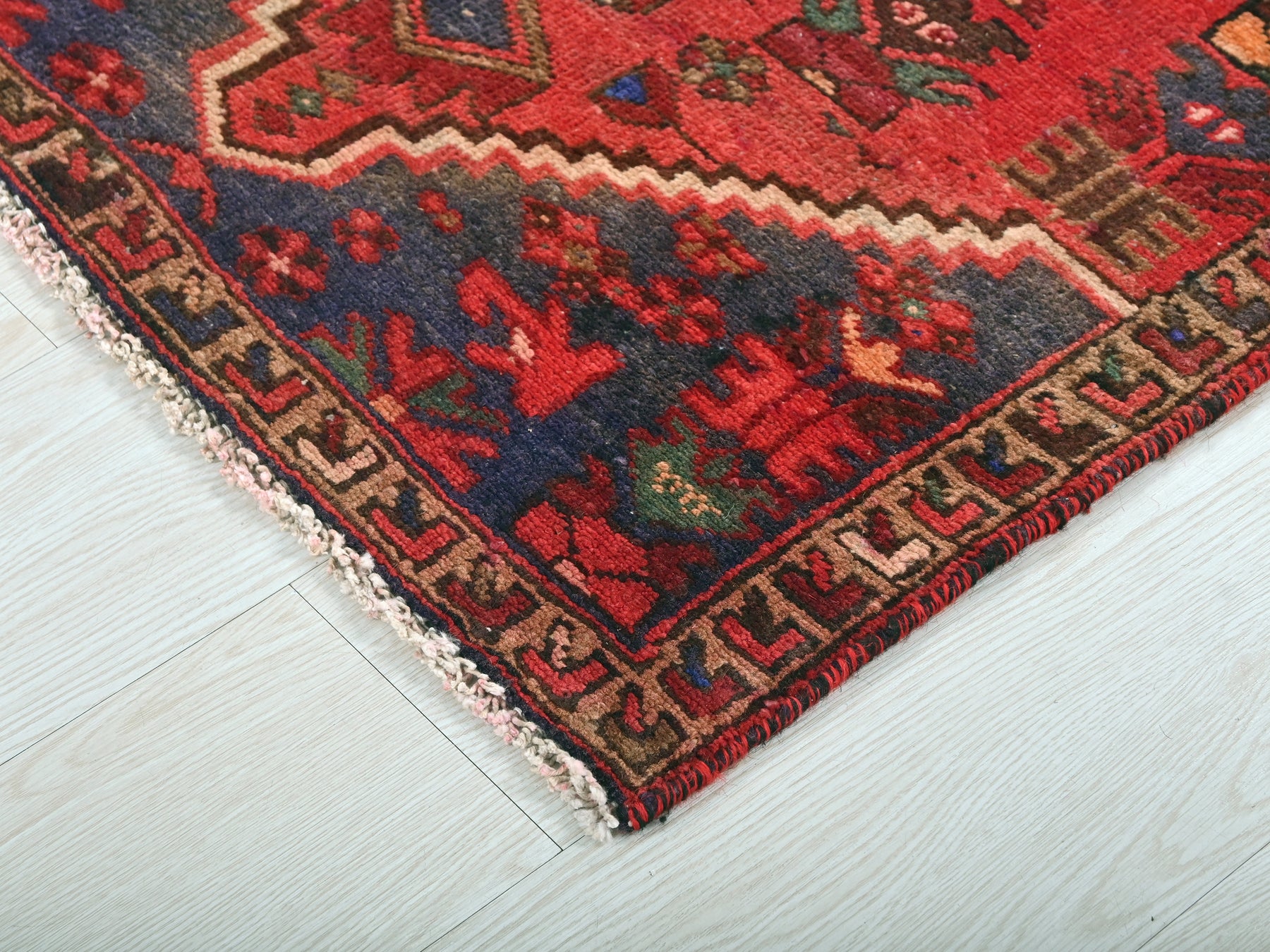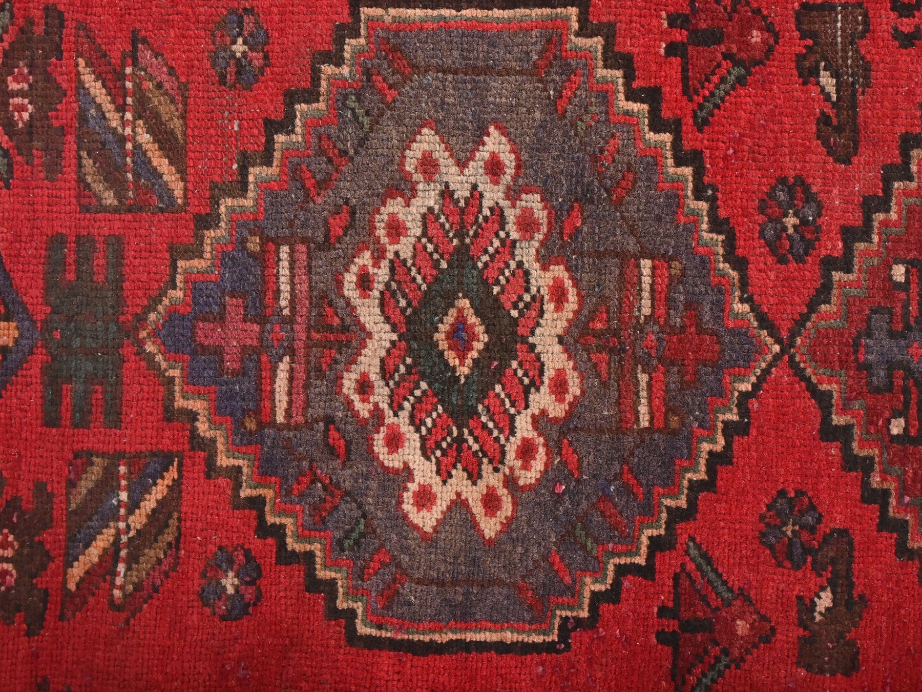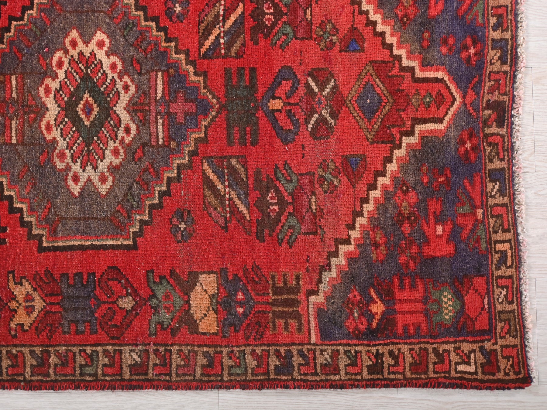 This is a hand-knotted, one-of-a-kind vintage rug. Due to the nature of this piece, there may be slight imperfections in its wear, shape, dimensions, and color. All of our rugs are professionally cleaned and repaired.