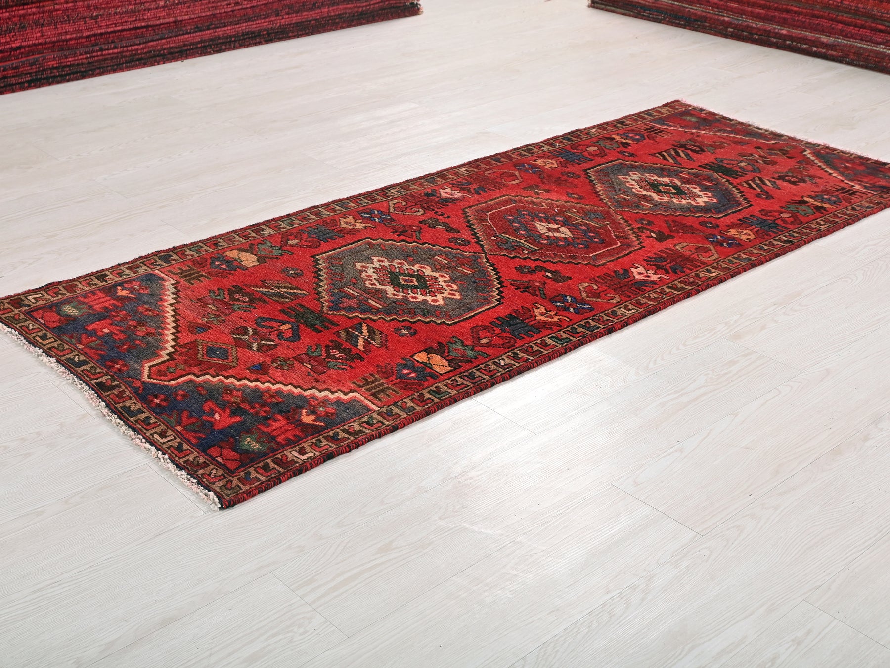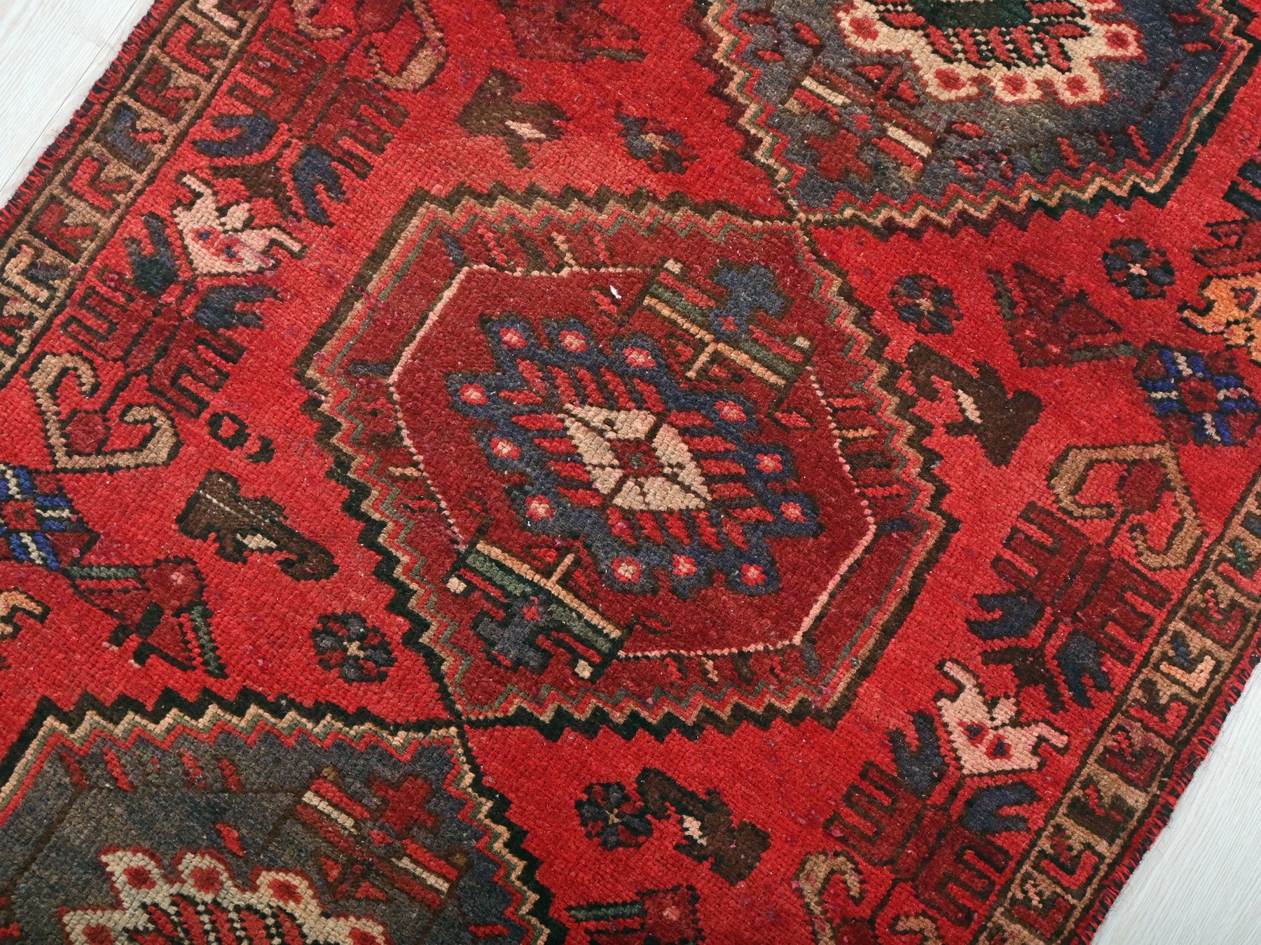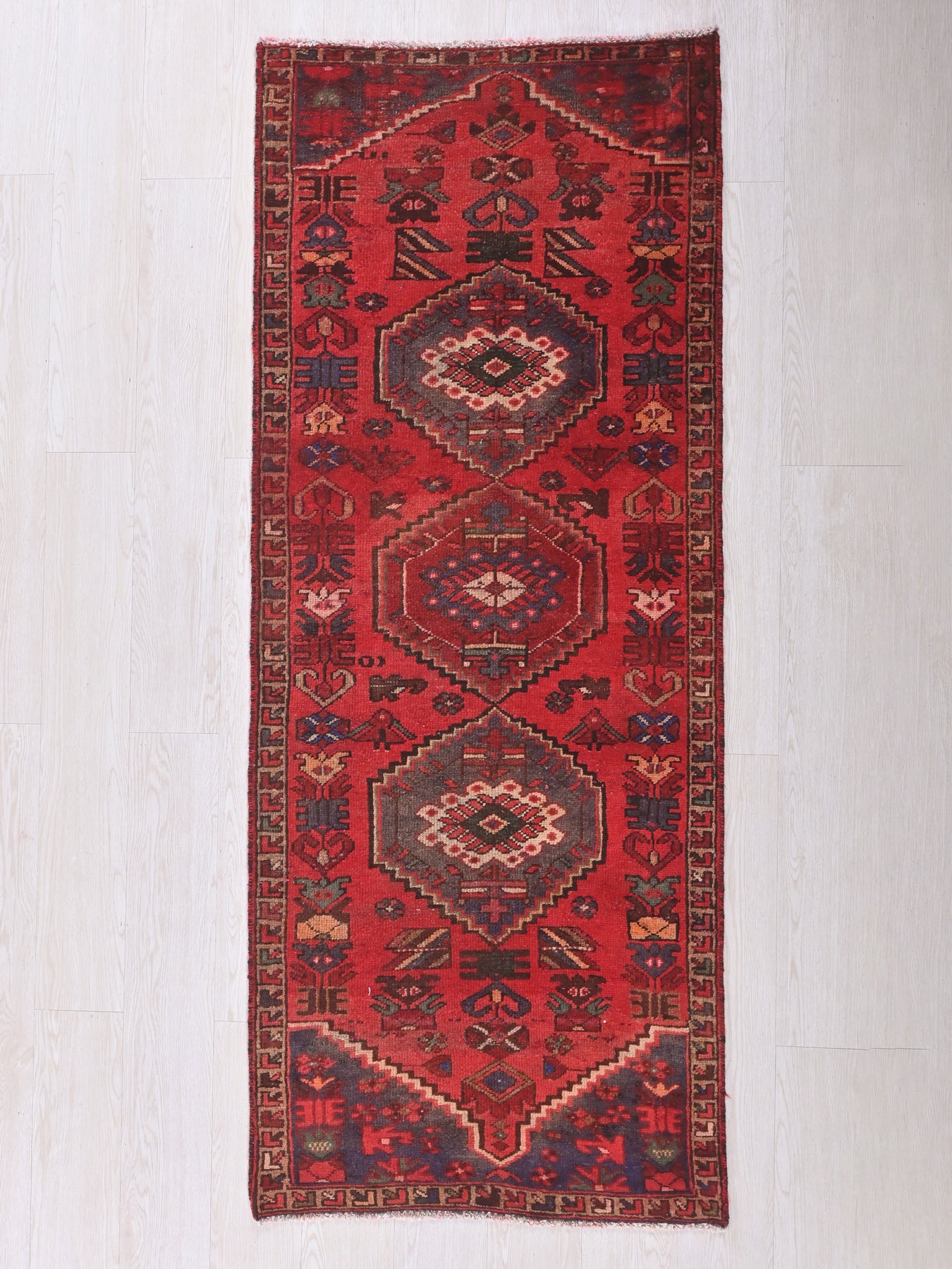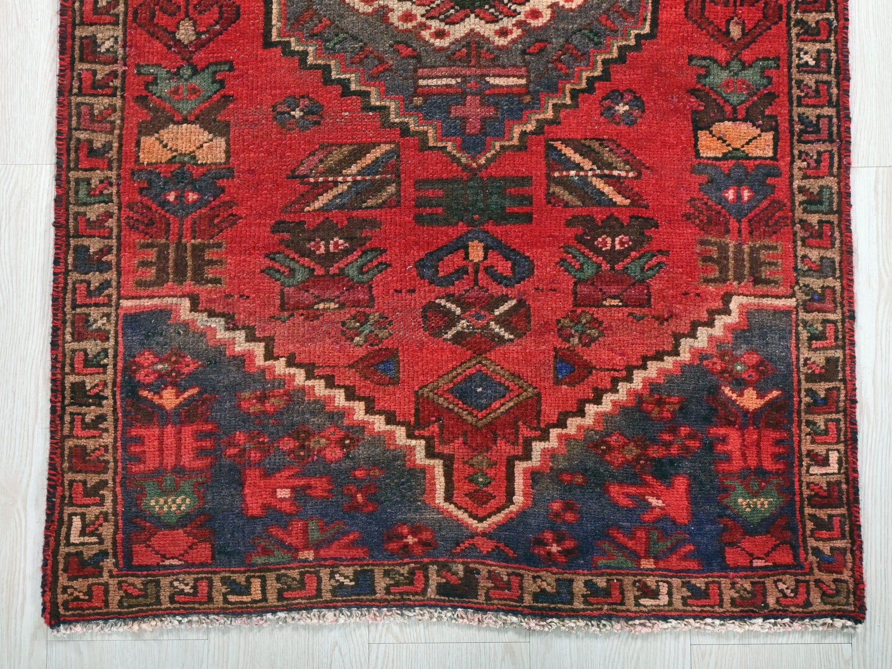 This is a hand-knotted, one-of-a-kind vintage rug. Due to the nature of this piece, there may be slight imperfections in its wear, shape, dimensions, and color. All of our rugs are professionally cleaned and repaired.