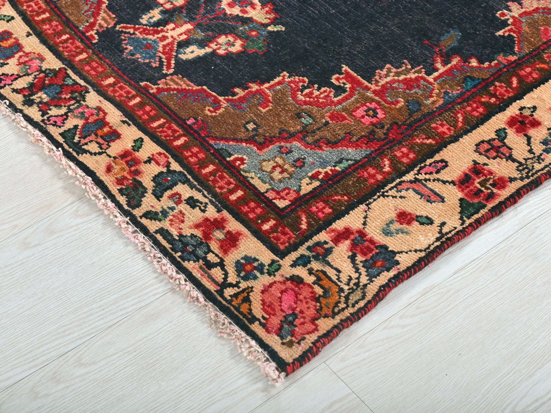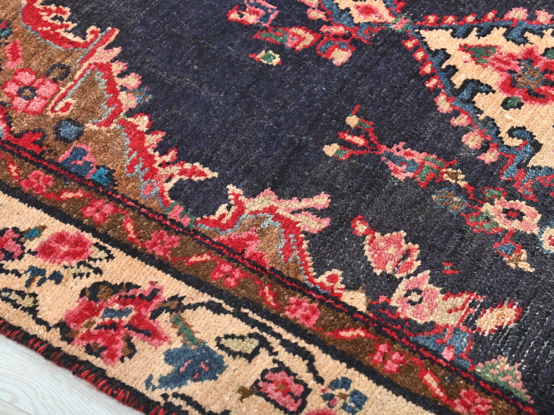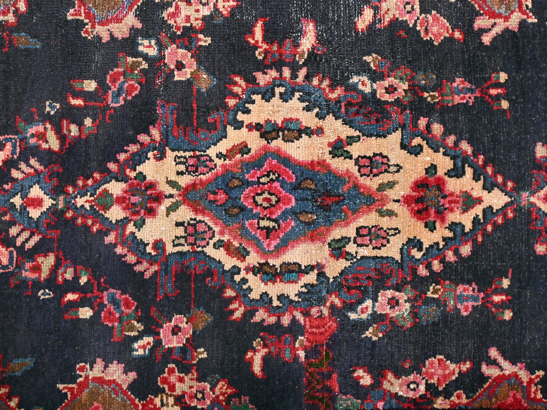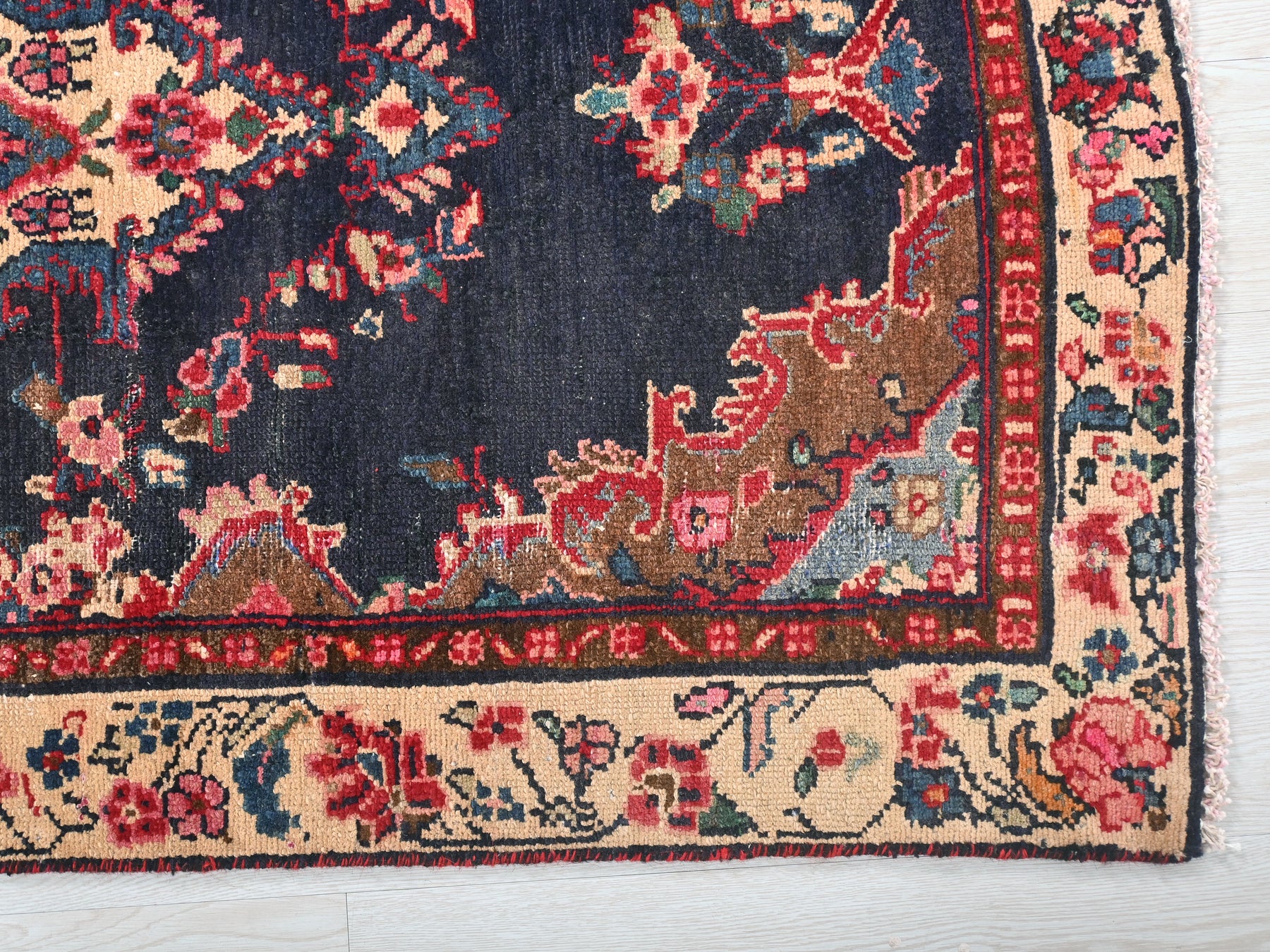 This is a hand-knotted, one-of-a-kind vintage rug. Due to the nature of this piece, there may be slight imperfections in its wear, shape, dimensions, and color. All of our rugs are professionally cleaned and repaired.