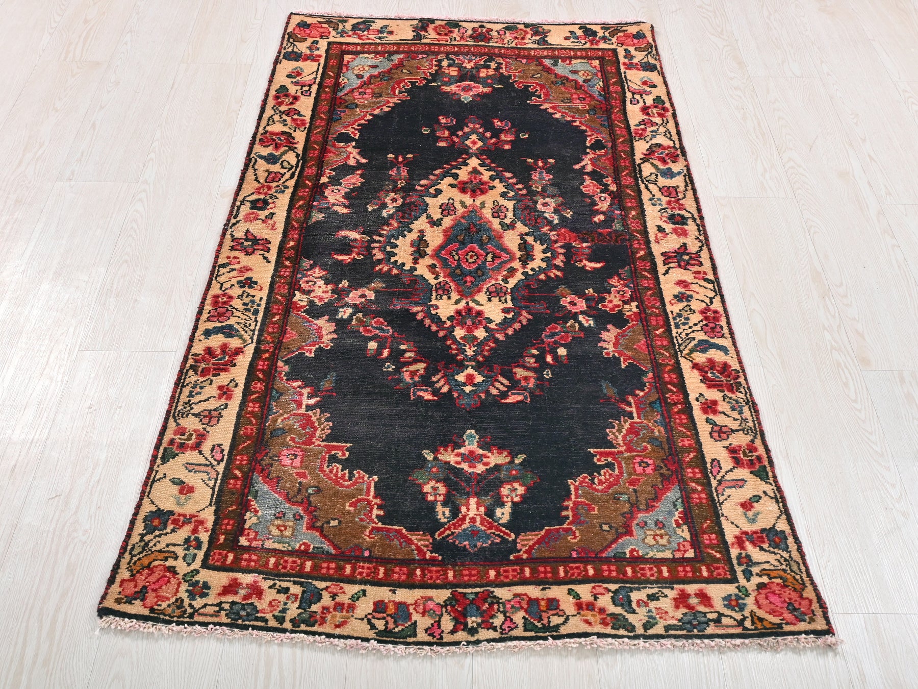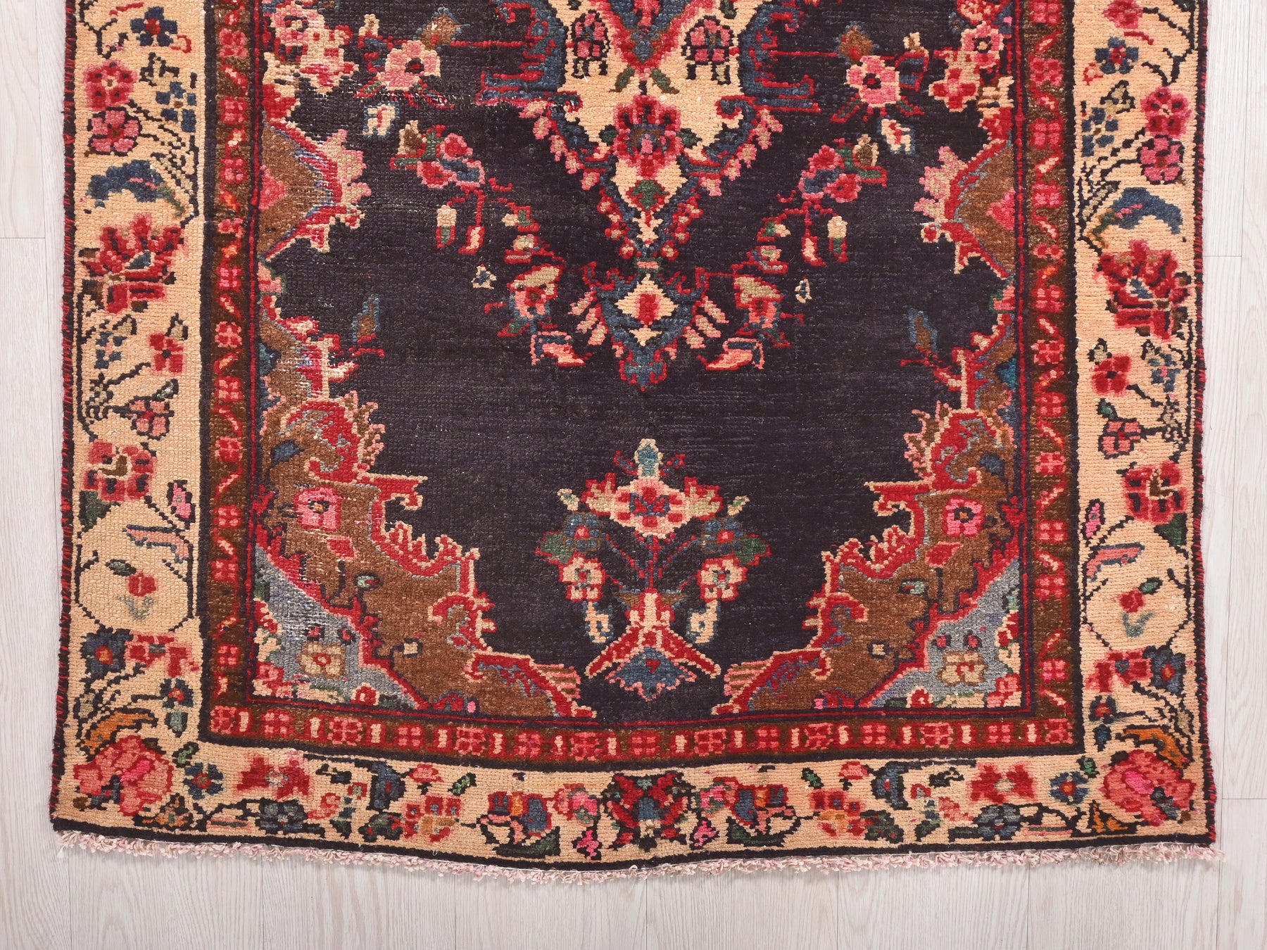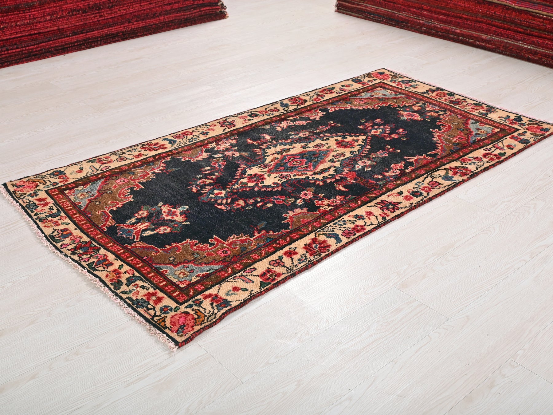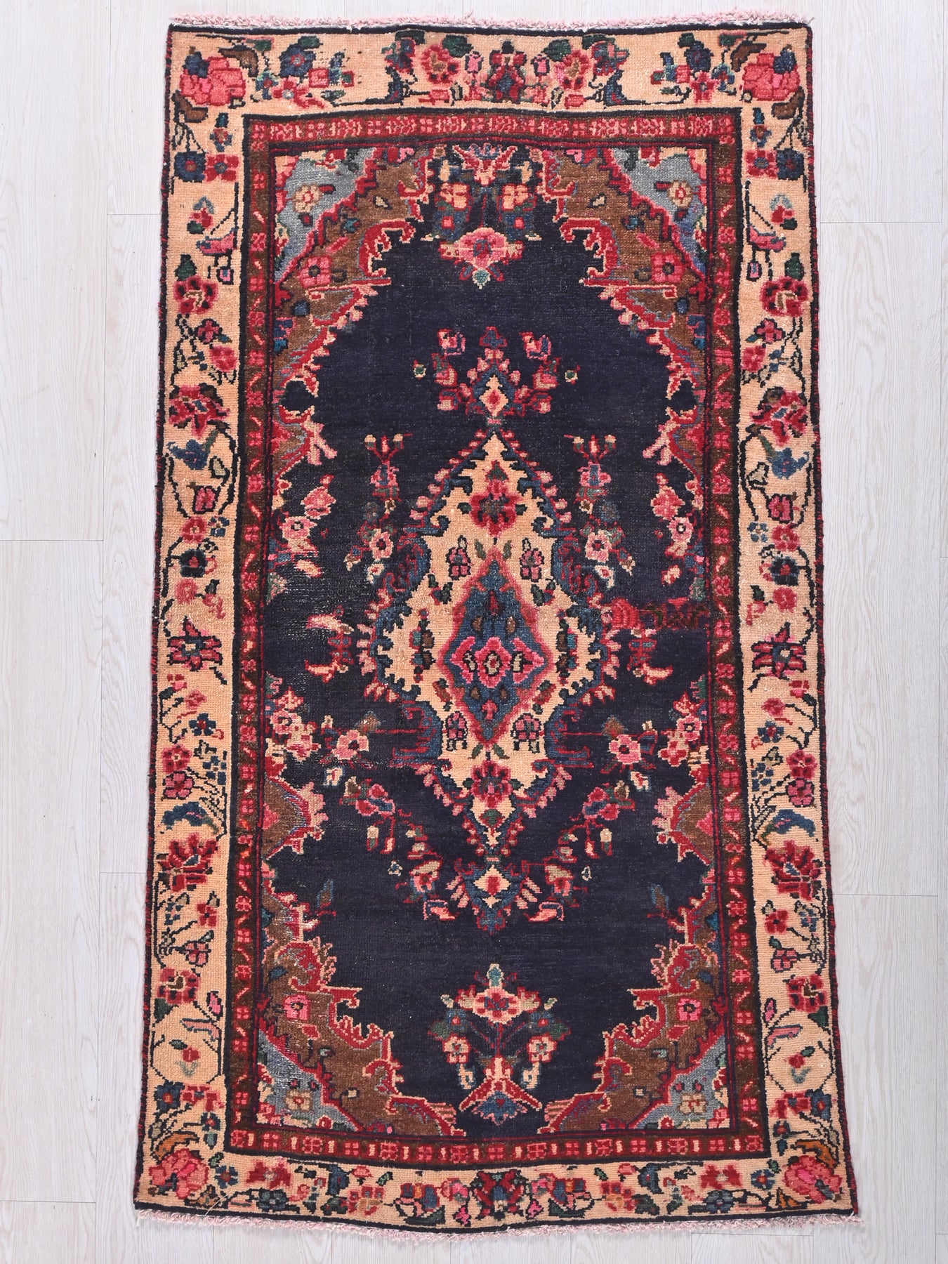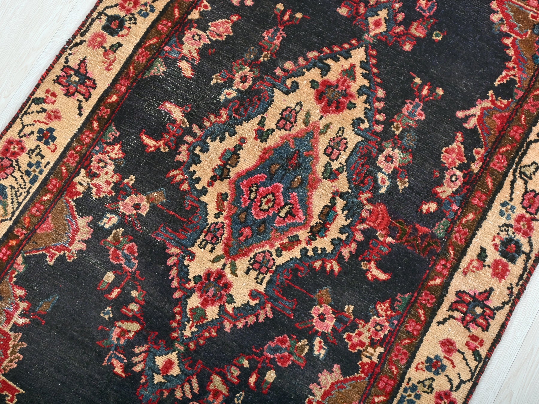 This is a hand-knotted, one-of-a-kind vintage rug. Due to the nature of this piece, there may be slight imperfections in its wear, shape, dimensions, and color. All of our rugs are professionally cleaned and repaired.