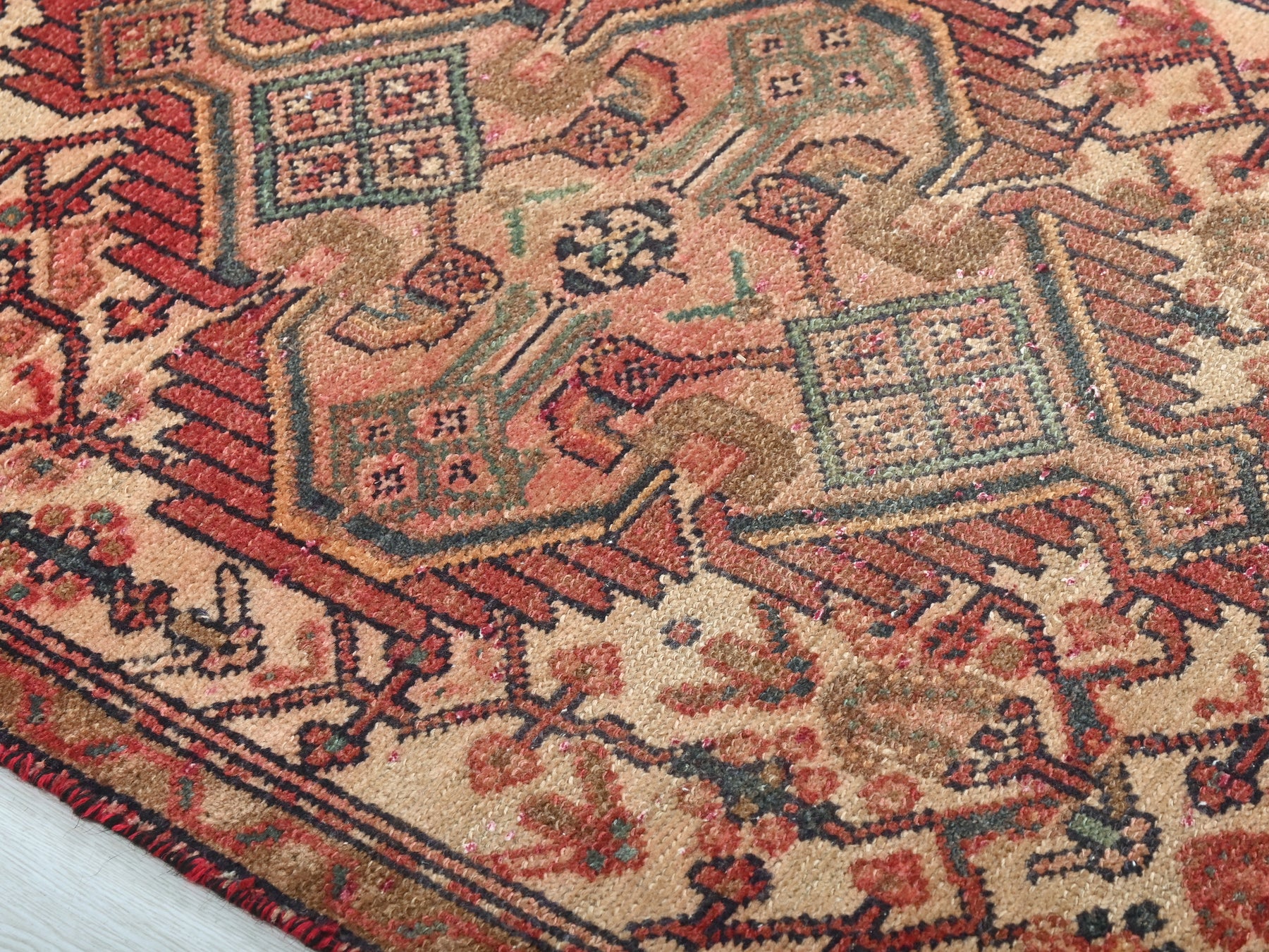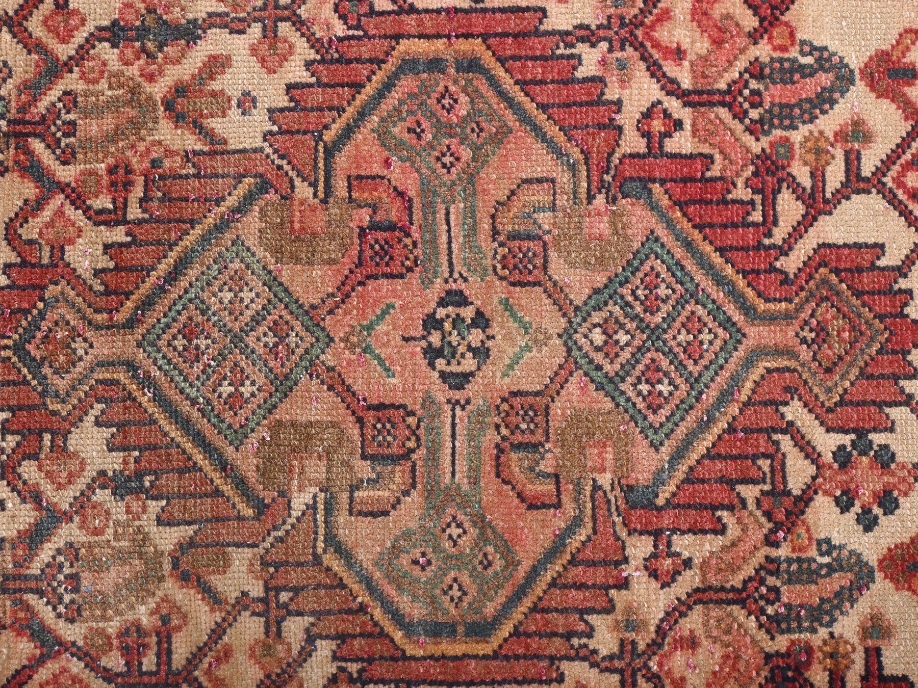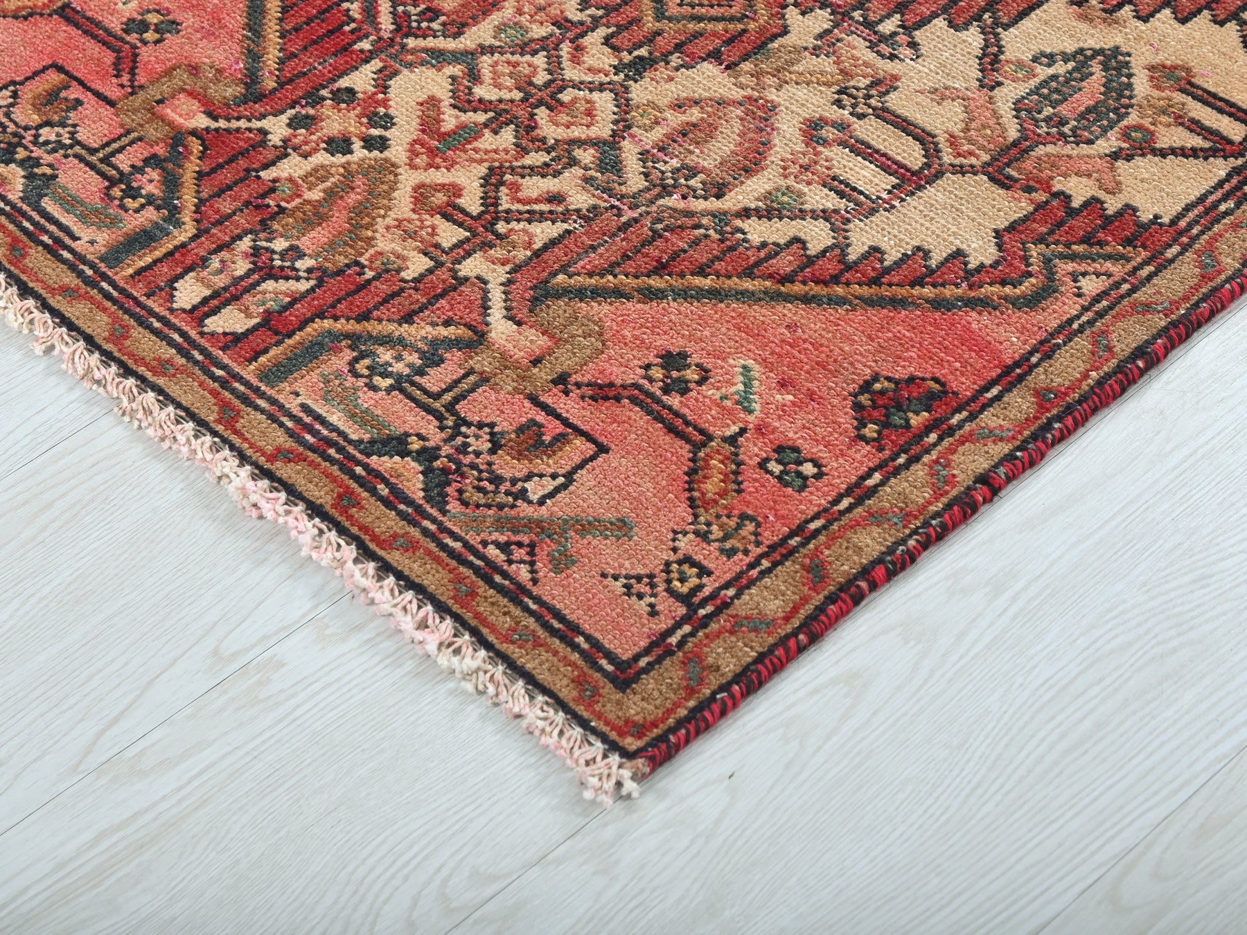 This is a hand-knotted, one-of-a-kind vintage rug. Due to the nature of this piece, there may be slight imperfections in its wear, shape, dimensions, and color. All of our rugs are professionally cleaned and repaired.