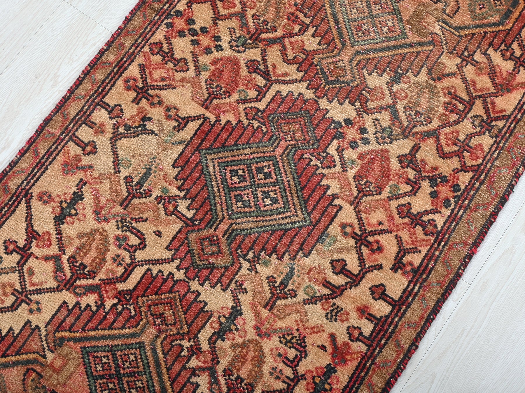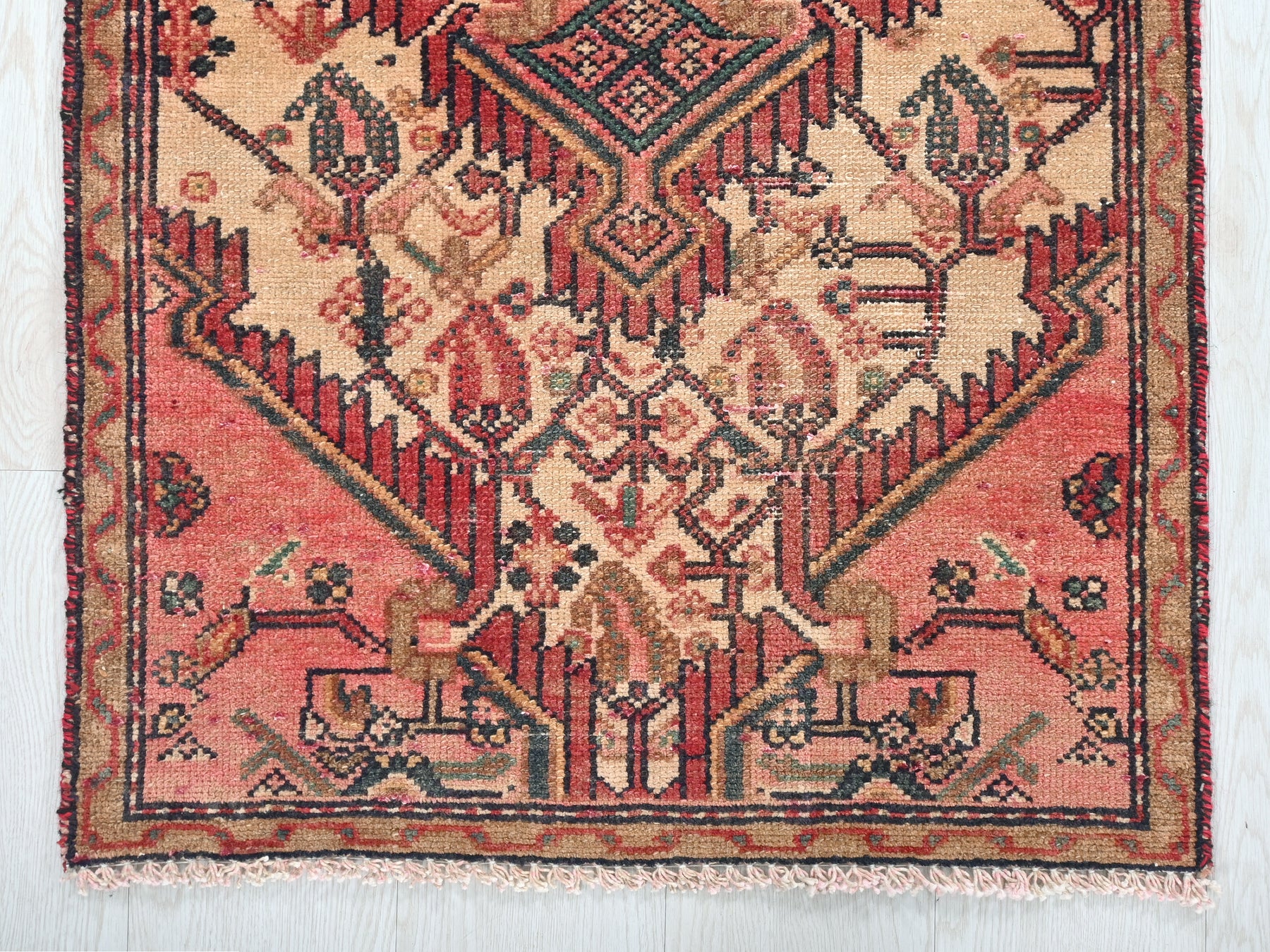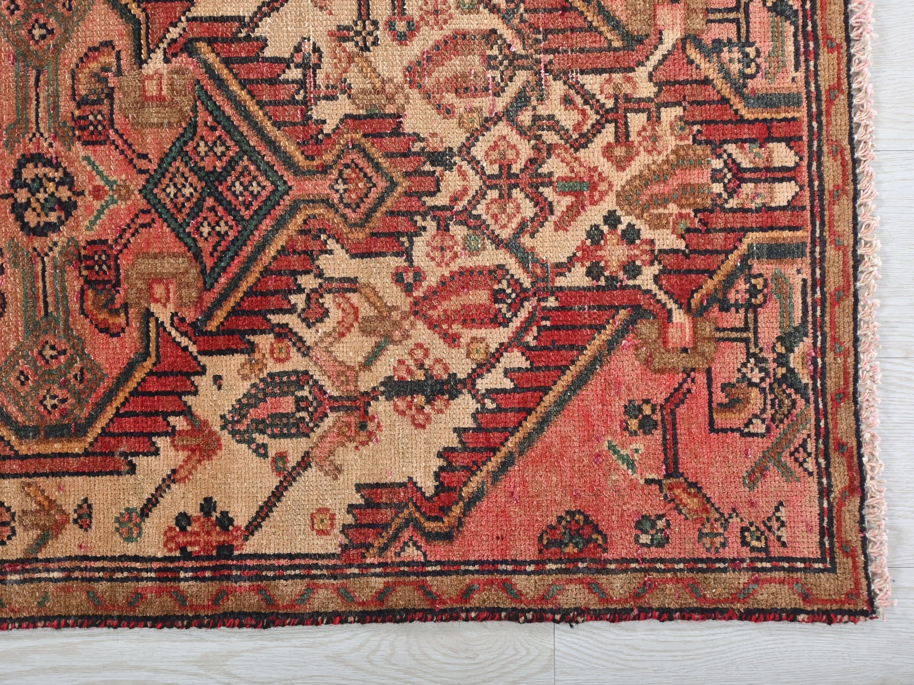 This is a hand-knotted, one-of-a-kind vintage rug. Due to the nature of this piece, there may be slight imperfections in its wear, shape, dimensions, and color. All of our rugs are professionally cleaned and repaired.