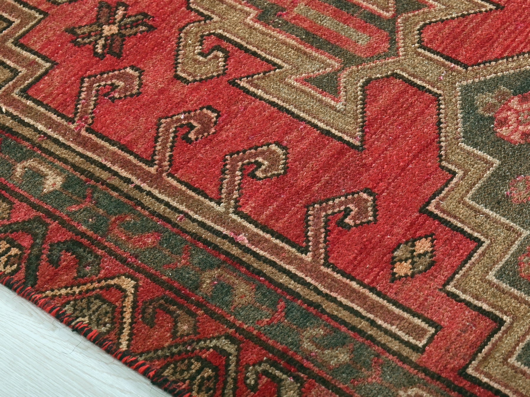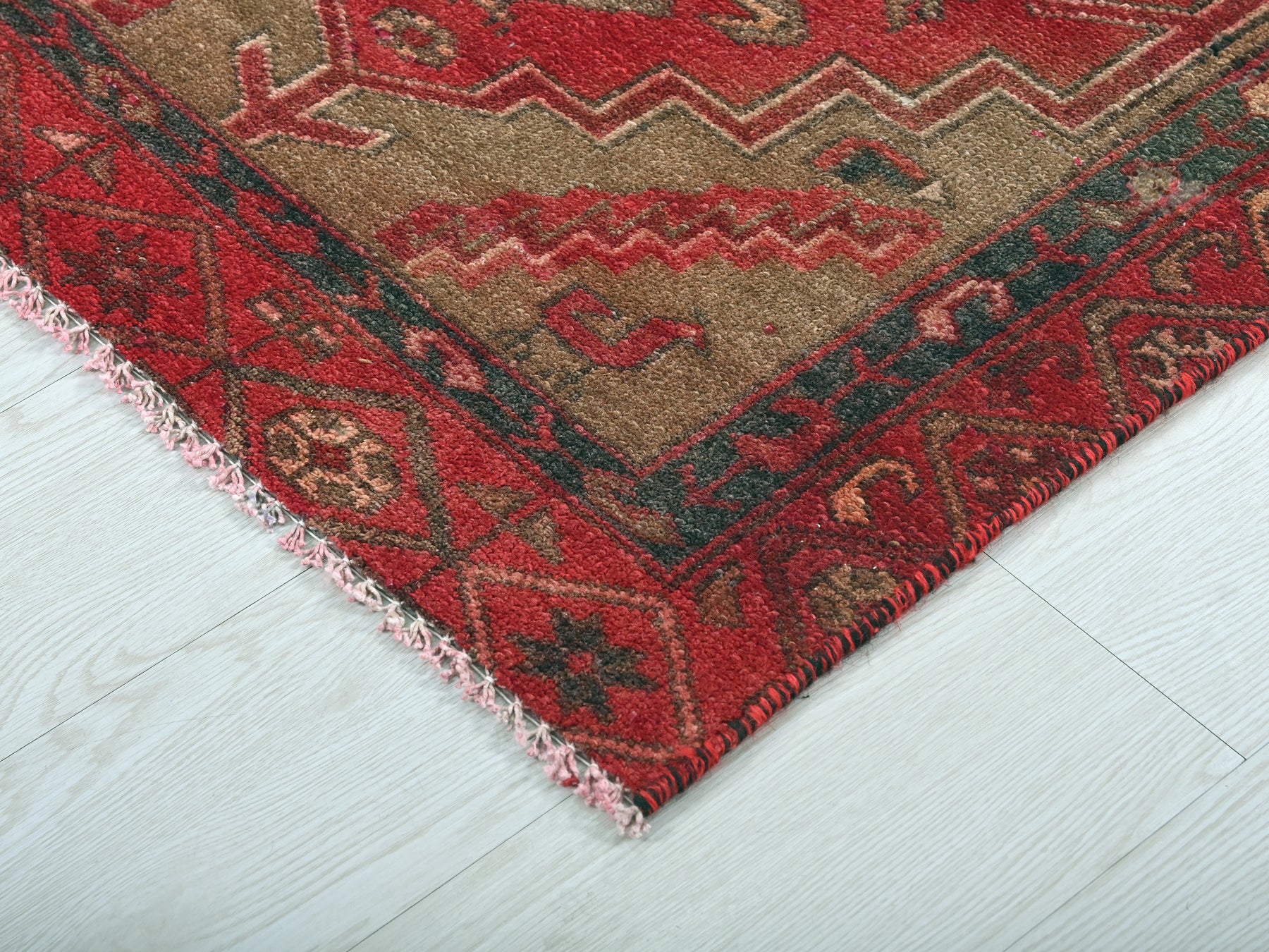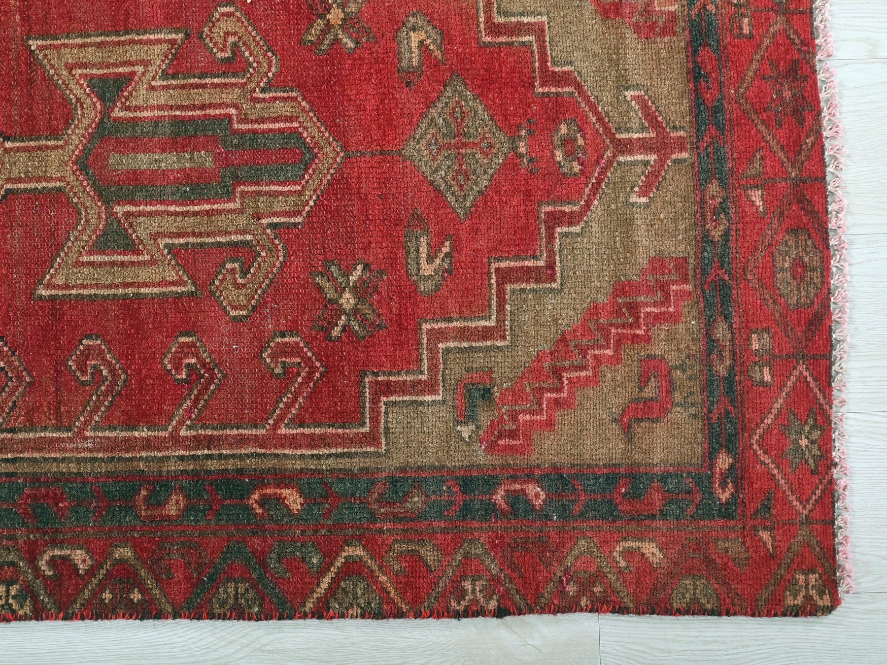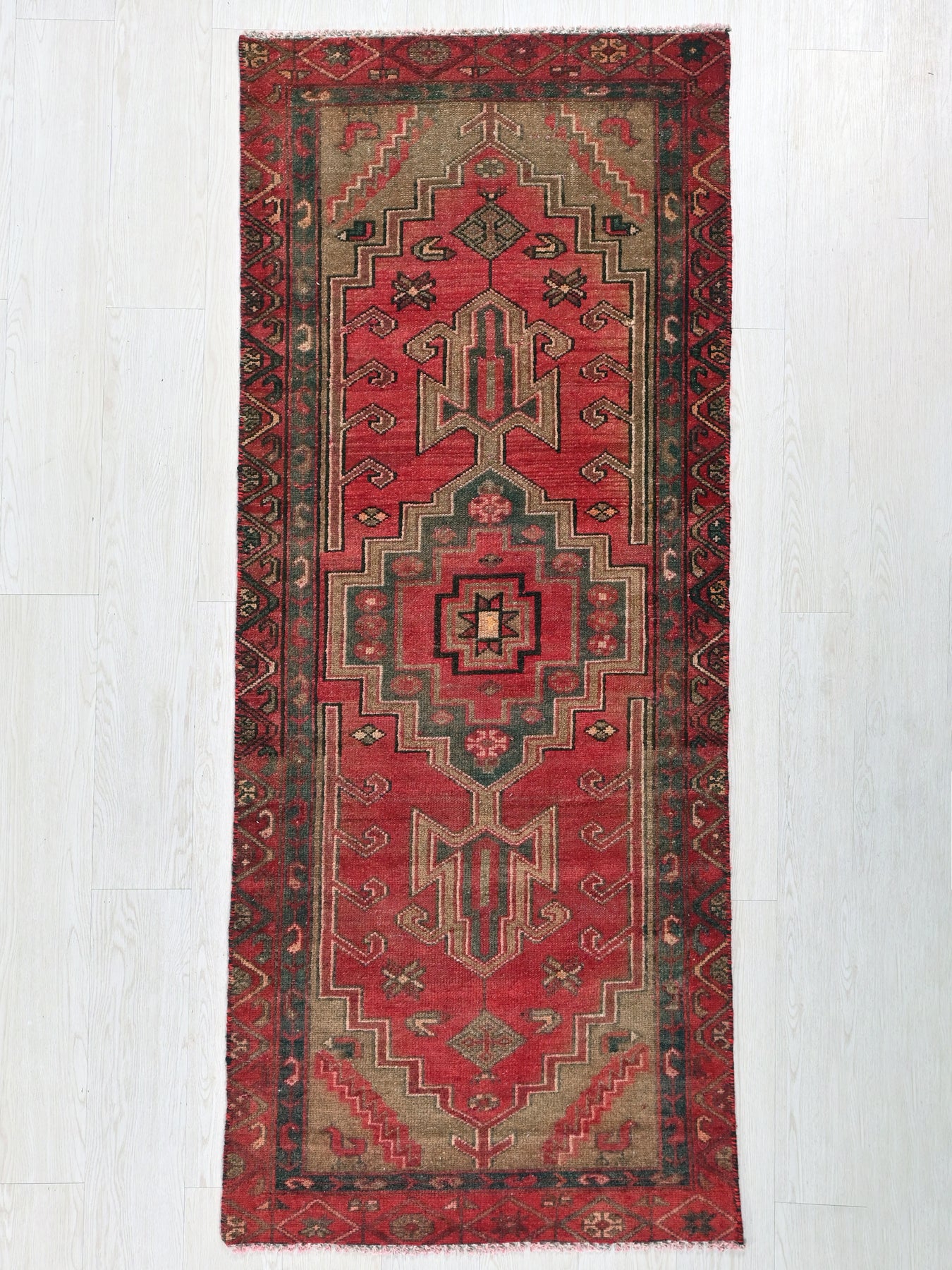 This is a hand-knotted, one-of-a-kind vintage rug. Due to the nature of this piece, there may be slight imperfections in its wear, shape, dimensions, and color. All of our rugs are professionally cleaned and repaired.