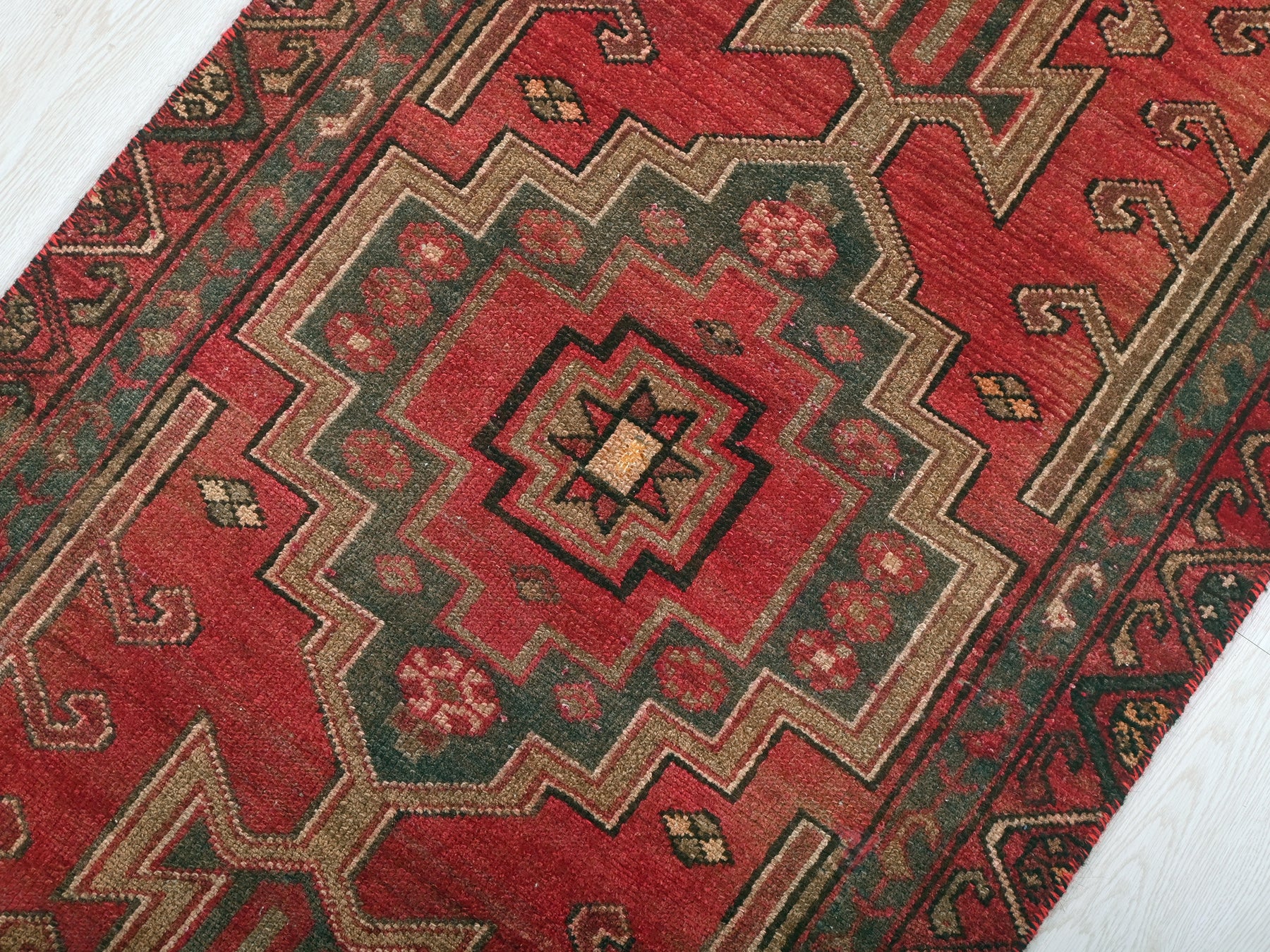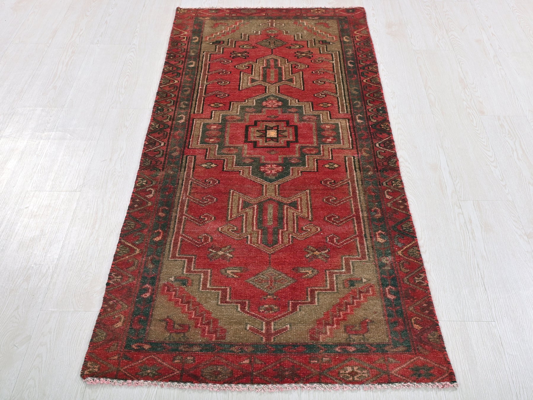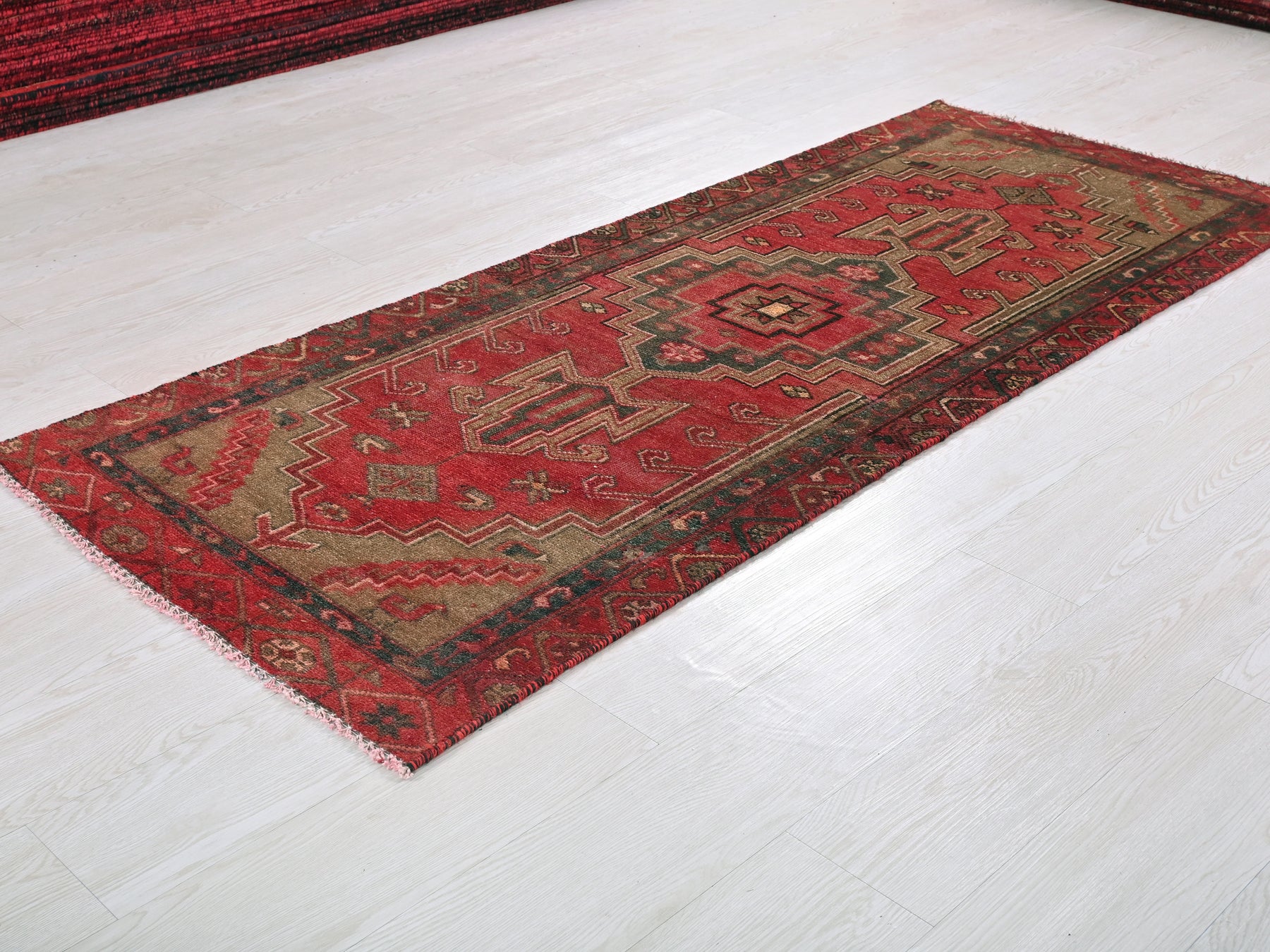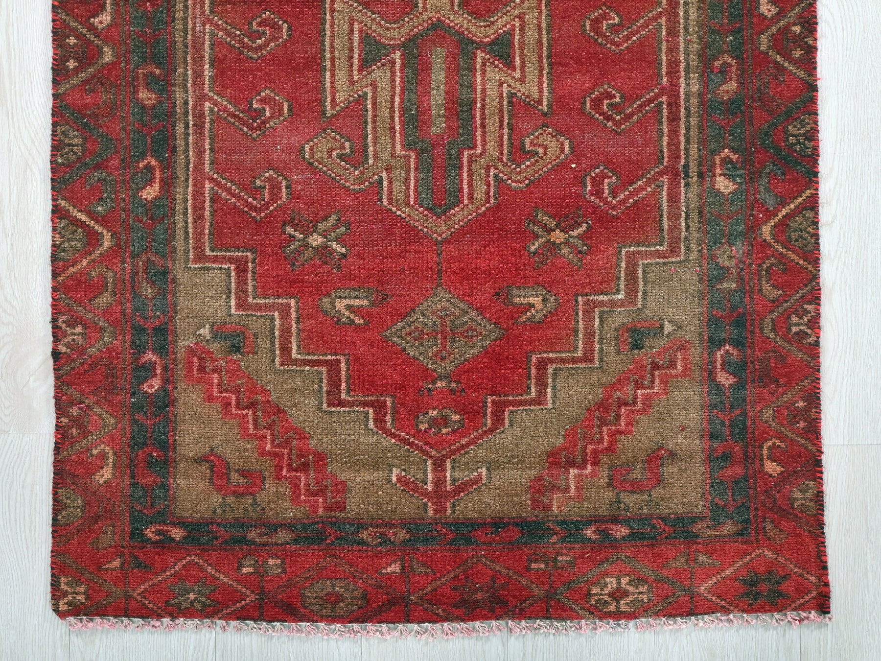 This is a hand-knotted, one-of-a-kind vintage rug. Due to the nature of this piece, there may be slight imperfections in its wear, shape, dimensions, and color. All of our rugs are professionally cleaned and repaired.