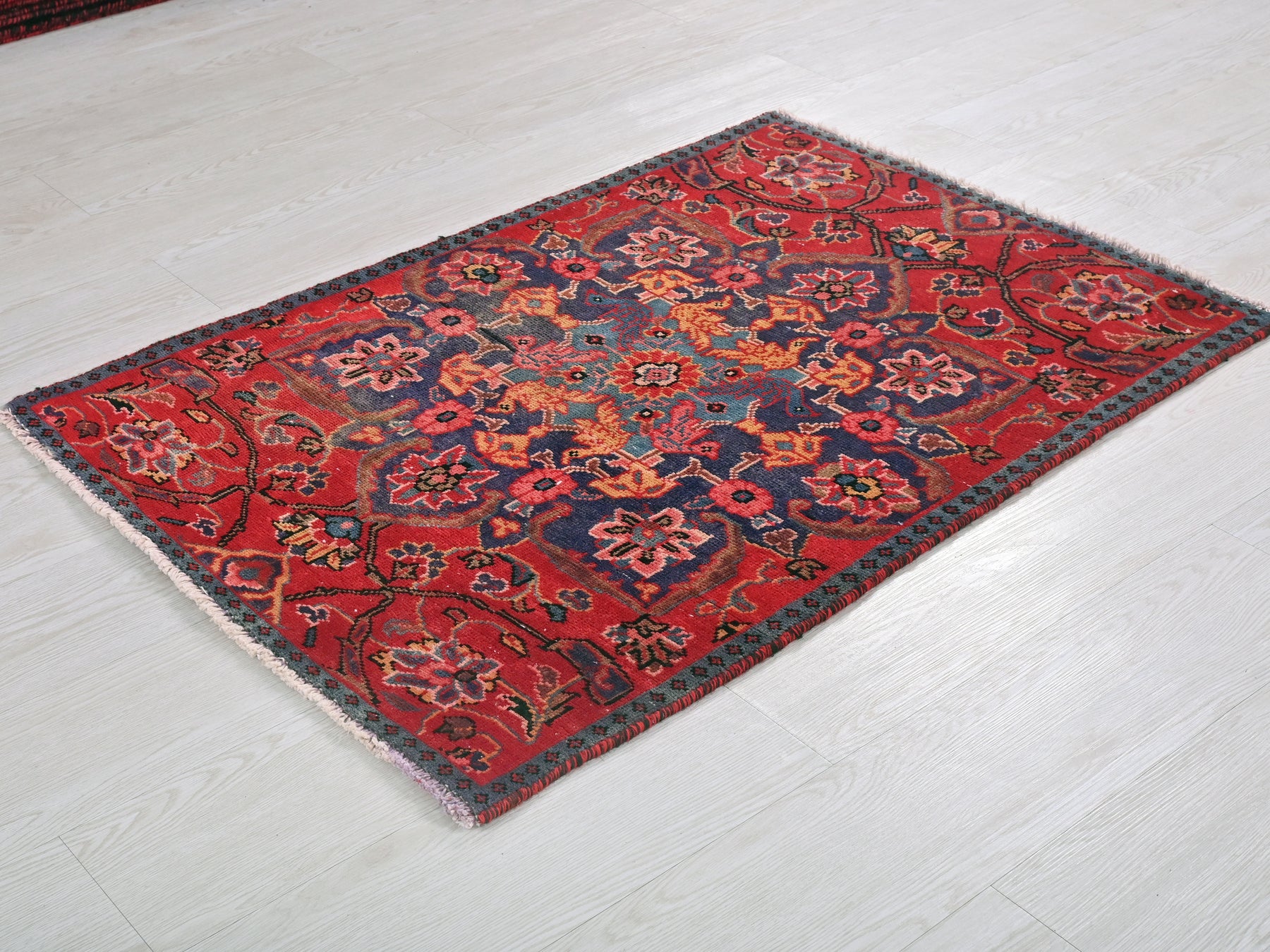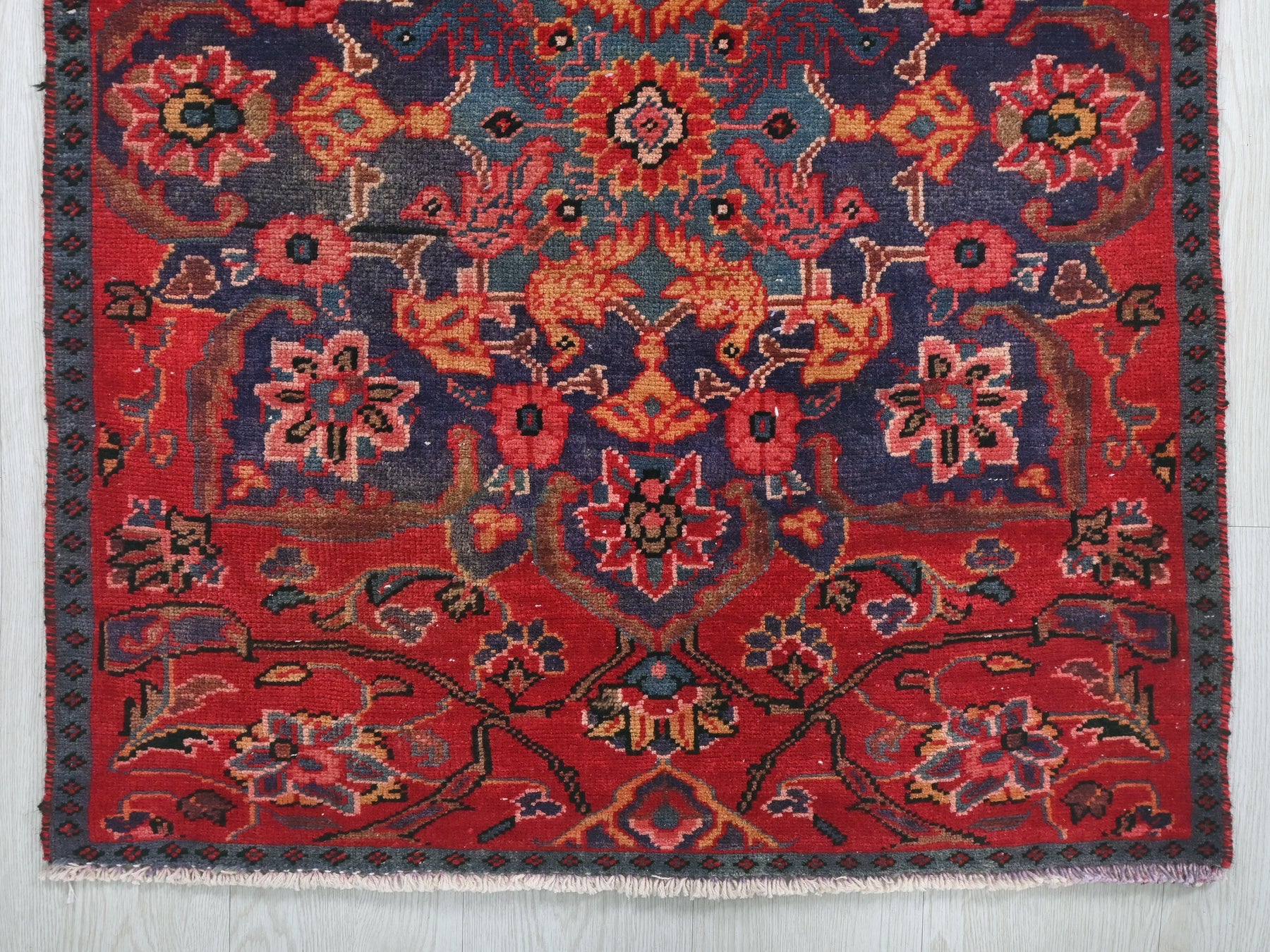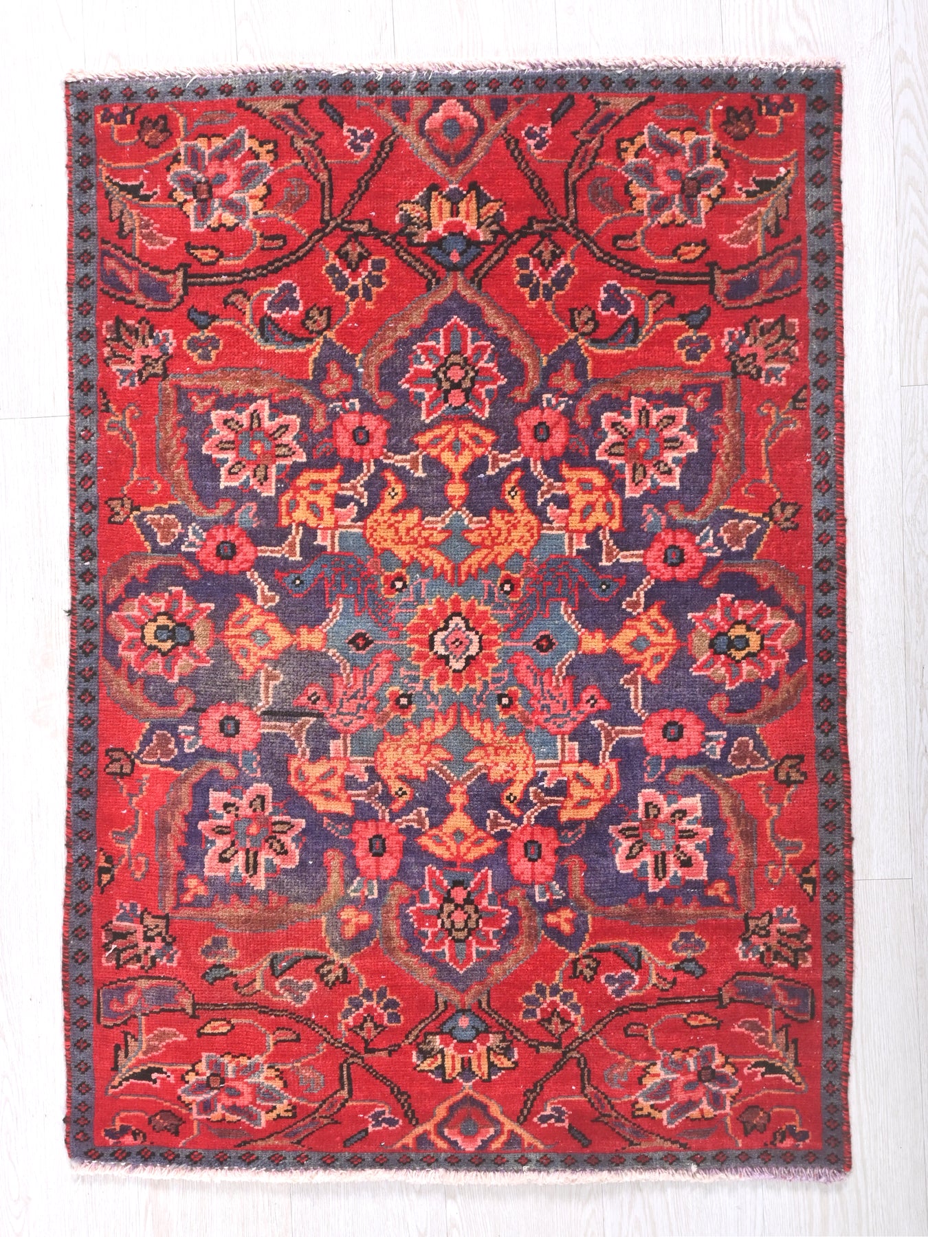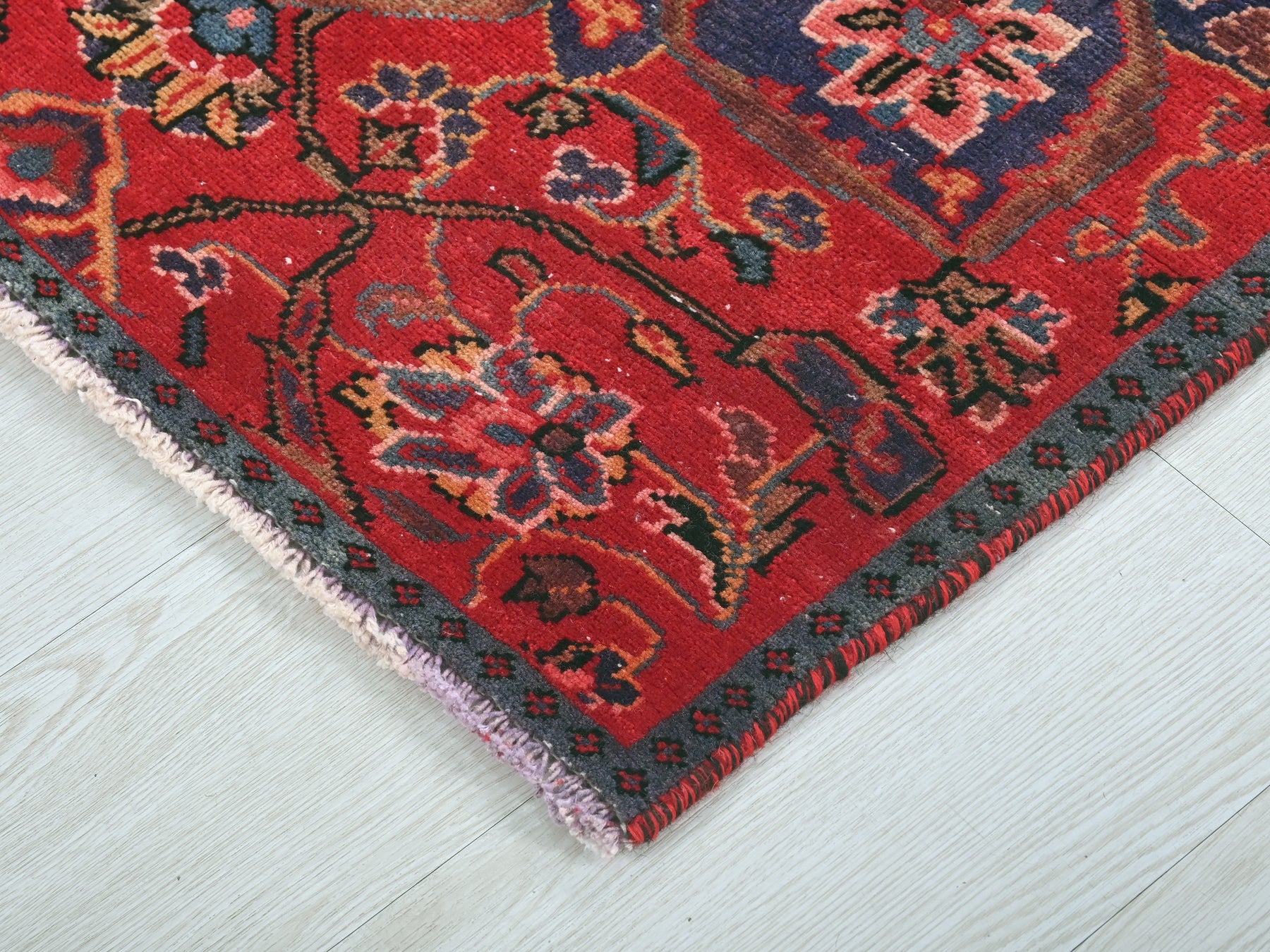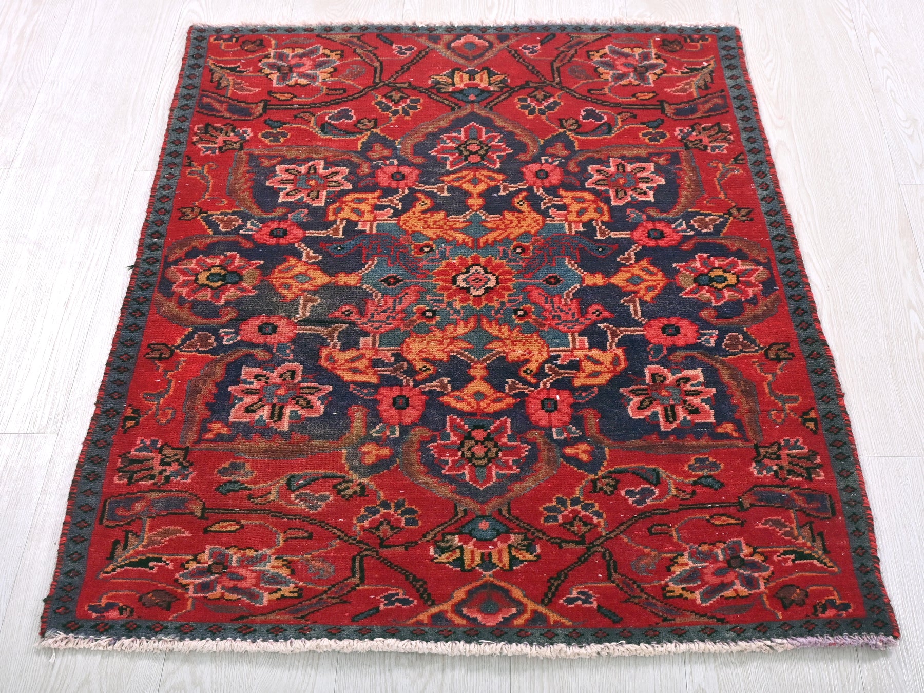 This is a hand-knotted, one-of-a-kind vintage rug. Due to the nature of this piece, there may be slight imperfections in its wear, shape, dimensions, and color. All of our rugs are professionally cleaned and repaired.