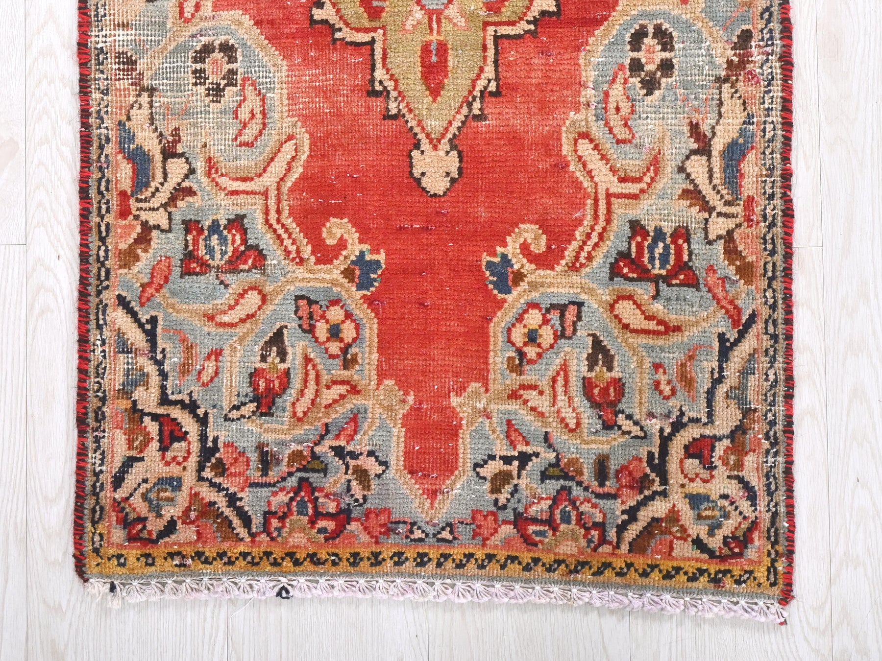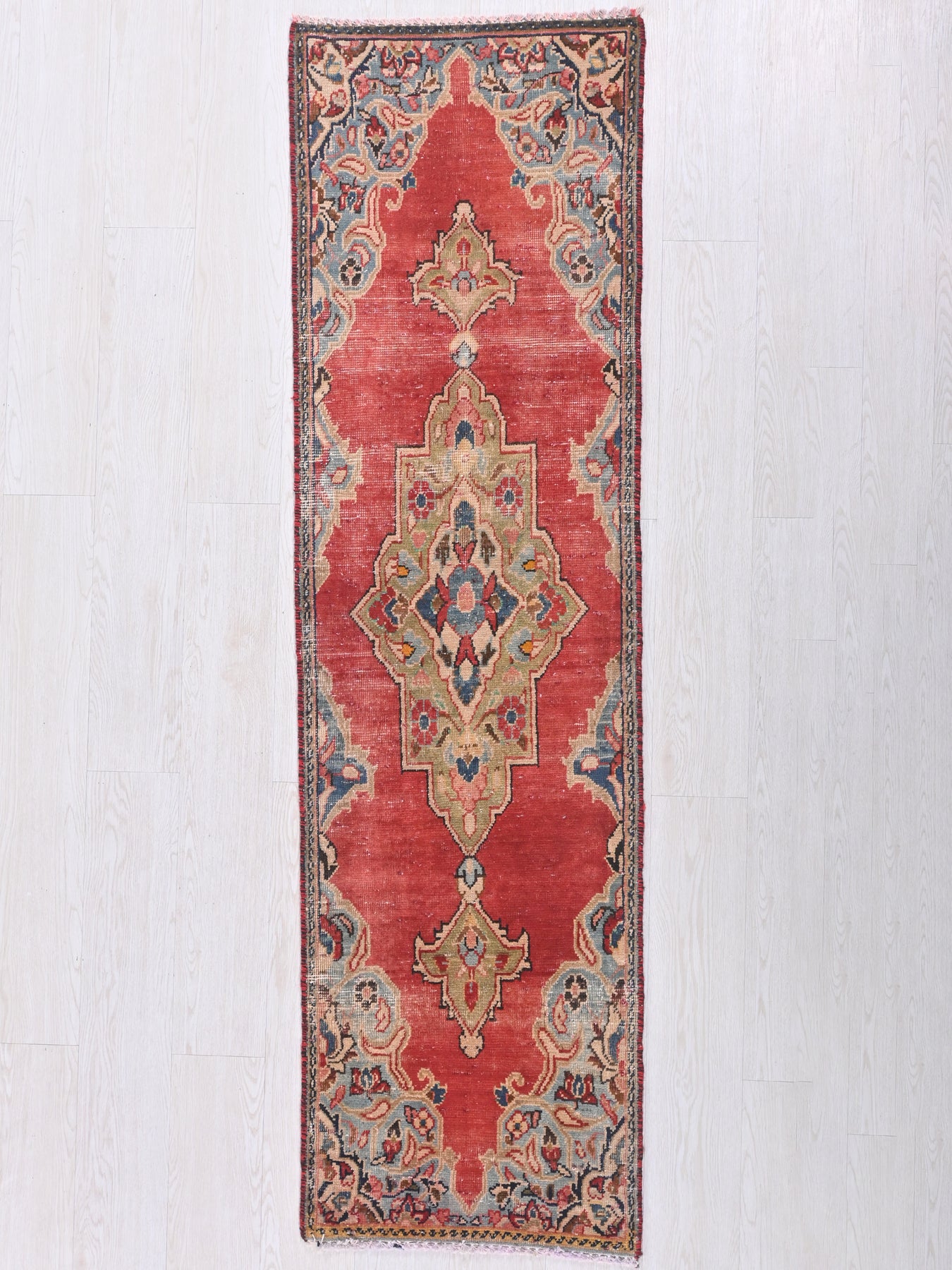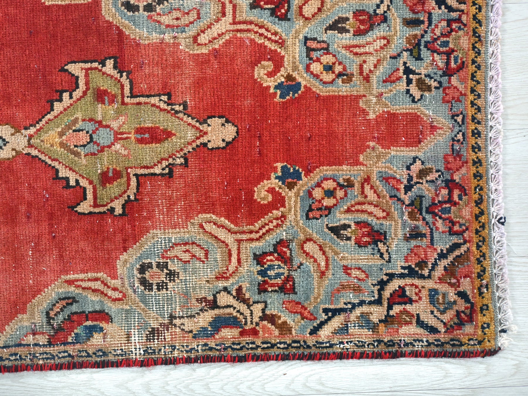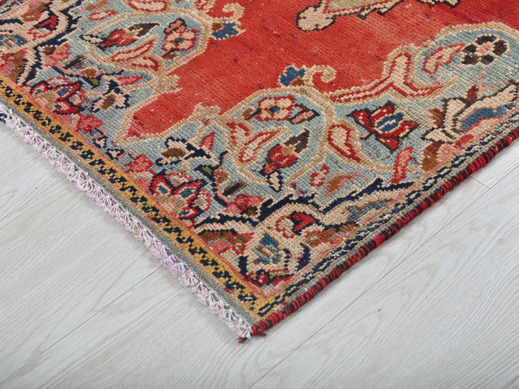 This is a hand-knotted, one-of-a-kind vintage rug. Due to the nature of this piece, there may be slight imperfections in its wear, shape, dimensions, and color. All of our rugs are professionally cleaned and repaired.