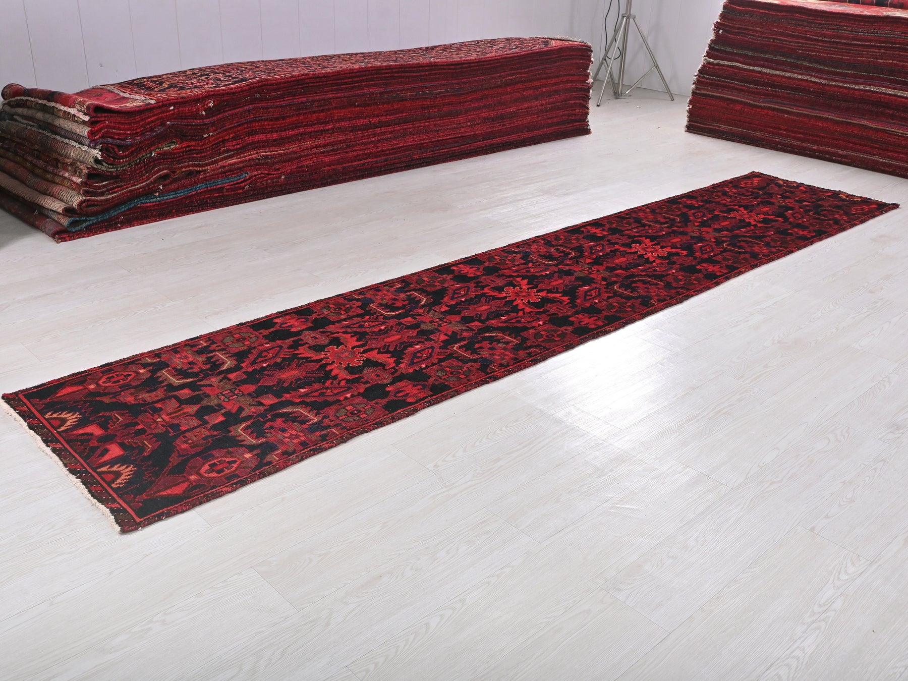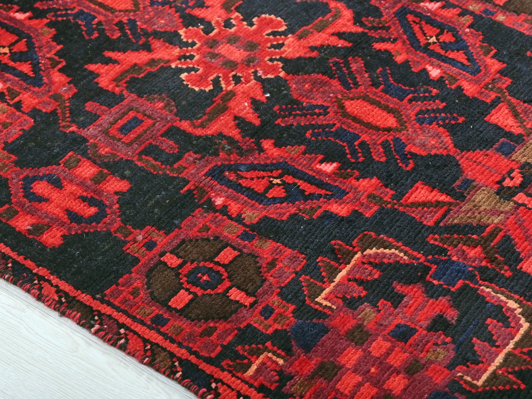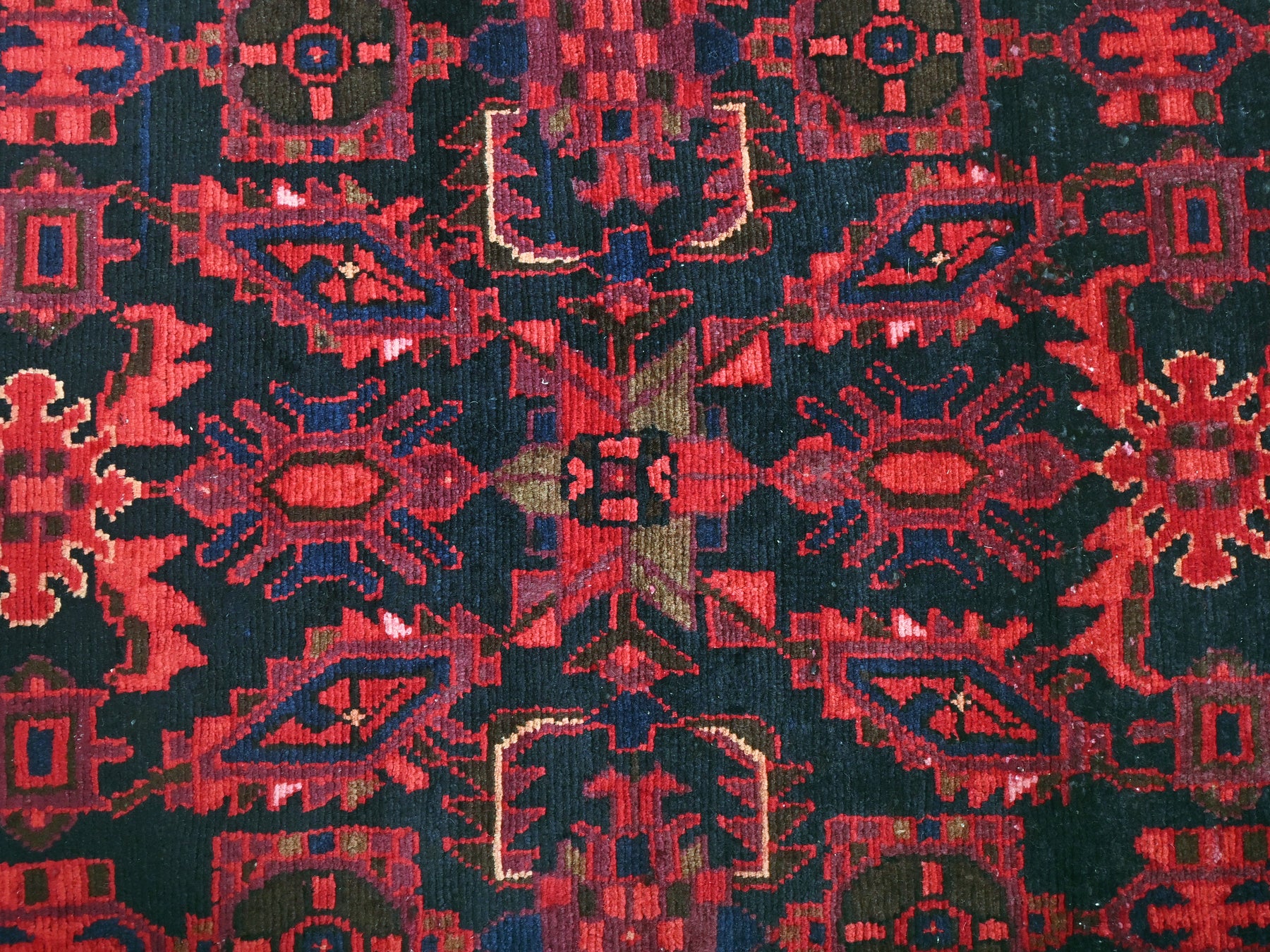 This is a hand-knotted, one-of-a-kind vintage rug. Due to the nature of this piece, there may be slight imperfections in its wear, shape, dimensions, and color. All of our rugs are professionally cleaned and repaired.