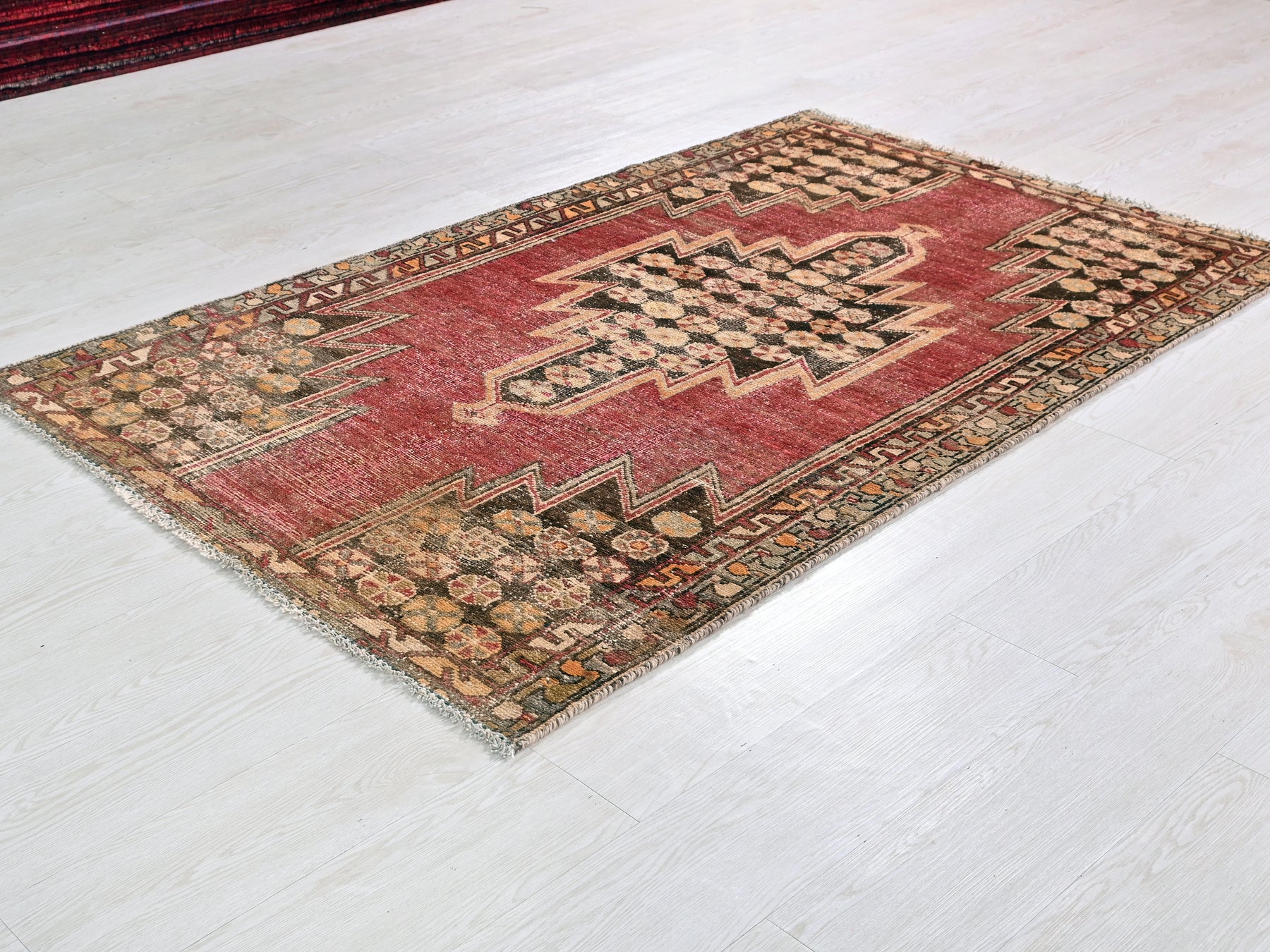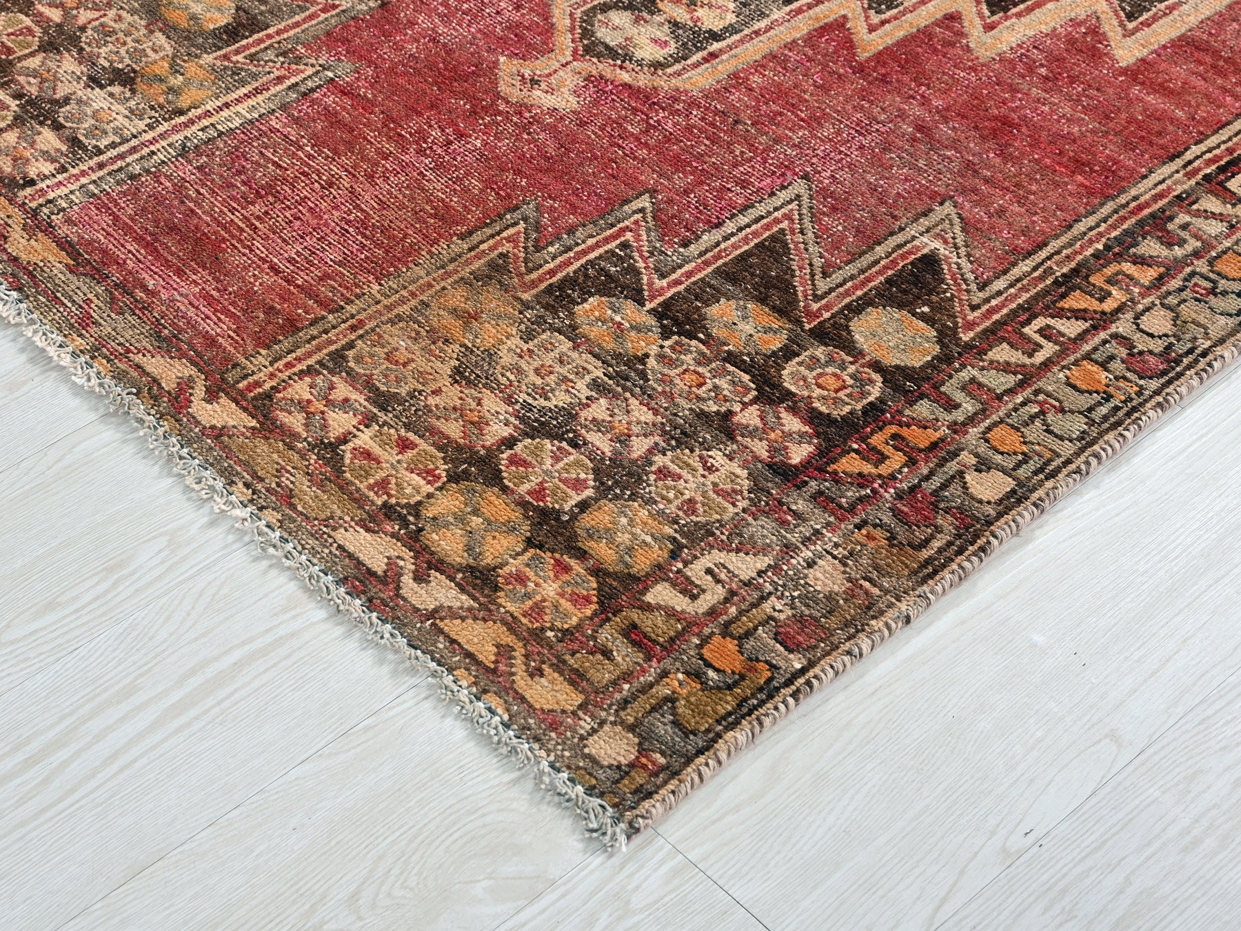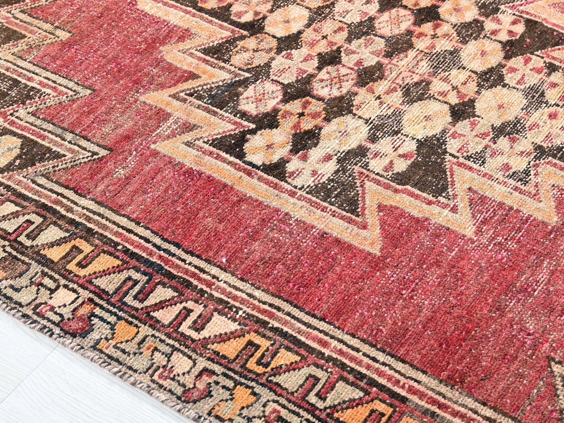 This is a hand-knotted, one-of-a-kind vintage rug. Due to the nature of this piece, there may be slight imperfections in its wear, shape, dimensions, and color. All of our rugs are professionally cleaned and repaired.