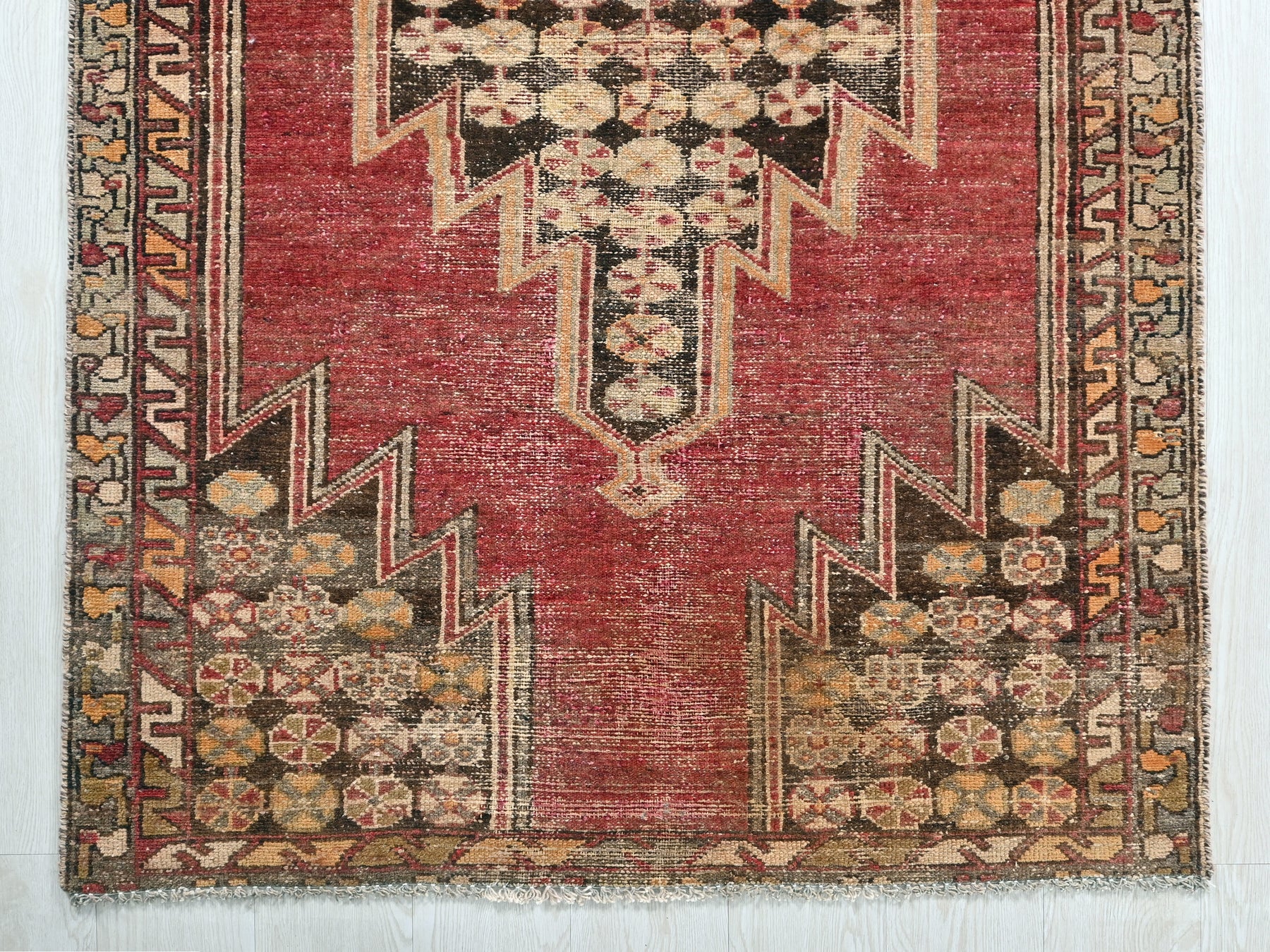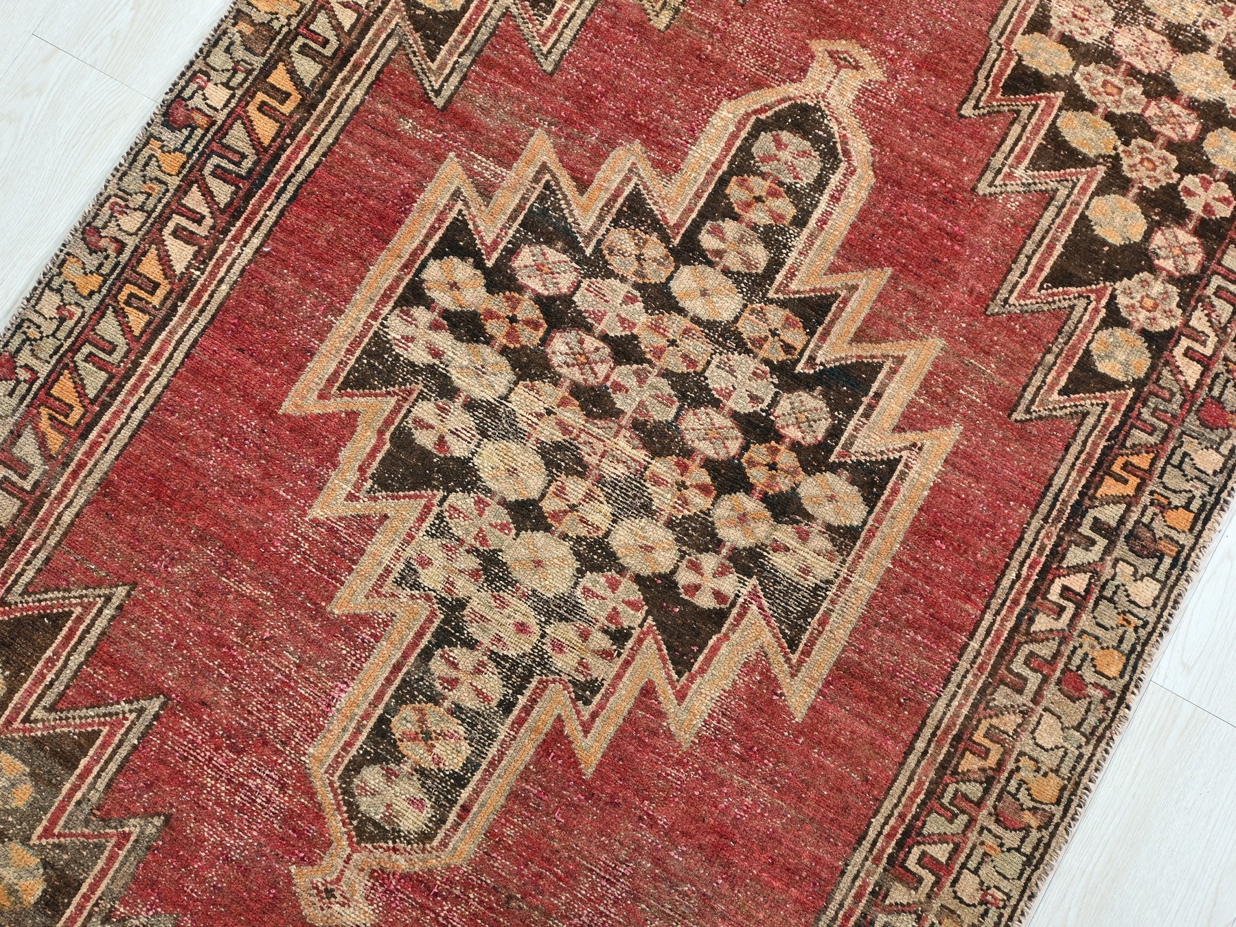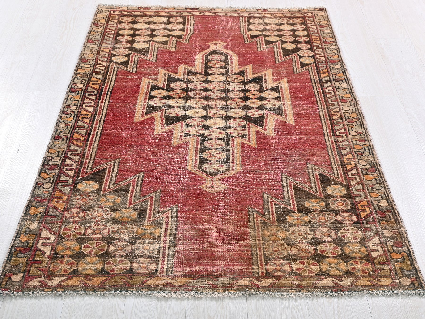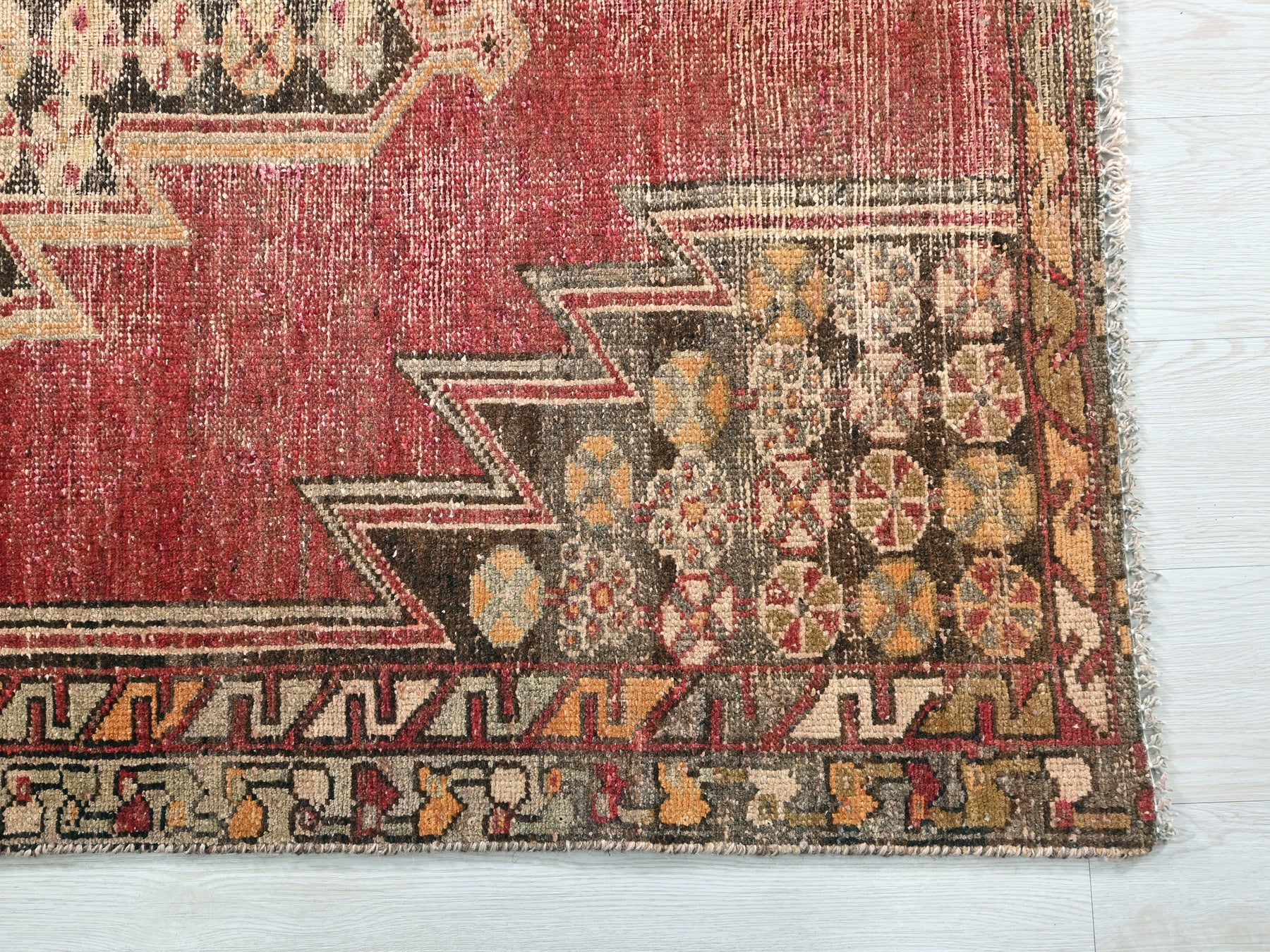 This is a hand-knotted, one-of-a-kind vintage rug. Due to the nature of this piece, there may be slight imperfections in its wear, shape, dimensions, and color. All of our rugs are professionally cleaned and repaired.