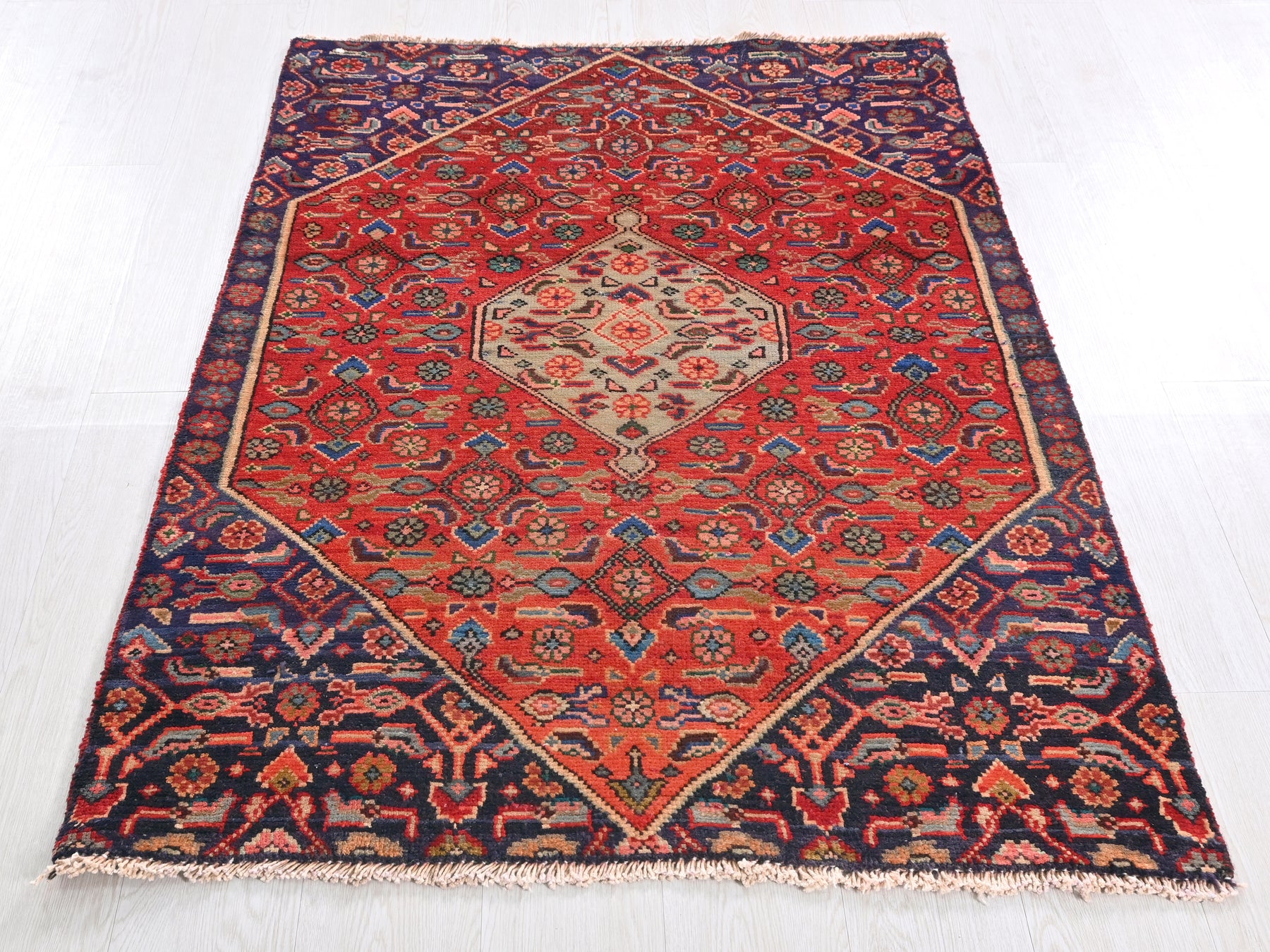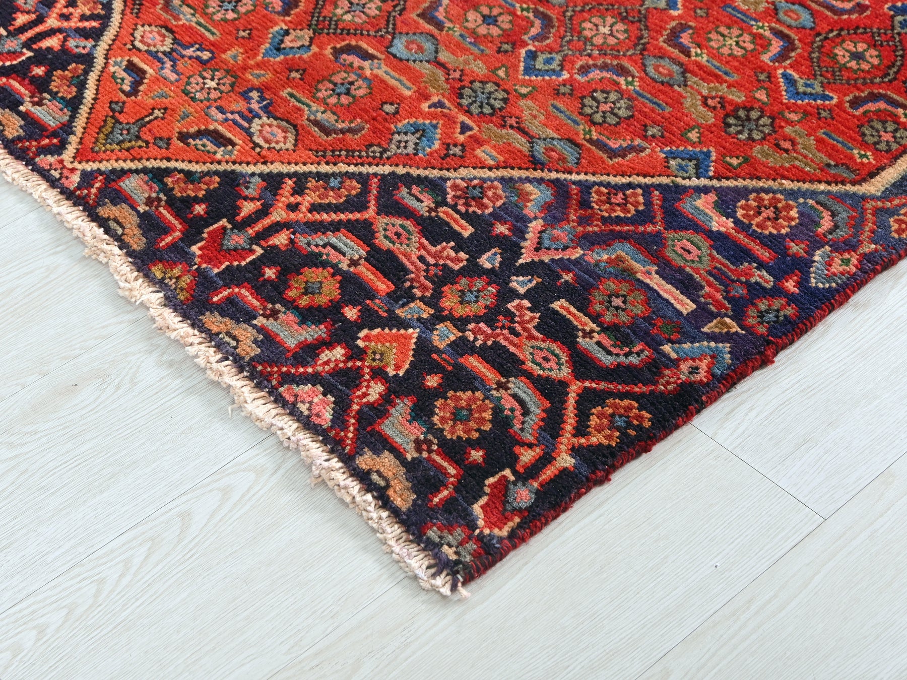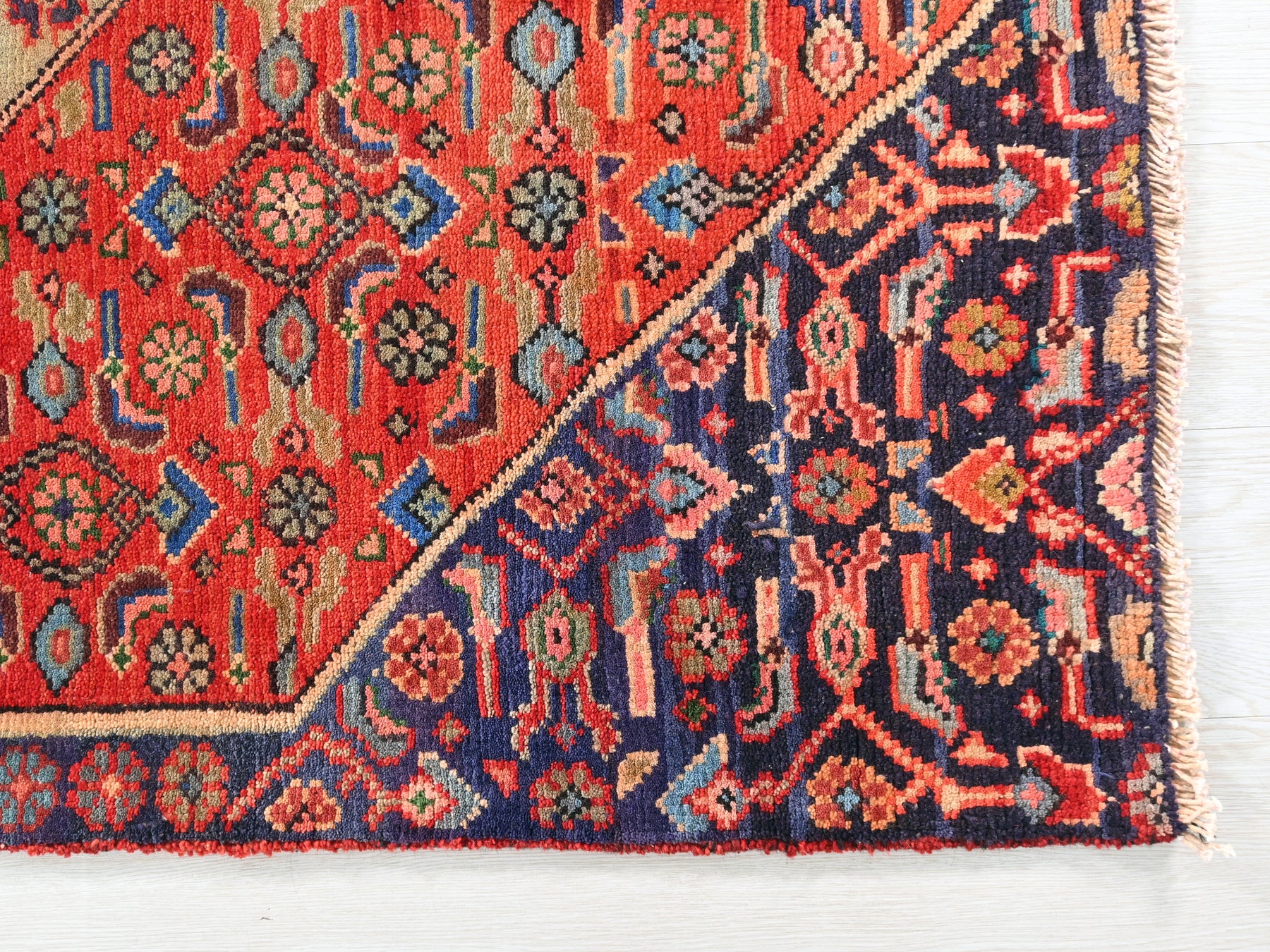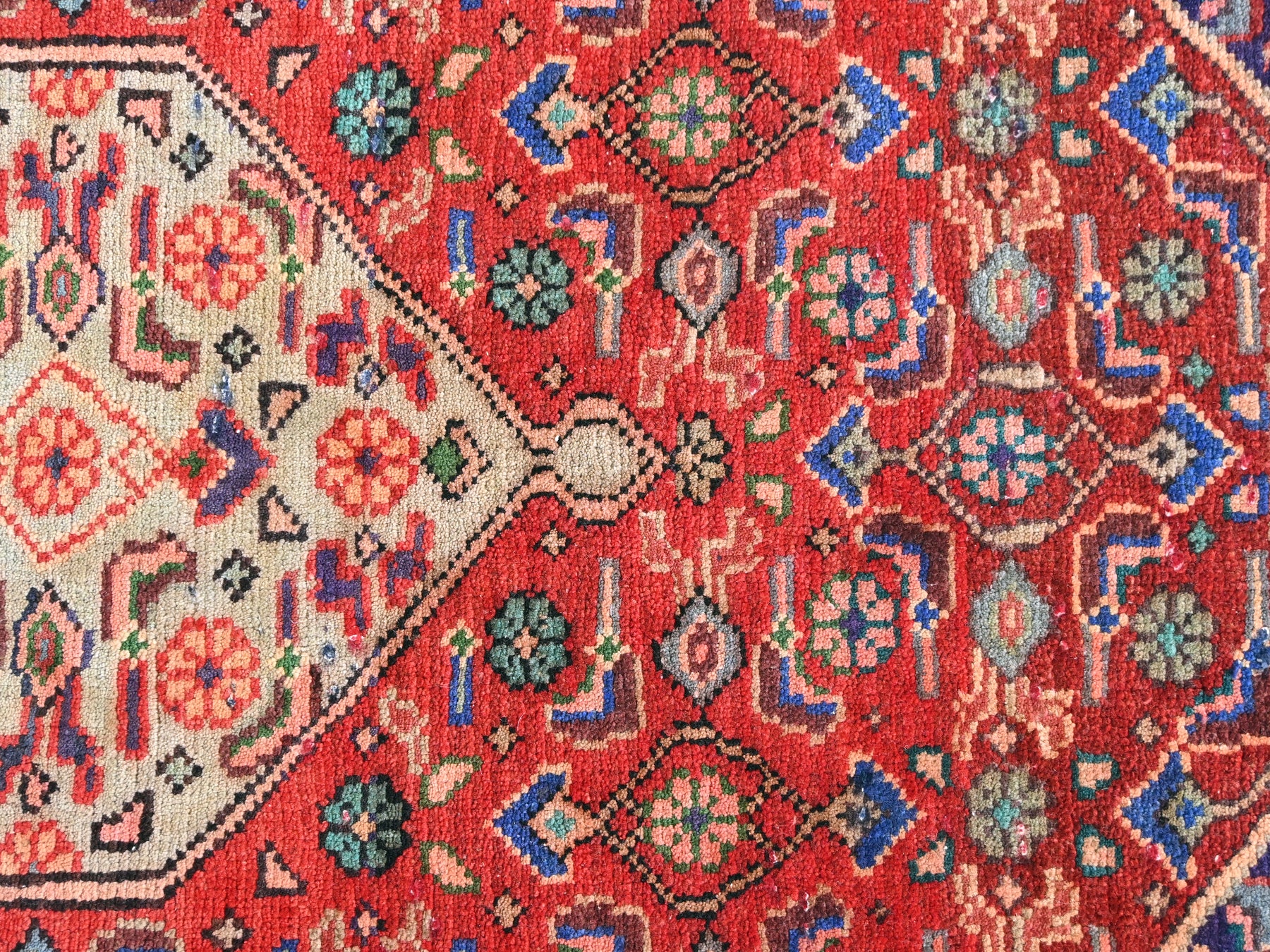 This is a hand-knotted, one-of-a-kind vintage rug. Due to the nature of this piece, there may be slight imperfections in its wear, shape, dimensions, and color. All of our rugs are professionally cleaned and repaired.