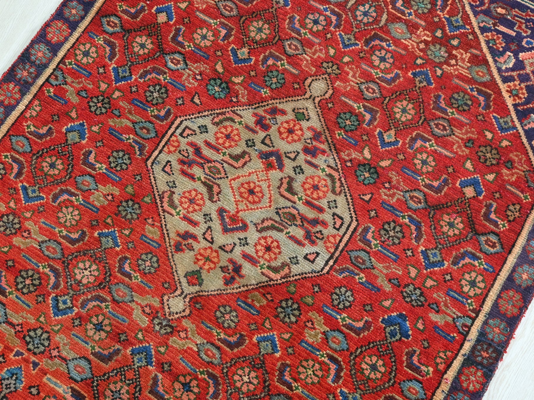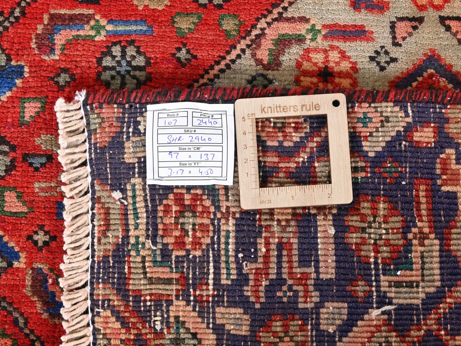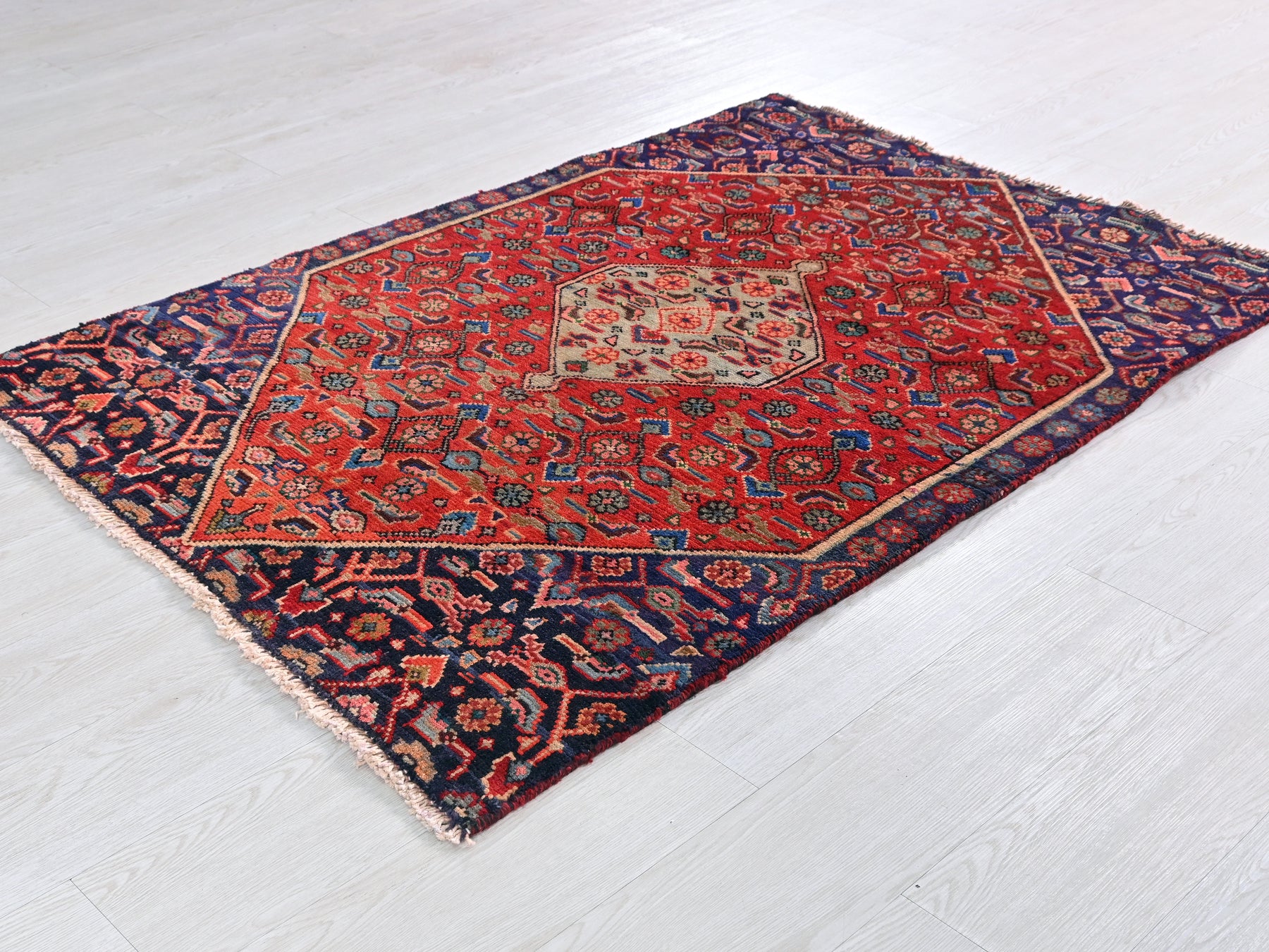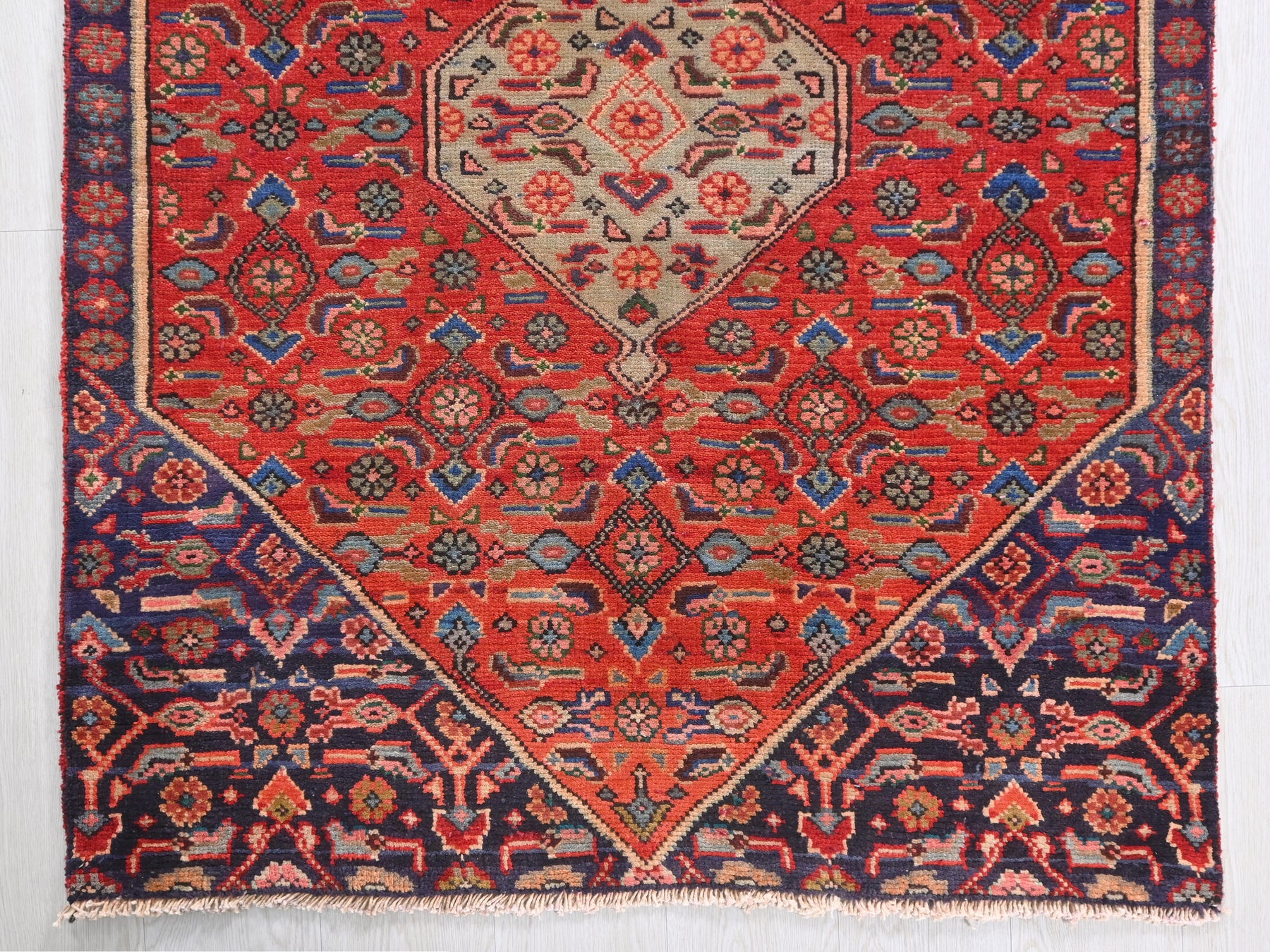 This is a hand-knotted, one-of-a-kind vintage rug. Due to the nature of this piece, there may be slight imperfections in its wear, shape, dimensions, and color. All of our rugs are professionally cleaned and repaired.