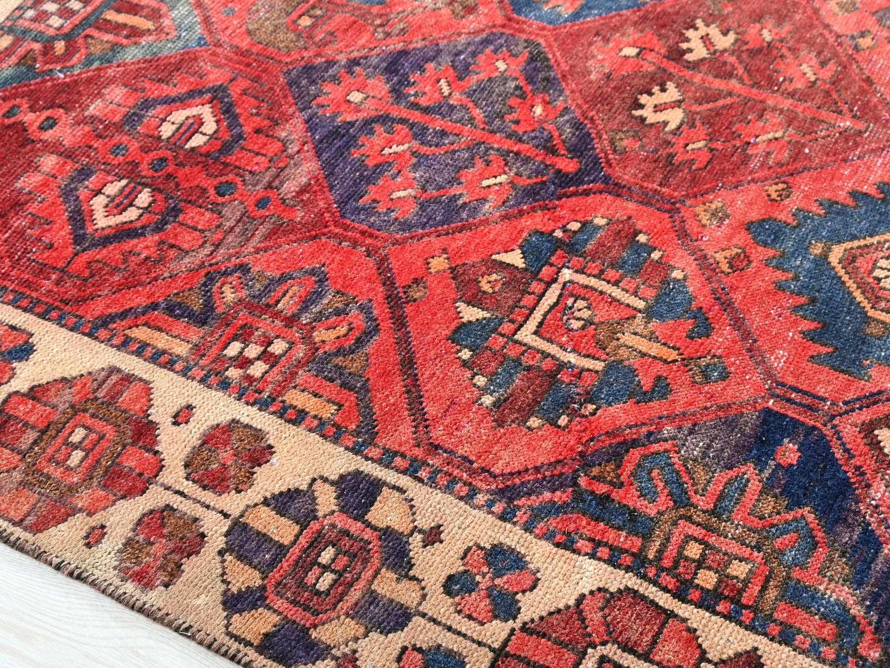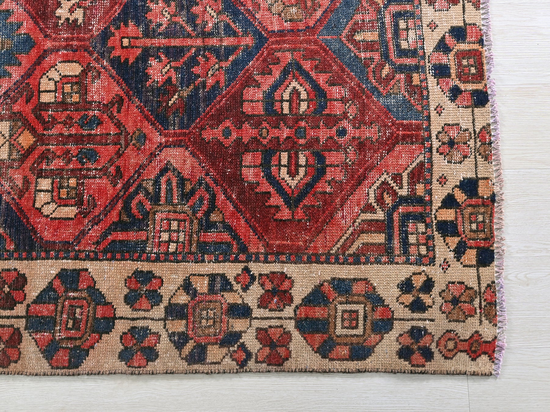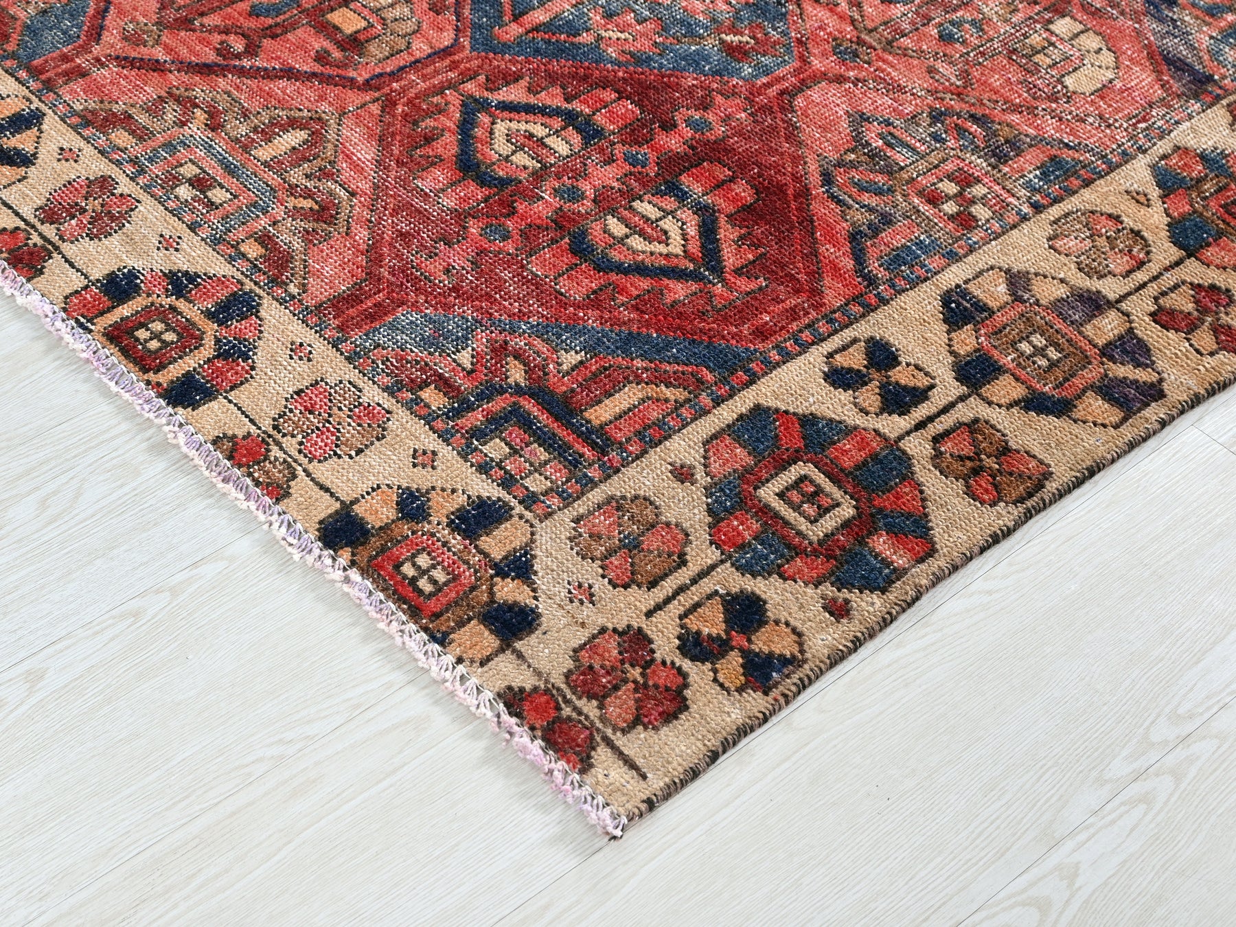 This is a hand-knotted, one-of-a-kind vintage rug. Due to the nature of this piece, there may be slight imperfections in its wear, shape, dimensions, and color. All of our rugs are professionally cleaned and repaired.